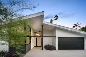Hidden Midcentury Modern Estate in exclusive area of Toluca Lake. Gated private drive to one-of-a-kind gallery-like home of soaring angles & asymmetrical silhouettes. Completely re-built, sleek open concept showplace! Light floods in throug...
