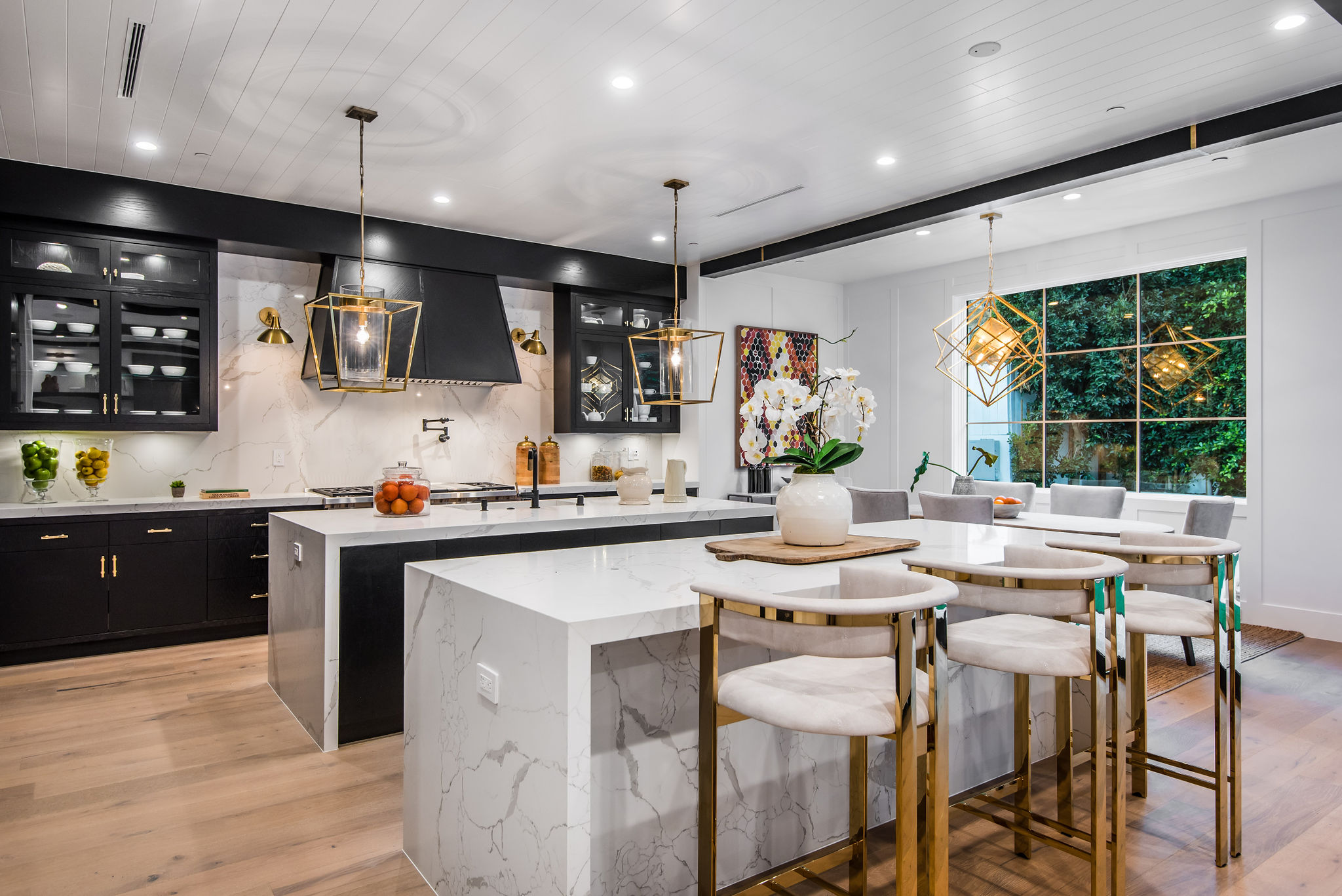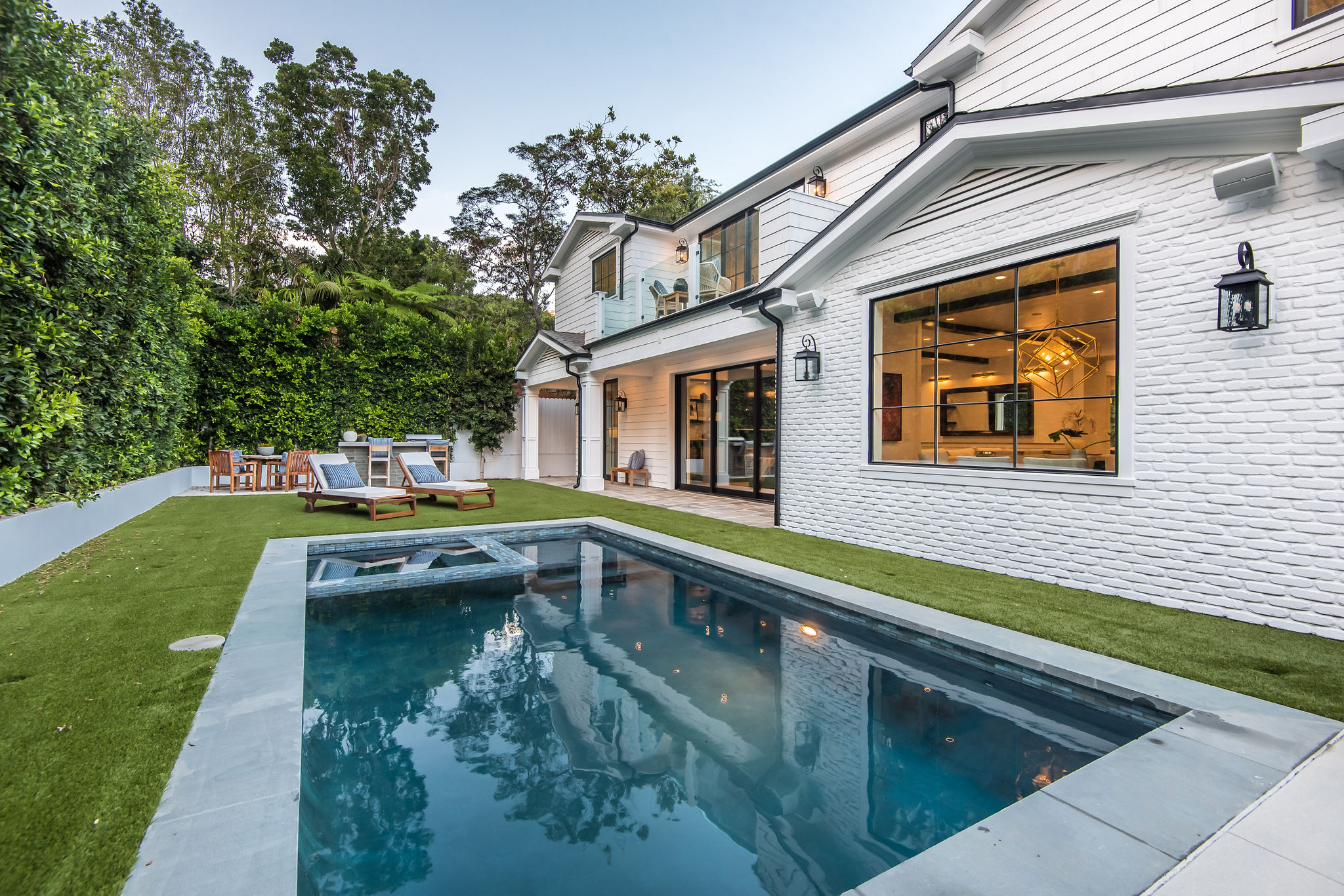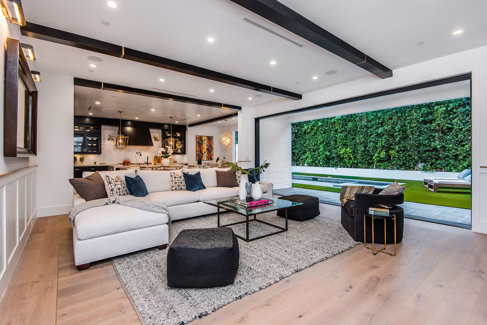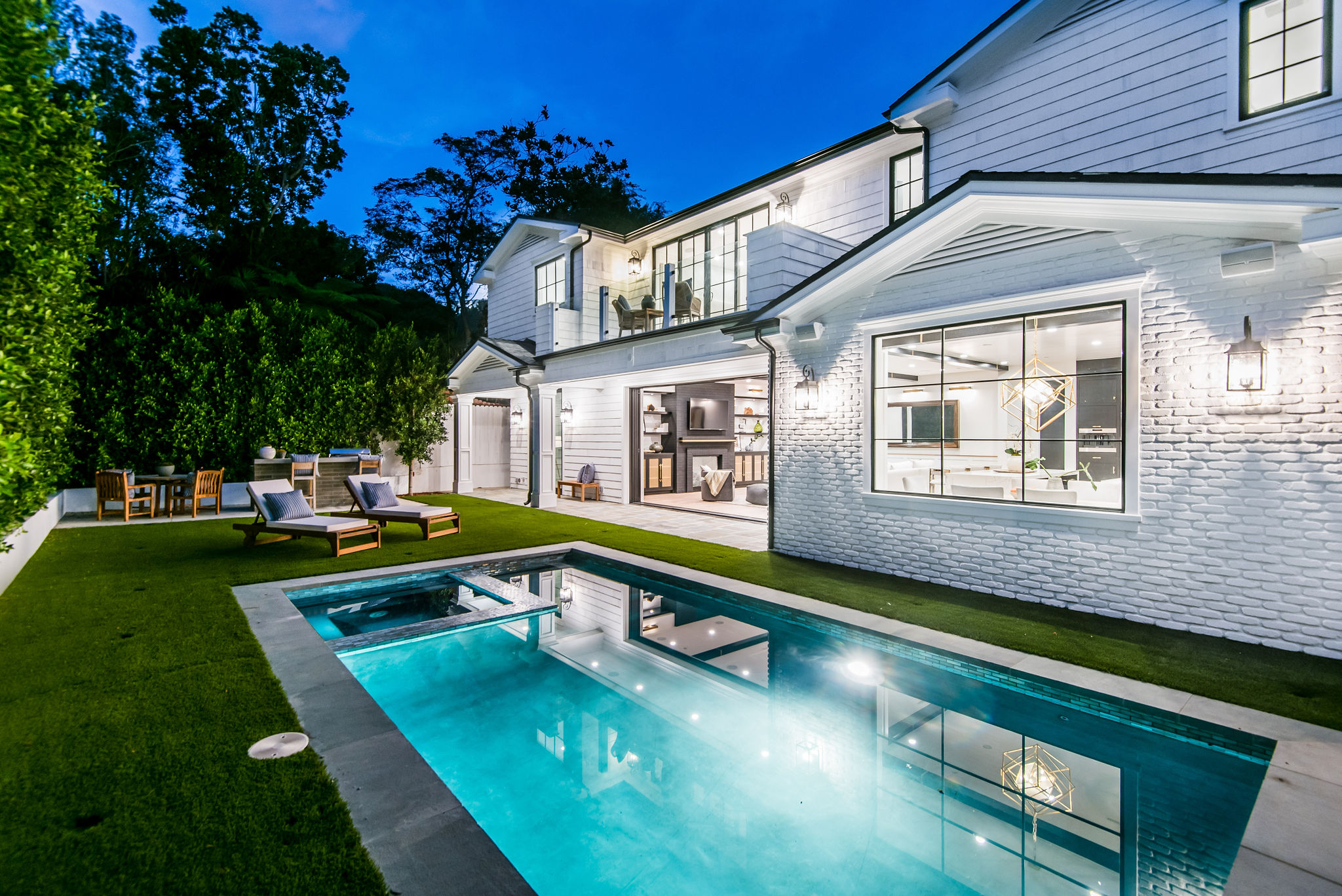 Sophisticated New Custom Built Home, quality materials & expert execution by Shelter Homes LA. A meticulously detailed 5 bed, 6 bath modern farmhouse has been exquisitely built in a secluded Brentwood neighborhood. Walk into a well thought out floor plan w/ wide plank hardwood floors, wood accent walls, black & gold luxury finishes, custom built-ins throughout. Seductive white & black Gourmet kitchen boasts an abundance of cabinetry, double center Islands, butlers & walk in pantries, high end appliances, complete with a breakfast nook. Kitchen opens to family room with custom fireplace and built-ins, surround sound, and floor to ceiling pocket glass doors. Opulent master retreat w/ vaulted ceilings, fireplace, His & Her closets, dual vanities, soaking tub, and massive standing shower, private balcony overlooks backyard. Entertainers backyard w/ bbq, pool & spa, and grassy lawn. Additional luxuries include Control4 smart home system, indoor/outdoor surround sound, wine room.