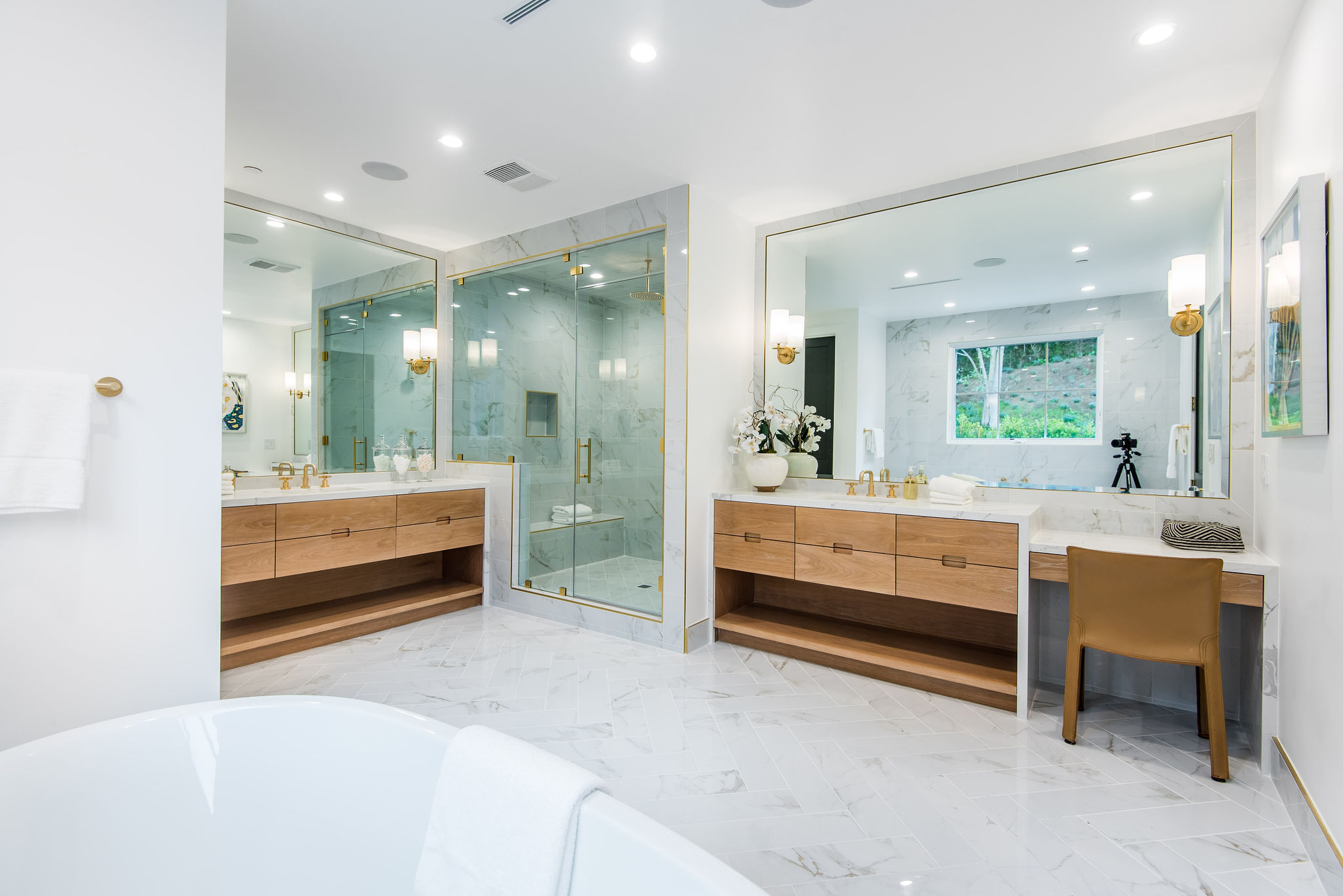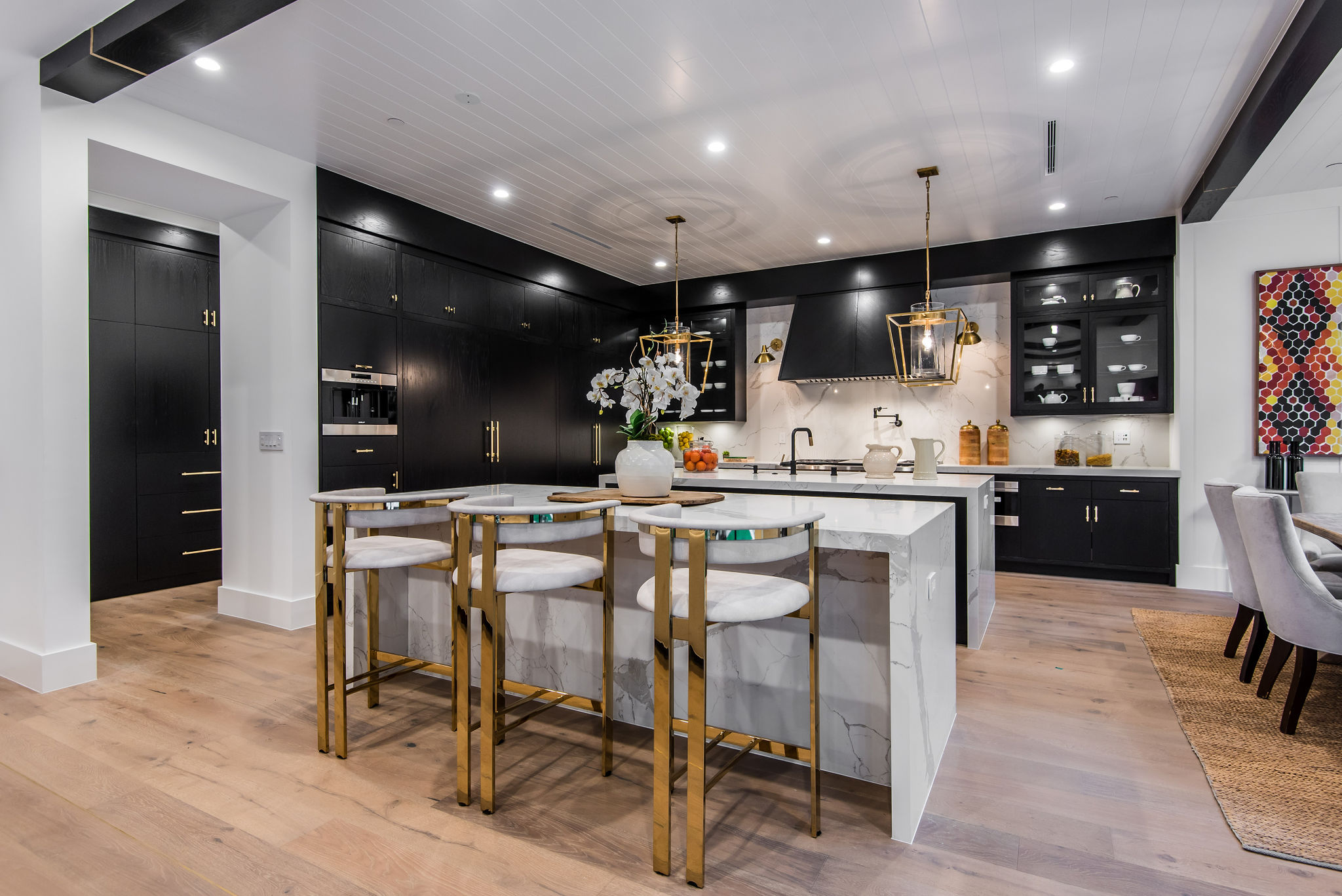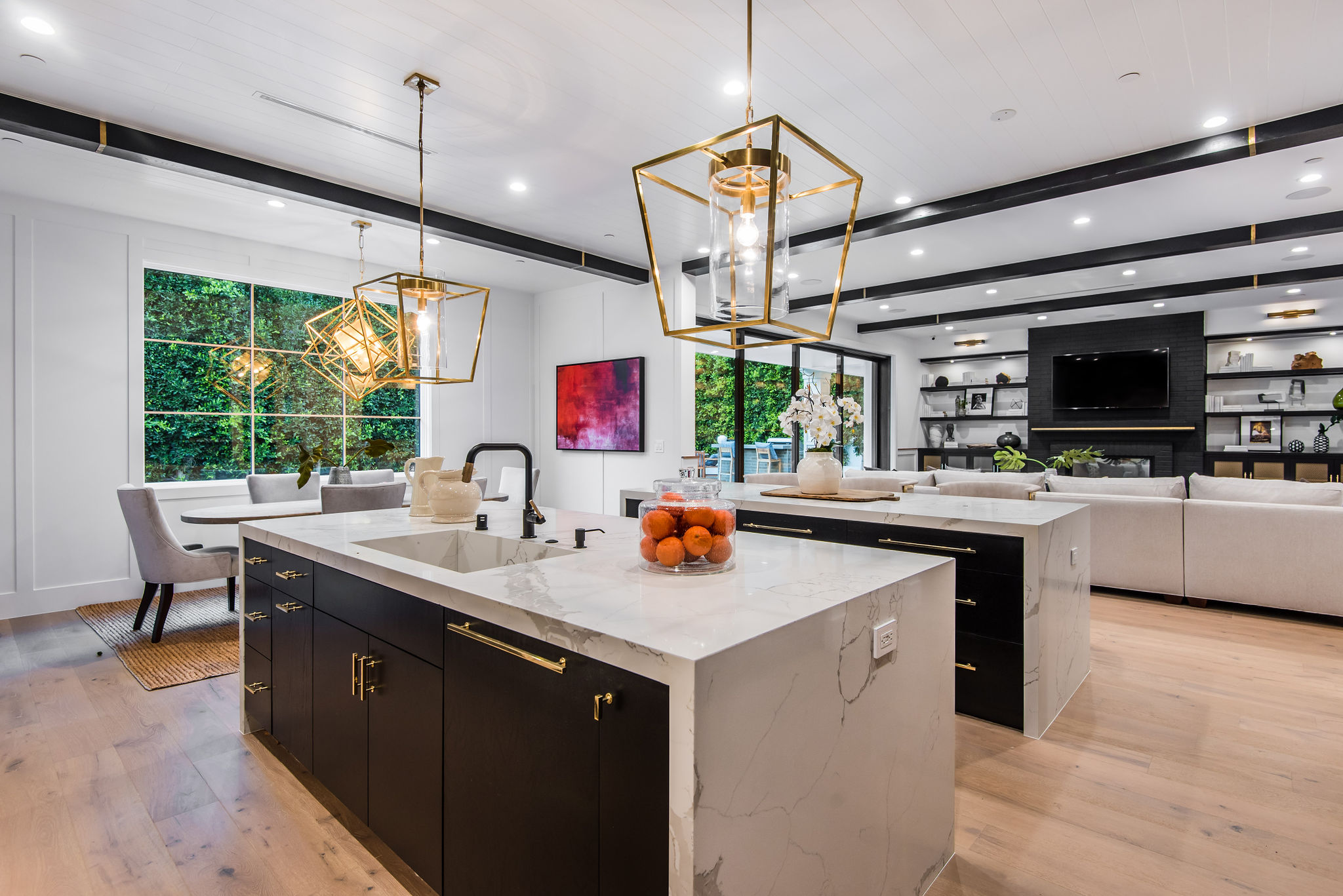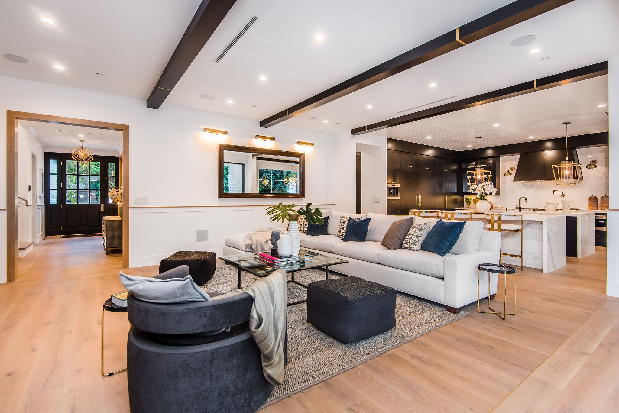 Sophisticated New Custom Built Home, quality materials & expert execution by Shelter Homes LA. A meticulously detailed 5 bed, 6 bath modern farmhouse has been exquisitely built in a secluded Brentwood neighborhood. Walk into a well thought out floor plan w/ wide plank hardwood floors, wood accent walls, black & gold luxury finishes, custom built-ins throughout. Seductive white & black Gourmet kitchen boasts an abundance of cabinetry, double center Islands, butlers & walk in pantries, high end appliances, complete with a breakfast nook. Kitchen opens to family room with custom fireplace and built-ins, surround sound, and floor to ceiling pocket glass doors. Opulent master retreat w/ vaulted ceilings, fireplace, His & Her closets, dual vanities, soaking tub, and massive standing shower, private balcony overlooks backyard. Entertainers backyard w/ bbq, pool & spa, and grassy lawn. Additional luxuries include Control4 smart home system, indoor/outdoor surround sound, wine room.