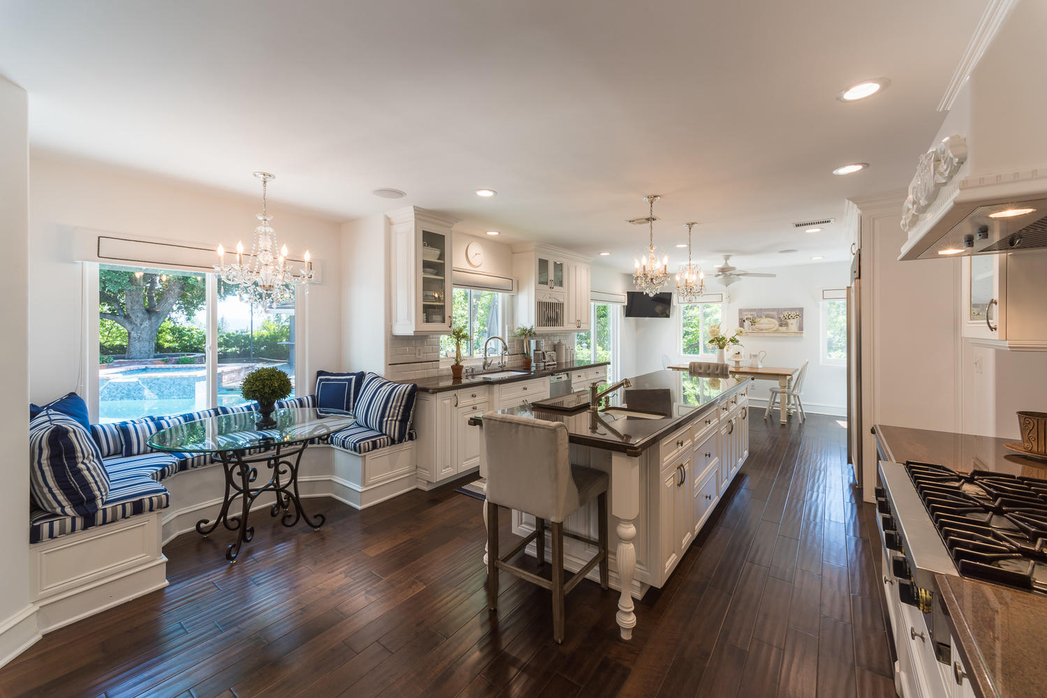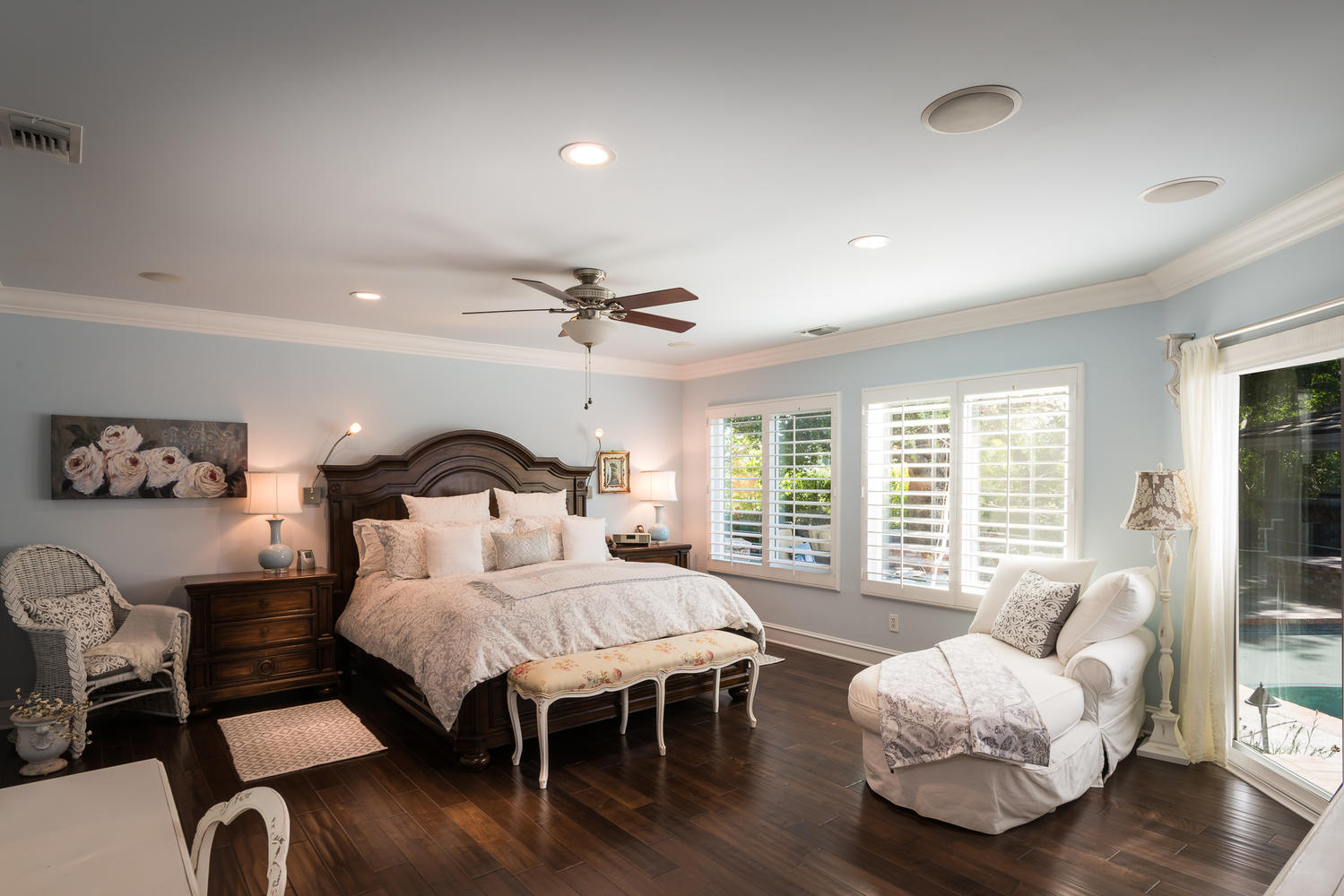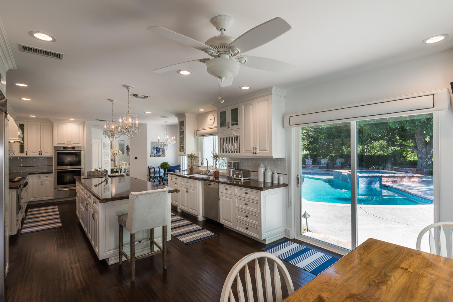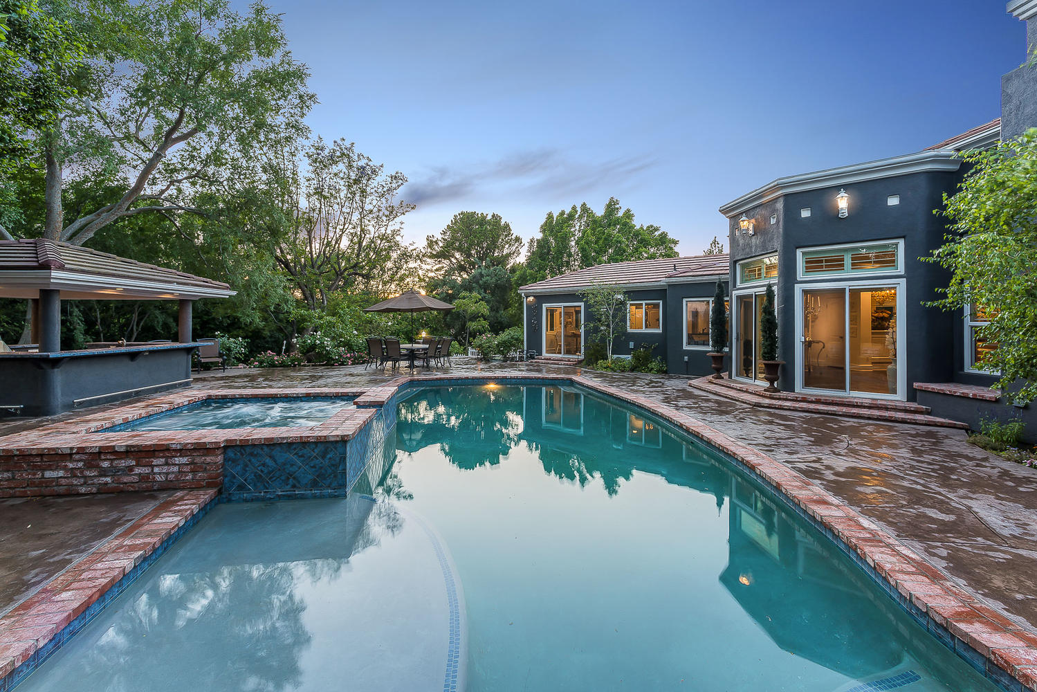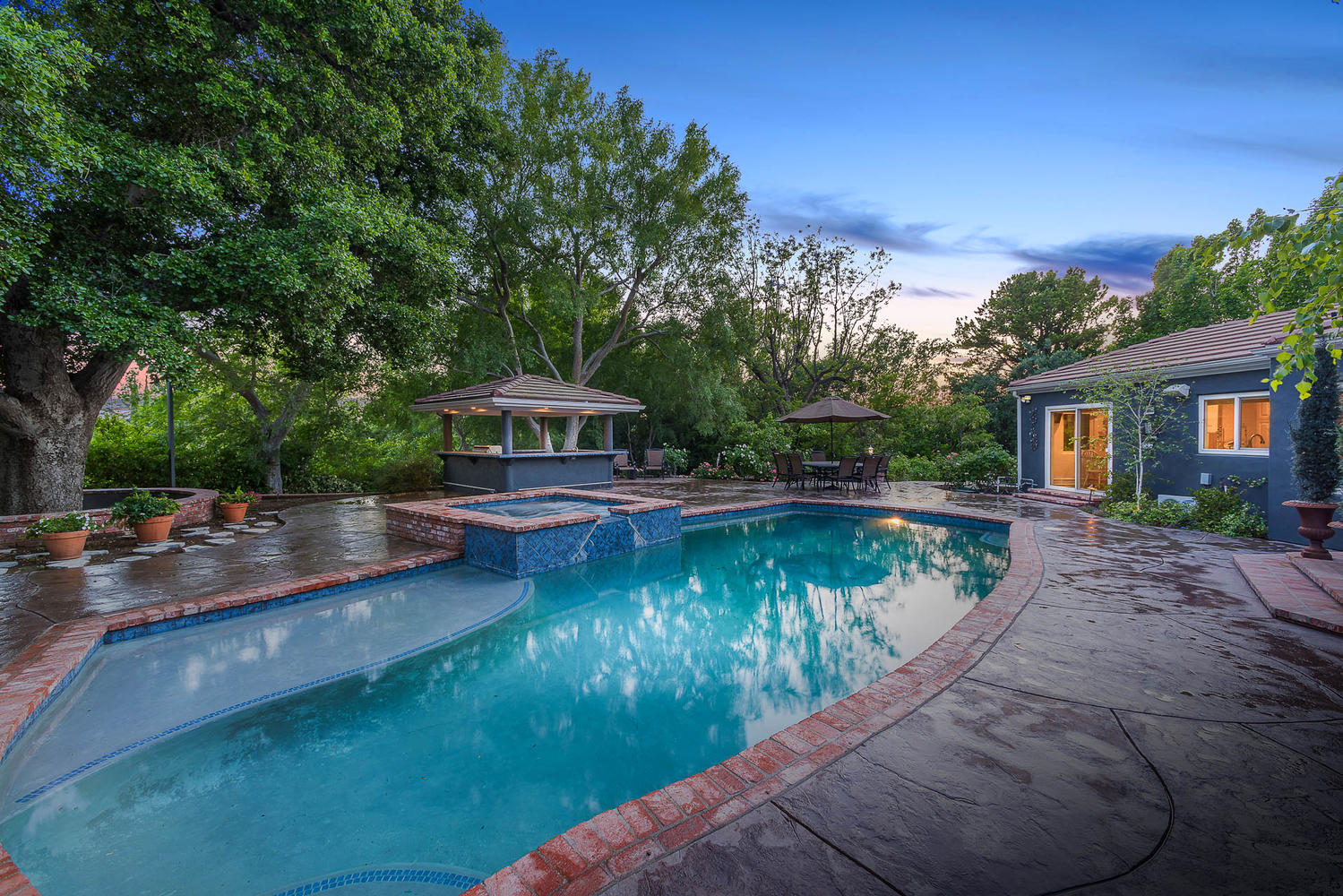 Perched high above it all with spectacular views, this secluded, formerly celebrity owned estate, is an architectural masterpiece. Situated on approximately a half acre private lot, this home is remodeled & updated to perfection. This one of a kind gem is approximately 4,500 sqft and features 4 beds, 4.5 baths, an expansive living room, a game/rec room, and a den. The gourmet chef’s kitchen has a large island, two sitting areas, pantry, Baroque glass tile backsplash, Kohler sinks & faucets, and Viking & Miele appliances such as a Subzero fridge, double oven, 6 burner stovetop, and built-in microwave.Enter the Master suite with enormous his/hers walk-in closets, and en-suite bathroom with dual sinks, a Hydro Sys 6’ tub, and separate glass enclosed shower. The home also boasts 2 fireplaces with custom built mantels, beautiful custom wainscoting, 7” crown molding & baseboards, distressed wood floors, Carrara & Calcatta Marble, Restoration Hardware fixtures, Nano full home sound system, plantation shutters, and offers a 2-car attached garage. Head down to the basement to experience the custom designed an air-conditioned wine cellar that holds up to 535 bottles. Exit to the spectacular, entertainer’s backyard to enjoy a sparkling pool with energy efficient equipment & spa, multiple sitting areas, large open bungalow, fire pit, DCS BBQ, and large play area. Conveniently located to the 118 fwy and moments from the shops of Porter Ranch, this is truly a remarkable home.