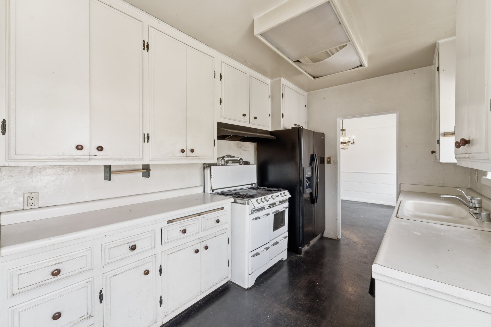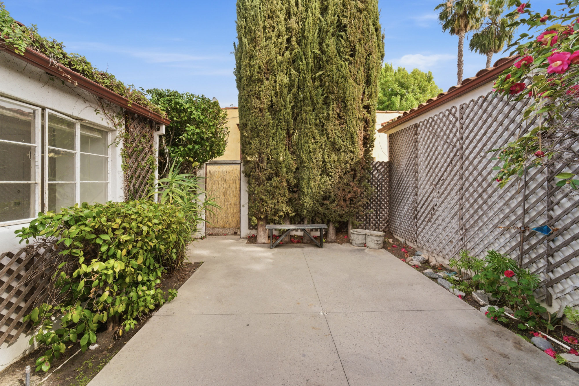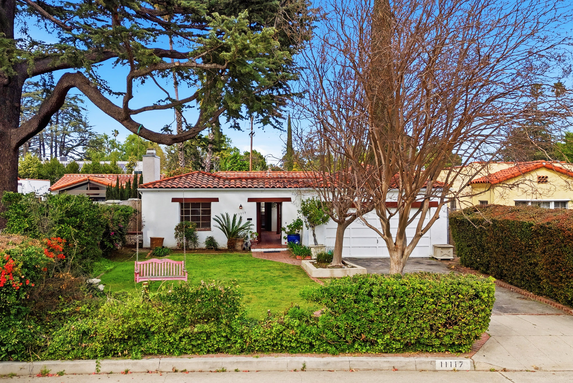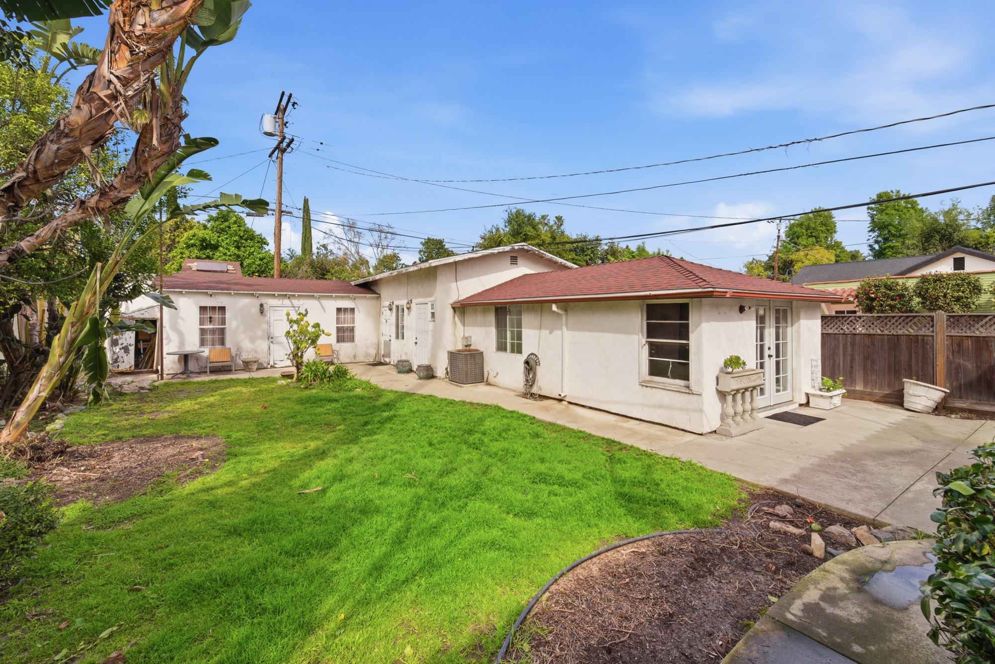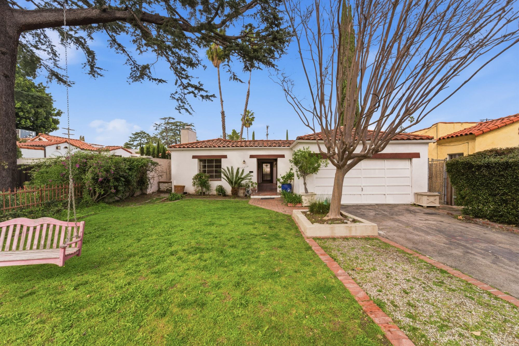 Nestled in the desirable, tree-lined enclave of West Toluca Lake, this enchanting Casita has Two Structures on a sprawling 8,252 Square Foot Lot and offers boundless potential for Restoration, Expansion, or Redevelopment. Its prime location provides unparalleled access to the vibrant NoHo Arts District, Warner Bros. , Universal, and Disney Studios, making it an ideal investment. A large front yard introduces you to the property, leading through an impressive wood door into a romantic Spanish courtyard that evokes the charm of a classic Spanish novela. The main, two-bedroom, residence boasts a spacious family room with vaulted ceilings, built-in shelving, and a cozy fireplace. The primary bedroom overlooks the lush backyard, featuring French doors, coved ceilings, and a generous en-suite bathroom with dual sinks. The second bedroom offers delightful views of the Spanish courtyard and includes a charming built-in desk. The dining room, conveniently located next to the kitchen, features traditional wainscoting and views of the backyard. The kitchen itself overlooks the expansive grounds, with an adjacent laundry room and additional three-quarter bathroom providing essential functionality. The substantial backyard is primed for customization, offering ample space for a pool, a pickleball court, or both! The property also features two distinct detached structures: the first functions as a guest quarters, complete with a bedroom, closet, well-sized kitchen, bathroom, and a sound studio; the second building is a large, versatile room featuring vaulted ceilings and a skylight. A nicely sized garage provides parking and storage. Whether your vision is a meticulous restoration, a significant remodel, or bold new construction, this property is a tremendous opportunity to cultivate lasting value in an absolutely wonderful location.