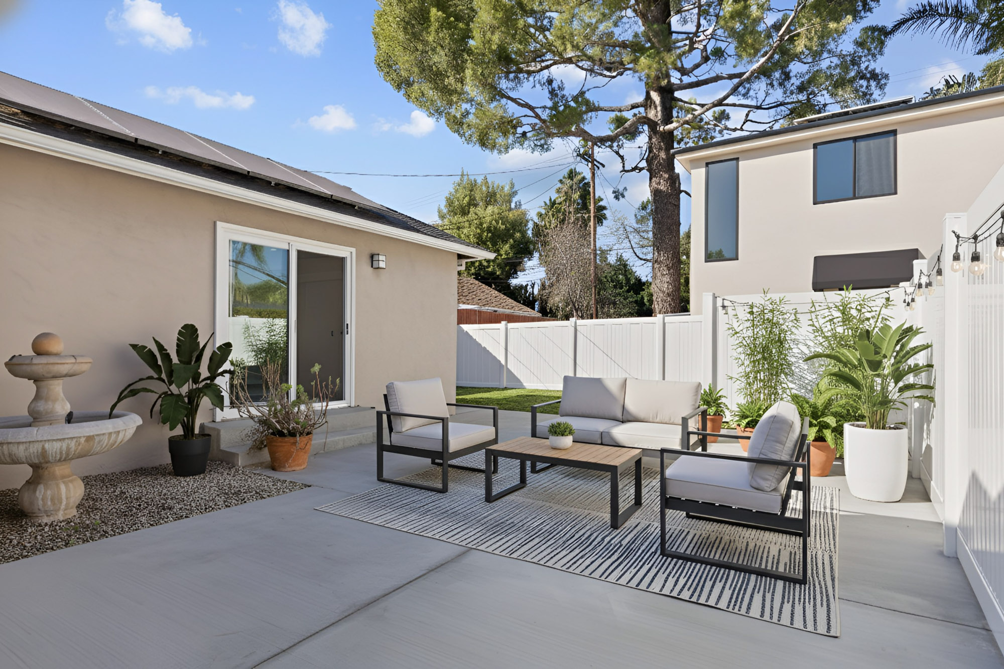 Welcome to this charming 3-bed, 2-bath Tudor home located in a sought-after pocket of West Toluca Lake. The main living area features a spacious living room with a cozy fireplace, remodeled kitchen equipped with stainless steel appliances, formal dining room and inviting sunroom that provides additional living space. Step outside to your private backyard, complete with a large patio and lush grassy yard. There are three generously sized bedrooms, each with ample closet space, including a well-appointed primary suite with an ensuite bathroom. Additional highlights include in-unit laundry, a security system with Ring doorbell, Nest thermostat, EV charger and plantation shutters throughout. Boasts an impressive 90/100 walk score, this property puts you moments away from the studios, NoHo Arts, and Tujunga Village, as well as popular restaurants in Toluca Lake on Riverside Drive. This home also offers easy access to both the Westside and the Valley. You'll also benefit from excellent local schools and easy freeway access. Water and gardener service is included in rent.