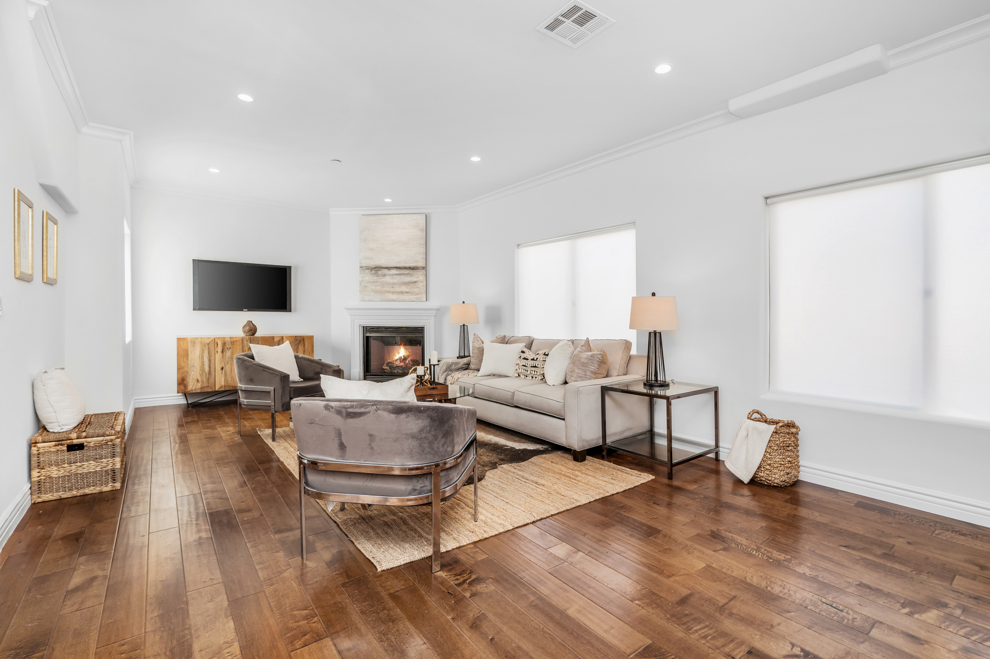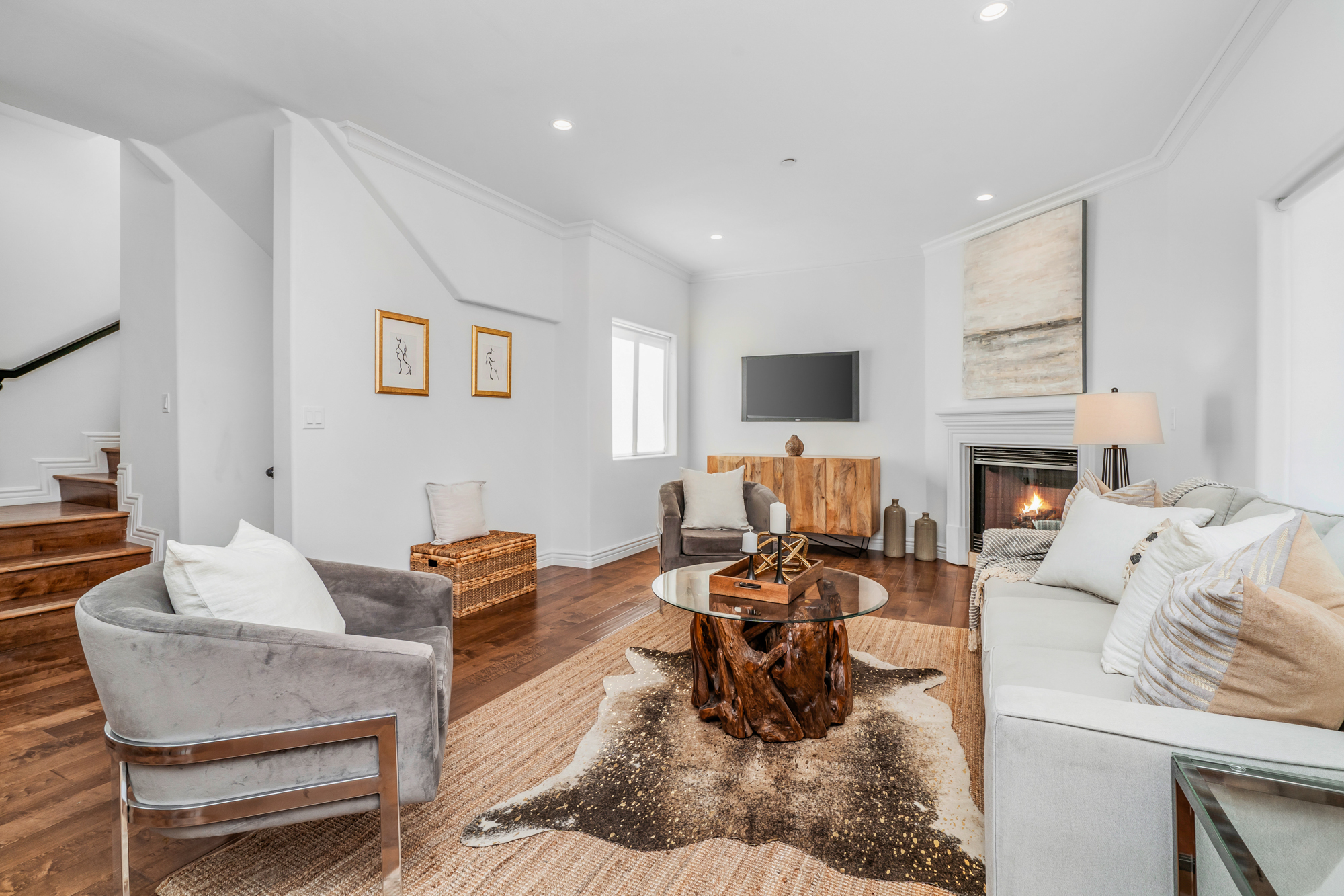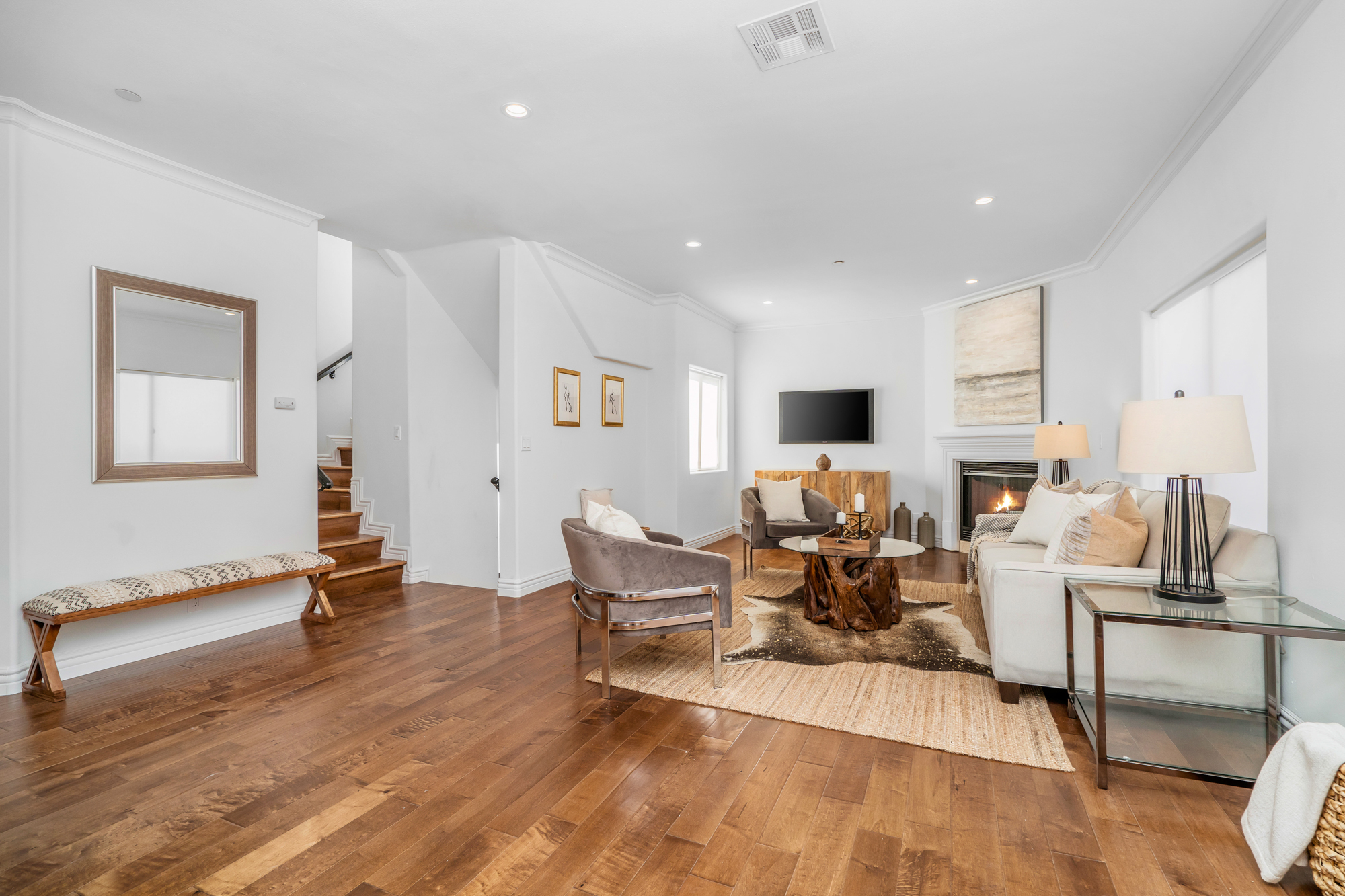 Located in the highly desirable NoHo Arts District is this beautifully updated 4 bed, 4 bath end unit townhome of over 2,200sft. Inside, the home’s charm is undeniable. New engineered hardwood floors grace the main level, while large windows flood the space with natural sunlight. The spacious living room features a beautiful fireplace and flows into both the kitchen and dining rooms, creating an ideal floorplan for entertaining, while each room remains distinct through arched doorways. The newly remodeled kitchen has quartz countertops, new appliances, lots of cabinetry, and opens to the large dining area. The 3 generously sized secondary bedrooms have plentiful closet space and share 2 updated baths. For ultimate privacy, the master retreat spans the entire top level of the home and opens to the rooftop deck which affords sweeping views of the Santa Monica Mountains and is the perfect place to unwind watching the sunset after a long day or start your morning. The master bath has quartz countertops, dual sinks, jacuzzi tub, and glass enclosed shower. Additional features include a bonus room ideal for home gym or office, attached 2 car garage, recessed lighting throughout, and more. Conveniently located to the Metro, Universal City, and the many bustling cafes, restaurants, and shops of the NoHo Arts District.