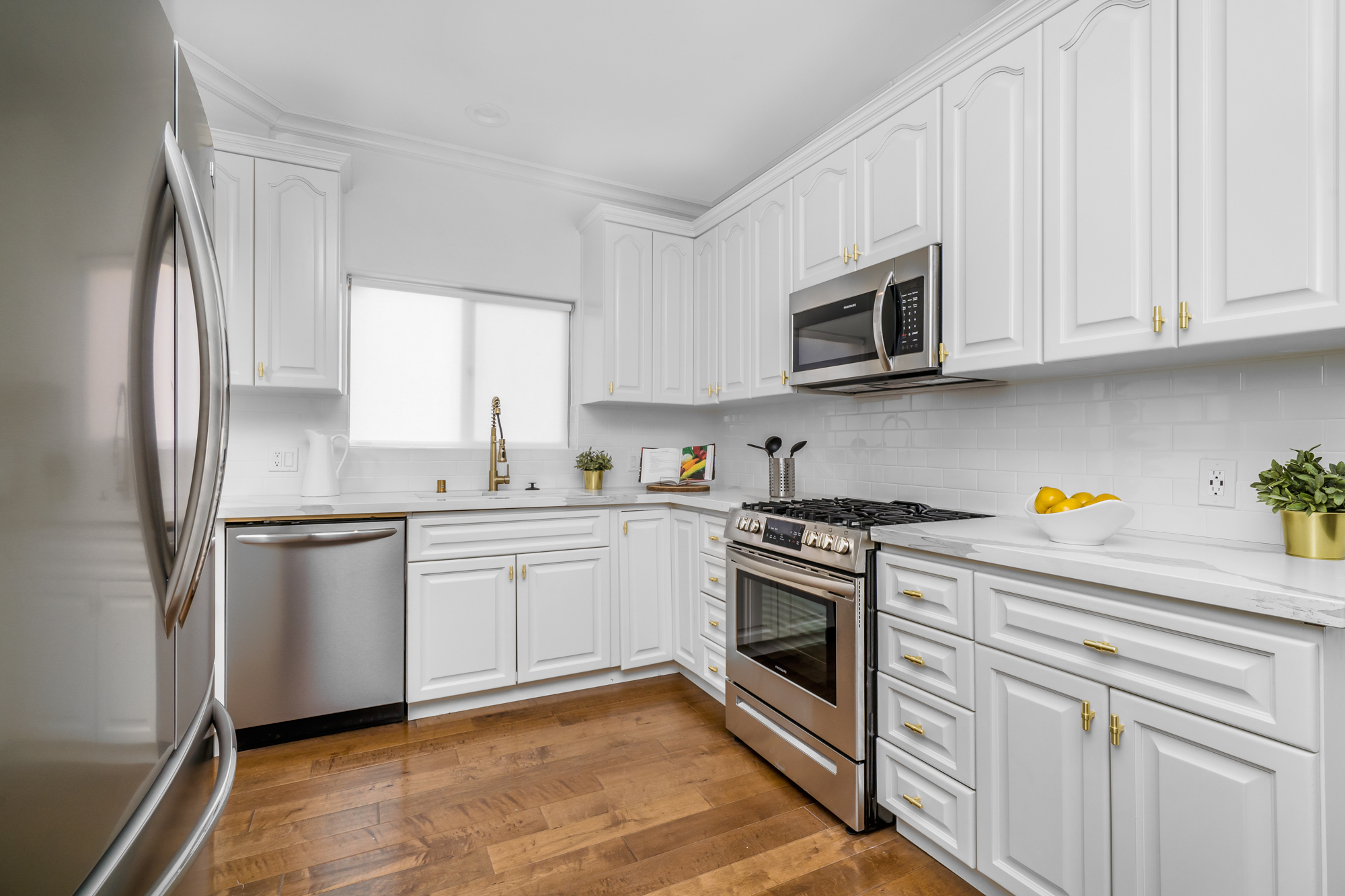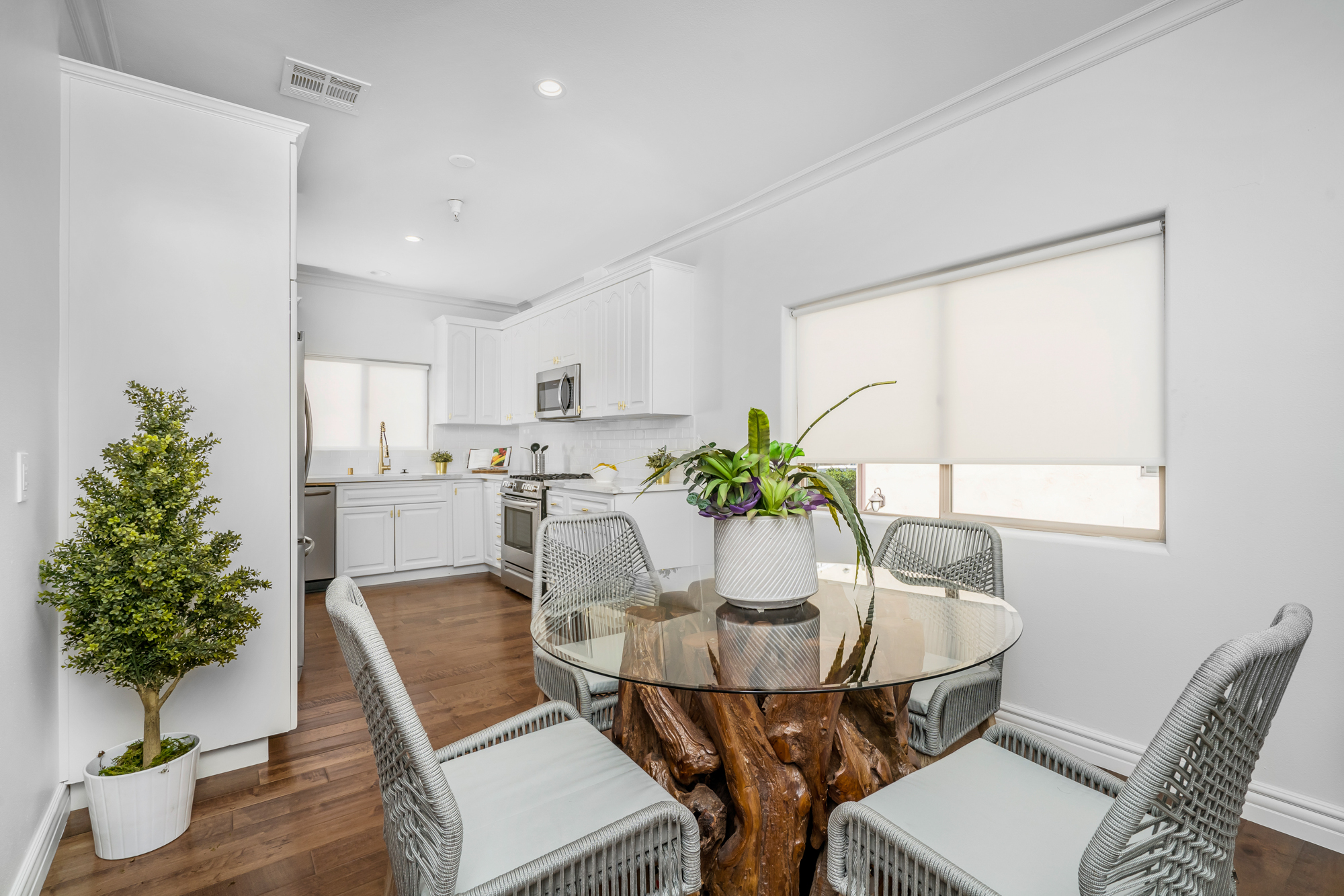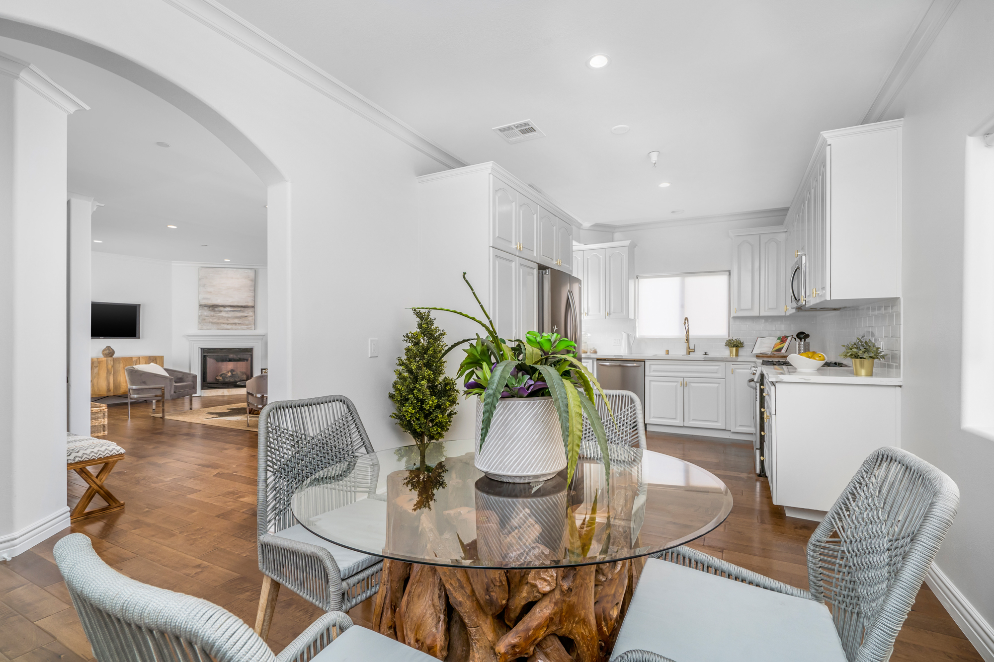 Located in the highly desirable NoHo Arts District is this beautifully updated 4 bed, 4 bath end unit townhome of over 2,200sft. Inside, the home’s charm is undeniable. New engineered hardwood floors grace the main level, while large windows flood the space with natural sunlight. The spacious living room features a beautiful fireplace and flows into both the kitchen and dining rooms, creating an ideal floorplan for entertaining, while each room remains distinct through arched doorways. The newly remodeled kitchen has quartz countertops, new appliances, lots of cabinetry, and opens to the large dining area. The 3 generously sized secondary bedrooms have plentiful closet space and share 2 updated baths. For ultimate privacy, the master retreat spans the entire top level of the home and opens to the rooftop deck which affords sweeping views of the Santa Monica Mountains and is the perfect place to unwind watching the sunset after a long day or start your morning. The master bath has quartz countertops, dual sinks, jacuzzi tub, and glass enclosed shower. Additional features include a bonus room ideal for home gym or office, attached 2 car garage, recessed lighting throughout, and more. Conveniently located to the Metro, Universal City, and the many bustling cafes, restaurants, and shops of the NoHo Arts District.