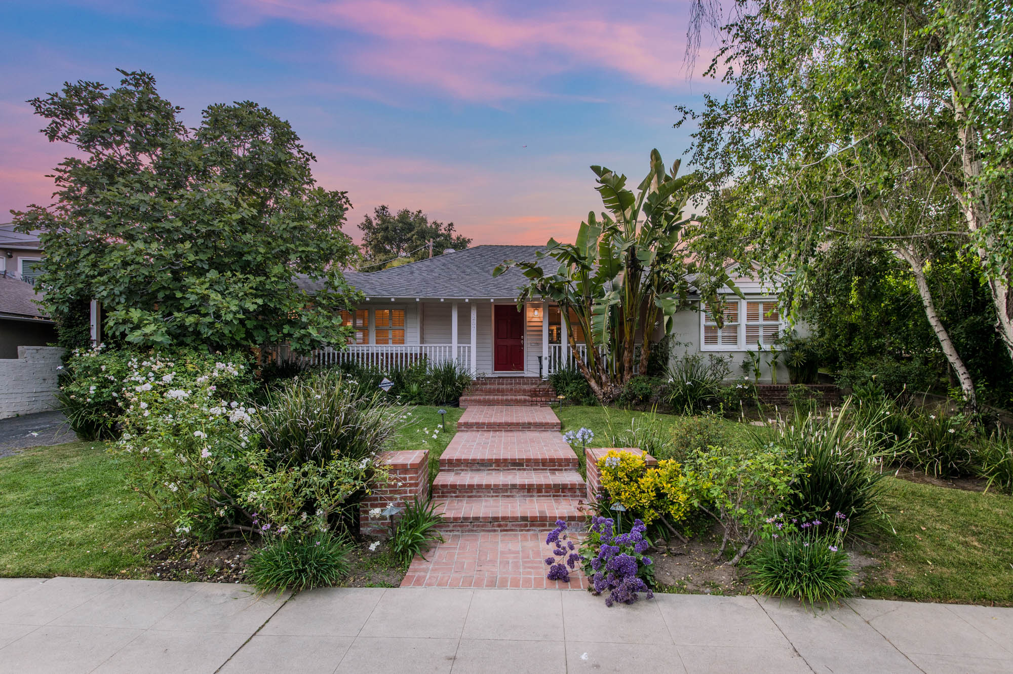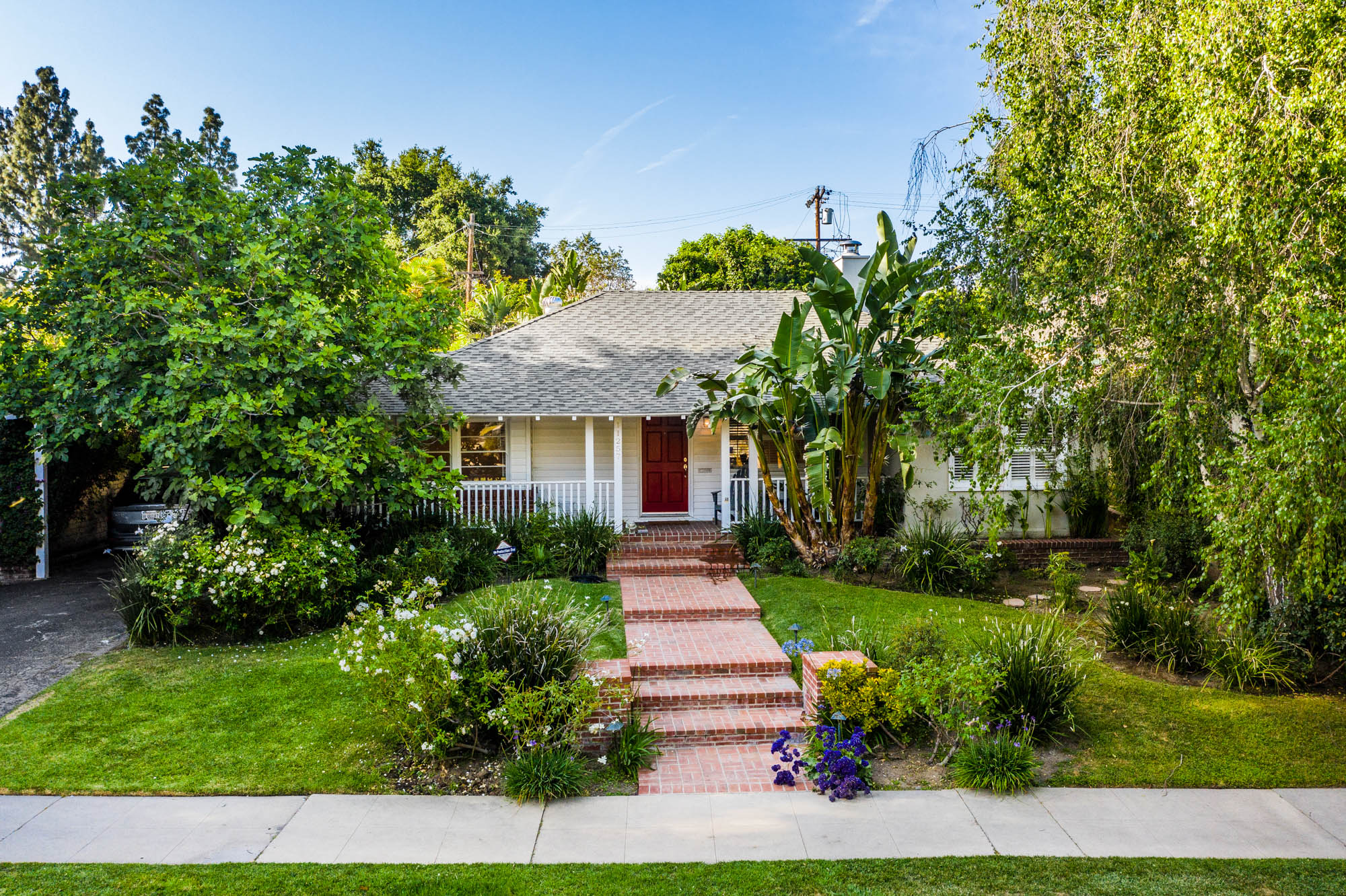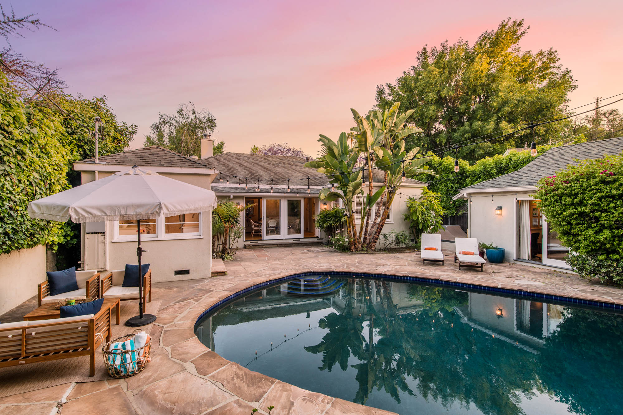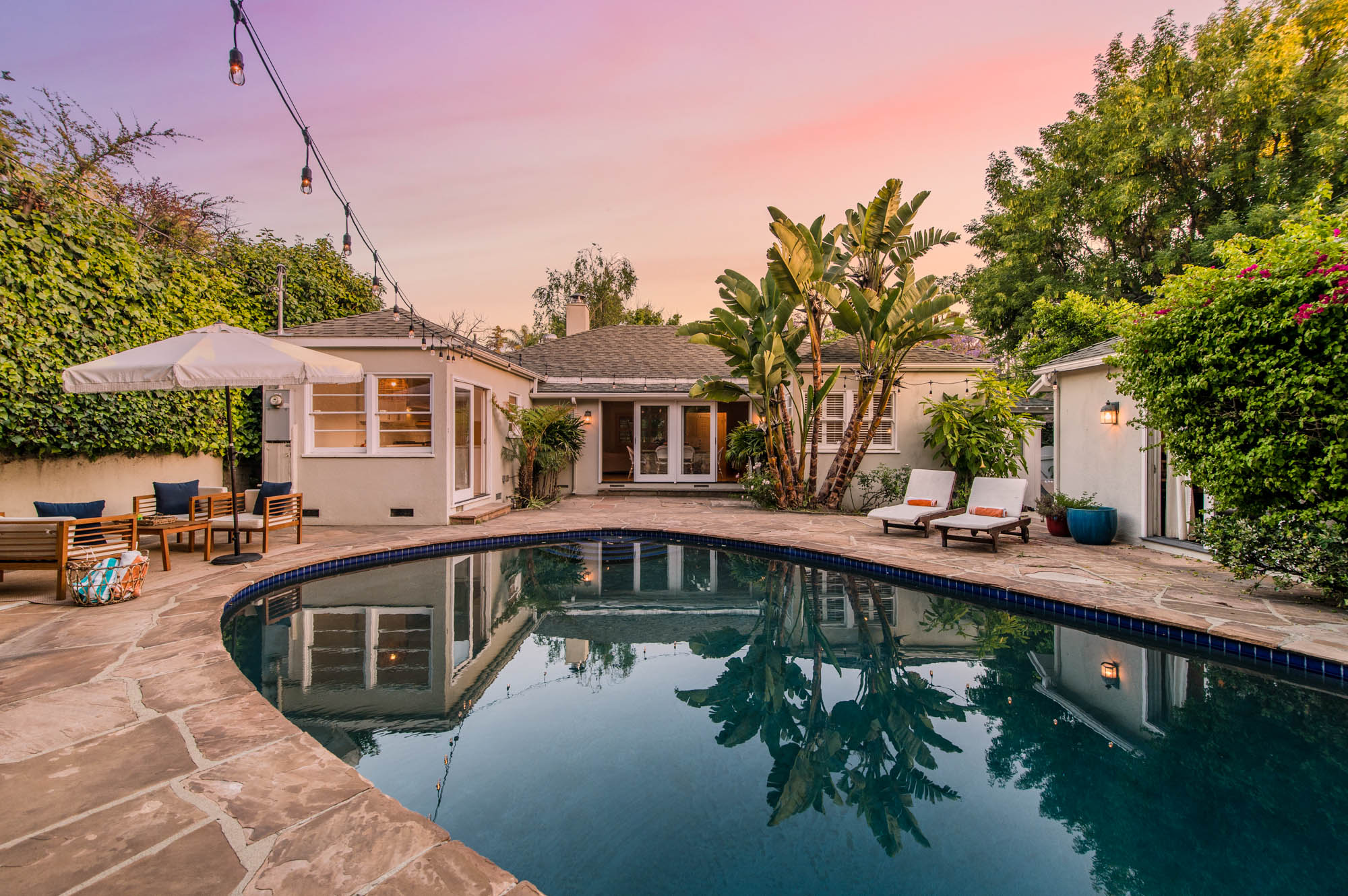 Nestled on a peaceful tree-lined street in the highly desired Tujunga Village area of Studio City, sits this beautifully updated single level home. A charming brick walkway leads you past the well manicured lawn and up to the spacious front porch. Inside, the home is light and bright with an abundance of windows showcasing stunning natural light, wood floors, and recessed lighting. The bright and cozy living room seamlessly flows into the dining area where gorgeous bi-fold doors lead out to the backyard oasis. The newly remodeled kitchen features gleaming high end appliances, a custom designer backsplash, ample cabinetry, and a breakfast nook with built in seating and additional storage. The master suite offers pitched ceilings, two closets, and a luxurious bathroom with dual sink vanity and glass enclosed shower. The two additional bedrooms are well appointed and one has a bay window with bench and large nook perfect for a seating area or workspace. The backyard gives off resort vibes with mature palm trees surrounding, offering ultimate privacy. The beautiful hardscape envelops the sparkling pool, and provides plenty of lounge space. As a bonus, the converted garage with ¾ bath makes an ideal office, guest house, or media room. Blocks away from the shops, restaurants, and cafes of the Tujunga Village and ideally situated for access to Hollywood and the Westside, this home is a treasure.