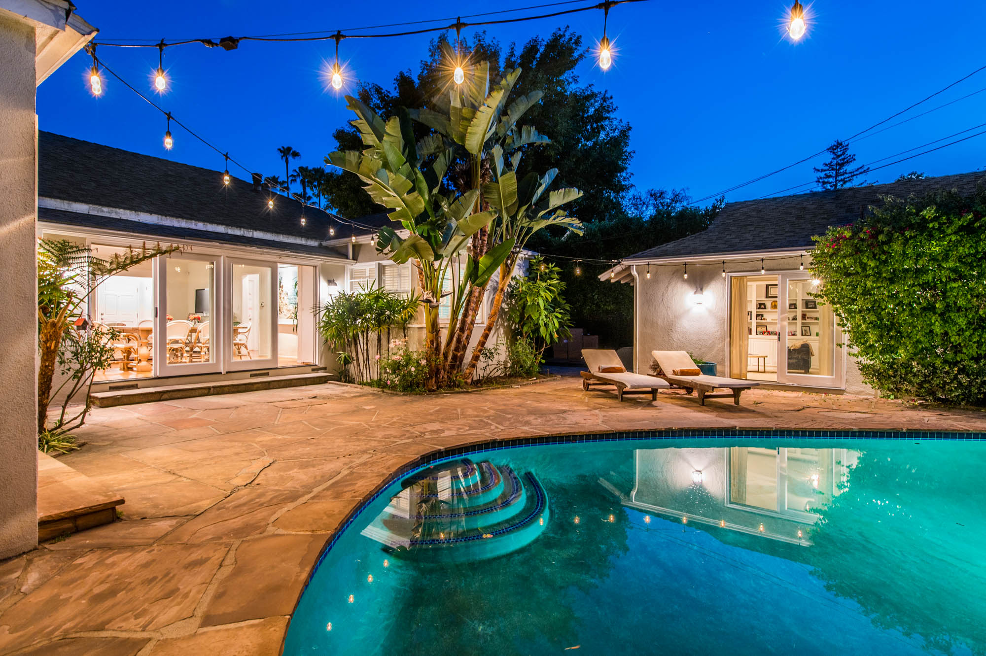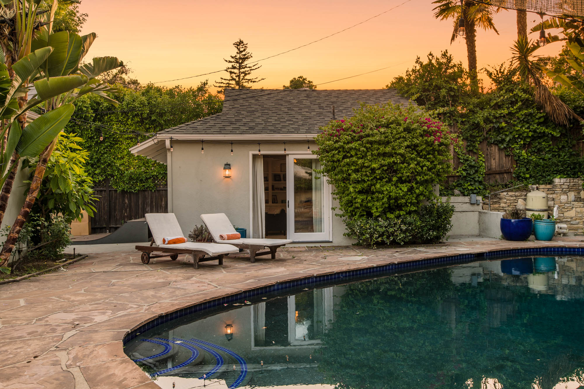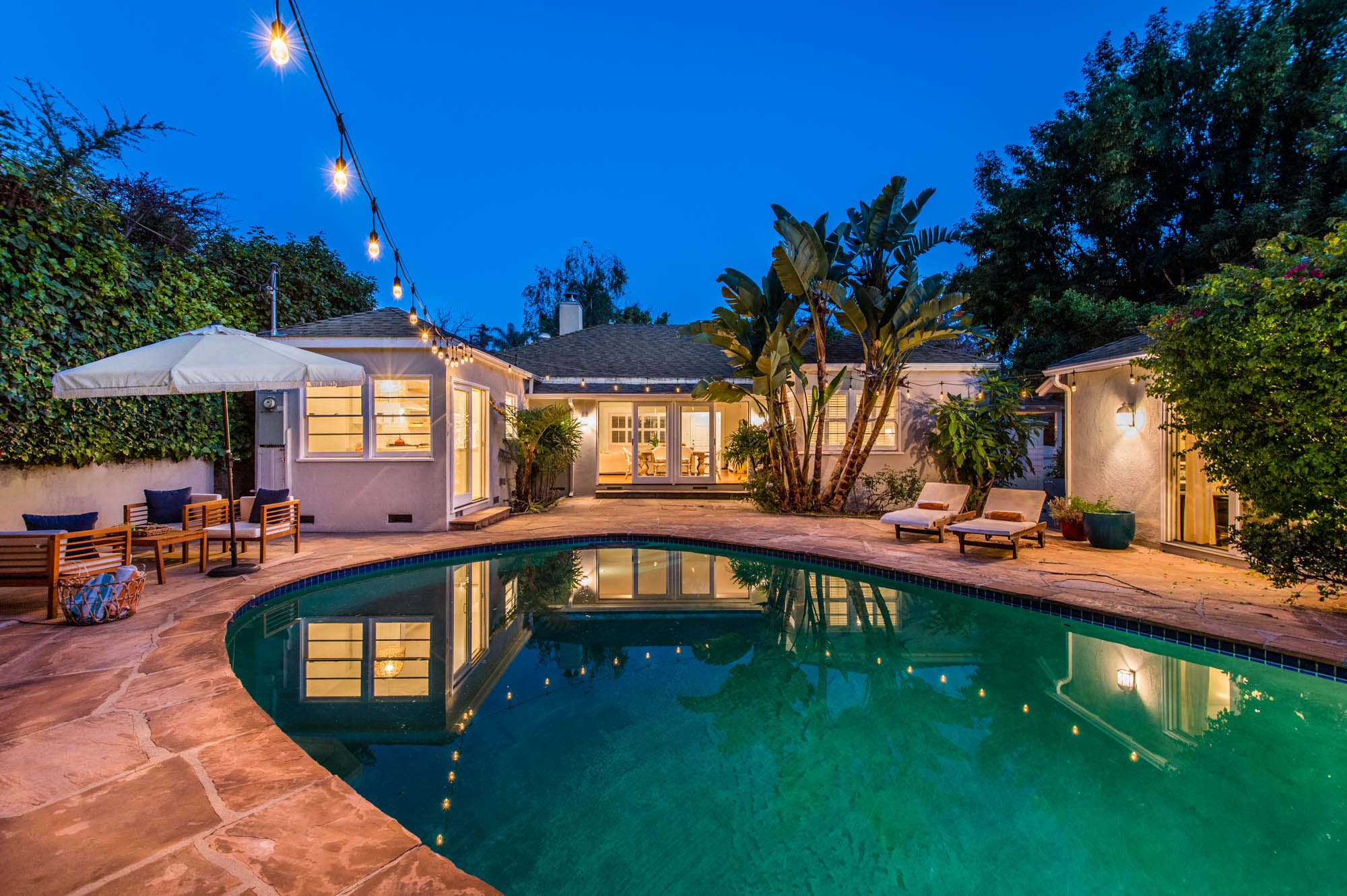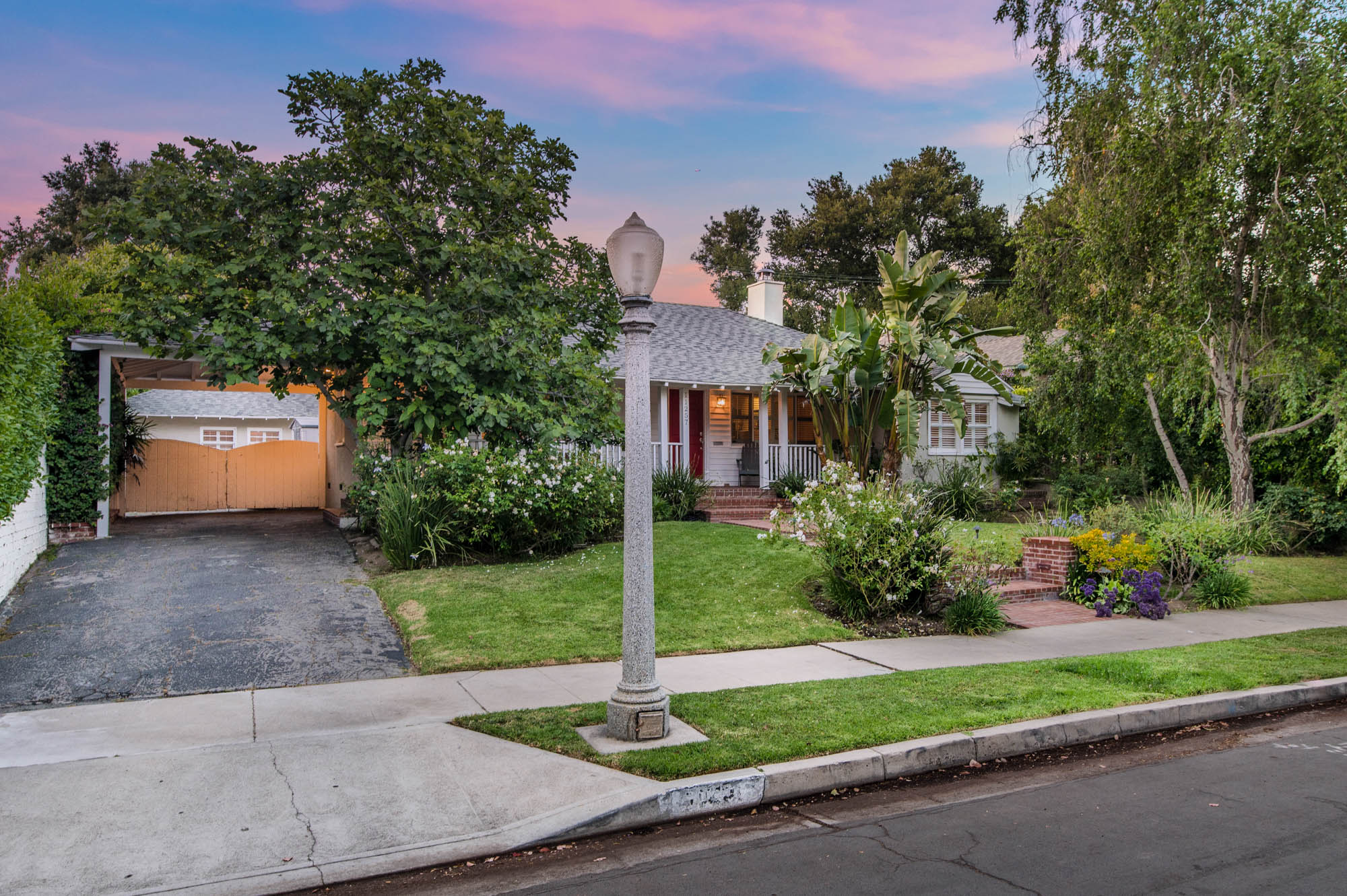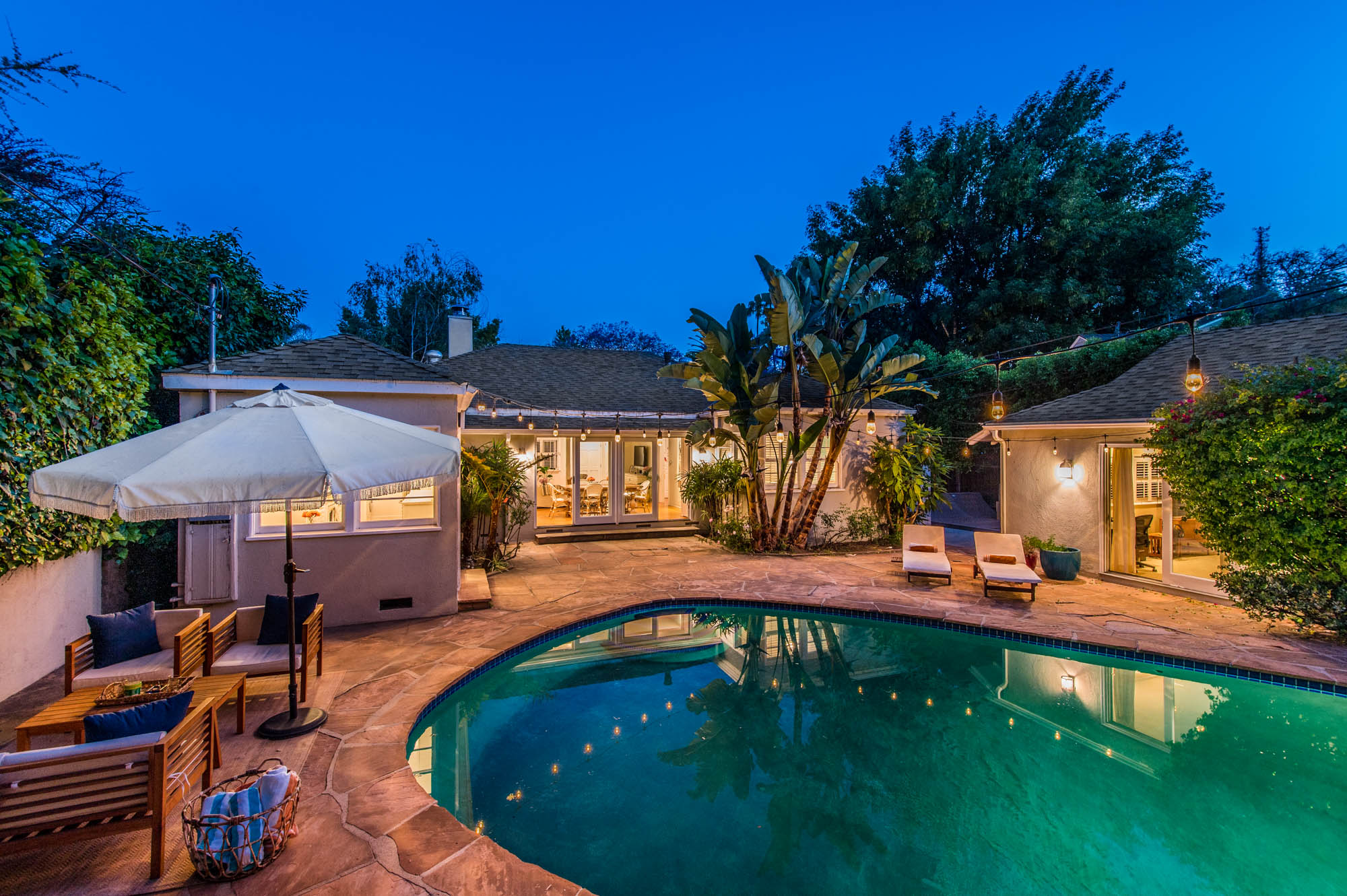 Nestled on a peaceful tree-lined street in the highly desired Tujunga Village area of Studio City, sits this beautifully updated single level home. A charming brick walkway leads you past the well manicured lawn and up to the spacious front porch. Inside, the home is light and bright with an abundance of windows showcasing stunning natural light, wood floors, and recessed lighting. The bright and cozy living room seamlessly flows into the dining area where gorgeous bi-fold doors lead out to the backyard oasis. The newly remodeled kitchen features gleaming high end appliances, a custom designer backsplash, ample cabinetry, and a breakfast nook with built in seating and additional storage. The master suite offers pitched ceilings, two closets, and a luxurious bathroom with dual sink vanity and glass enclosed shower. The two additional bedrooms are well appointed and one has a bay window with bench and large nook perfect for a seating area or workspace. The backyard gives off resort vibes with mature palm trees surrounding, offering ultimate privacy. The beautiful hardscape envelops the sparkling pool, and provides plenty of lounge space. As a bonus, the converted garage with ¾ bath makes an ideal office, guest house, or media room. Blocks away from the shops, restaurants, and cafes of the Tujunga Village and ideally situated for access to Hollywood and the Westside, this home is a treasure.