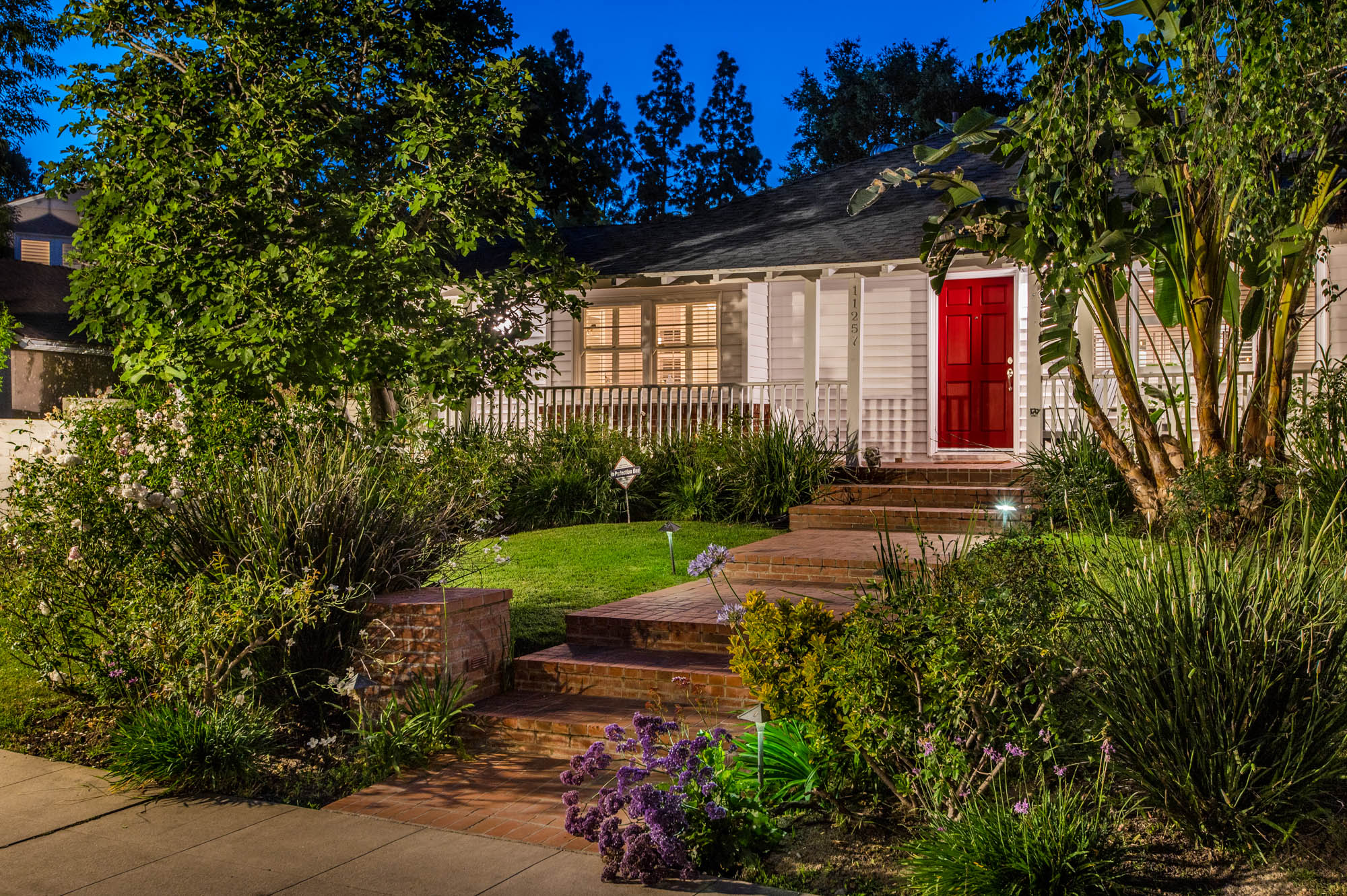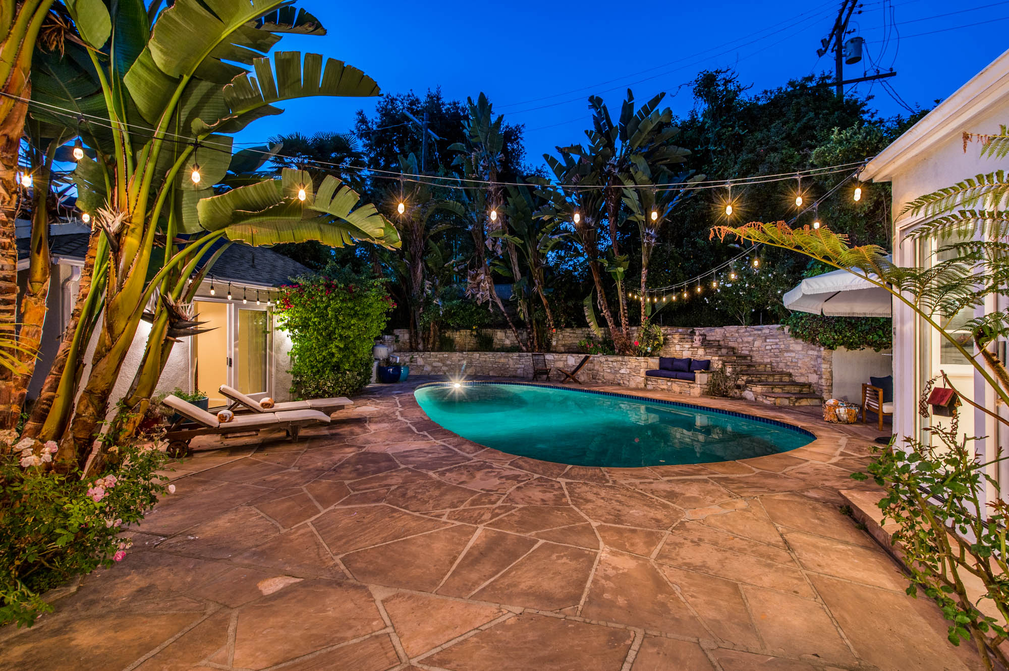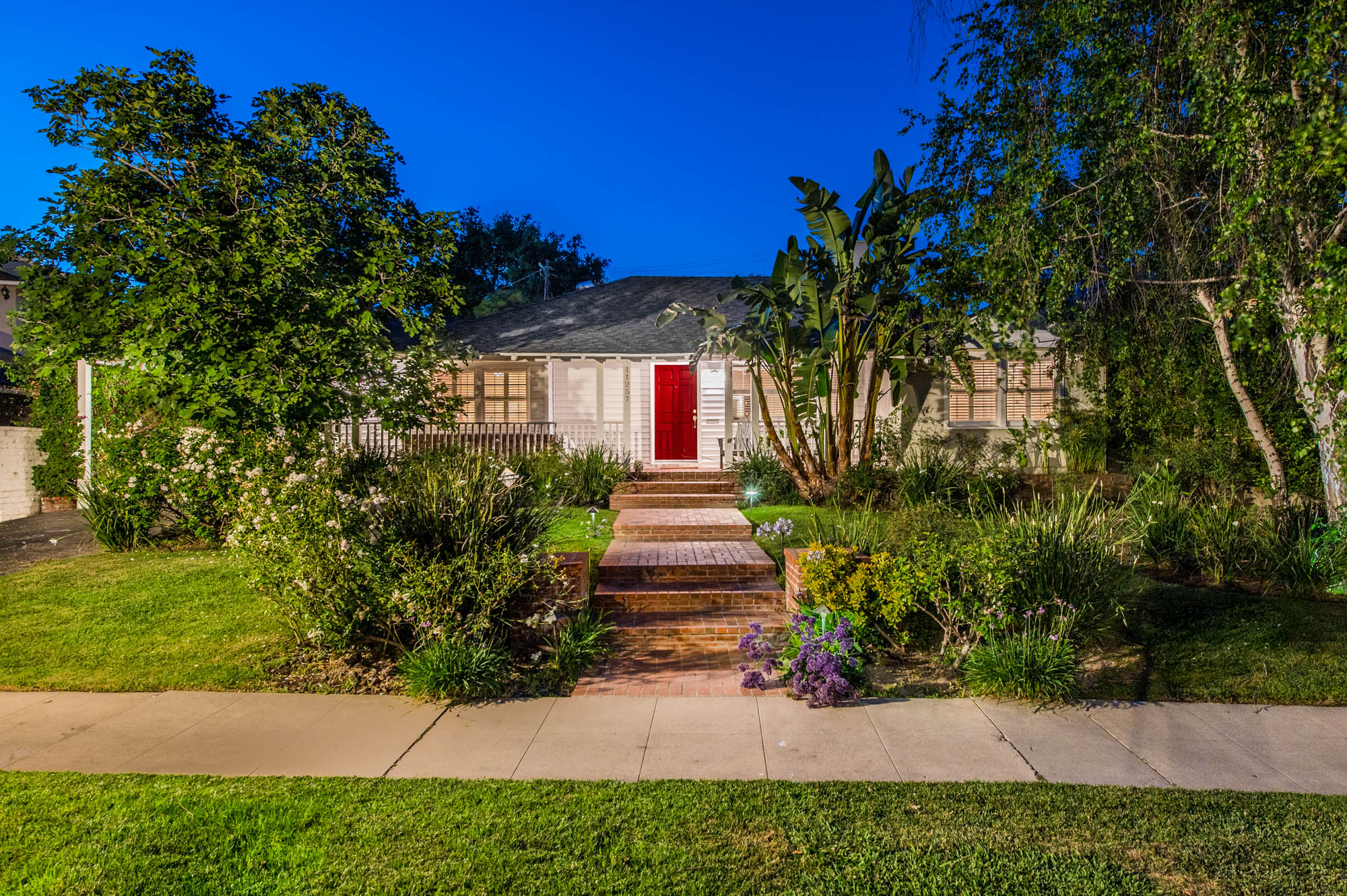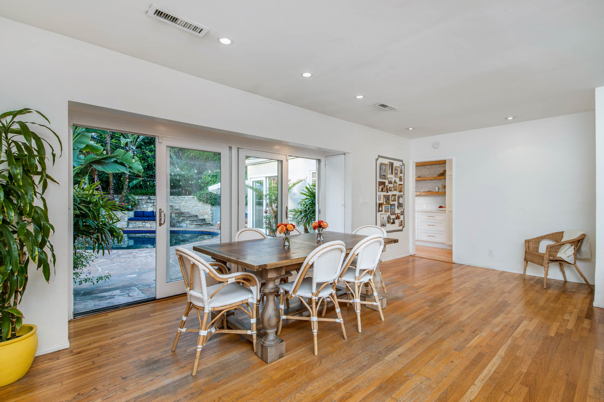 Nestled on a peaceful tree-lined street in the highly desired Tujunga Village area of Studio City, sits this beautifully updated single level home. A charming brick walkway leads you past the well manicured lawn and up to the spacious front porch. Inside, the home is light and bright with an abundance of windows showcasing stunning natural light, wood floors, and recessed lighting. The bright and cozy living room seamlessly flows into the dining area where gorgeous bi-fold doors lead out to the backyard oasis. The newly remodeled kitchen features gleaming high end appliances, a custom designer backsplash, ample cabinetry, and a breakfast nook with built in seating and additional storage. The master suite offers pitched ceilings, two closets, and a luxurious bathroom with dual sink vanity and glass enclosed shower. The two additional bedrooms are well appointed and one has a bay window with bench and large nook perfect for a seating area or workspace. The backyard gives off resort vibes with mature palm trees surrounding, offering ultimate privacy. The beautiful hardscape envelops the sparkling pool, and provides plenty of lounge space. As a bonus, the converted garage with ¾ bath makes an ideal office, guest house, or media room. Blocks away from the shops, restaurants, and cafes of the Tujunga Village and ideally situated for access to Hollywood and the Westside, this home is a treasure.
