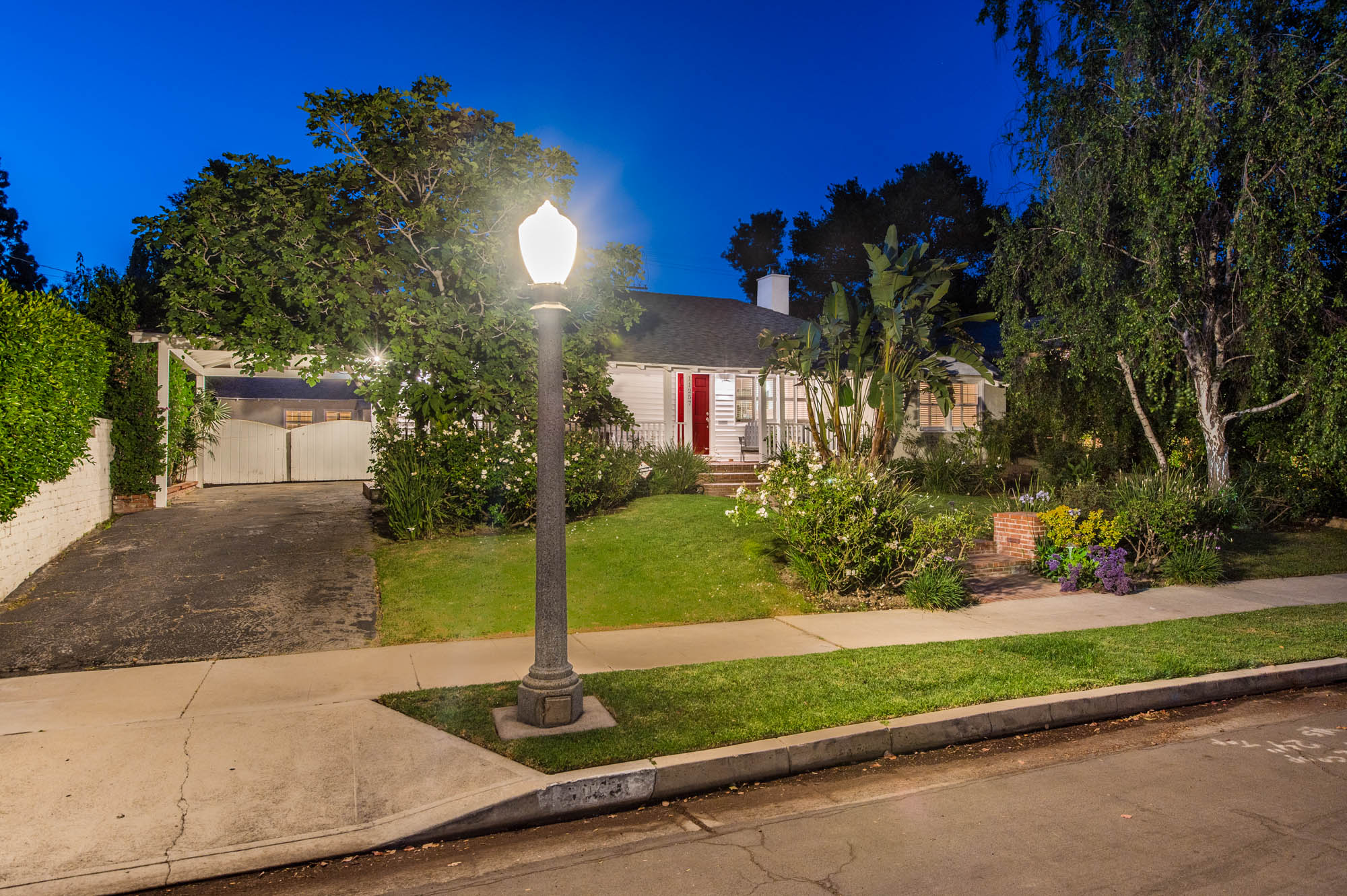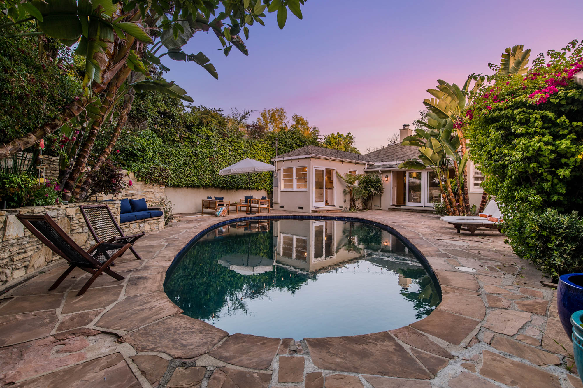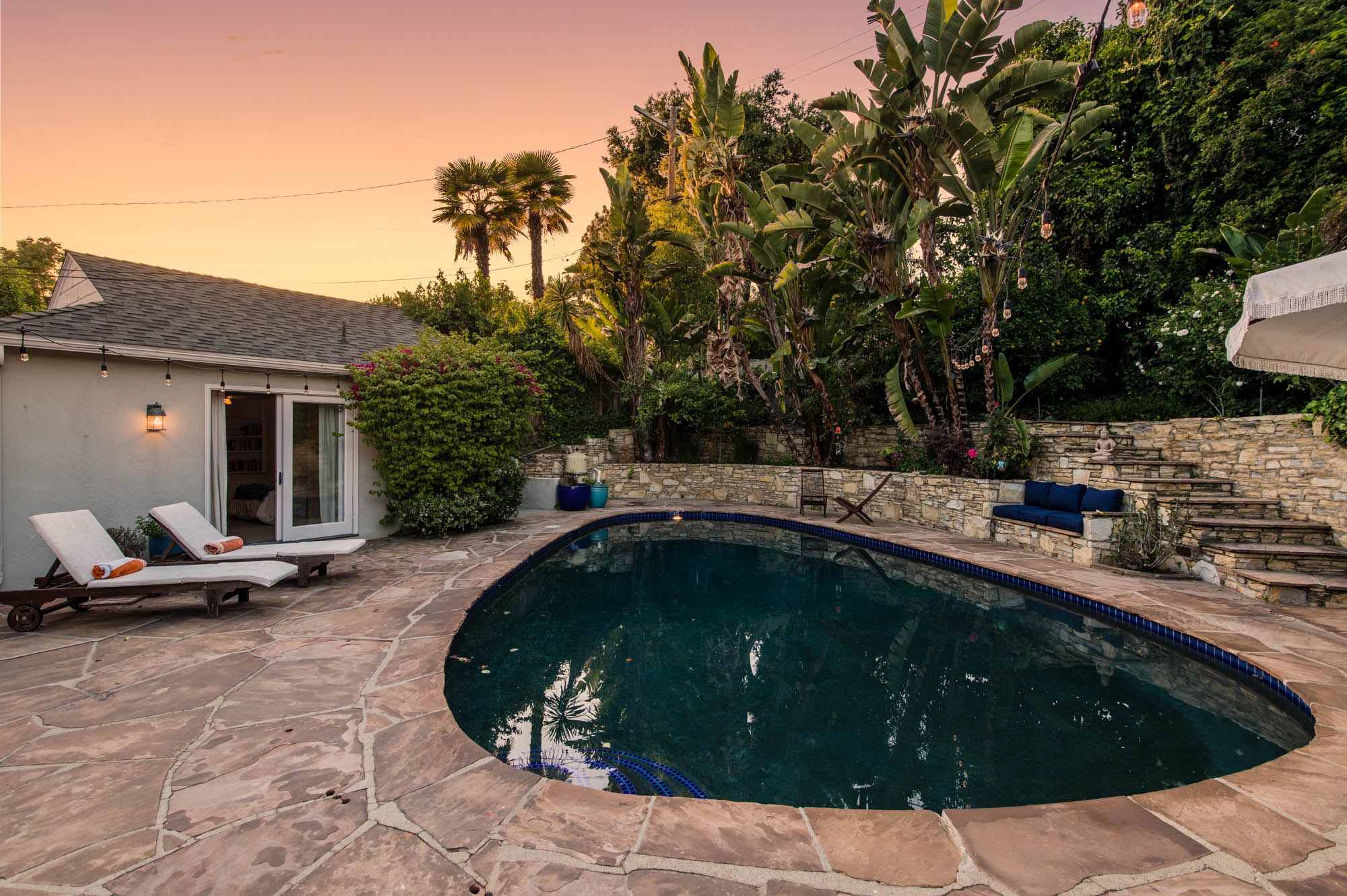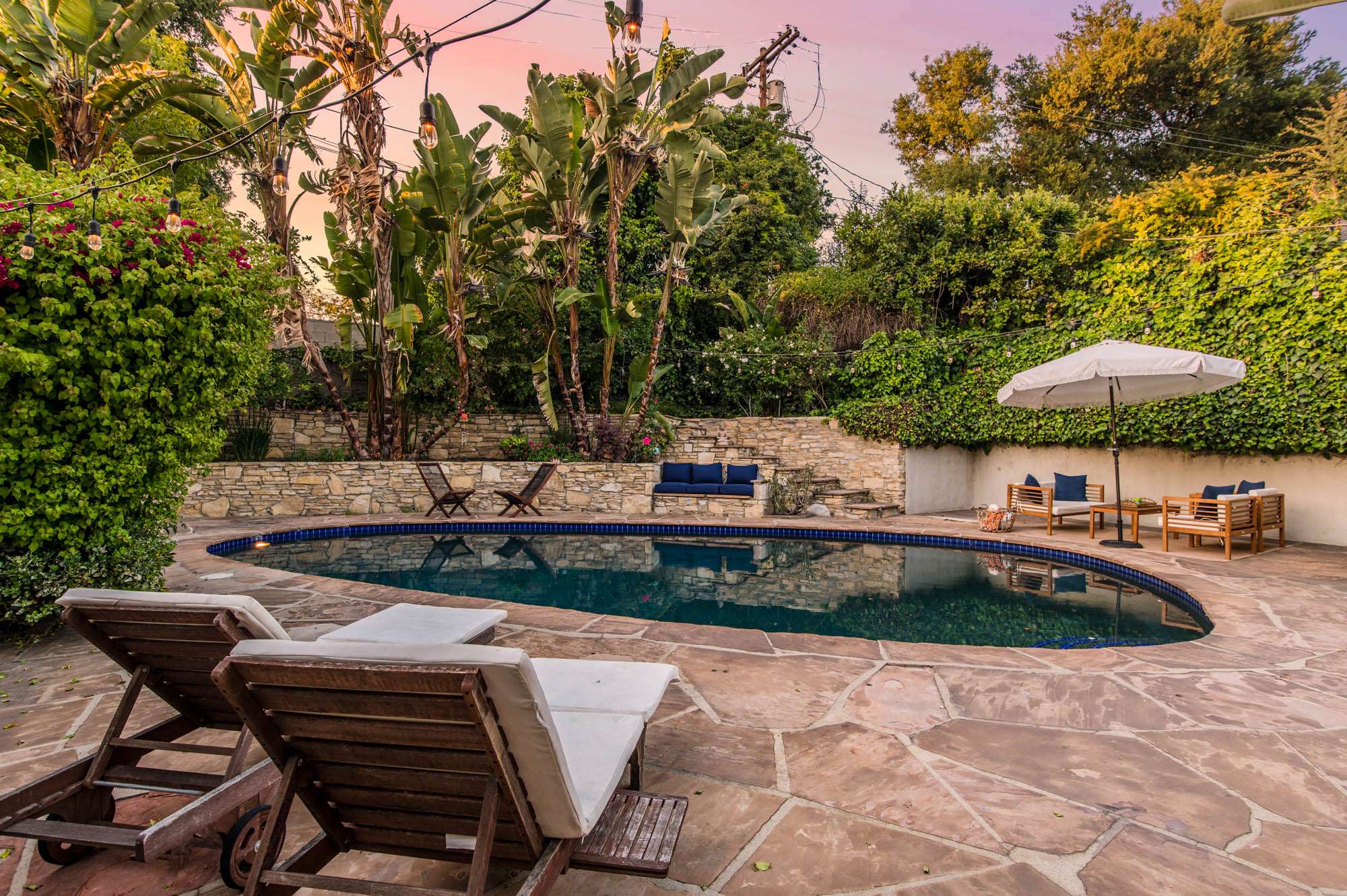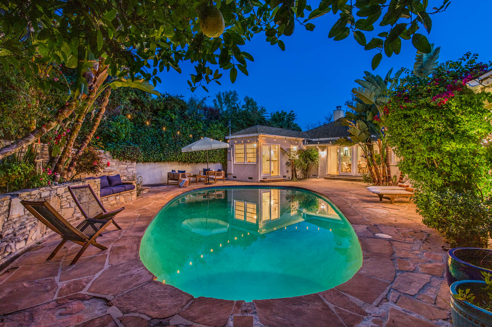 Nestled on a peaceful tree-lined street in the highly desired Tujunga Village area of Studio City, sits this beautifully updated single level home. A charming brick walkway leads you past the well manicured lawn and up to the spacious front porch. Inside, the home is light and bright with an abundance of windows showcasing stunning natural light, wood floors, and recessed lighting. The bright and cozy living room seamlessly flows into the dining area where gorgeous bi-fold doors lead out to the backyard oasis. The newly remodeled kitchen features gleaming high end appliances, a custom designer backsplash, ample cabinetry, and a breakfast nook with built in seating and additional storage. The master suite offers pitched ceilings, two closets, and a luxurious bathroom with dual sink vanity and glass enclosed shower. The two additional bedrooms are well appointed and one has a bay window with bench and large nook perfect for a seating area or workspace. The backyard gives off resort vibes with mature palm trees surrounding, offering ultimate privacy. The beautiful hardscape envelops the sparkling pool, and provides plenty of lounge space. As a bonus, the converted garage with ¾ bath makes an ideal office, guest house, or media room. Blocks away from the shops, restaurants, and cafes of the Tujunga Village and ideally situated for access to Hollywood and the Westside, this home is a treasure.