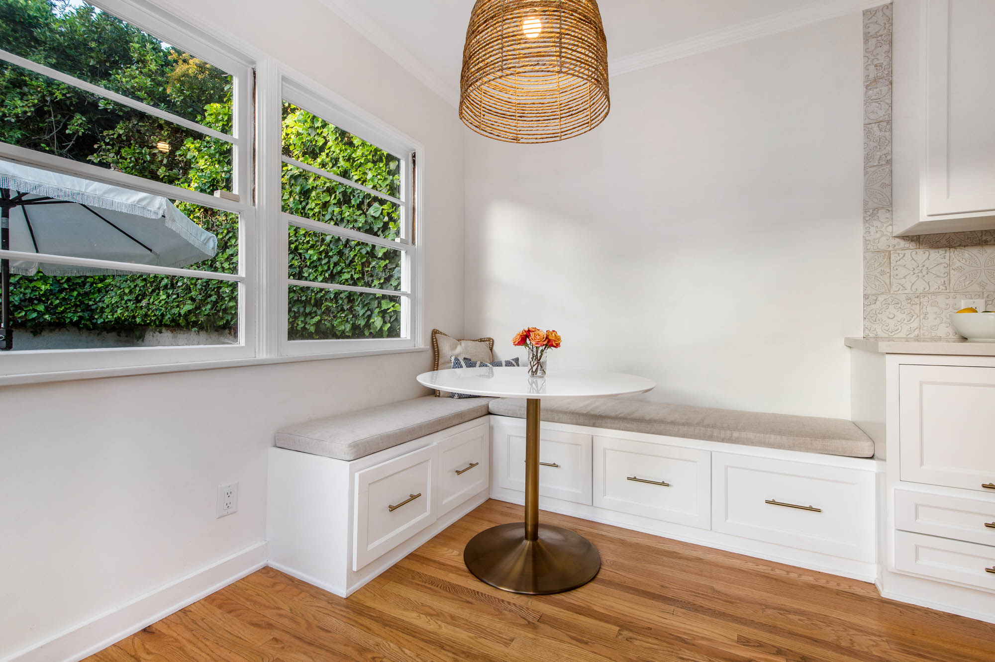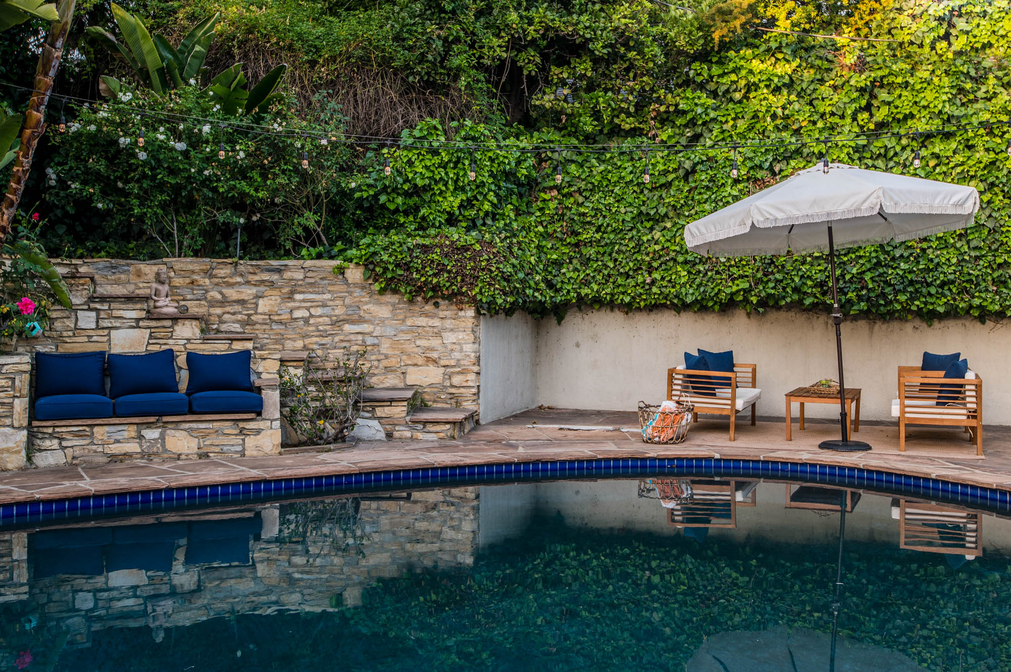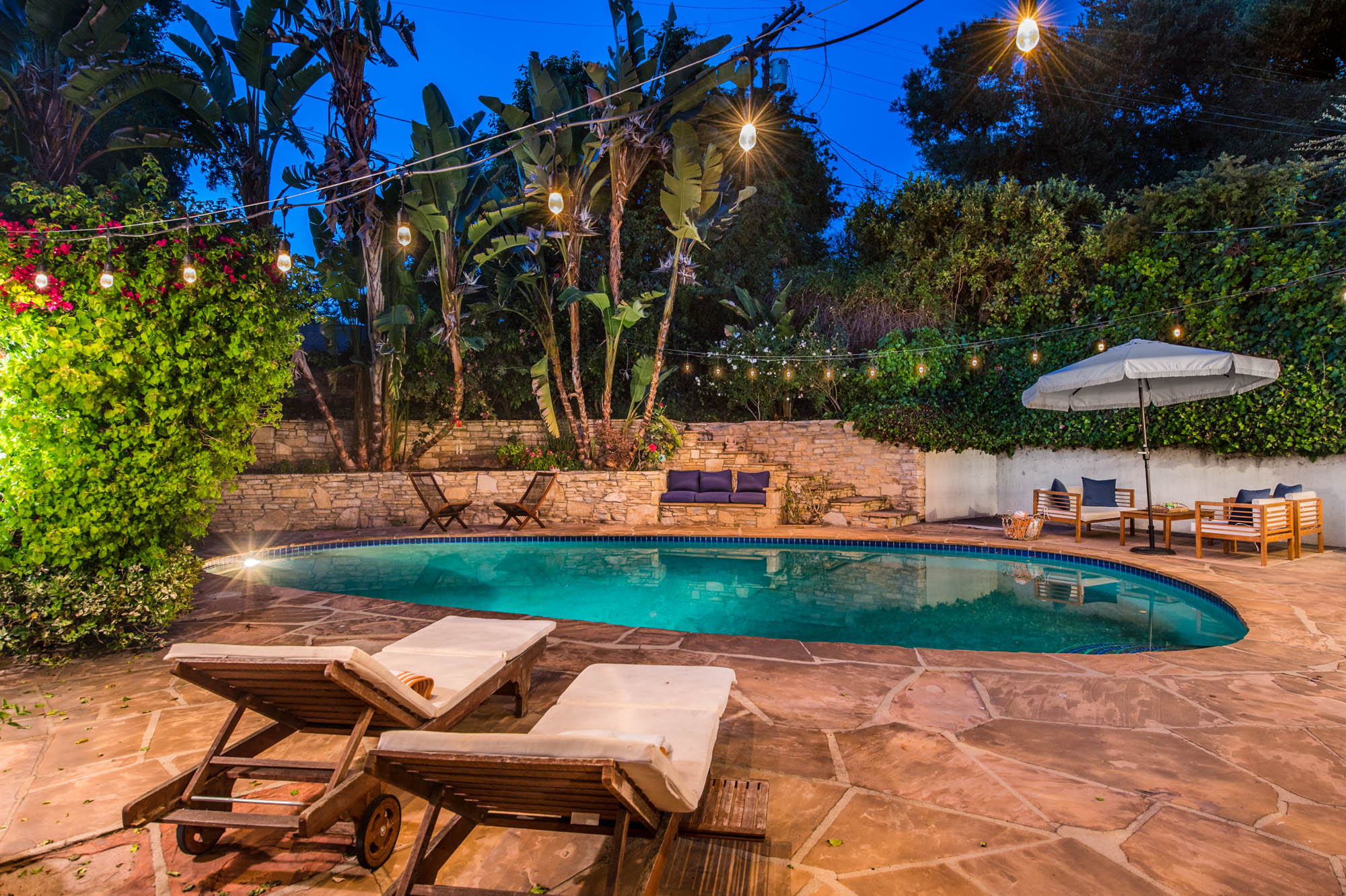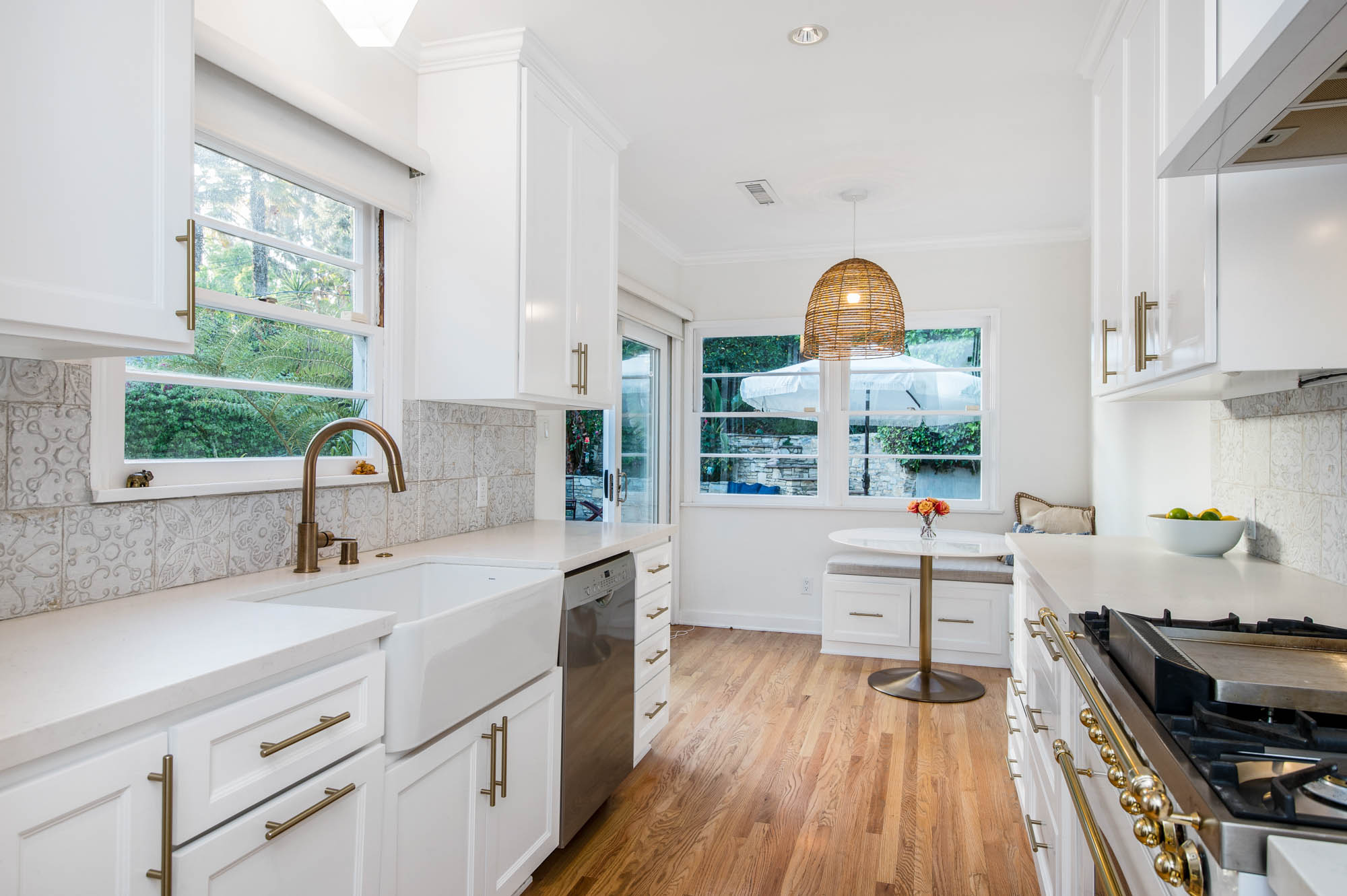 Nestled on a peaceful tree-lined street in the highly desired Tujunga Village area of Studio City, sits this beautifully updated single level home. A charming brick walkway leads you past the well manicured lawn and up to the spacious front porch. Inside, the home is light and bright with an abundance of windows showcasing stunning natural light, wood floors, and recessed lighting. The bright and cozy living room seamlessly flows into the dining area where gorgeous bi-fold doors lead out to the backyard oasis. The newly remodeled kitchen features gleaming high end appliances, a custom designer backsplash, ample cabinetry, and a breakfast nook with built in seating and additional storage. The master suite offers pitched ceilings, two closets, and a luxurious bathroom with dual sink vanity and glass enclosed shower. The two additional bedrooms are well appointed and one has a bay window with bench and large nook perfect for a seating area or workspace. The backyard gives off resort vibes with mature palm trees surrounding, offering ultimate privacy. The beautiful hardscape envelops the sparkling pool, and provides plenty of lounge space. As a bonus, the converted garage with ¾ bath makes an ideal office, guest house, or media room. Blocks away from the shops, restaurants, and cafes of the Tujunga Village and ideally situated for access to Hollywood and the Westside, this home is a treasure.