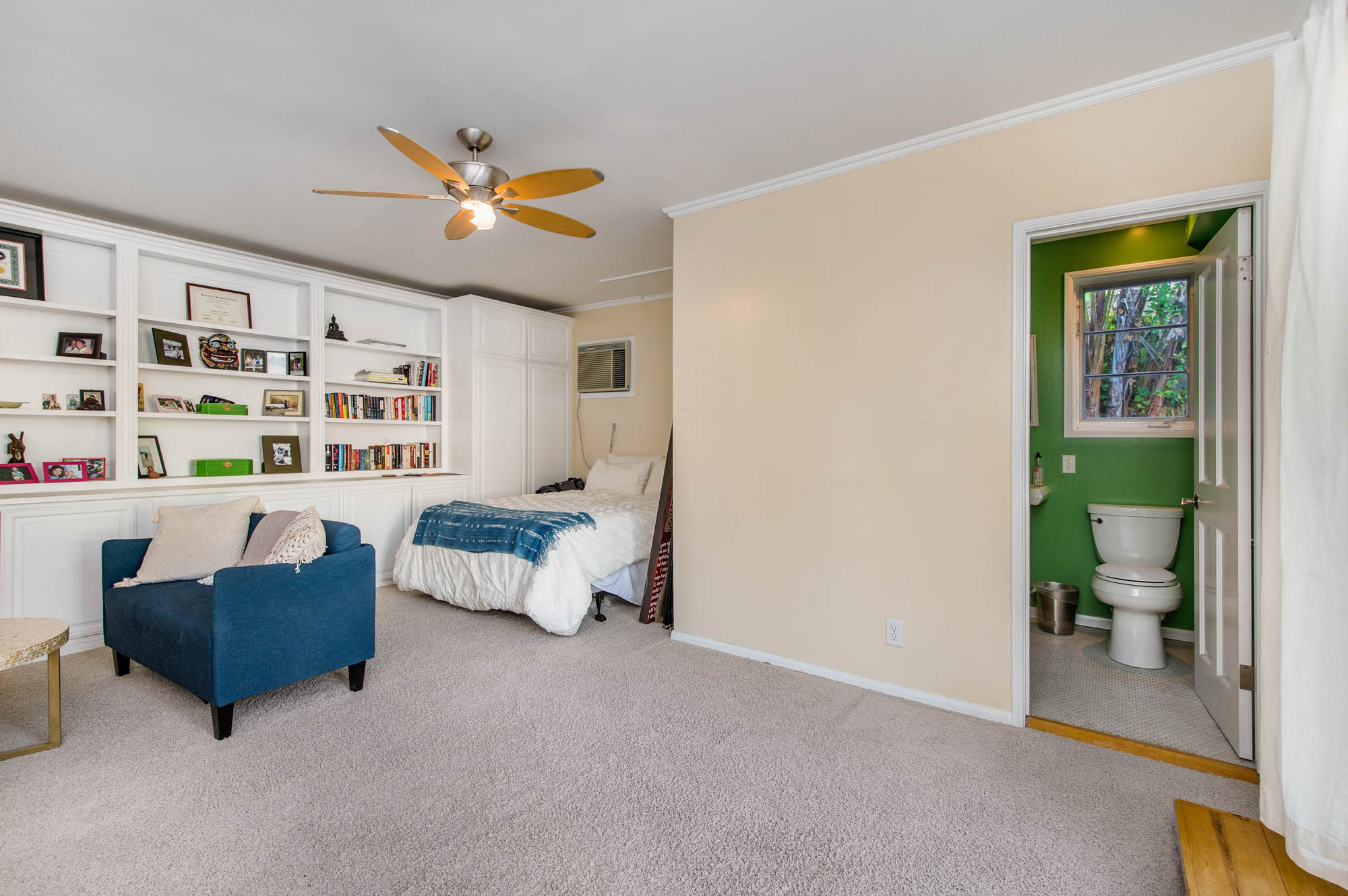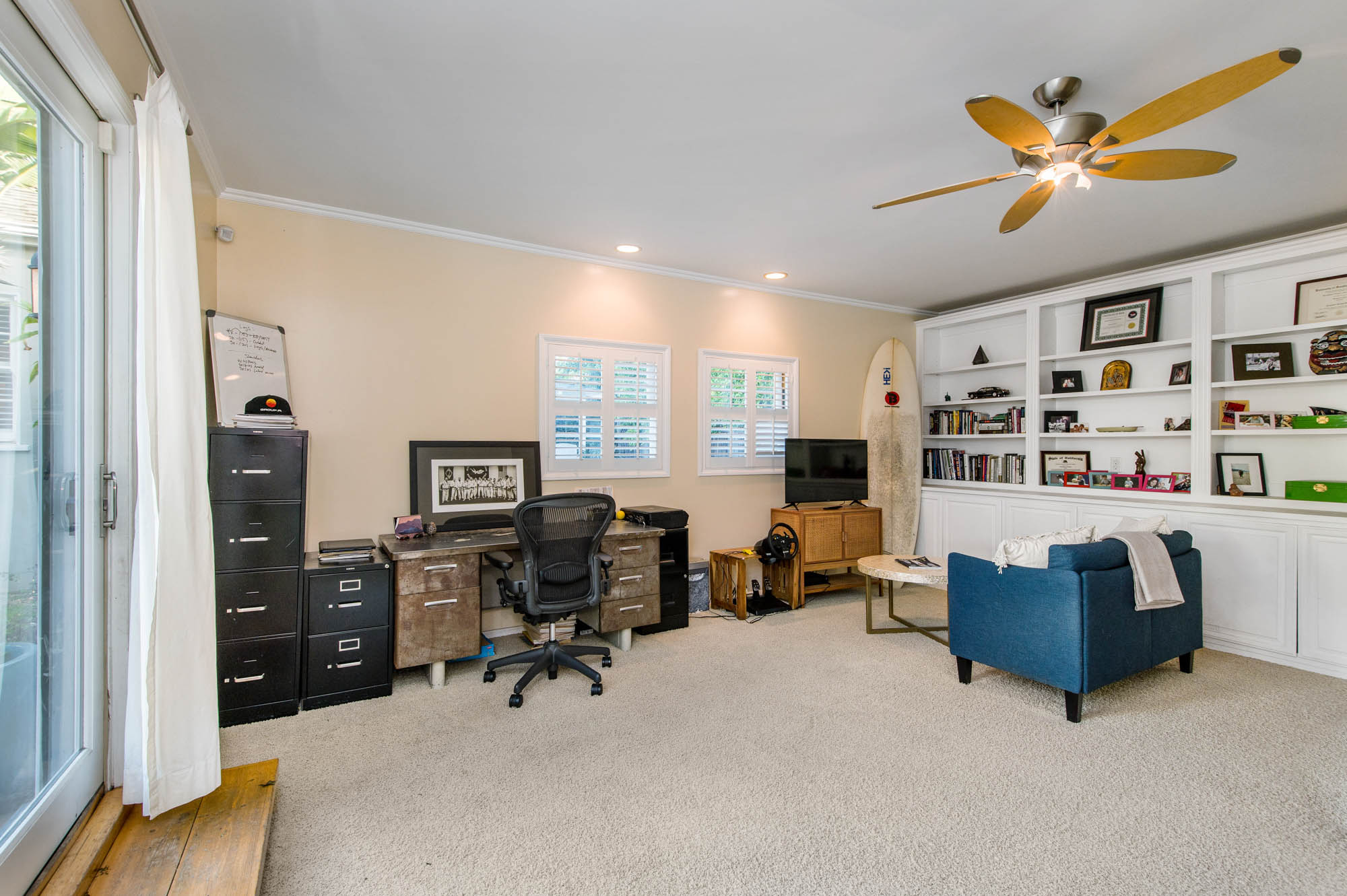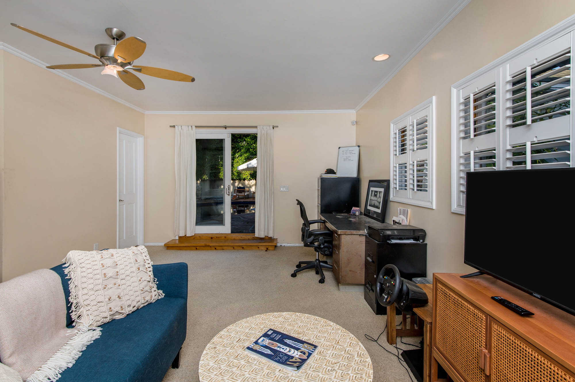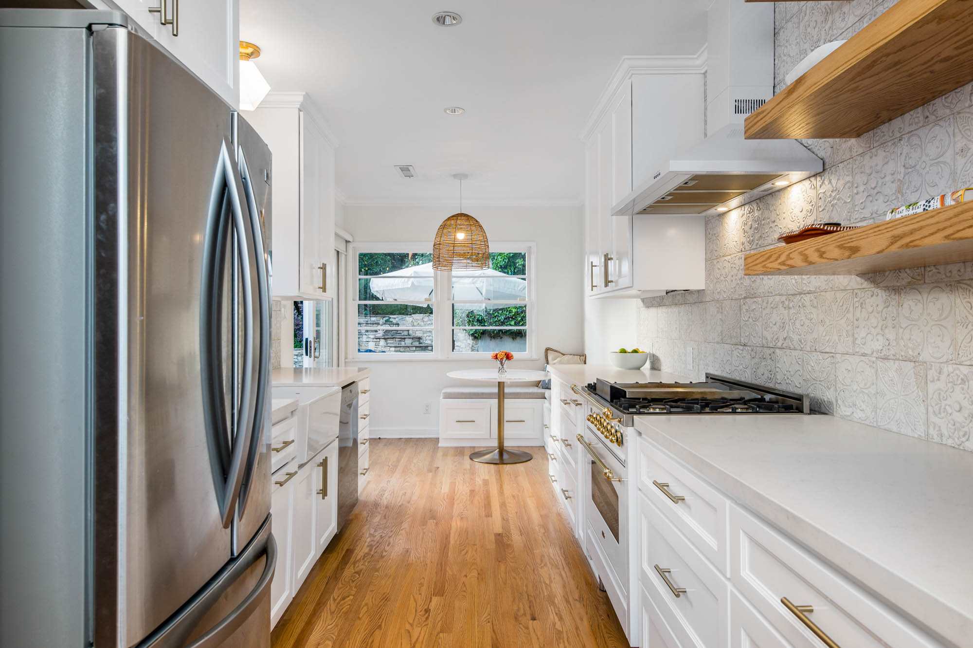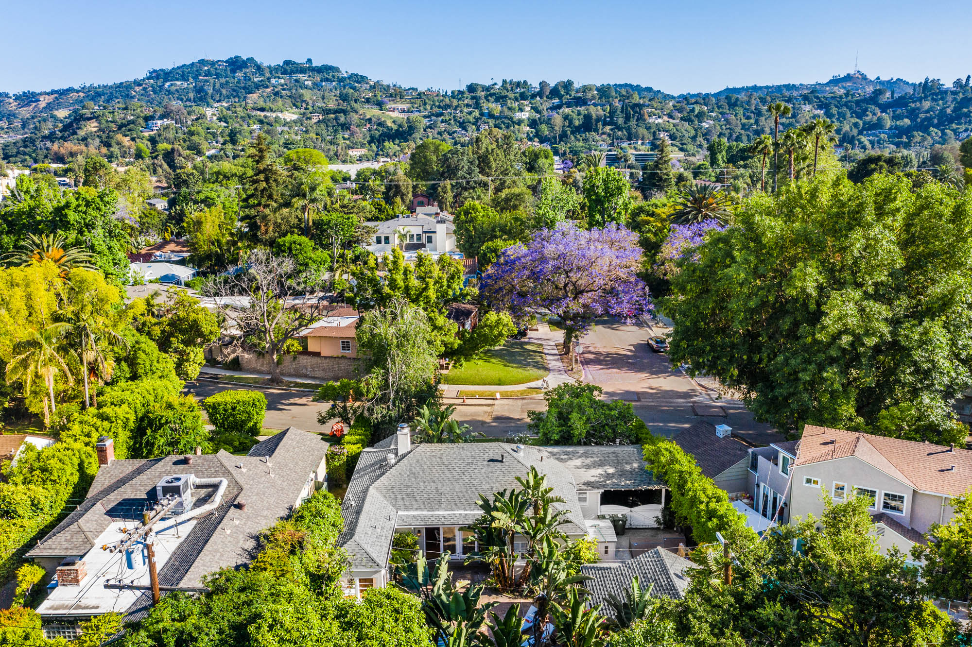 Nestled on a peaceful tree-lined street in the highly desired Tujunga Village area of Studio City, sits this beautifully updated single level home. A charming brick walkway leads you past the well manicured lawn and up to the spacious front porch. Inside, the home is light and bright with an abundance of windows showcasing stunning natural light, wood floors, and recessed lighting. The bright and cozy living room seamlessly flows into the dining area where gorgeous bi-fold doors lead out to the backyard oasis. The newly remodeled kitchen features gleaming high end appliances, a custom designer backsplash, ample cabinetry, and a breakfast nook with built in seating and additional storage. The master suite offers pitched ceilings, two closets, and a luxurious bathroom with dual sink vanity and glass enclosed shower. The two additional bedrooms are well appointed and one has a bay window with bench and large nook perfect for a seating area or workspace. The backyard gives off resort vibes with mature palm trees surrounding, offering ultimate privacy. The beautiful hardscape envelops the sparkling pool, and provides plenty of lounge space. As a bonus, the converted garage with ¾ bath makes an ideal office, guest house, or media room. Blocks away from the shops, restaurants, and cafes of the Tujunga Village and ideally situated for access to Hollywood and the Westside, this home is a treasure.