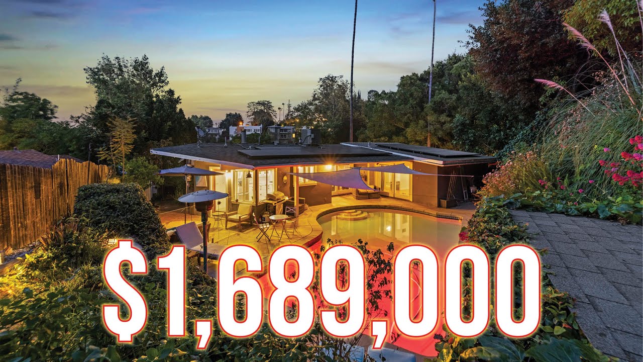 Situated on a secluded cul-de-sac in the hills above Studio City, this Mid-Century move-in ready home offers captivating views of the Valley through the canyon treetops. Inside, you'll find enchanting details such as exposed wood beam ceilings and parquet wood floors. This inviting open floor plan features a beautifully remodeled kitchen equipped with stainless steel appliances and white Carrera marble countertops, spacious sunken living room and formal dining room. Spread throughout the home are three bedrooms and two bathrooms, including a primary suite that boasts an ensuite bathroom and ample closet space. Escape the summer heat with a refreshing dip in the pool, surrounded by lush greenery in your private backyard oasis. Additional amenities include a long private driveway, two-car carport, storage shed and fully paid-off solar panels. This location is unbeatable, you’re within the sought after Carpenter School District and just moments away from the Studios, Universal City and excellent shopping/dining found along Ventura Boulevard.