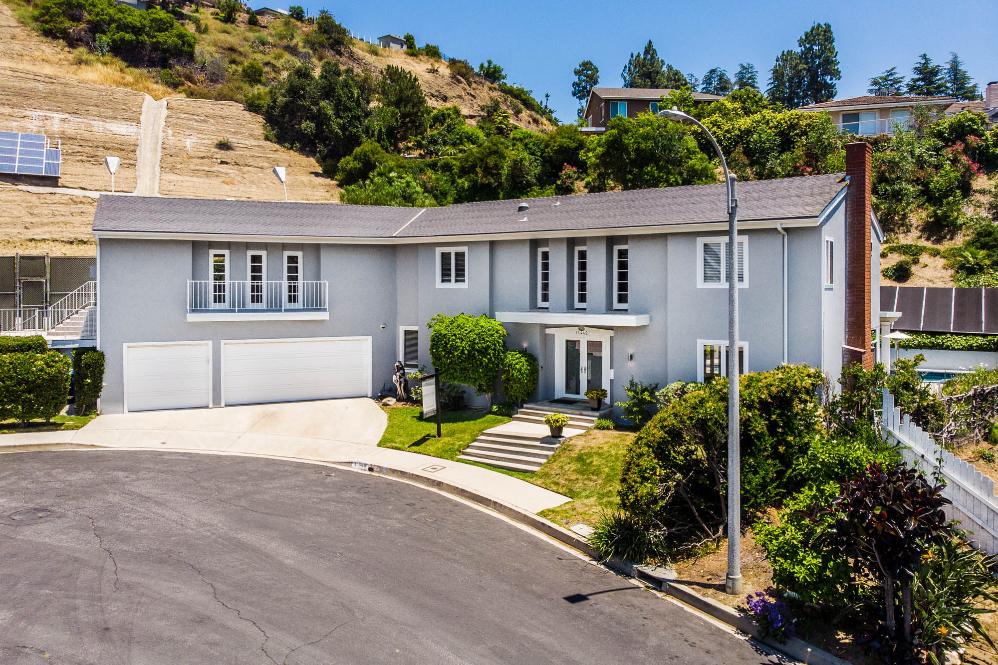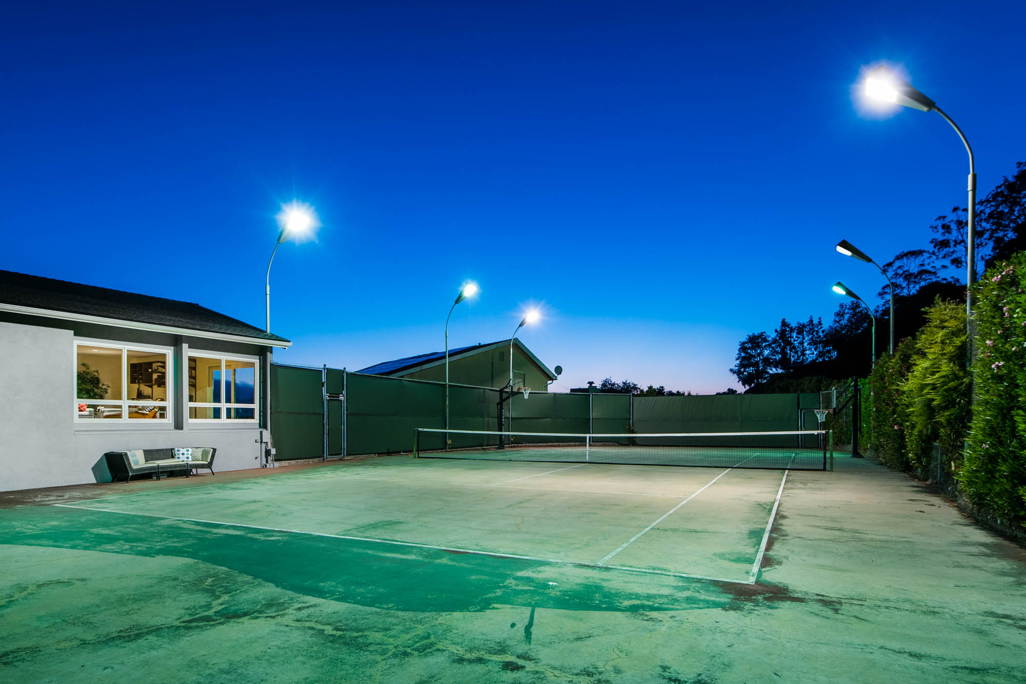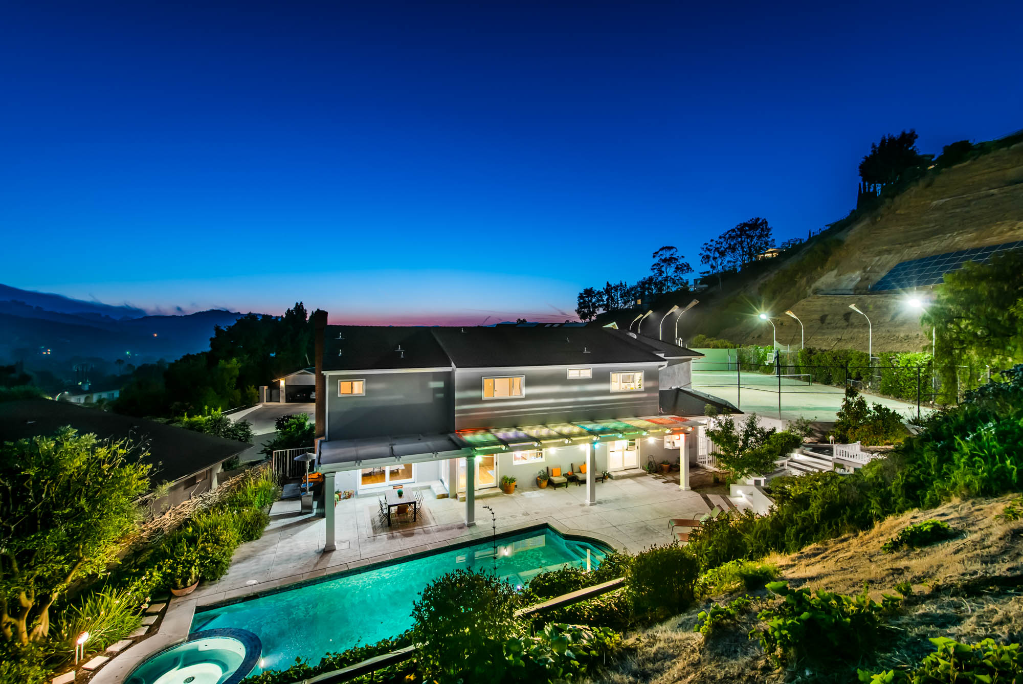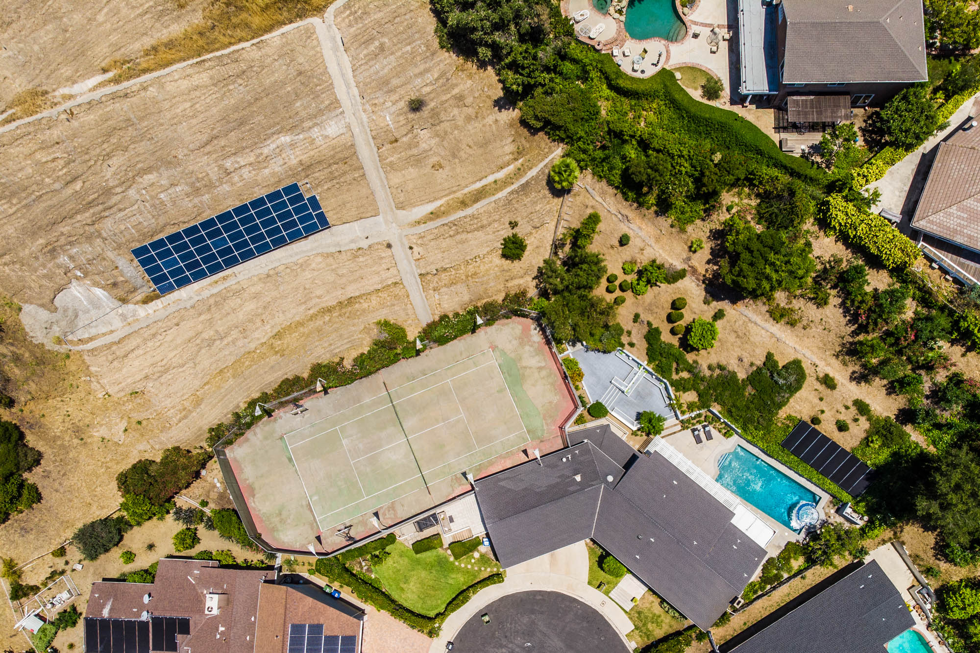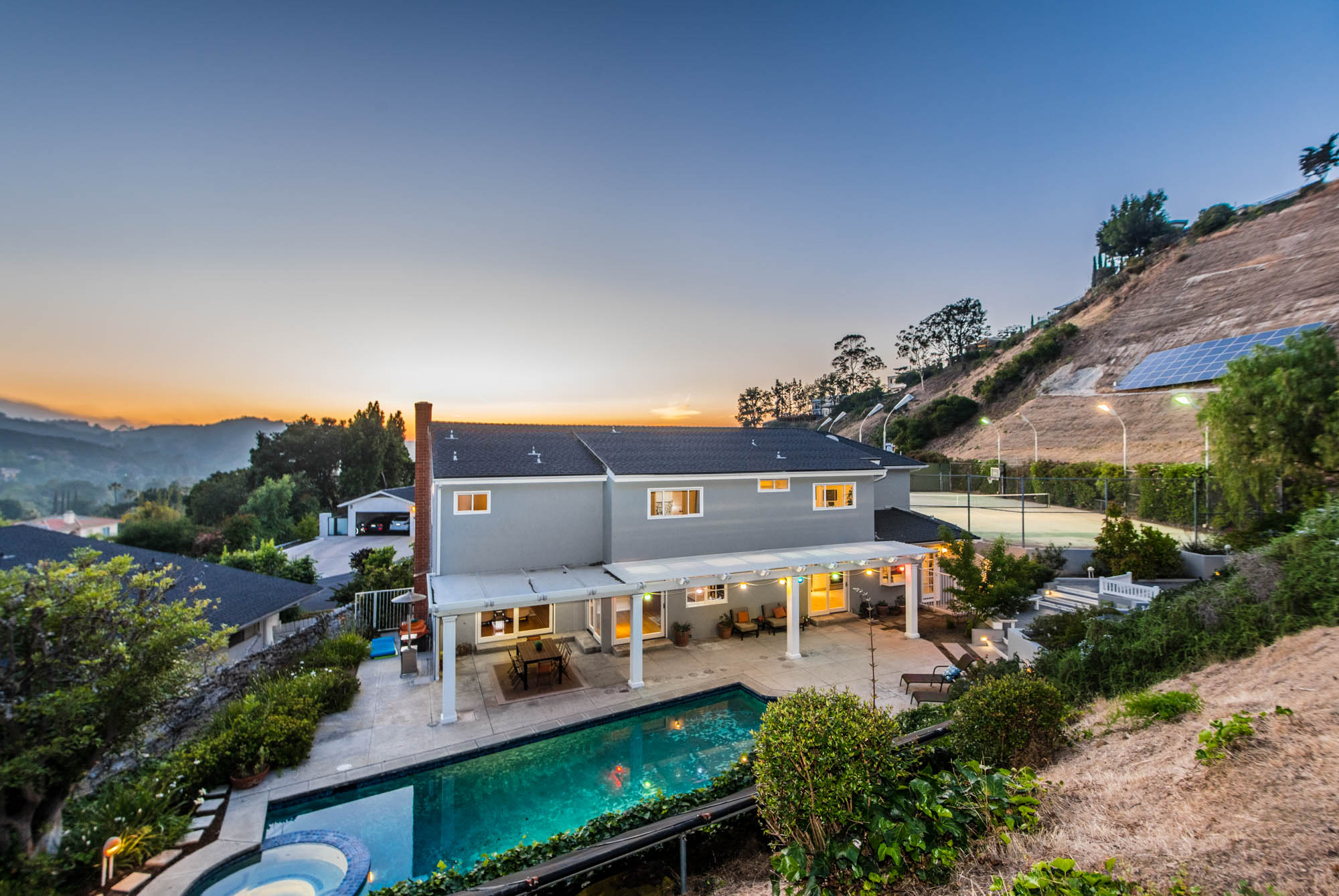 Perched on the end of the cul-de-sac, sitting on a double lot of almost 50,000 sft in the highly desirable Carpenter Charter School District is this magnificent two-story view home in the Dona’s. The one and only home with a tennis court in Laurelwood. The double door entry leads to a foyer with a grand staircase, illuminated with natural light pouring through the abundant windows. The living room features a wood burning fireplace and sliding glass doors which lead to the covered patio and sparkling solar powered pool & spa. The upgraded kitchen offers a subzero refrigerator, granite counters & backsplash, and plentiful cabinetry. Located off either side of the kitchen you will find the spacious dining room, and a breakfast nook, perfect for all your meals large or small. The first of 5 bedrooms and 5 bathrooms are conveniently located downstairs, making the ideal guest room or maid’s quarters. Upstairs, the master suite has a walk-in closet and en-suite bath with dual sinks, jetted tub, and a separate shower. As a unique bonus, there is a huge appx 1,200 sft entertaining space upstairs that includes a wet bar, pool table, and has french doors which lead out to a patio, grassy area, and the tennis court. The backyard is an entertainer’s dream with multiple patios, a solar heated pool, spa, and of course, the full-size tennis court. Additional features include a 3 car extra deep and wide garage, solar panels which makes this a green home, dual zoned HVAC with smart thermostats, central vacuum system, and much more. Ideally located for access to the Westside, this is an incredible property!