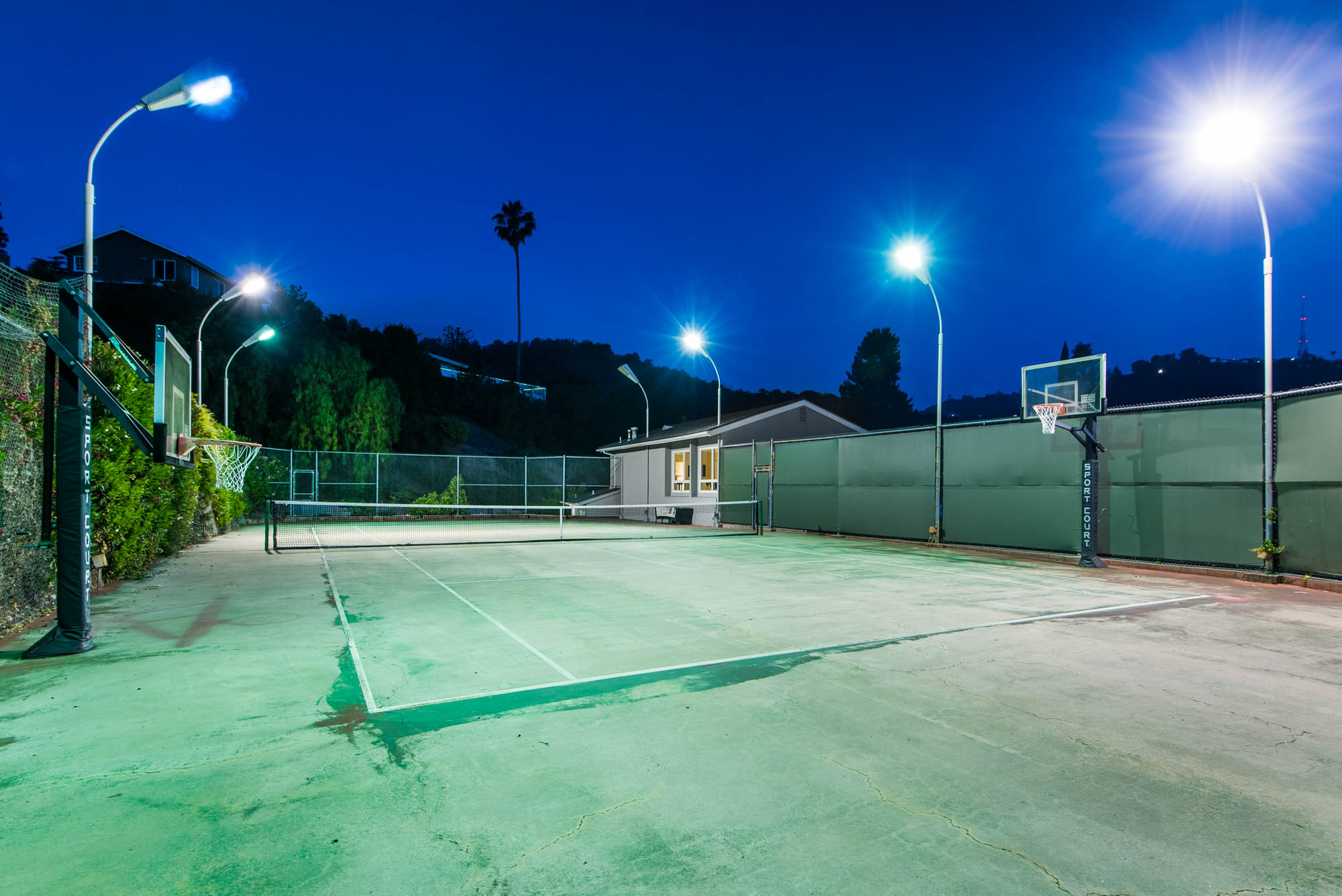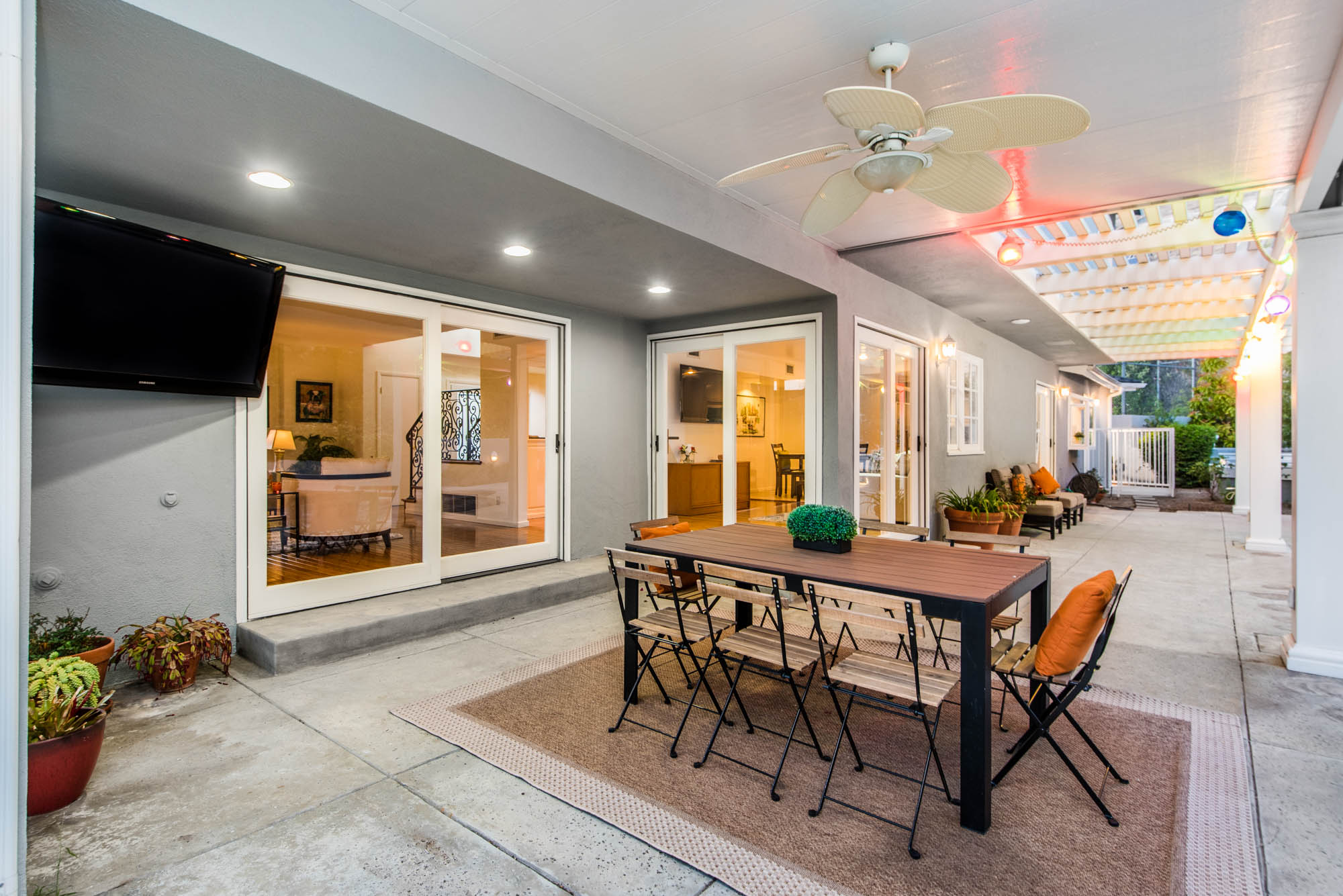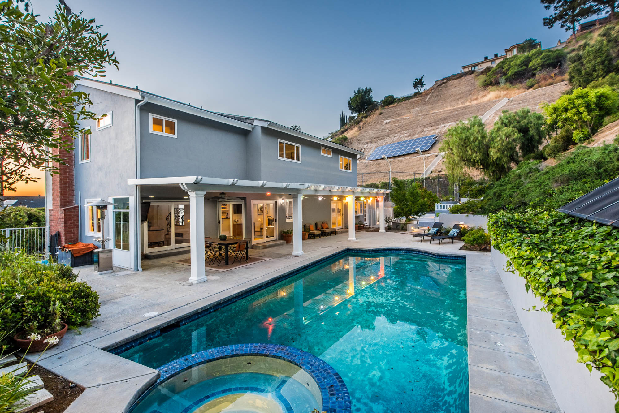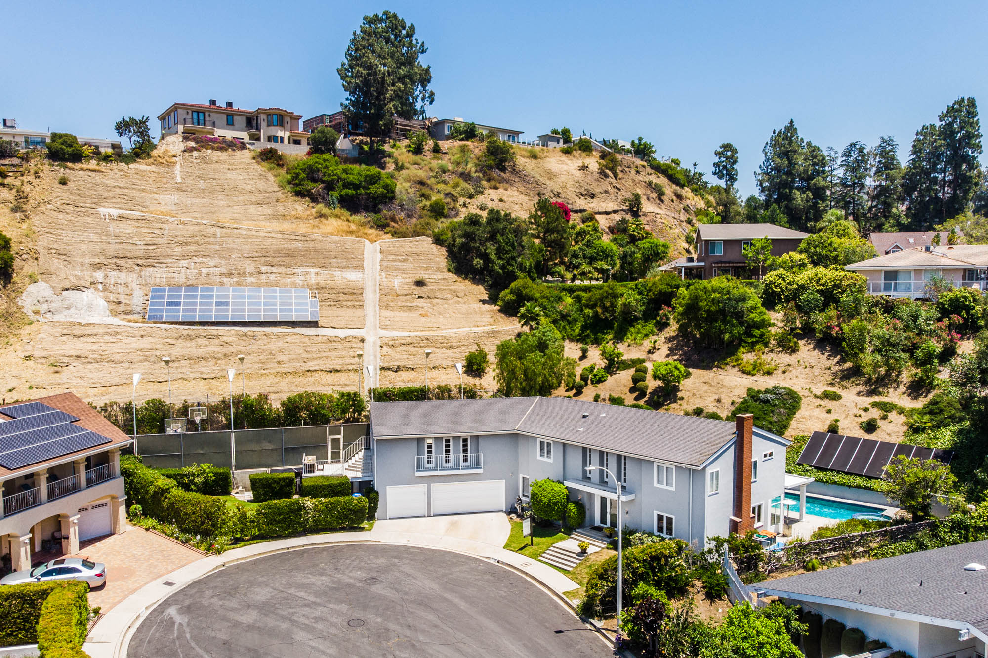 Perched on the end of the cul-de-sac, sitting on a double lot of almost 50,000 sft in the highly desirable Carpenter Charter School District is this magnificent two-story view home in the Dona’s. The one and only home with a tennis court in Laurelwood. The double door entry leads to a foyer with a grand staircase, illuminated with natural light pouring through the abundant windows. The living room features a wood burning fireplace and sliding glass doors which lead to the covered patio and sparkling solar powered pool & spa. The upgraded kitchen offers a subzero refrigerator, granite counters & backsplash, and plentiful cabinetry. Located off either side of the kitchen you will find the spacious dining room, and a breakfast nook, perfect for all your meals large or small. The first of 5 bedrooms and 5 bathrooms are conveniently located downstairs, making the ideal guest room or maid’s quarters. Upstairs, the master suite has a walk-in closet and en-suite bath with dual sinks, jetted tub, and a separate shower. As a unique bonus, there is a huge appx 1,200 sft entertaining space upstairs that includes a wet bar, pool table, and has french doors which lead out to a patio, grassy area, and the tennis court. The backyard is an entertainer’s dream with multiple patios, a solar heated pool, spa, and of course, the full-size tennis court. Additional features include a 3 car extra deep and wide garage, solar panels which makes this a green home, dual zoned HVAC with smart thermostats, central vacuum system, and much more. Ideally located for access to the Westside, this is an incredible property!