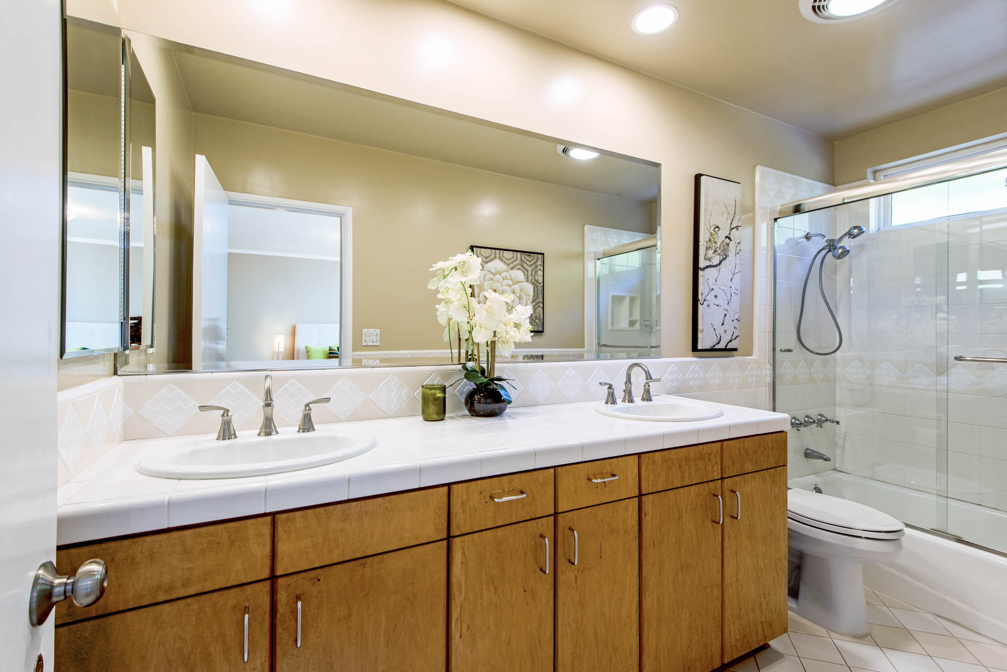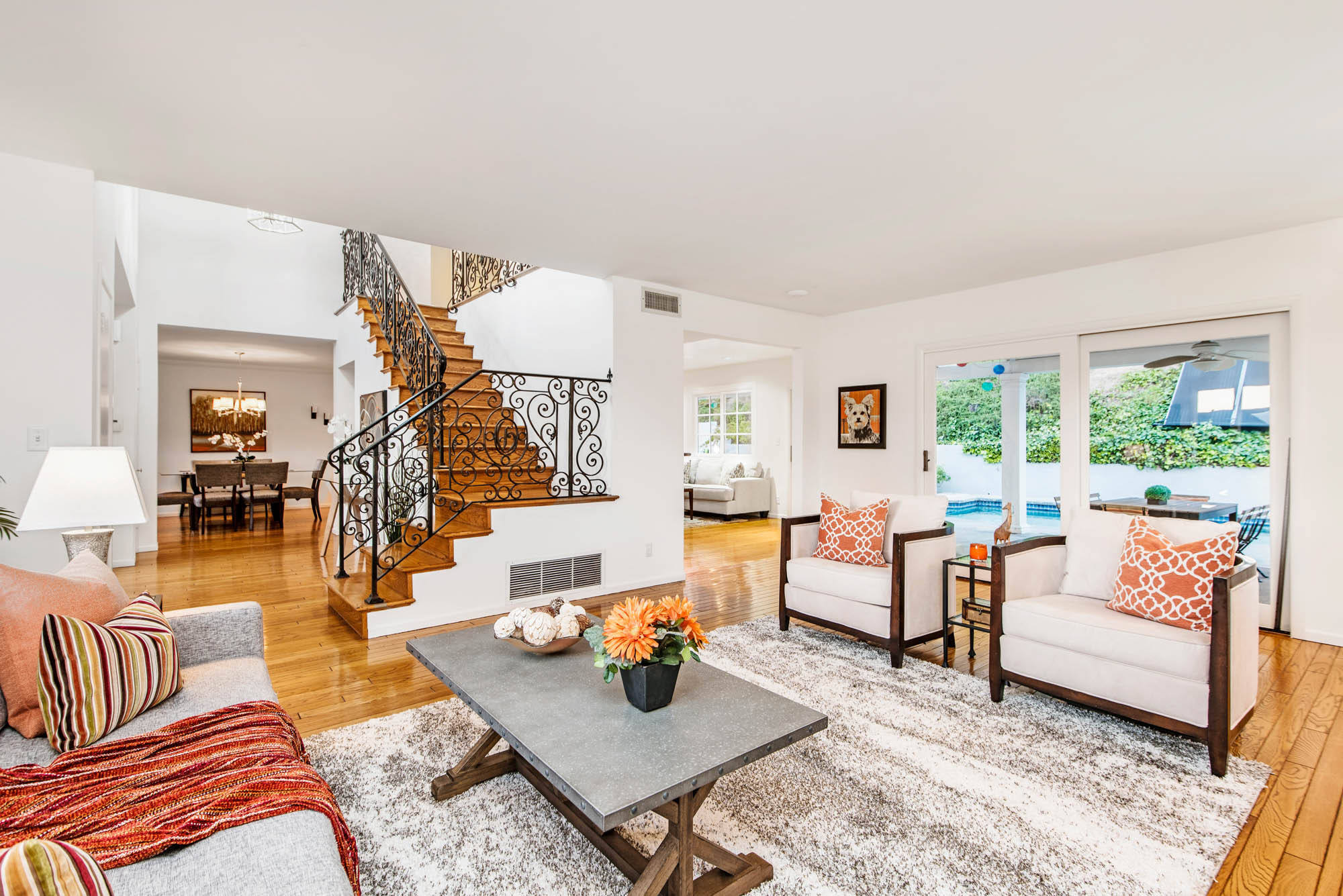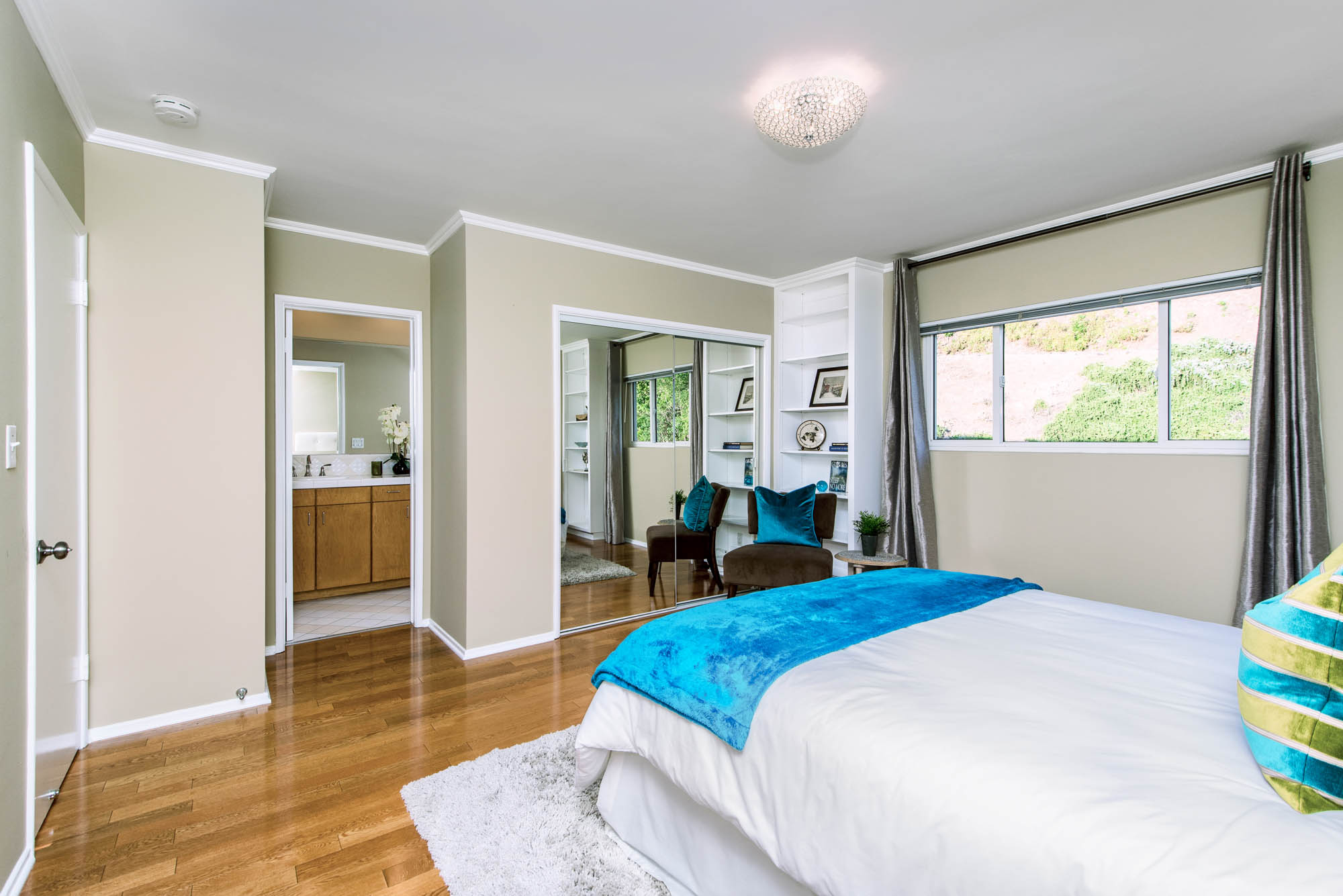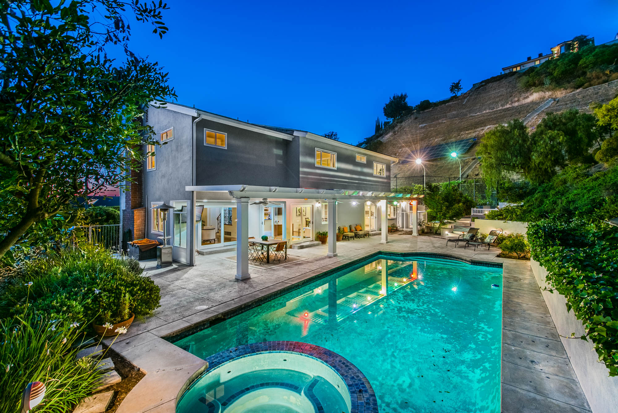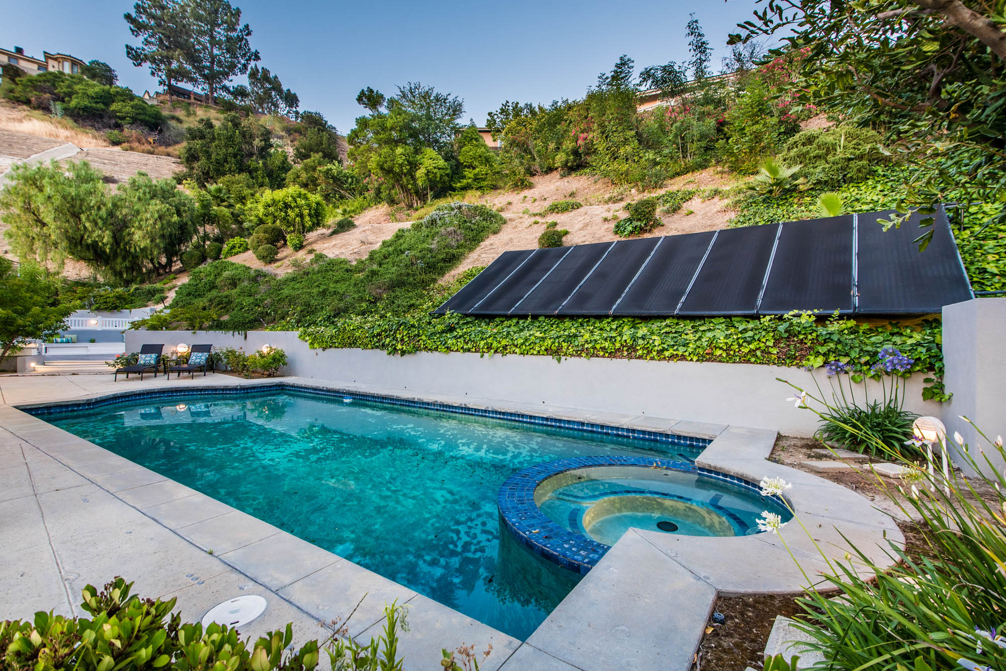 Perched on the end of the cul-de-sac, sitting on a double lot of almost 50,000 sft in the highly desirable Carpenter Charter School District is this magnificent two-story view home in the Dona’s. The one and only home with a tennis court in Laurelwood. The double door entry leads to a foyer with a grand staircase, illuminated with natural light pouring through the abundant windows. The living room features a wood burning fireplace and sliding glass doors which lead to the covered patio and sparkling solar powered pool & spa. The upgraded kitchen offers a subzero refrigerator, granite counters & backsplash, and plentiful cabinetry. Located off either side of the kitchen you will find the spacious dining room, and a breakfast nook, perfect for all your meals large or small. The first of 5 bedrooms and 5 bathrooms are conveniently located downstairs, making the ideal guest room or maid’s quarters. Upstairs, the master suite has a walk-in closet and en-suite bath with dual sinks, jetted tub, and a separate shower. As a unique bonus, there is a huge appx 1,200 sft entertaining space upstairs that includes a wet bar, pool table, and has french doors which lead out to a patio, grassy area, and the tennis court. The backyard is an entertainer’s dream with multiple patios, a solar heated pool, spa, and of course, the full-size tennis court. Additional features include a 3 car extra deep and wide garage, solar panels which makes this a green home, dual zoned HVAC with smart thermostats, central vacuum system, and much more. Ideally located for access to the Westside, this is an incredible property!