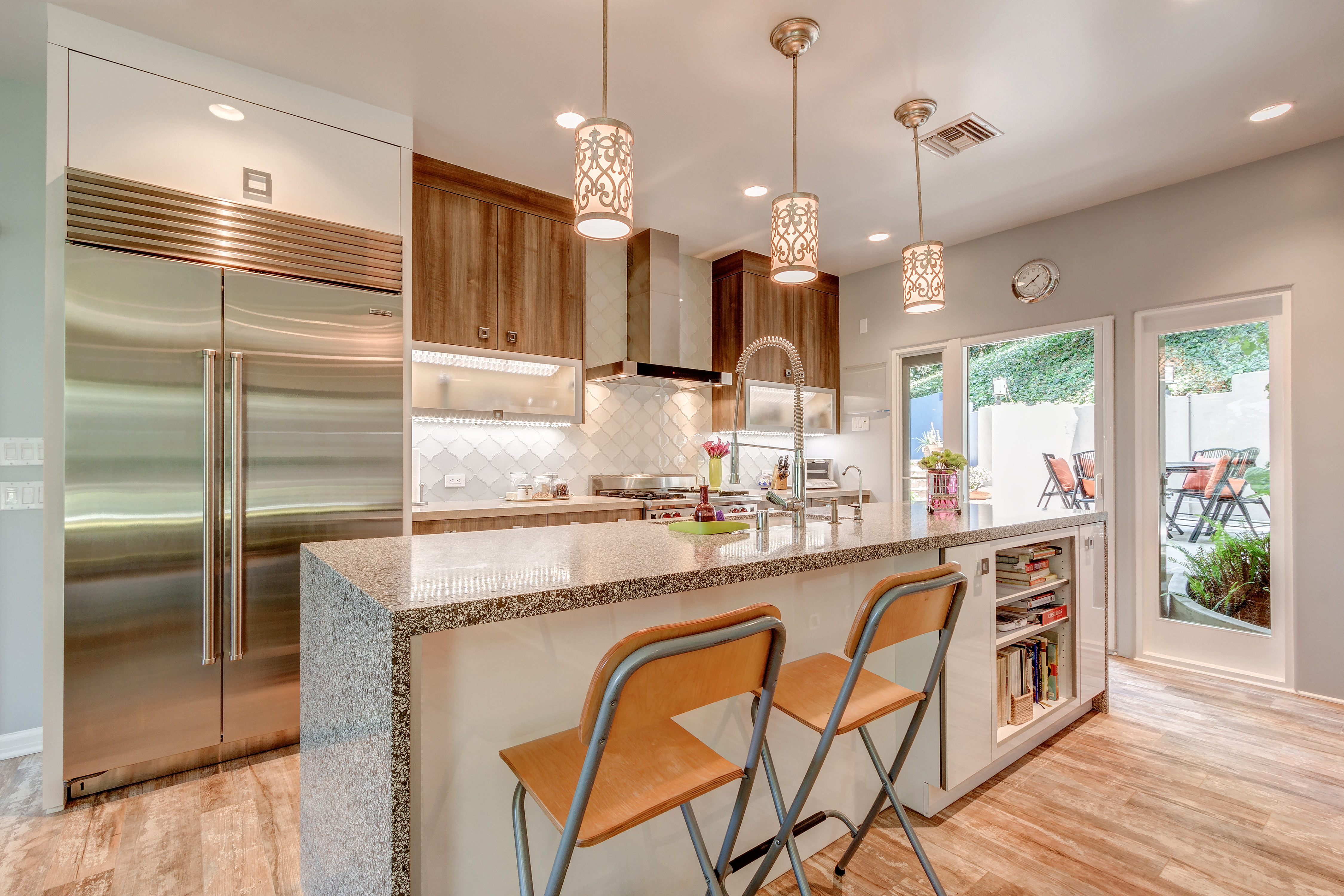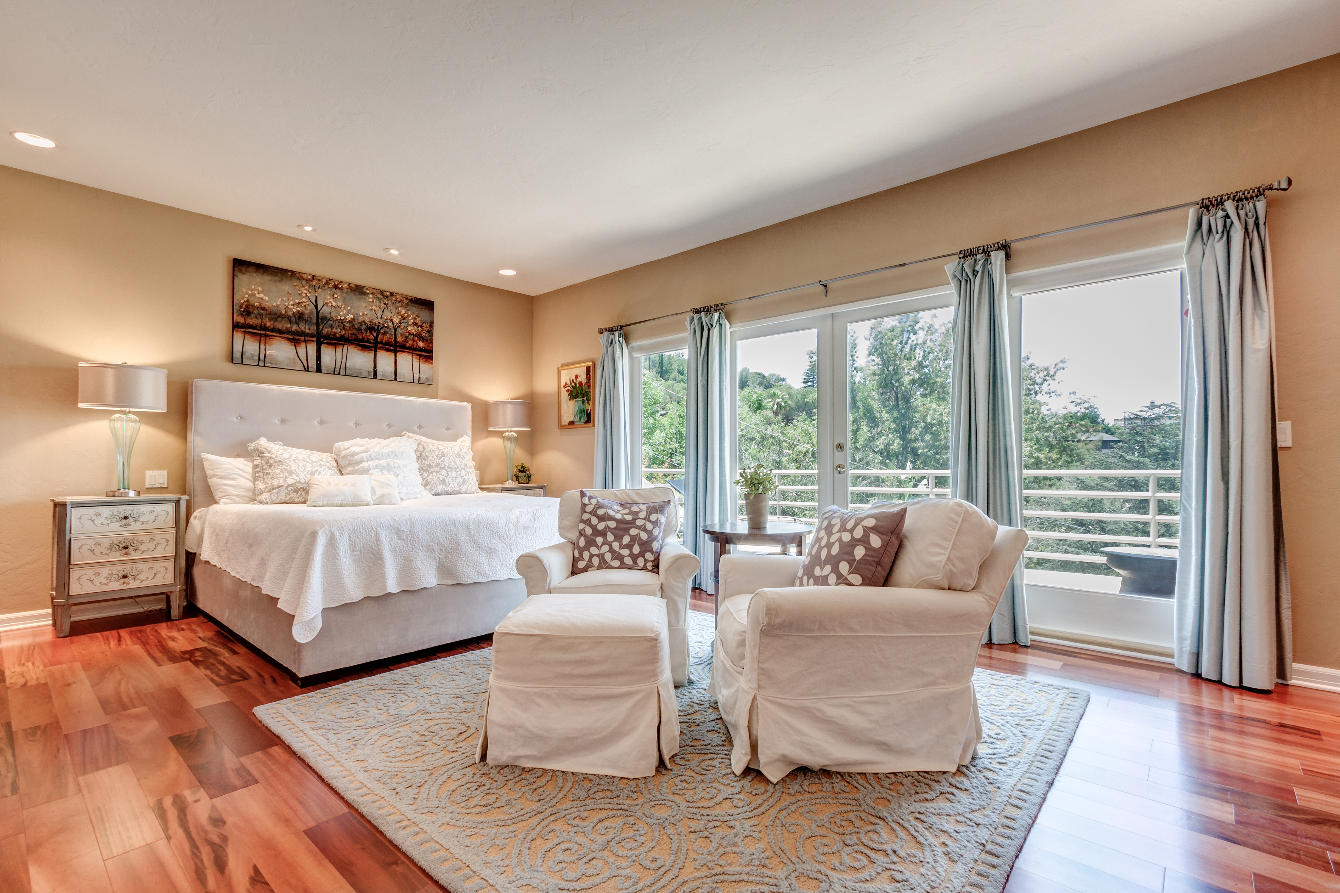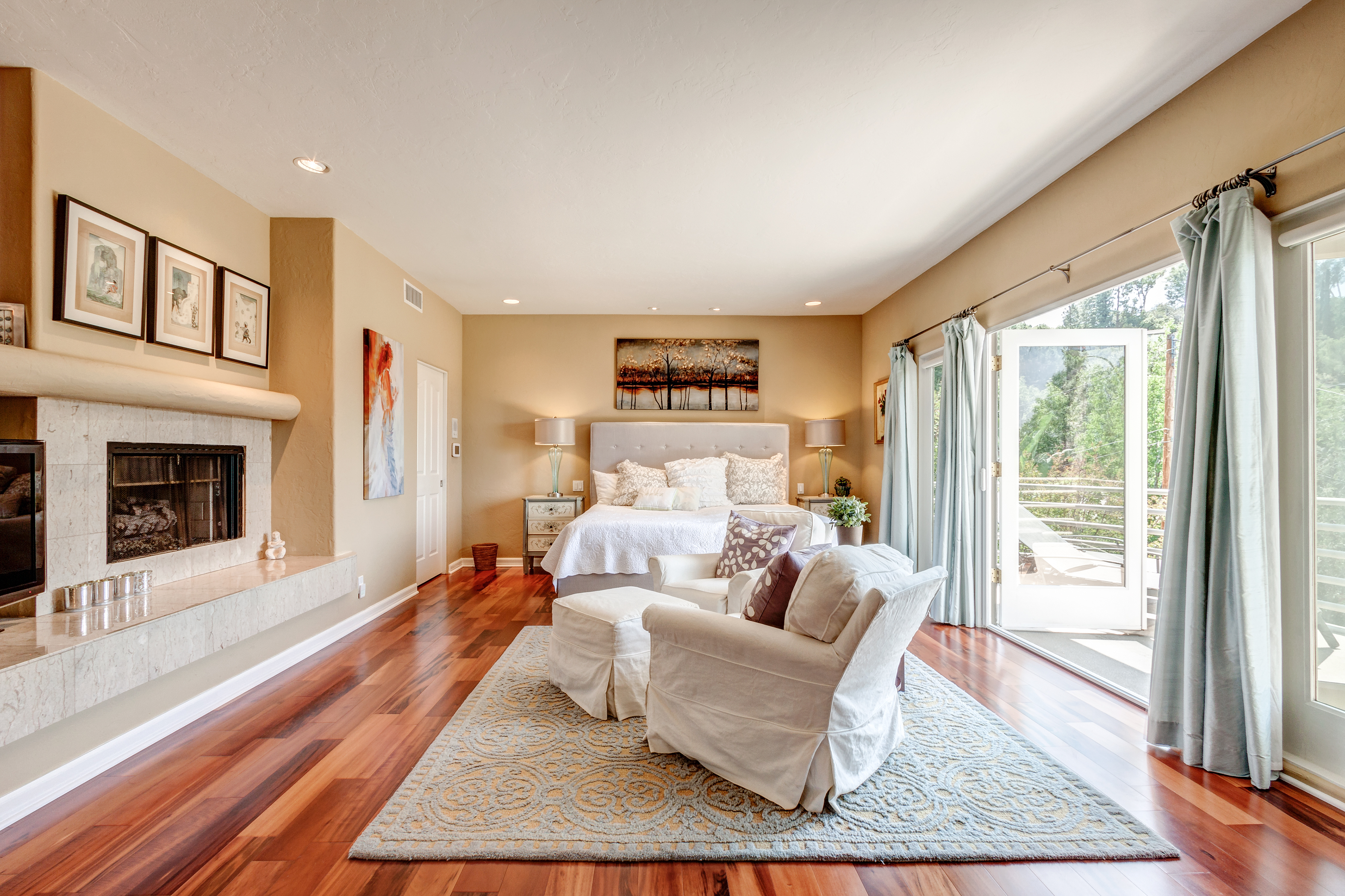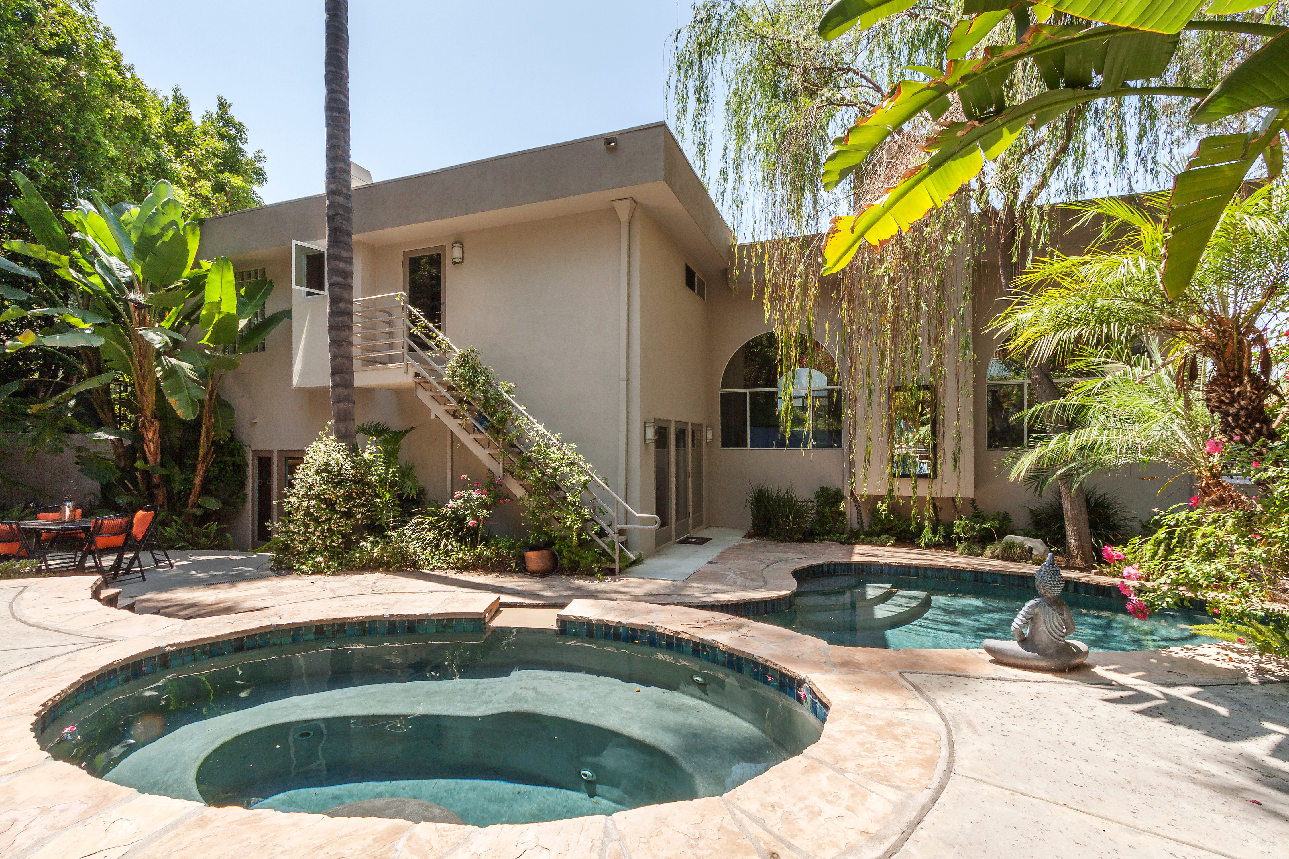 Tucked away in the prestigious hills of Studio City, this stylish & sophisticated 3 bed, 2.5 bath home boasts mountain, valley, and city lights views. The immense living room has a beautiful stone fireplace and soaring-high ceilings, along with over-sized windows that bring in tons of natural light throughout. French doors open out to a lovely balcony with views over the valley. The backyard is a private, lush, tropical oasis that includes a pool and spa. This home also features a formal dining room with views out to the pool. Family room has Stonepeak, high tech porcelain flooring and a new gourmet designer kitchen with soft close and roll-out cabinets , Ceasarstone Quartz countertops, top of the line stainless steel appliances which includes wine fridge, Wolf stove, Sub-Zero refrigerator and Miele steam oven. Romantic master suit boasts a large fireplace, sitting-area, dual walk-in closets with organizers, and French doors to a large balcony with View View views. THIS IS a TRULY UNIQUE ONE OF A KIND HOUSE! CARPENTER SCHOOL DISTRICT is a bonus.