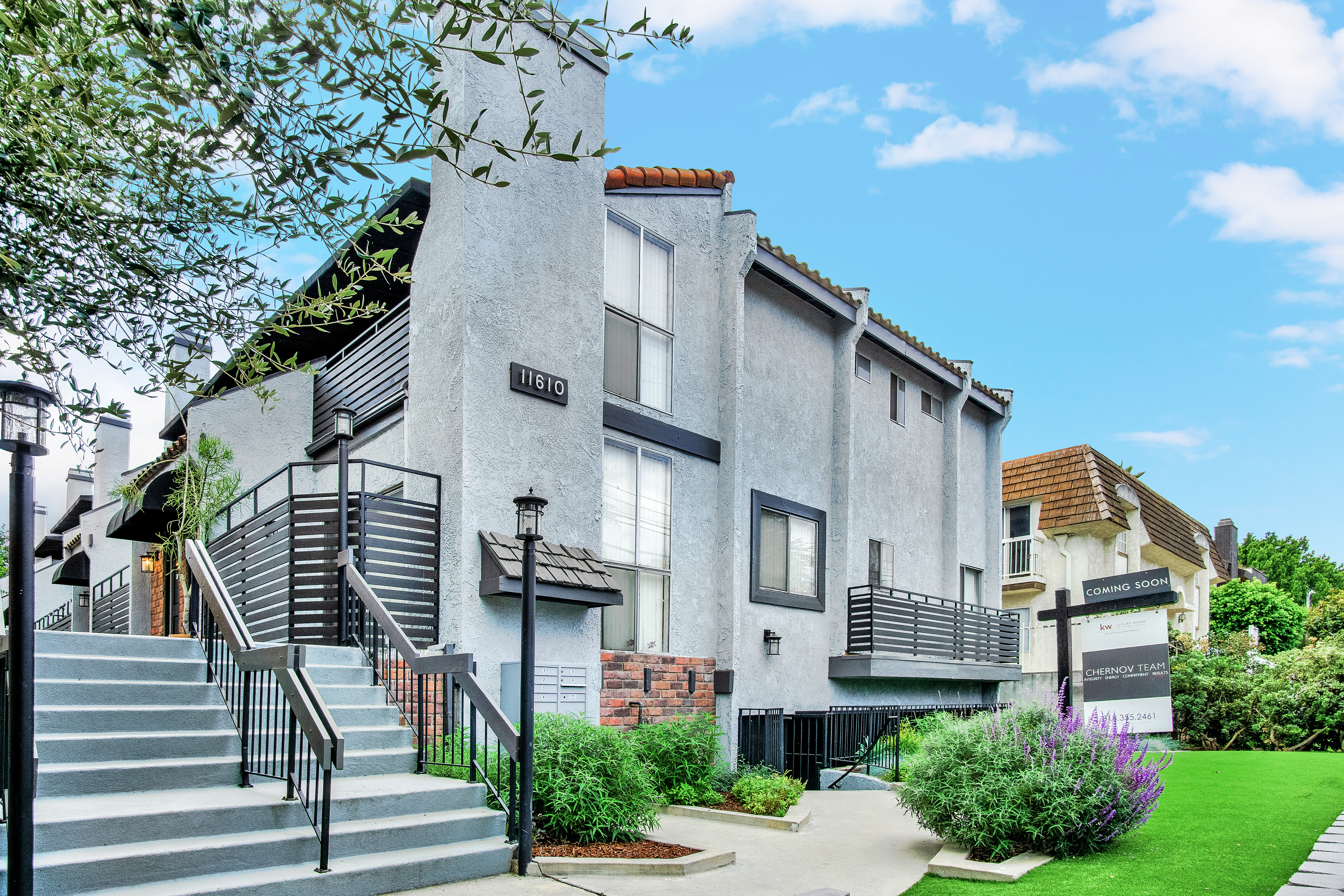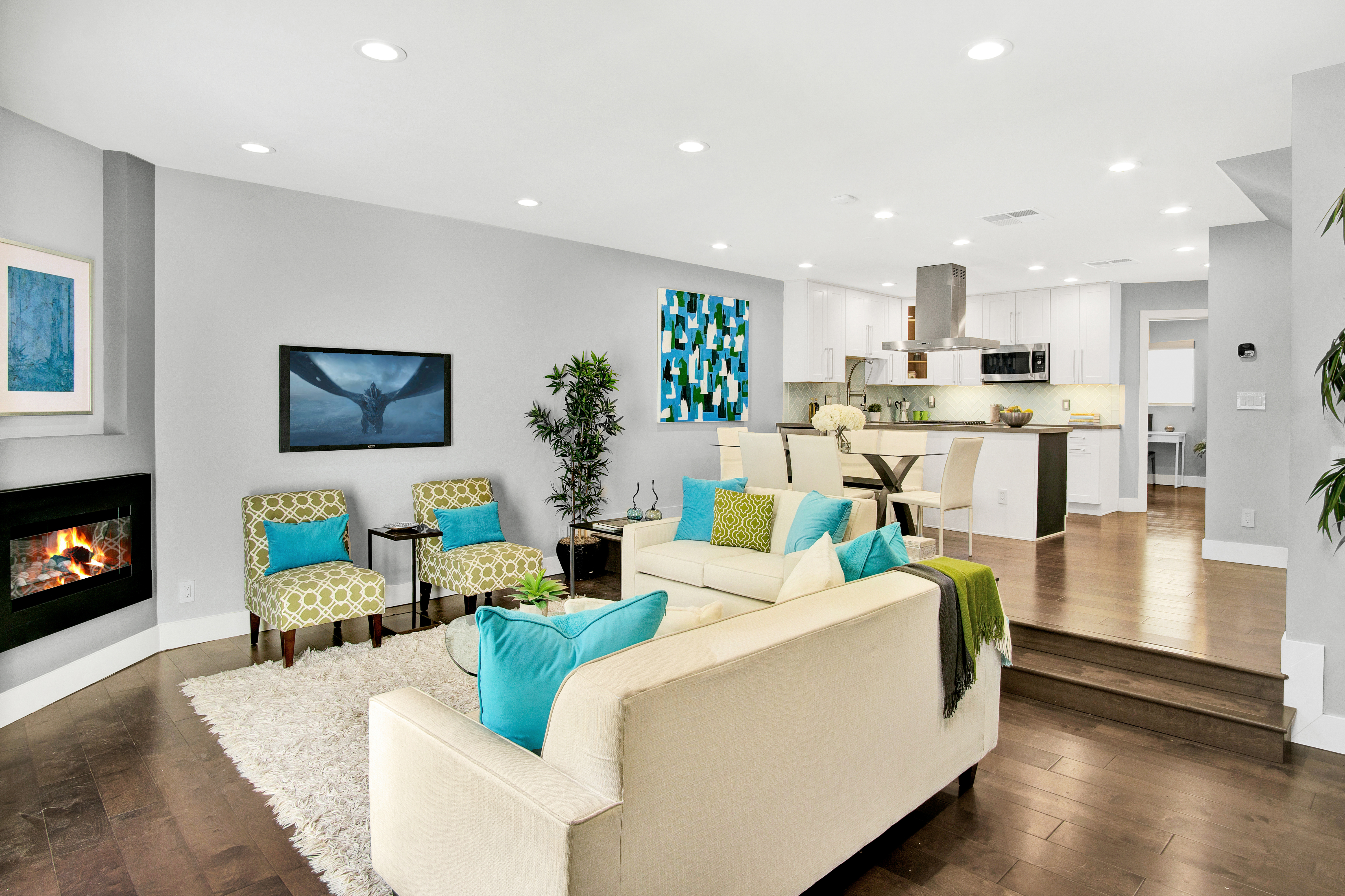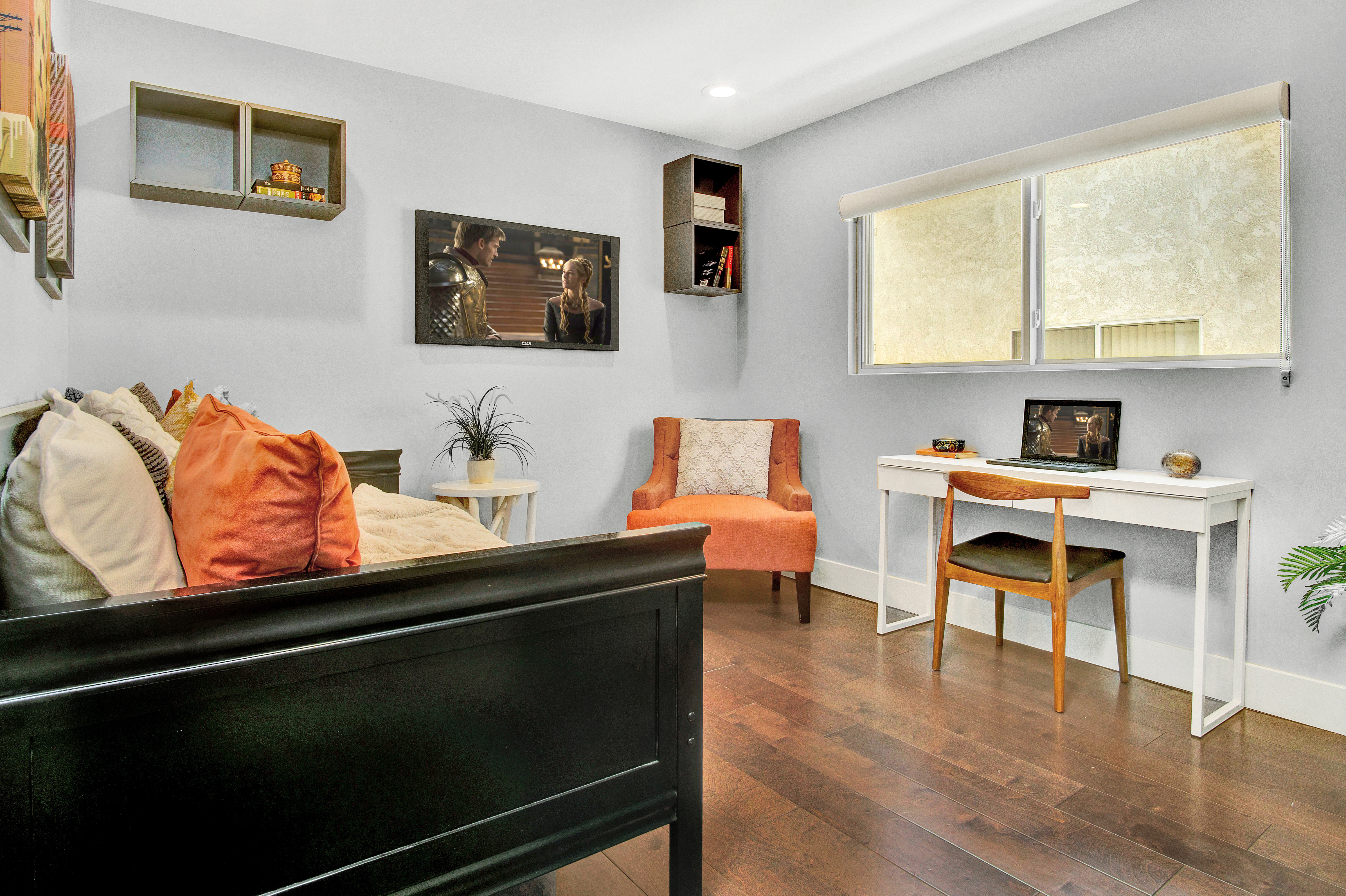 Masterfully renovated 3 bed, 3 bath townhome-style condo in the Carpenter School District in Colfax Meadows. The open floorplan effortlessly blends the living room, dining room, and kitchen, creating the perfect entertaining space. The living room offers a remote controlled gas fire place and sliding door to a private patio. Step up to the dining room with bar and built-in wine cooler. The dining room is open to the light and bright kitchen with Silestone quartz countertops, glass tile backsplash, and stainless steel appliances. The first of the 3 bedrooms is located on the first floor, making it an ideal office space or guest room. Upstairs, the master retreat is a dream with custom closets and a large balcony. The master bath offers sleek vanity with dual sinks and oversized walk in shower with 2 rainfall shower heads. The second upstairs bedroom is spacious with an attached full bath. Other amenities of this home include hardwood flooring throughout, dual pane windows and doors, side-by-side washer/dryer, recessed LED lighting, and side-by-side parking. The unit has also been upgraded with a number of smart home features, including programmable scene lighting, smart doorbell and thermostat, Nest Protect smoke detectors, and programmable "master control" switches. Moments from Tujunga Village, the studios, and the shops and restaurants of Ventura Boulevard. This condo offers the best of Studio City living!
