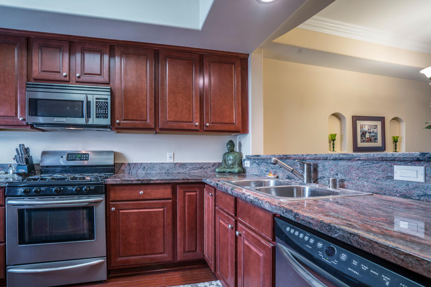 This newer-built (2007) townhome-style condo is conveniently located just minutes from Studio City and Ventura Blvd. It has been meticulously maintained, has Low HOAs (only $300) and a fun roof-top patio for dining or just enjoying the California sun ! The living room and dining room include a beautifully detailed fireplace, accent wall, wood floors, and a nearby powder room, making it the perfect space for relaxing or entertaining. The kitchen features granite counter tops, lots of counter space and storage cabinets, stainless steel appliances, and is open to the living room and dining room so you can still see the television and stay connected to the party even while you are whipping up food for your guests. Upstairs you’ll find two large, bright, bedrooms, both with en-suite bathrooms and ample closet space! The in-unit laundry makes doing laundry a breeze. Parking is private, gated, and has plenty of guest spaces! Close to shopping, restaurants and close to the 170 and the 101 freeways, this condo has it all !