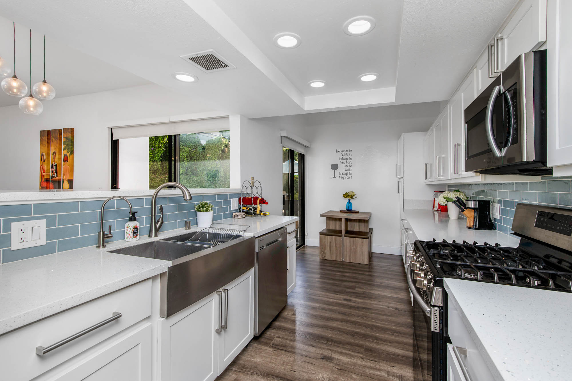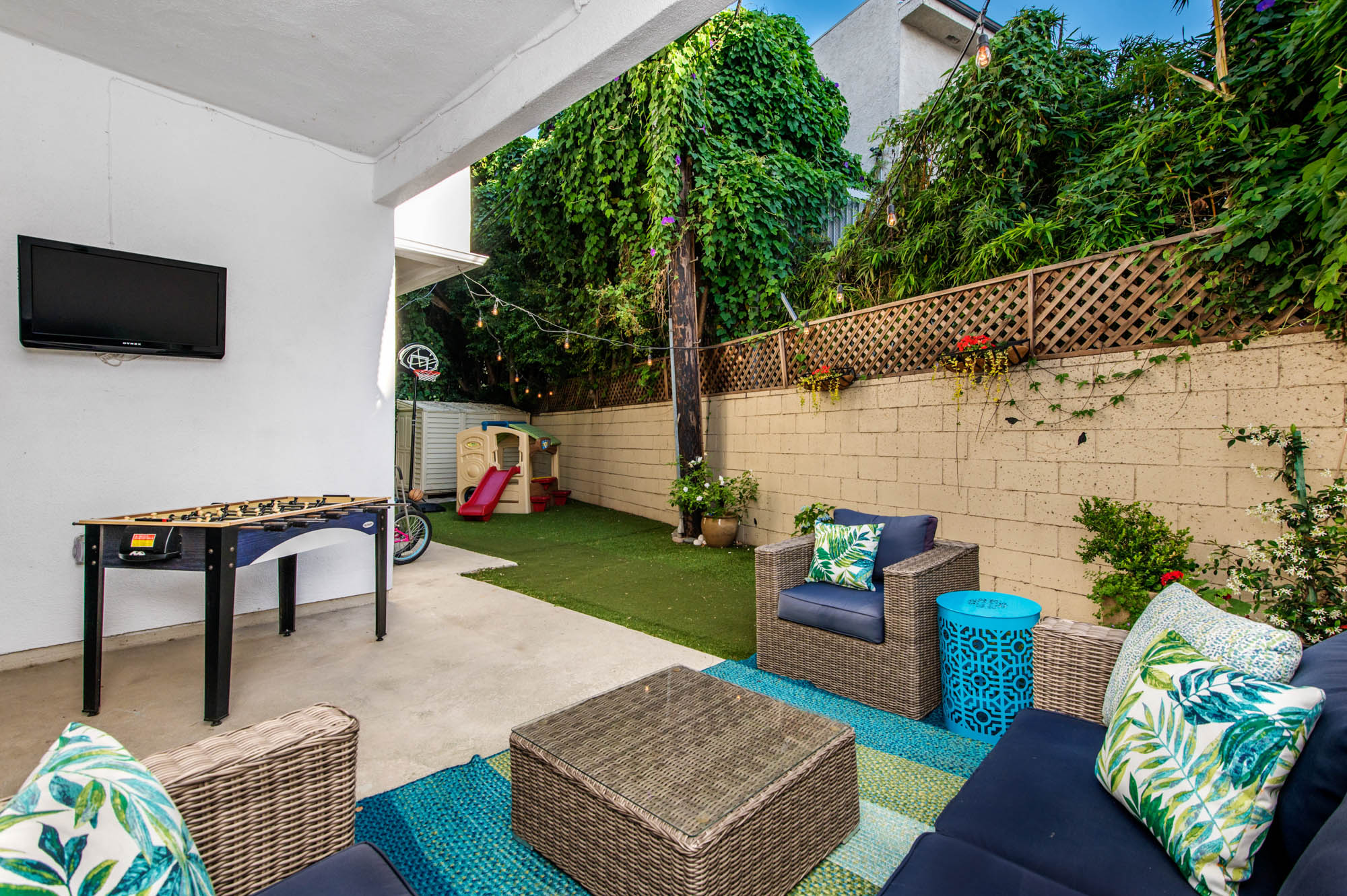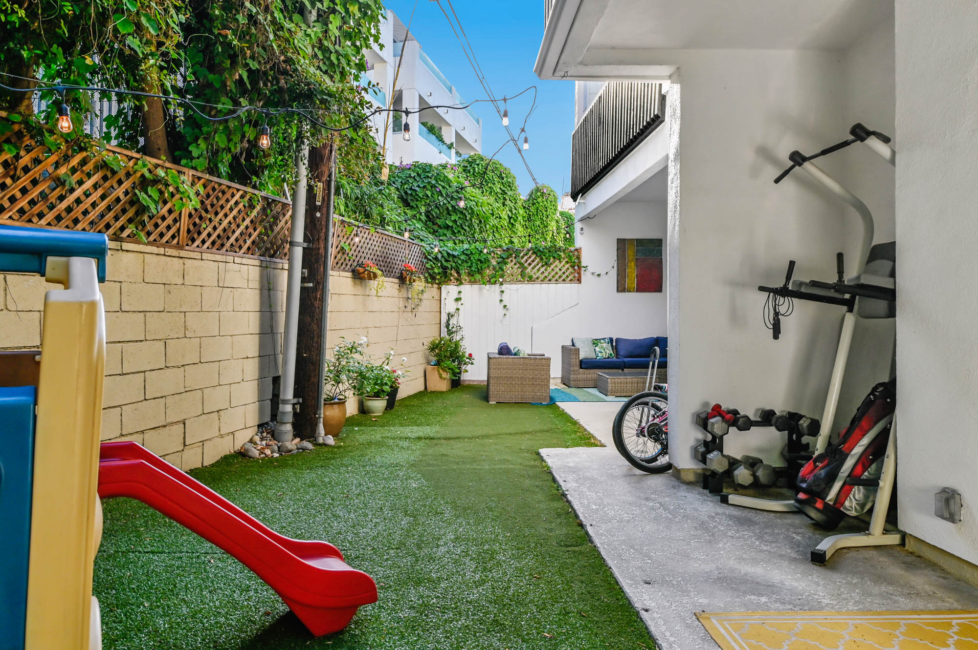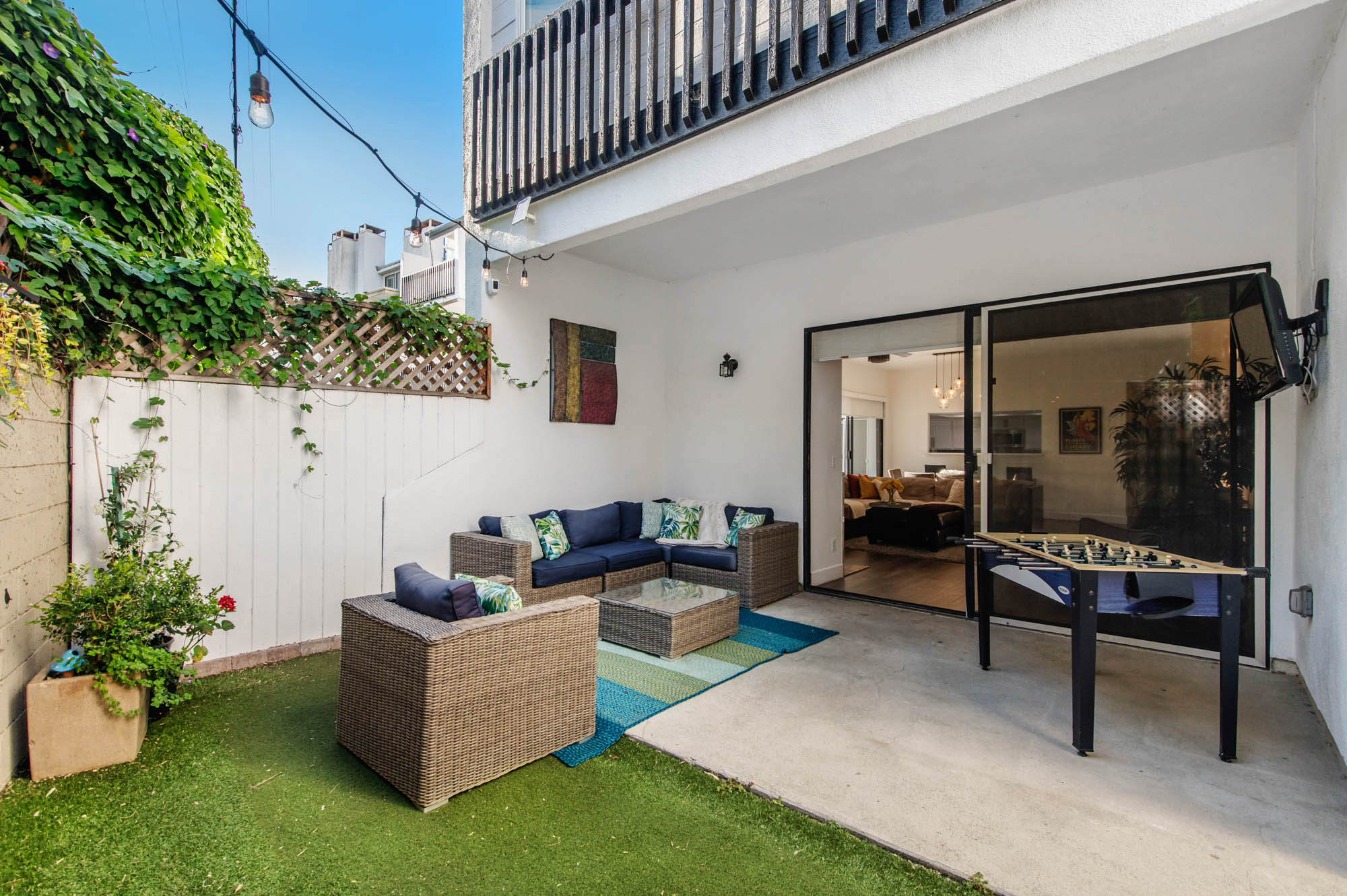 Located in Carpenter School District in one of the best pockets of Studio City is this 2 bed, 2 bath condo with rare private outdoor area. This light and bring home offers 1,359 square feet of living space, accentuated by high ceilings and an abundance of natural light. The spacious living/dining room offers a crushed glass fireplace and two sets of sliding doors, one to your large private “backyard,” and another to a patio which opens directly to the updated pool area. The remodeled kitchen has quartz counters and backsplash, plenty of storage, newer appliances, breakfast nook, and breakfast bar that opens to the dining area and living room. The master suite is large enough for a sitting area or office nook and has a fireplace as well as its own access to the backyard. The master bath has dual vanities, a walk in shower, and separate soaker tub. The most coveted feature of this home is the backyard space with large grassy turf and multiple seating areas, something you won’t find in any other local condo. Additional features include recently renovated common spaces, heated pool, subterranean gated parking, newer HVAC unit, custom door and window shades, and more. Moments from the famed Studio City Farmer’s Market, CBS lot, and the shops and restaurants of Ventura Blvd. This rare find won’t last long!
