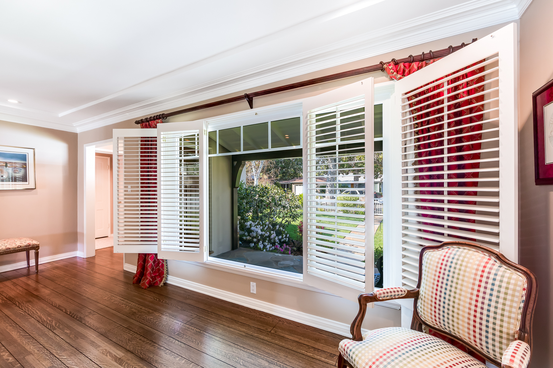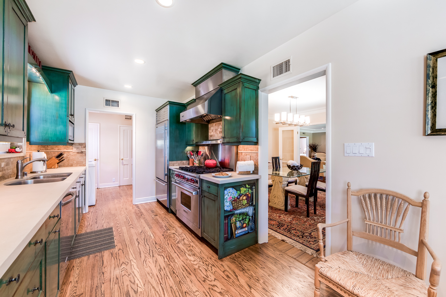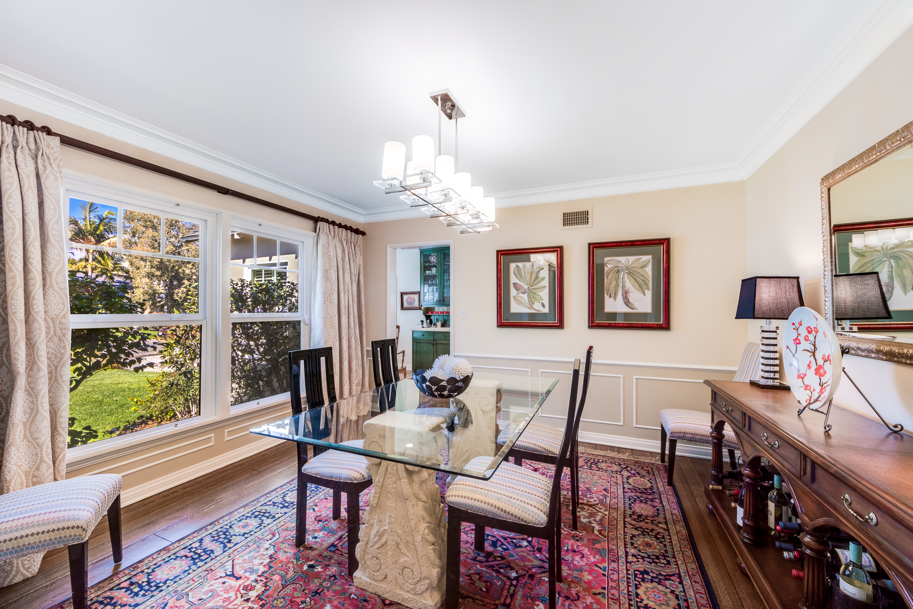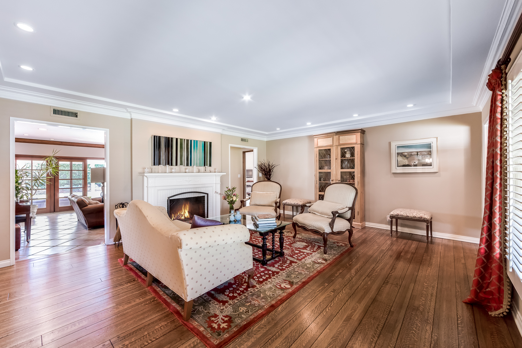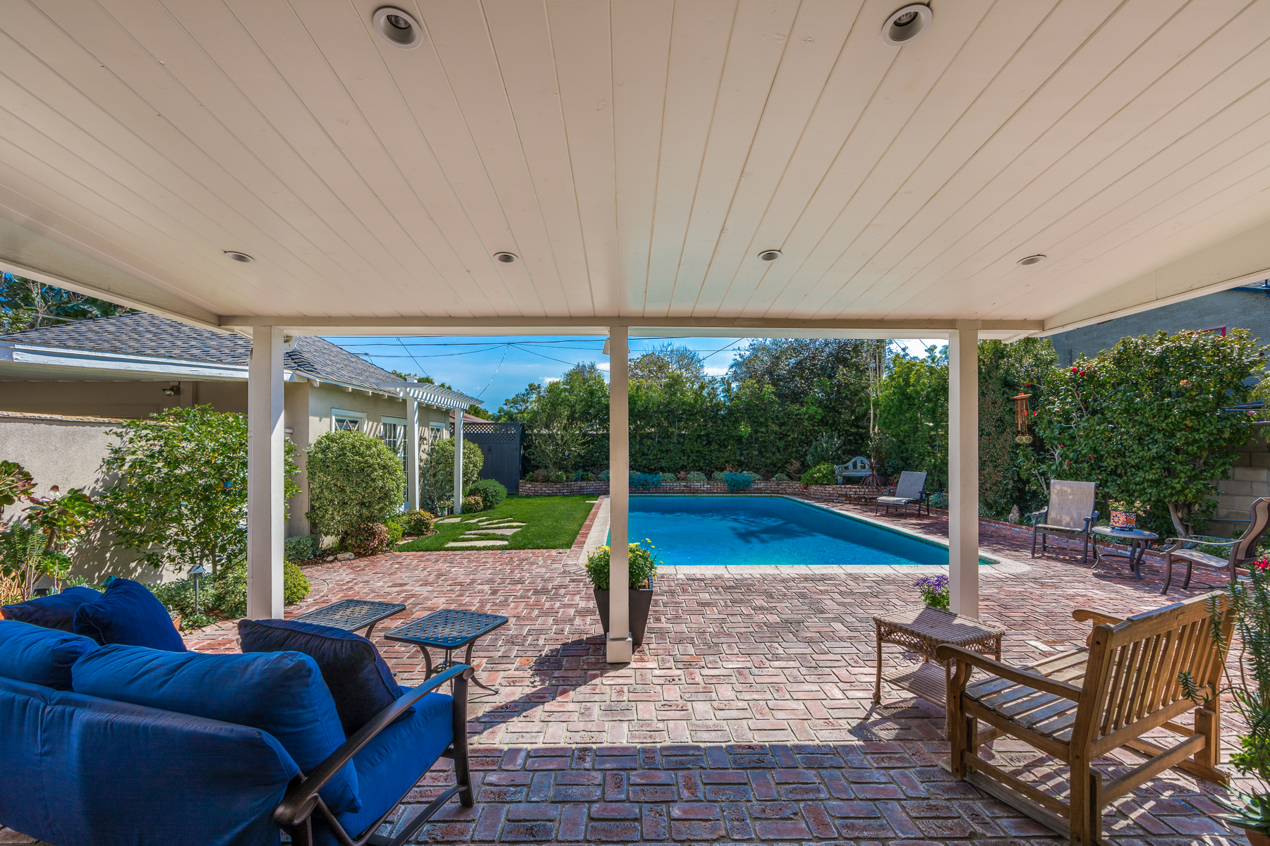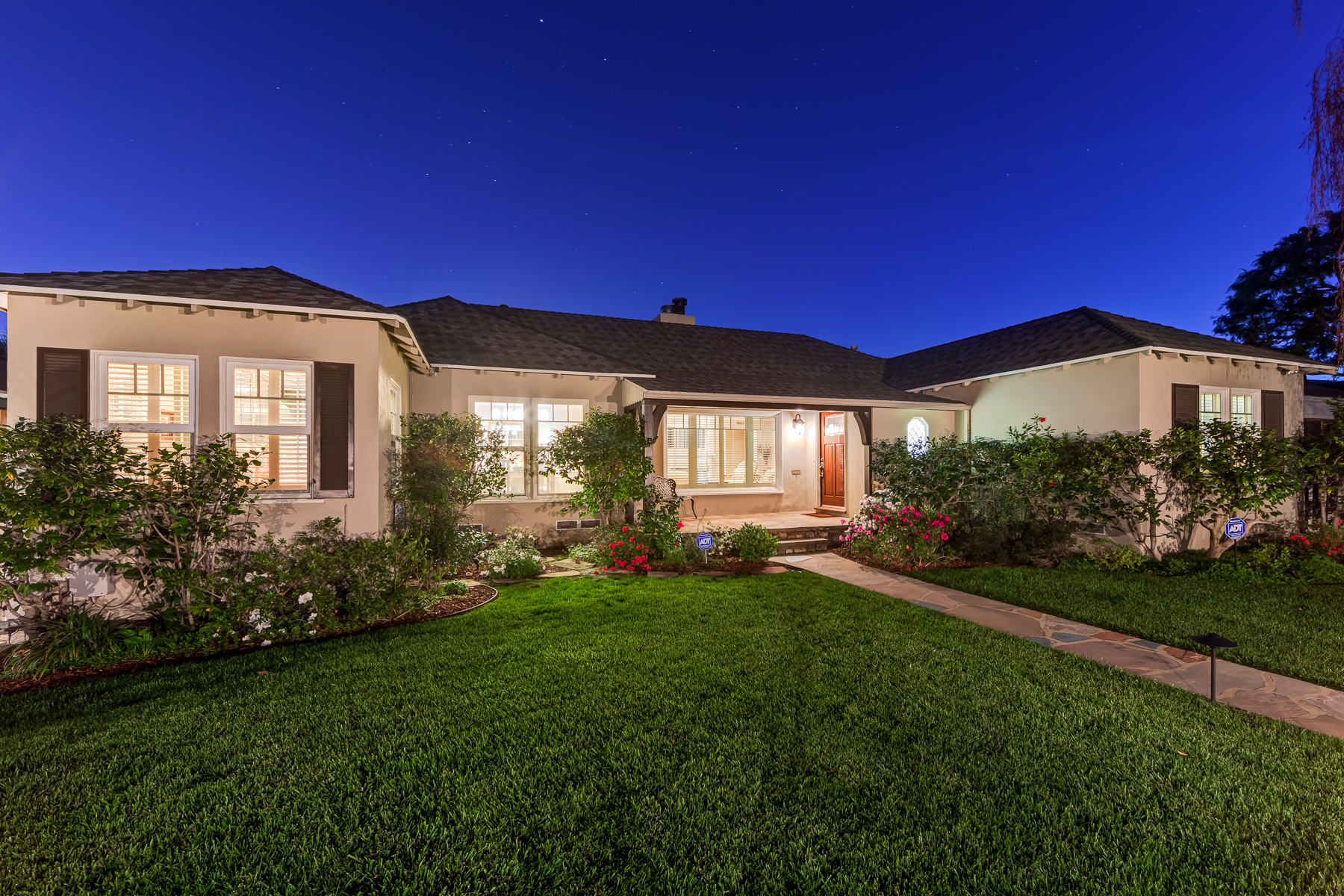 Charismatic 3 bed, 2 bath single story home in the Colfax School District of prime Valley Village. Beyond the charming white picket fence lies a lush front yard with well-manicured landscaping. Upon entry, you are greeted by hardwood floors and an abundance of natural light. The formal living room, with the first of two fireplaces, flows effortlessly to the formal dining room, lined with luxurious wainscoting. The kitchen offers a breakfast nook with built-in storage and features beautiful custom cabinets and high-end stainless steel appliances. Conveniently accessible from the kitchen is a separate laundry room with added storage and hand painted tiles. The first of three bedrooms serves as a great office space with built-in desk and en-suite bathroom. The living room shines from the full wall of windows and hosts the second fireplace, as well as a bar with built-in wine fridge. The spacious master bedroom allows direct access to the gorgeous backyard and the master bathroom is filled with luxurious details like an oversized rain shower, warmed mirror to stop fogging, in-cabinet outlets, separate soaking tub, vanity area, and generous closet space. The backyard is great for entertaining; complete with lush landscaping for additional privacy, built in BBQ, and oversized lap pool. The backyard also offers a 500+ sqft permitted, detached studio space with beamed ceilings and built-in bar– great as a rec room, home gym, studio, office, and more. Additional features in this home include instant hot tankless water heater, security system, motorized security gate, new dual pane windows, crown molding throughout, and an unbeatable location.