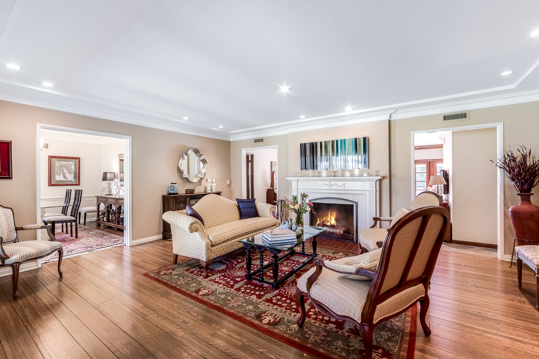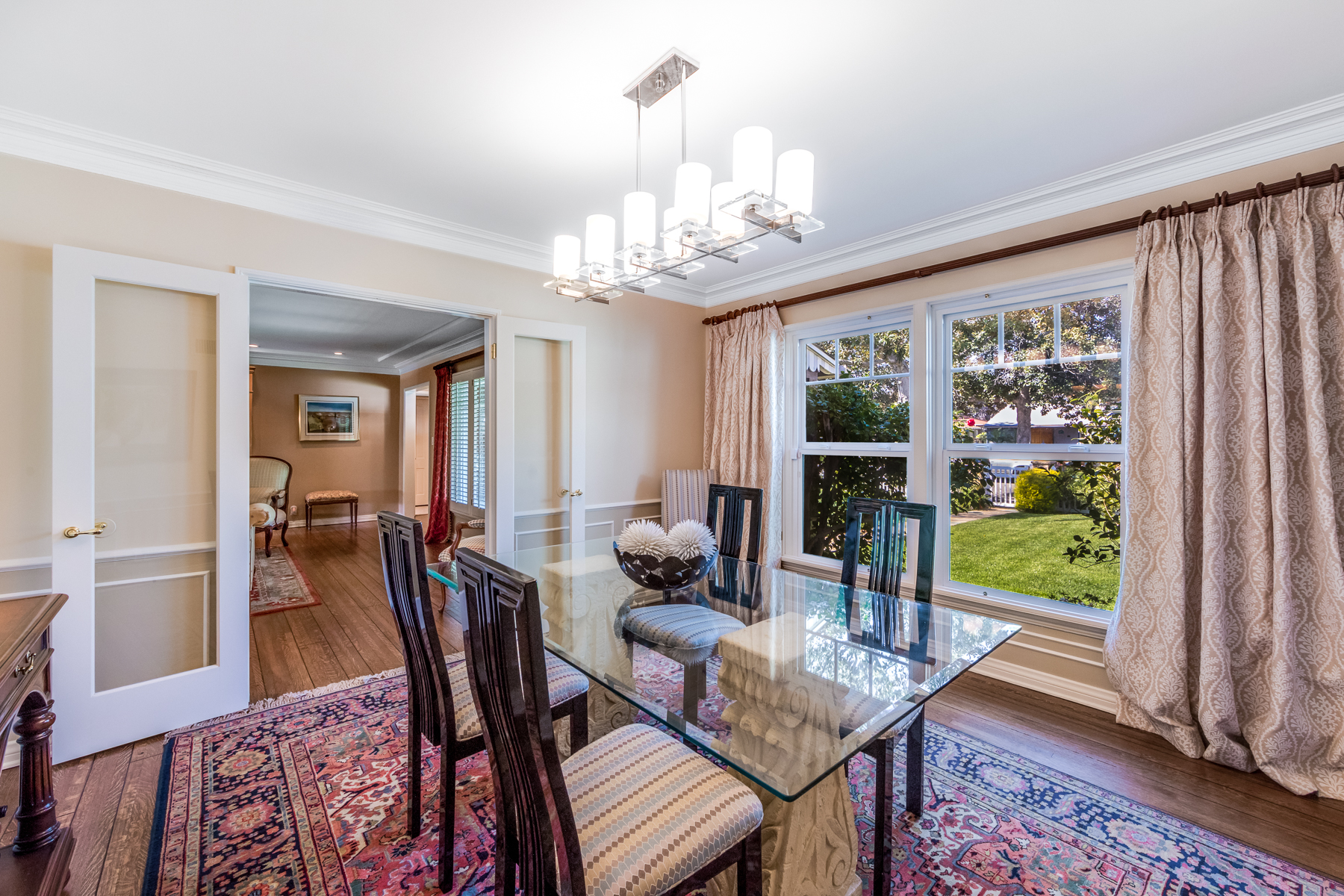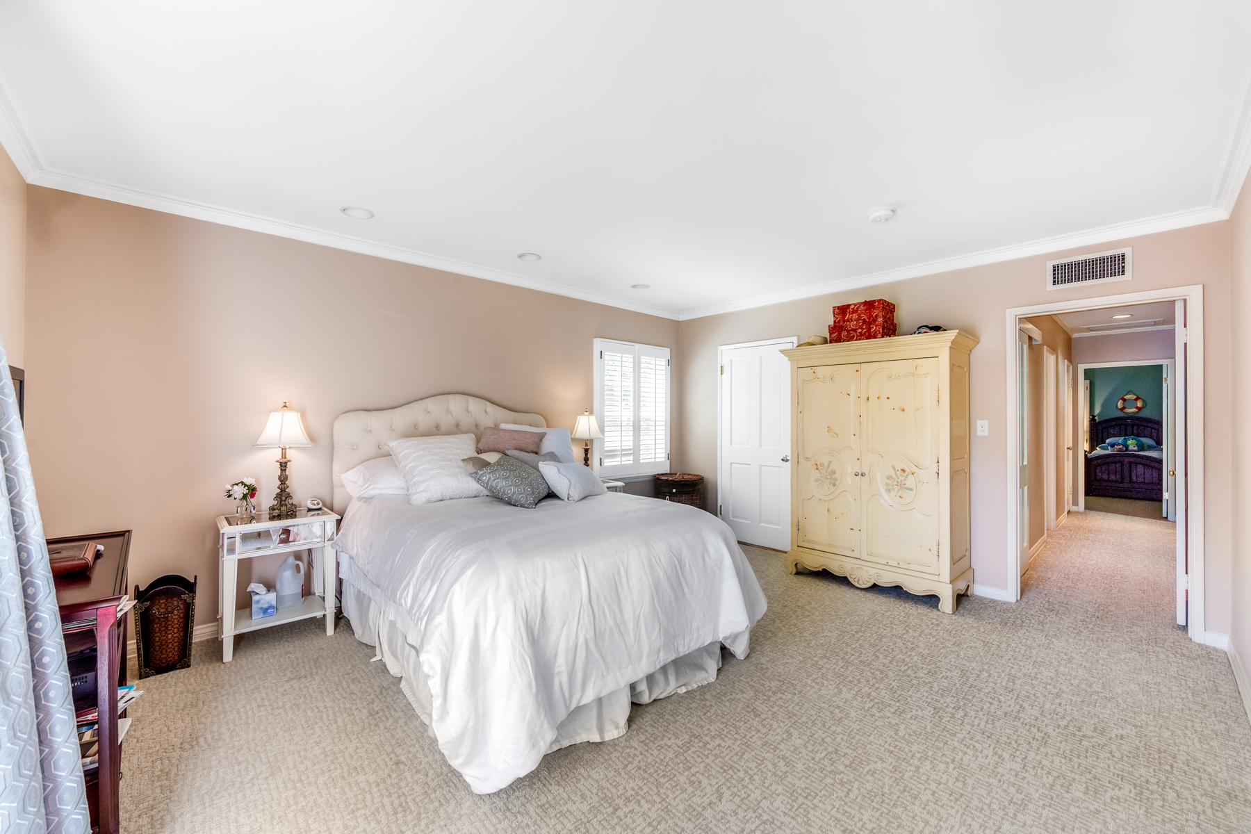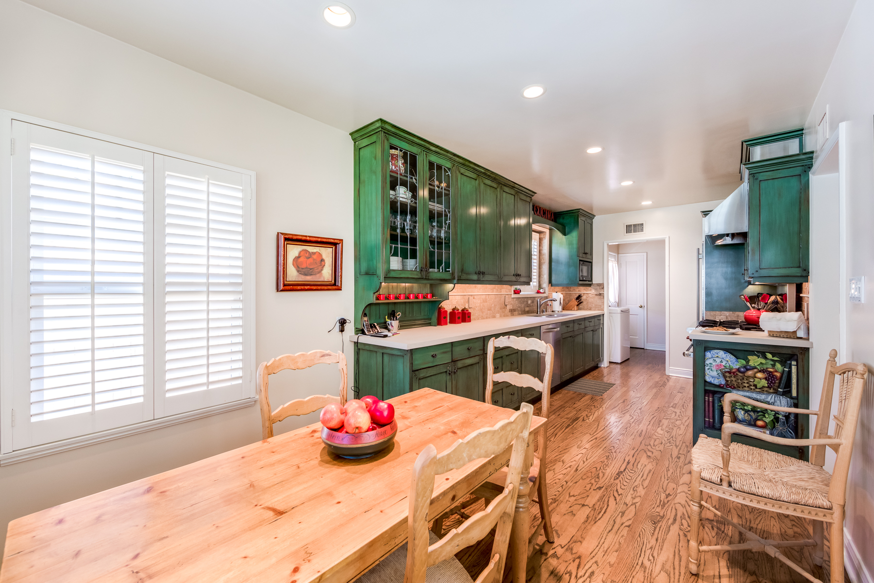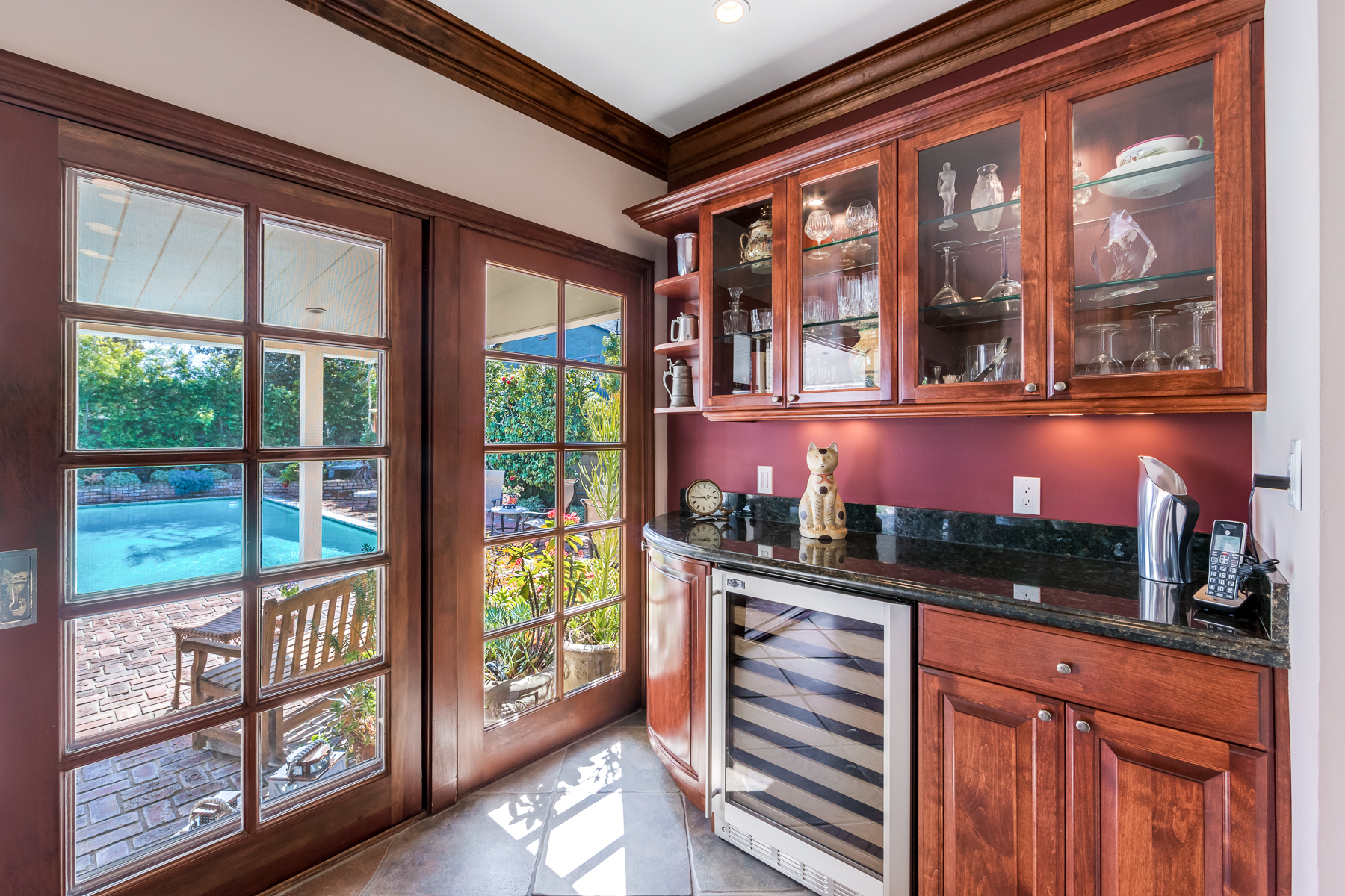 Charismatic 3 bed, 2 bath single story home in the Colfax School District of prime Valley Village. Beyond the charming white picket fence lies a lush front yard with well-manicured landscaping. Upon entry, you are greeted by hardwood floors and an abundance of natural light. The formal living room, with the first of two fireplaces, flows effortlessly to the formal dining room, lined with luxurious wainscoting. The kitchen offers a breakfast nook with built-in storage and features beautiful custom cabinets and high-end stainless steel appliances. Conveniently accessible from the kitchen is a separate laundry room with added storage and hand painted tiles. The first of three bedrooms serves as a great office space with built-in desk and en-suite bathroom. The living room shines from the full wall of windows and hosts the second fireplace, as well as a bar with built-in wine fridge. The spacious master bedroom allows direct access to the gorgeous backyard and the master bathroom is filled with luxurious details like an oversized rain shower, warmed mirror to stop fogging, in-cabinet outlets, separate soaking tub, vanity area, and generous closet space. The backyard is great for entertaining; complete with lush landscaping for additional privacy, built in BBQ, and oversized lap pool. The backyard also offers a 500+ sqft permitted, detached studio space with beamed ceilings and built-in bar– great as a rec room, home gym, studio, office, and more. Additional features in this home include instant hot tankless water heater, security system, motorized security gate, new dual pane windows, crown molding throughout, and an unbeatable location.