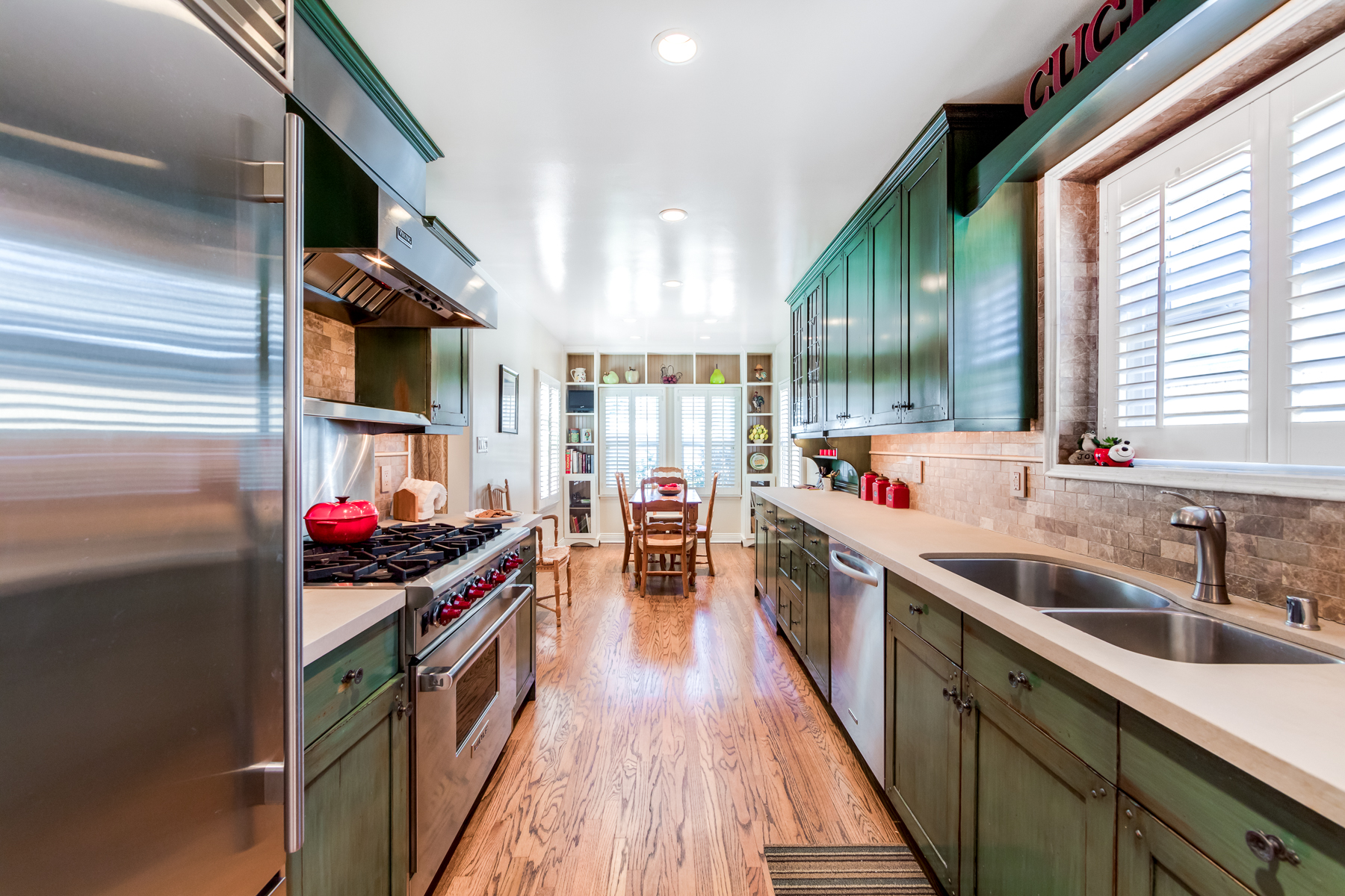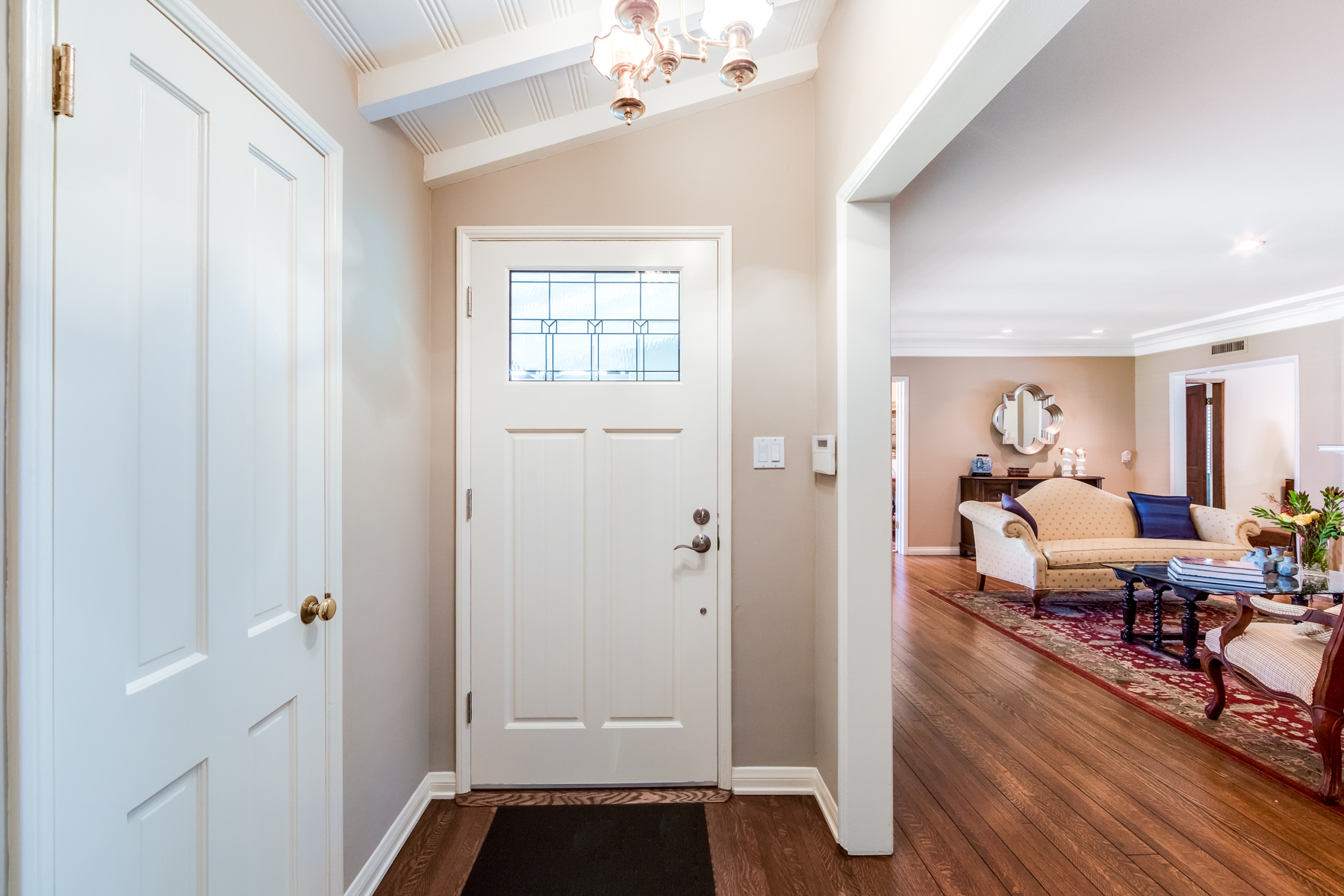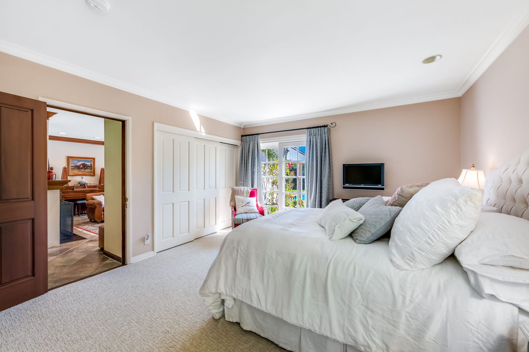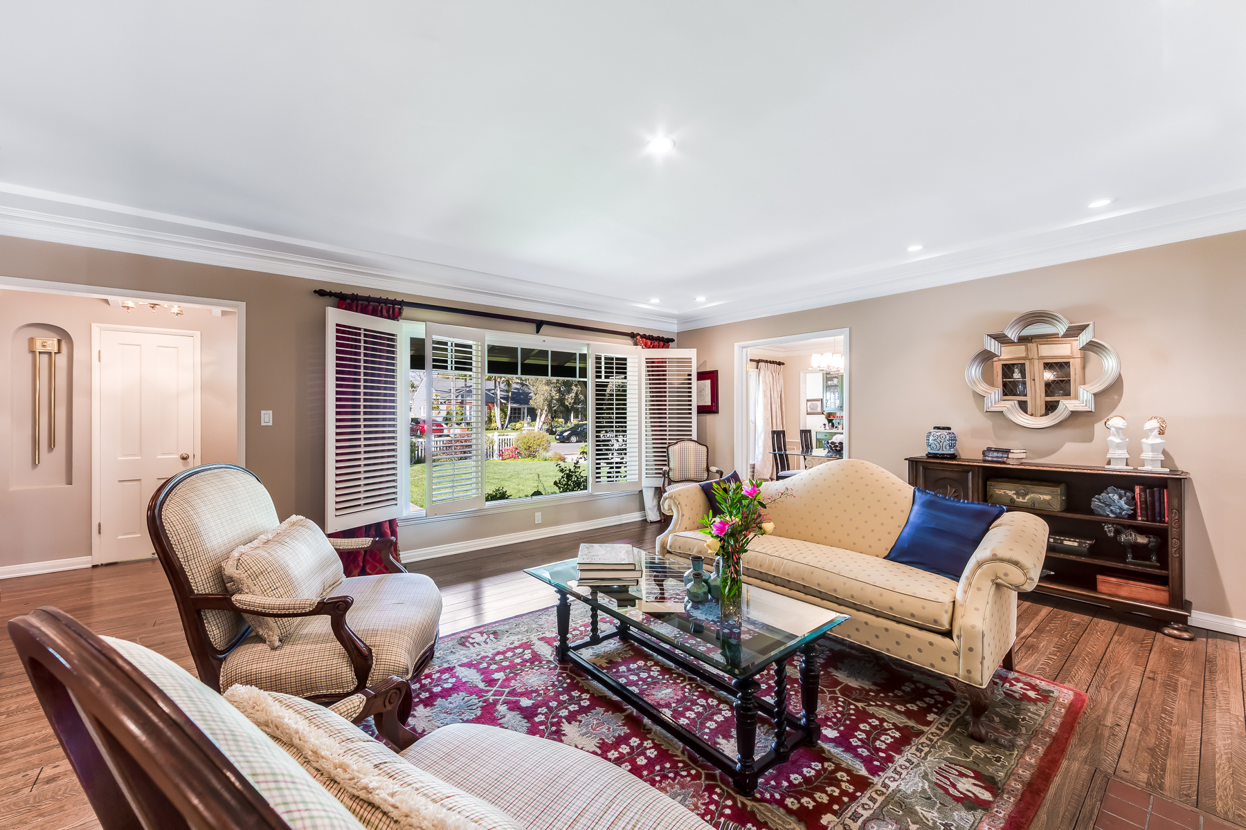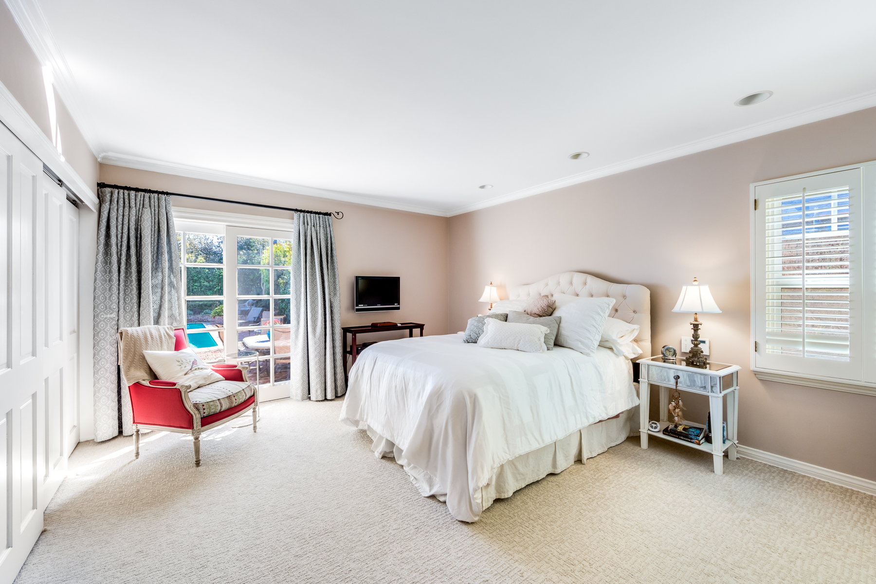 Charismatic 3 bed, 2 bath single story home in the Colfax School District of prime Valley Village. Beyond the charming white picket fence lies a lush front yard with well-manicured landscaping. Upon entry, you are greeted by hardwood floors and an abundance of natural light. The formal living room, with the first of two fireplaces, flows effortlessly to the formal dining room, lined with luxurious wainscoting. The kitchen offers a breakfast nook with built-in storage and features beautiful custom cabinets and high-end stainless steel appliances. Conveniently accessible from the kitchen is a separate laundry room with added storage and hand painted tiles. The first of three bedrooms serves as a great office space with built-in desk and en-suite bathroom. The living room shines from the full wall of windows and hosts the second fireplace, as well as a bar with built-in wine fridge. The spacious master bedroom allows direct access to the gorgeous backyard and the master bathroom is filled with luxurious details like an oversized rain shower, warmed mirror to stop fogging, in-cabinet outlets, separate soaking tub, vanity area, and generous closet space. The backyard is great for entertaining; complete with lush landscaping for additional privacy, built in BBQ, and oversized lap pool. The backyard also offers a 500+ sqft permitted, detached studio space with beamed ceilings and built-in bar– great as a rec room, home gym, studio, office, and more. Additional features in this home include instant hot tankless water heater, security system, motorized security gate, new dual pane windows, crown molding throughout, and an unbeatable location.