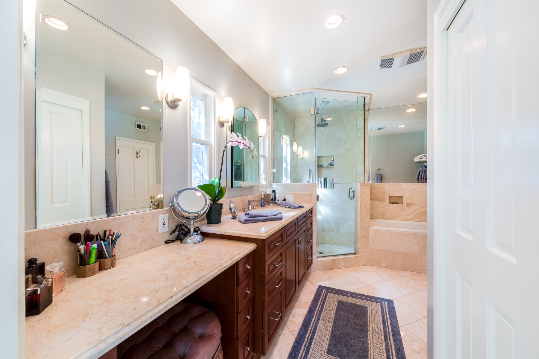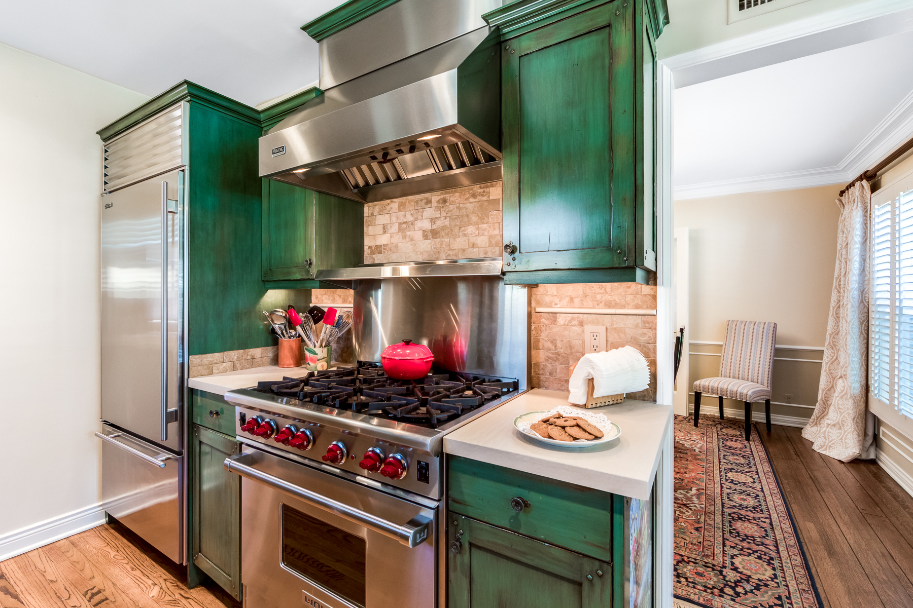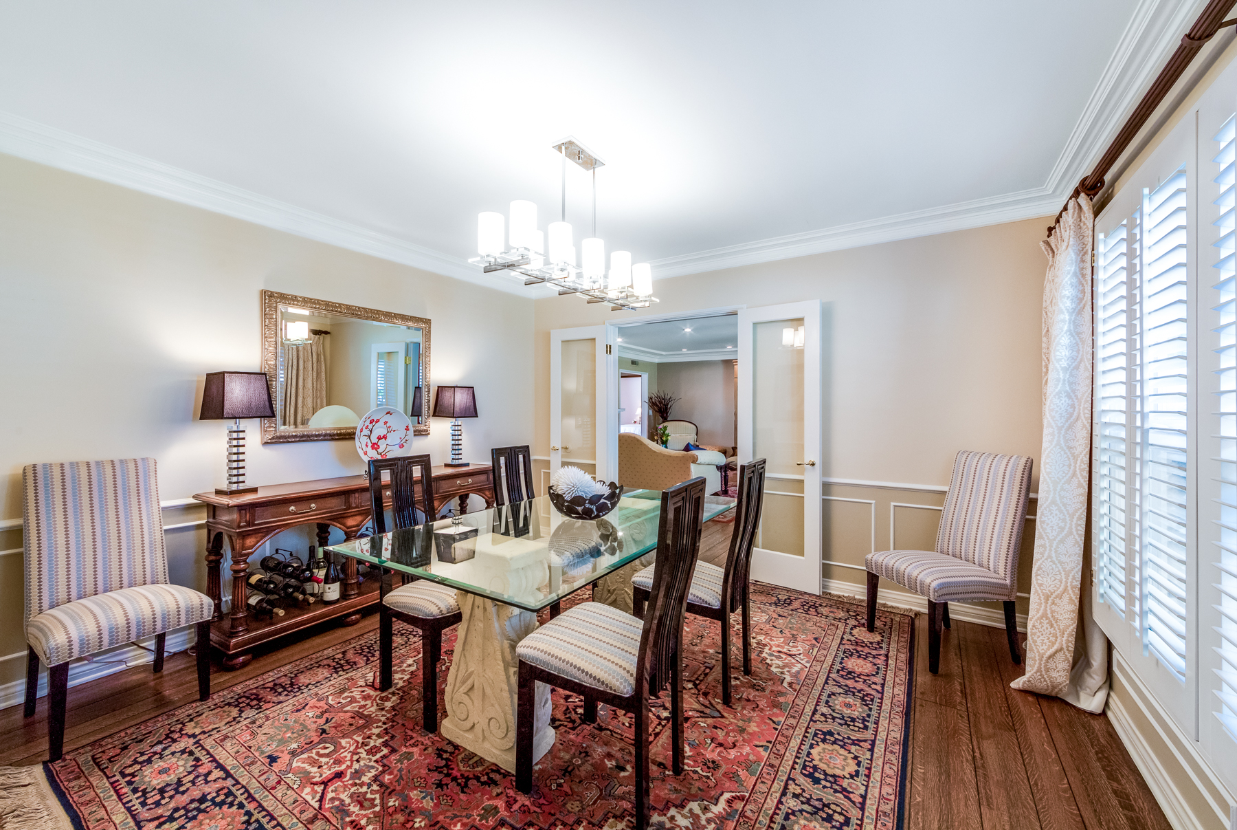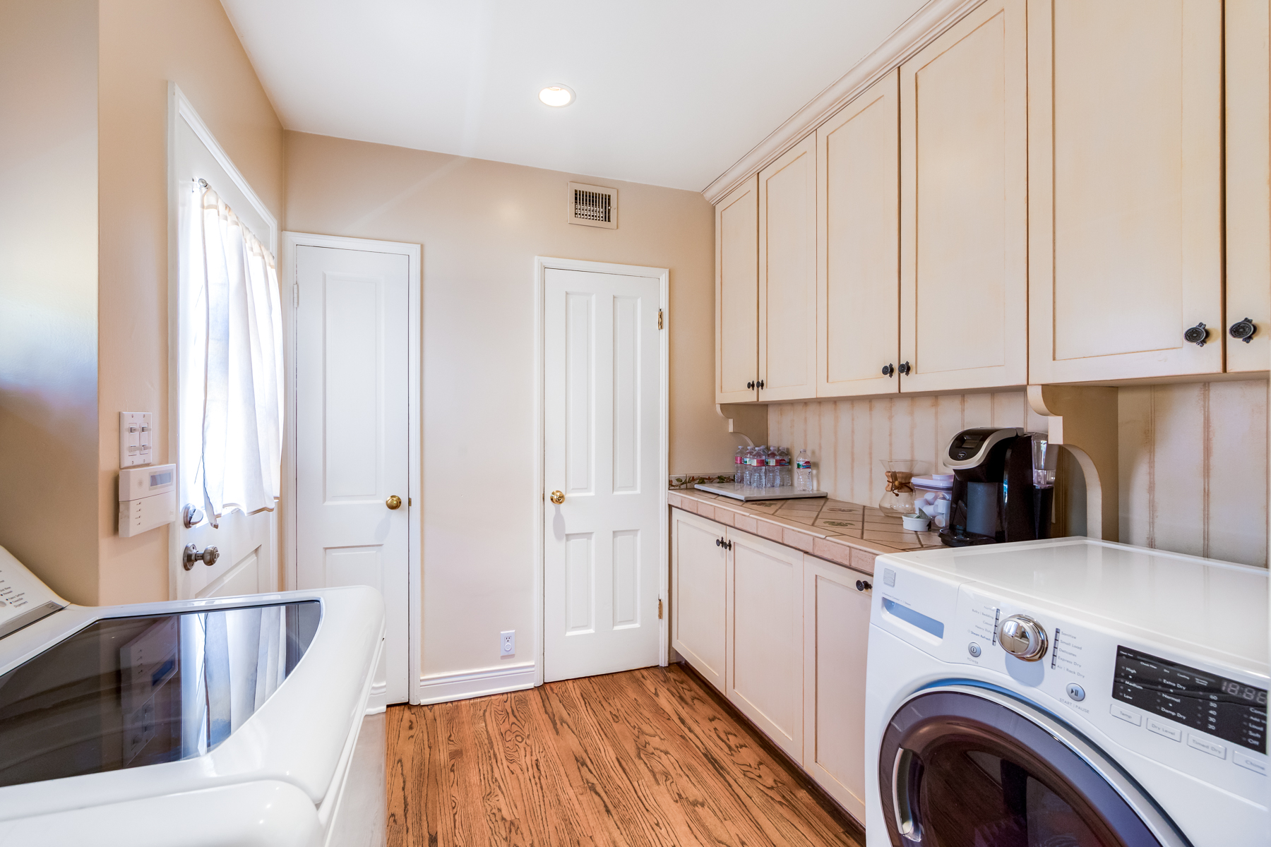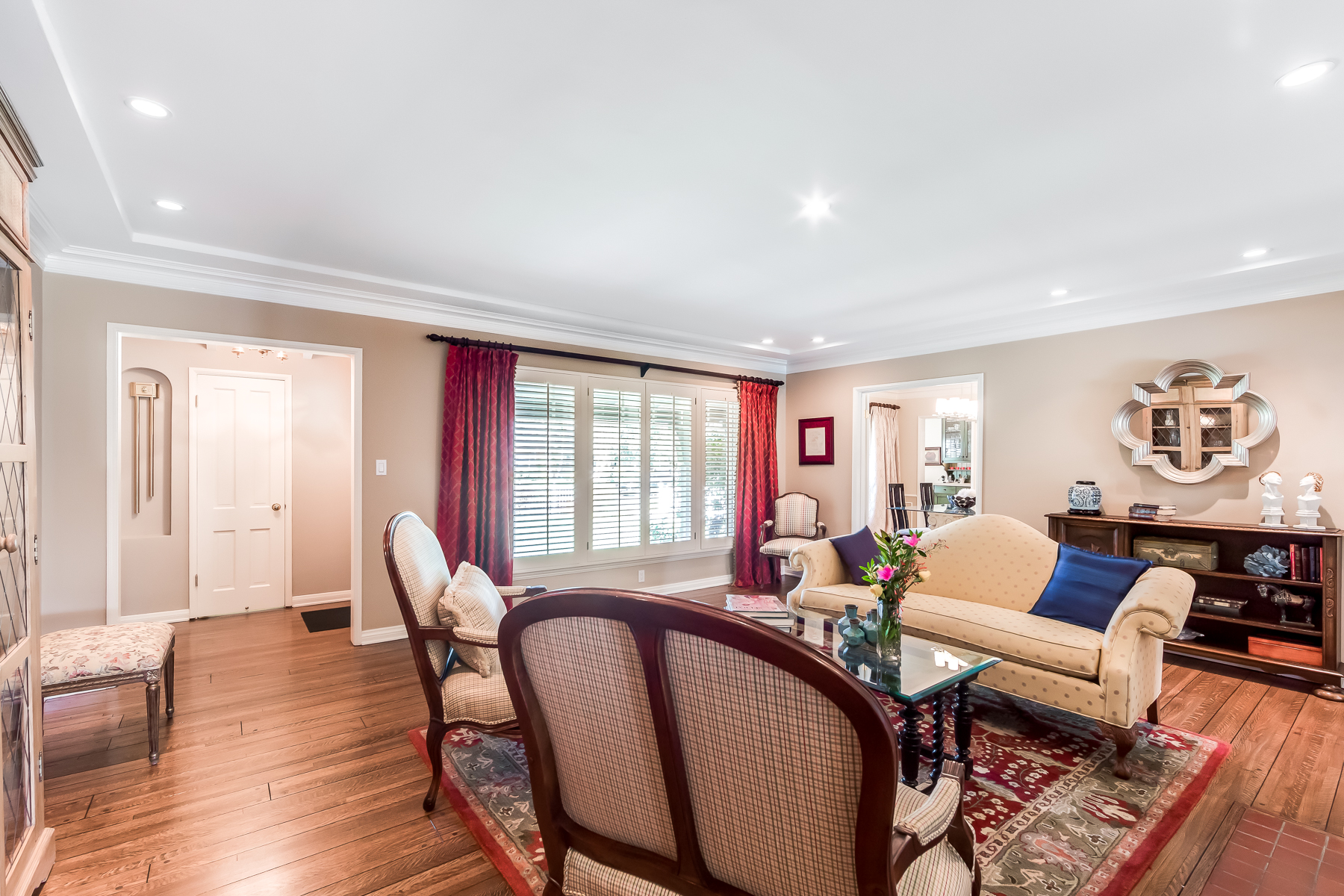 Charismatic 3 bed, 2 bath single story home in the Colfax School District of prime Valley Village. Beyond the charming white picket fence lies a lush front yard with well-manicured landscaping. Upon entry, you are greeted by hardwood floors and an abundance of natural light. The formal living room, with the first of two fireplaces, flows effortlessly to the formal dining room, lined with luxurious wainscoting. The kitchen offers a breakfast nook with built-in storage and features beautiful custom cabinets and high-end stainless steel appliances. Conveniently accessible from the kitchen is a separate laundry room with added storage and hand painted tiles. The first of three bedrooms serves as a great office space with built-in desk and en-suite bathroom. The living room shines from the full wall of windows and hosts the second fireplace, as well as a bar with built-in wine fridge. The spacious master bedroom allows direct access to the gorgeous backyard and the master bathroom is filled with luxurious details like an oversized rain shower, warmed mirror to stop fogging, in-cabinet outlets, separate soaking tub, vanity area, and generous closet space. The backyard is great for entertaining; complete with lush landscaping for additional privacy, built in BBQ, and oversized lap pool. The backyard also offers a 500+ sqft permitted, detached studio space with beamed ceilings and built-in bar– great as a rec room, home gym, studio, office, and more. Additional features in this home include instant hot tankless water heater, security system, motorized security gate, new dual pane windows, crown molding throughout, and an unbeatable location.