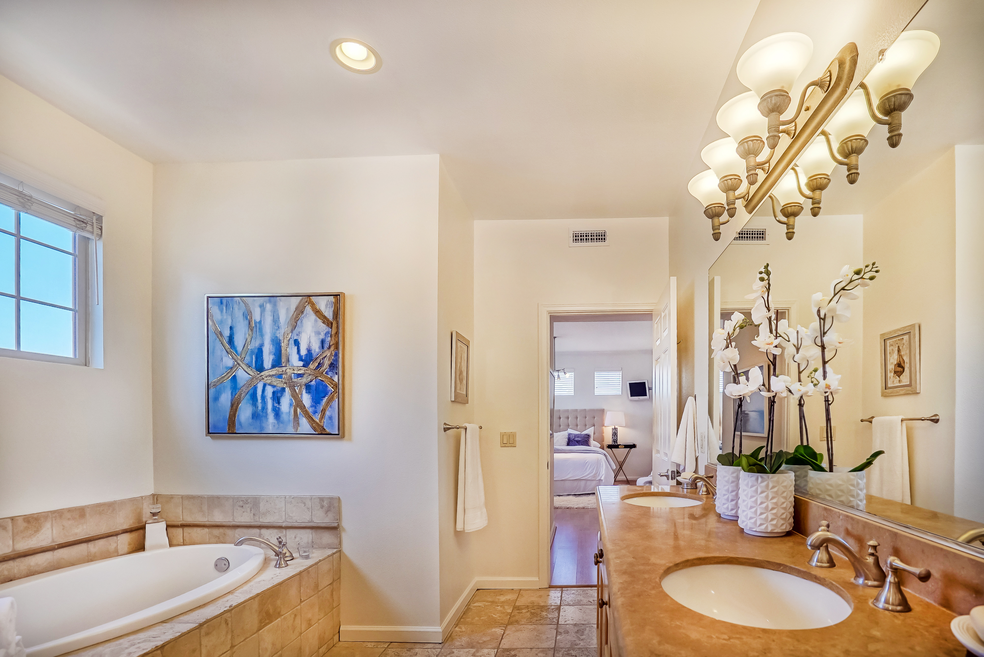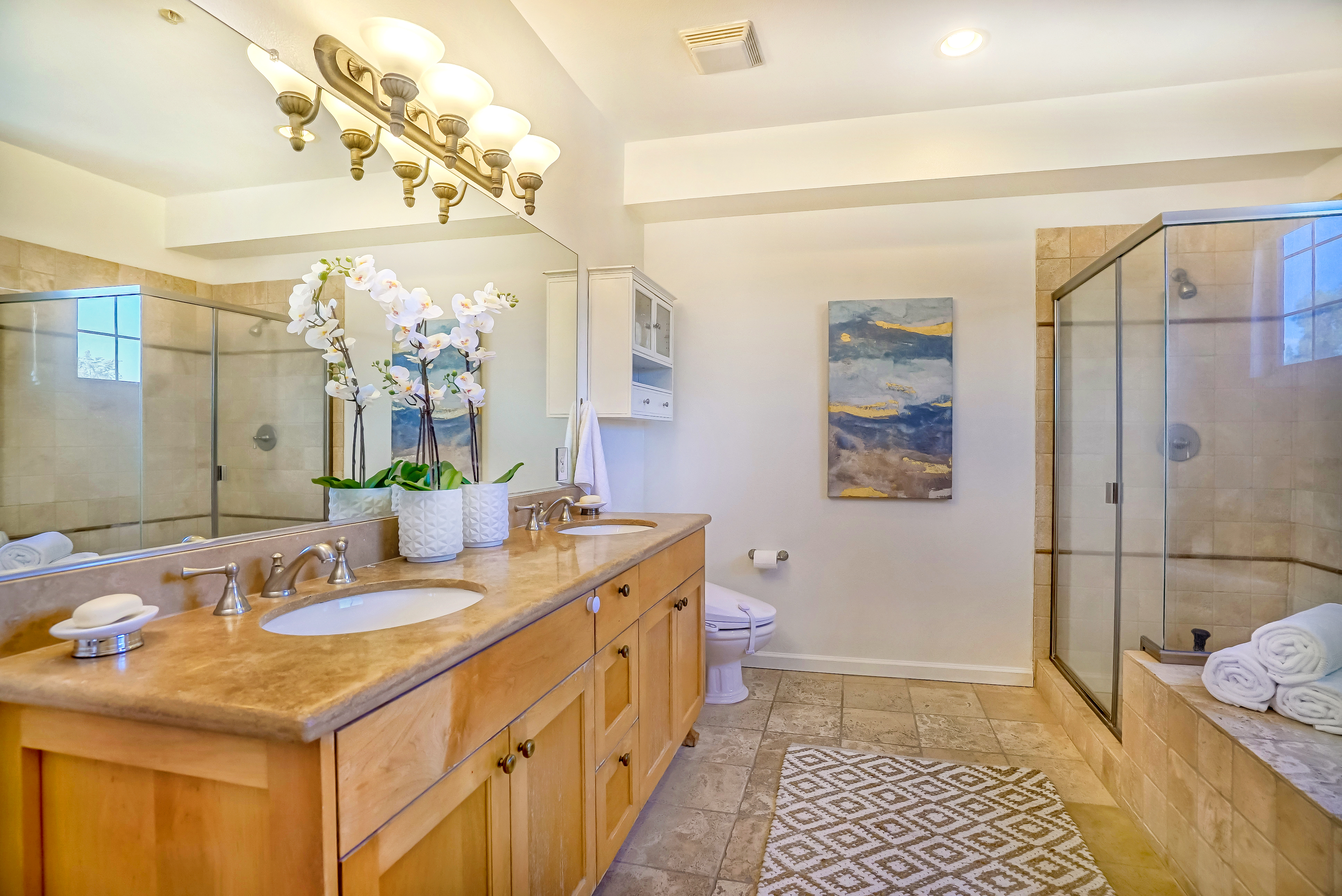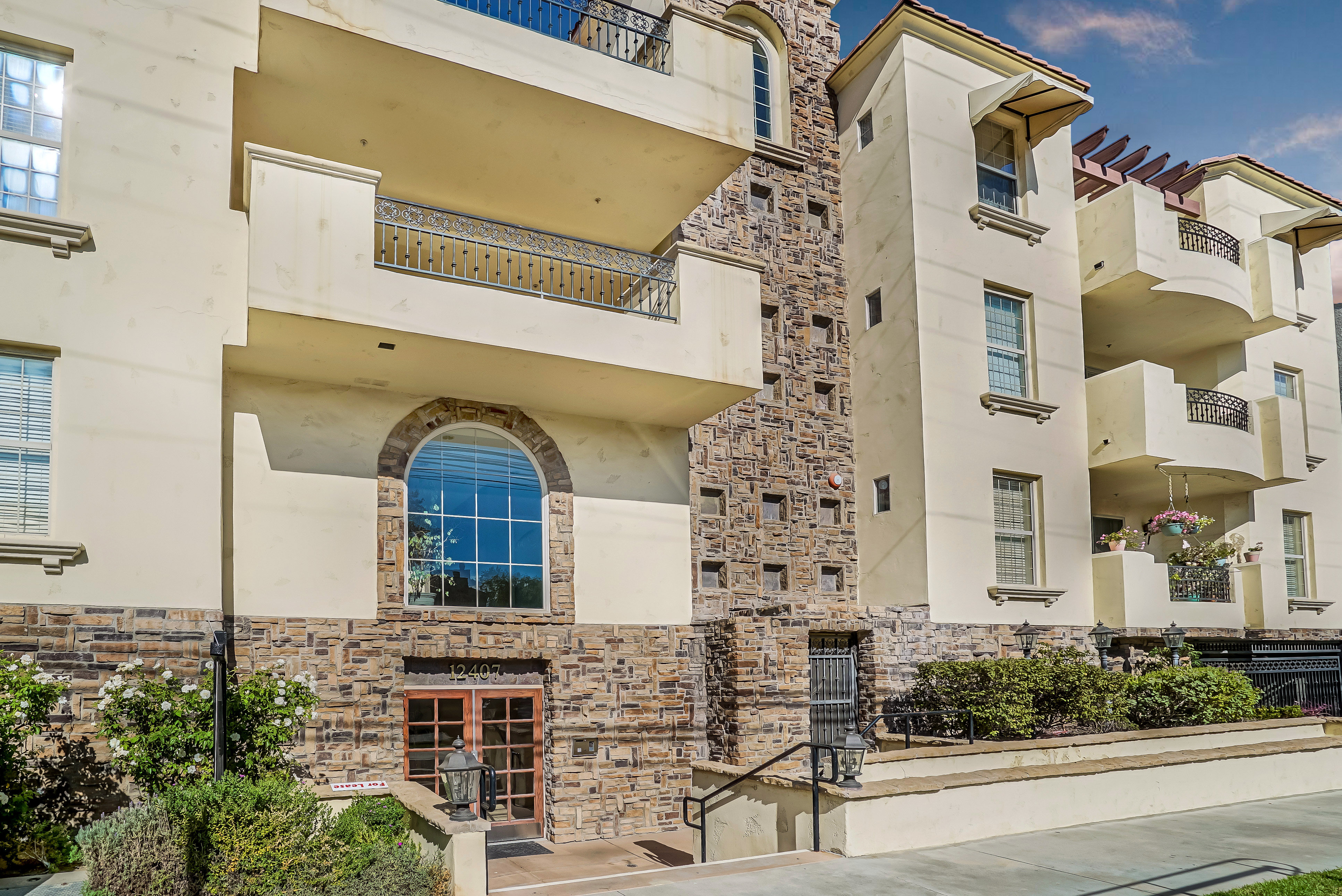 Beautiful 2 bed, 2.5 bath, single level condo in Prime Studio City. This unit features high ceilings and abundant windows, making it light and bright. The kitchen has granite counter tops, plentiful cabinets, stainless steel appliances, and a breakfast bar that opens up to the living and dining rooms. The spacious living room boasts a lovely fireplace and double doors that open to the large balcony. The two en-suite bedrooms are on opposite ends of the unit, providing privacy and comfort. The master bathroom has dual sinks, a large soaking tub, and oversized glass enclosed shower. Other amenities include in-unit laundry, ample storage, and central HVAC. The building has a secured entrance and community gym. Conveniently located to the 101 freeway, Beeman Park, and moments from Ventura Blvd. and the Studio City Farmer’s Market, this is your dream condo!