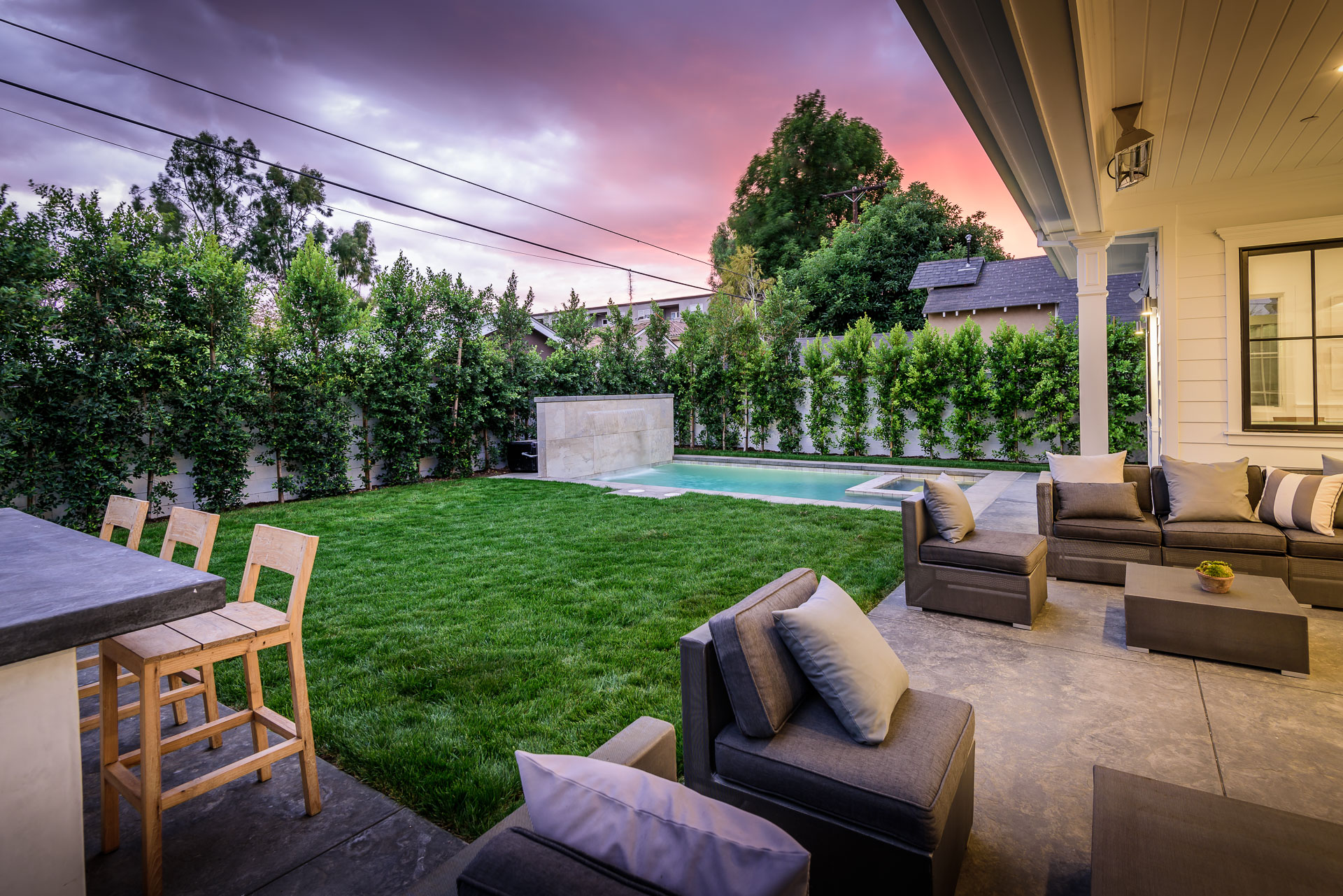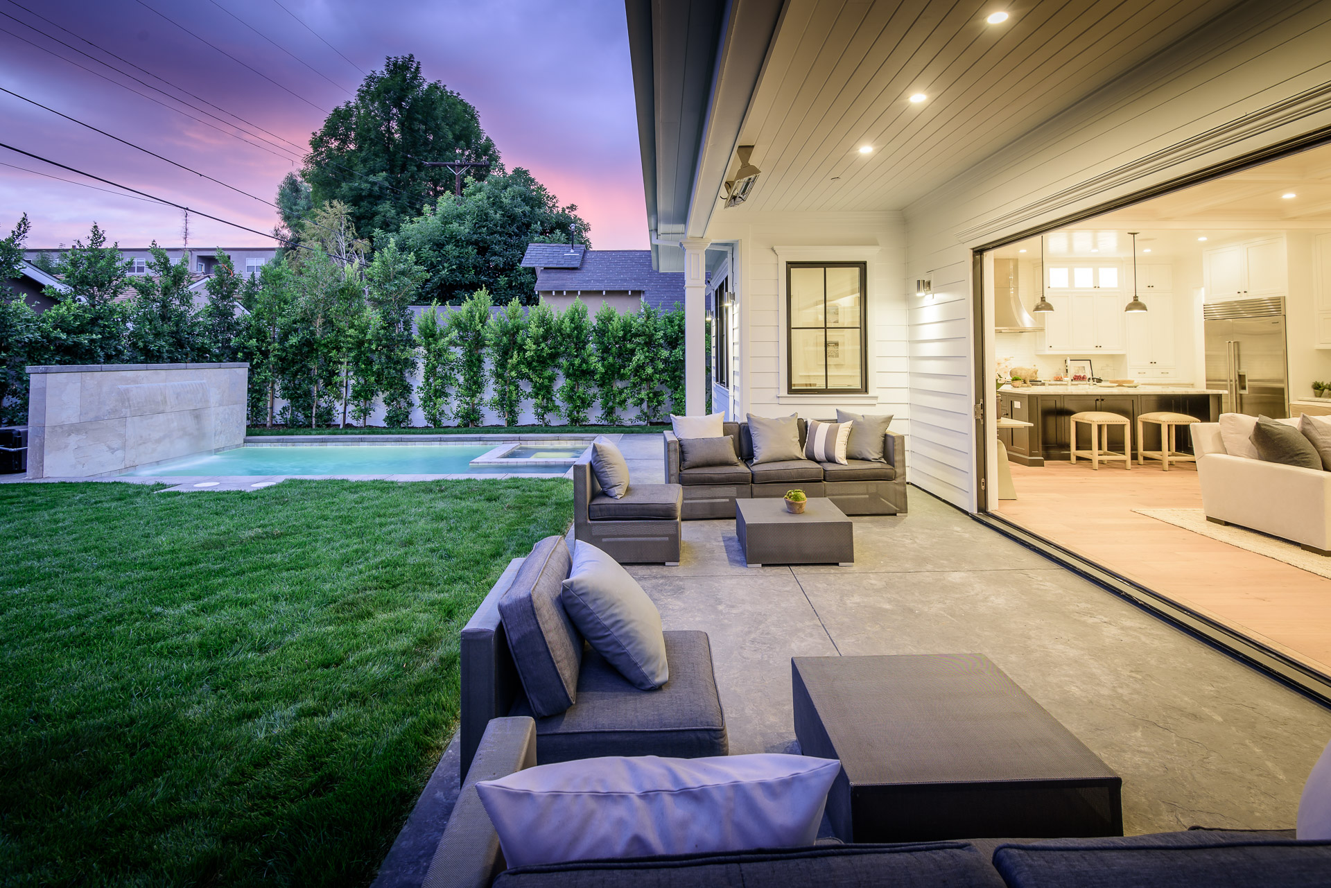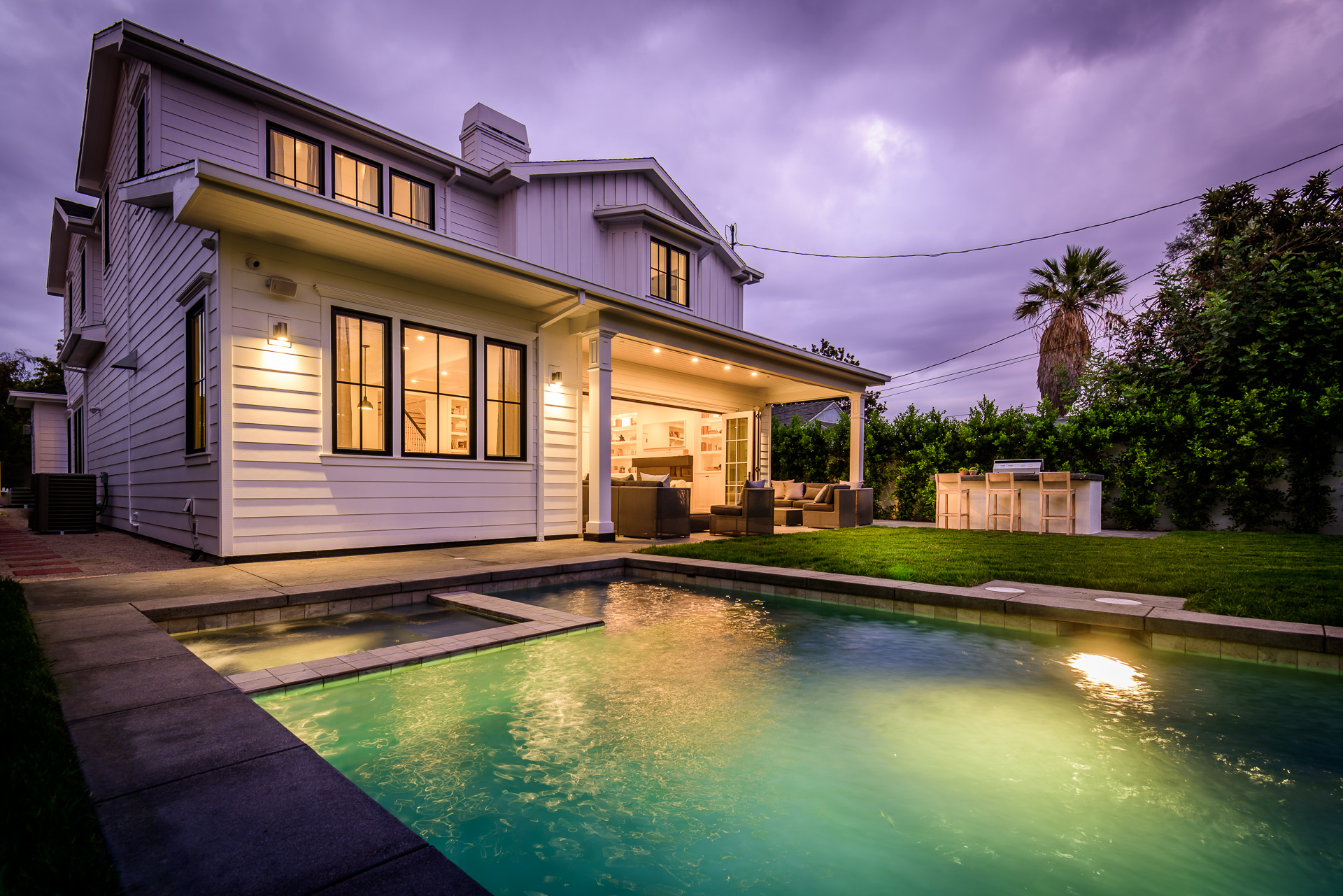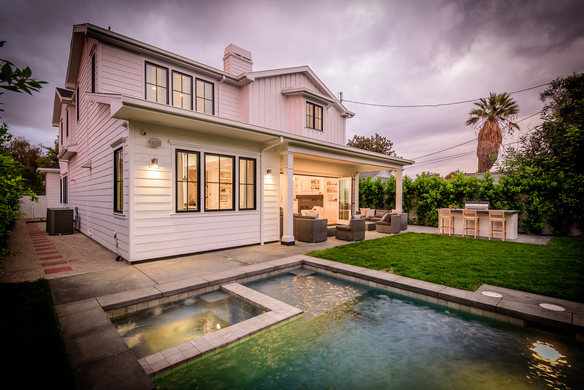 This newly constructed luxury home is positioned at the end of a cul-de-sac within a private and quaint neighborhood centrally located in the heart of Studio City. This enchanting home is strategically located near the Ventura Blvd., LA River Walk, Weddington Golf Course, and Beeman Park. Designed by an Ivy League architect, Di Nali Construction, spared no expenses on its striking architectural details and environmentally friendly amenities. Inspired by the love of technology and living green, this sophisticated smart house has LED lighting throughout, 10ft ceilings on the first floor, security cameras, 220V electric car charger, aluminum clad windows, an iPad docking system and is equipped for future solar expansion. The gourmet kitchen is highlighted by a huge center island, breakfast area, adjoining butler’s pantry and Sub Zero and Wolf stainless steel appliances. The large family room opens up to a heated patio, built-in BBQ and a heated salt water Baja style pool and spa. The master suite takes center stage with dual closets, soak-in tub, and detached shower with multiple shower heads for any need.