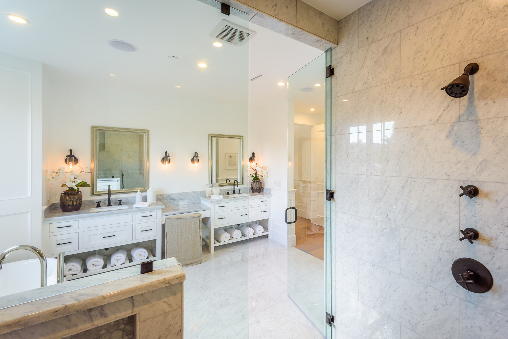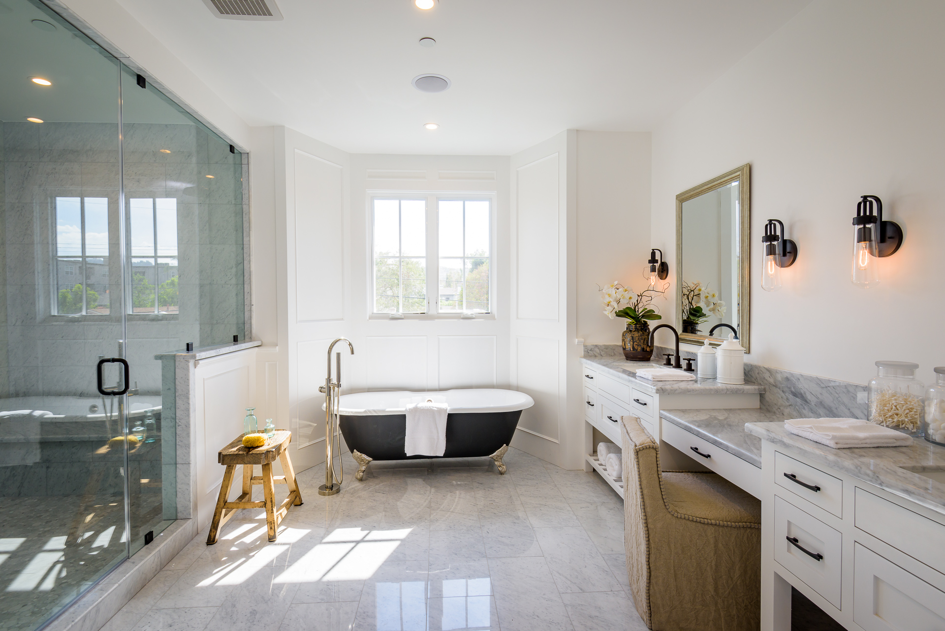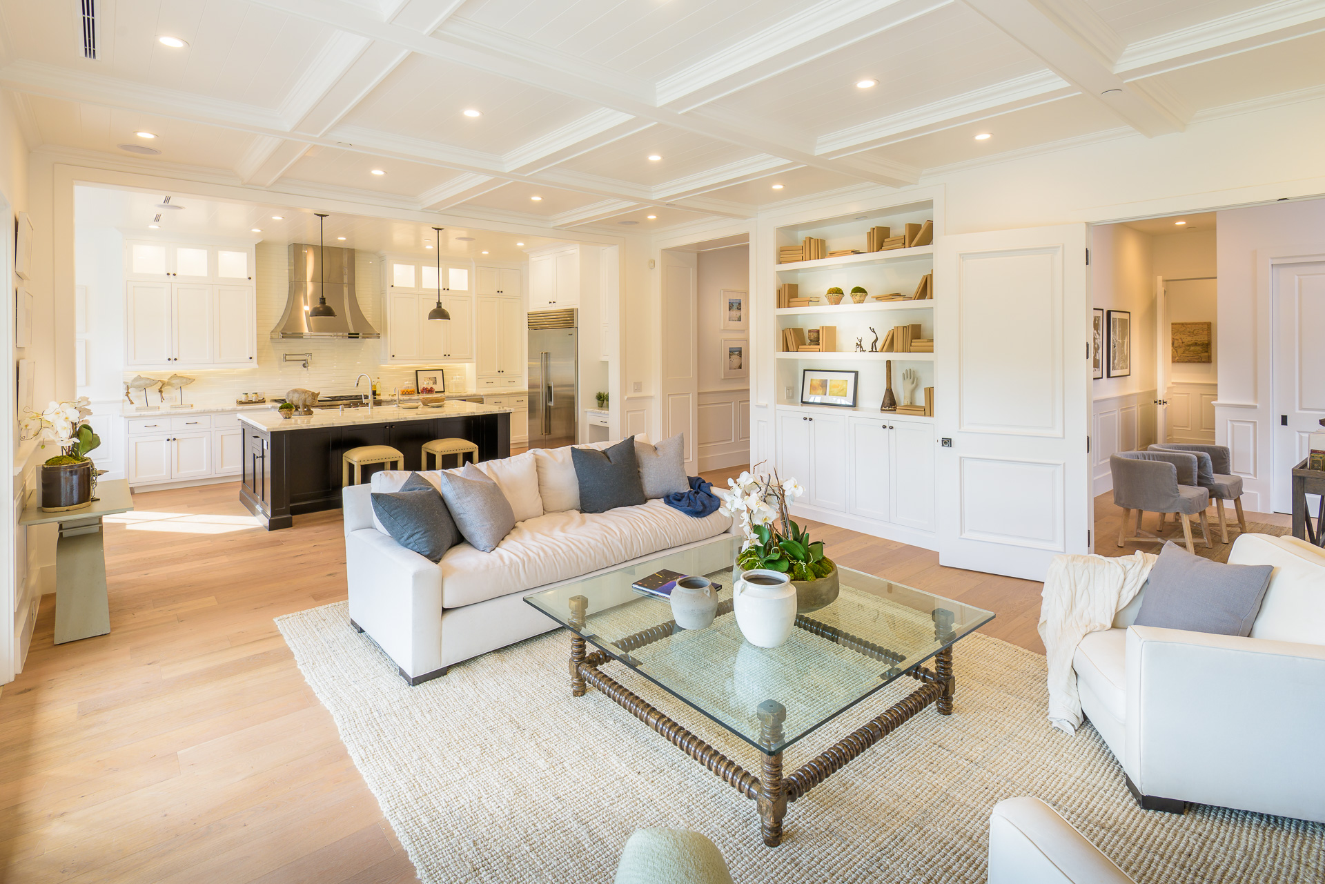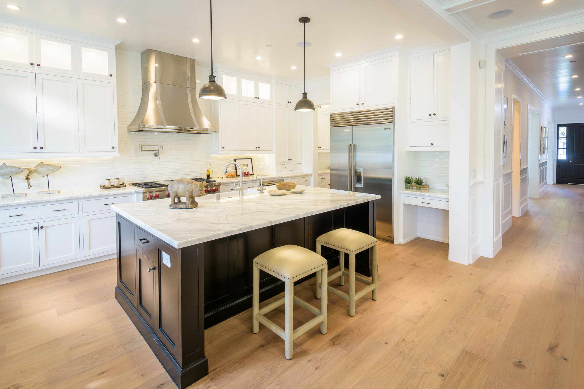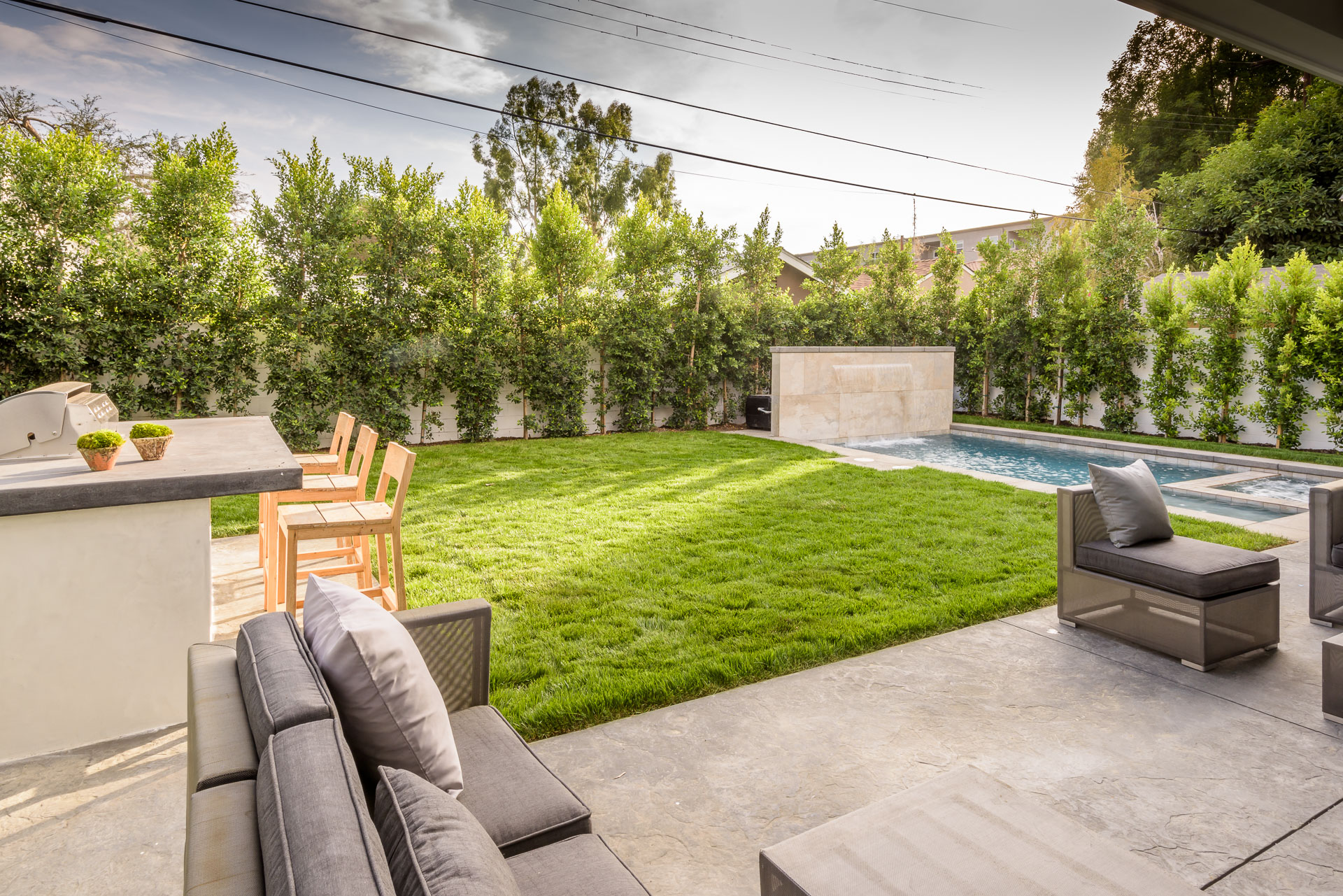 This newly constructed luxury home is positioned at the end of a cul-de-sac within a private and quaint neighborhood centrally located in the heart of Studio City. This enchanting home is strategically located near the Ventura Blvd., LA River Walk, Weddington Golf Course, and Beeman Park. Designed by an Ivy League architect, Di Nali Construction, spared no expenses on its striking architectural details and environmentally friendly amenities. Inspired by the love of technology and living green, this sophisticated smart house has LED lighting throughout, 10ft ceilings on the first floor, security cameras, 220V electric car charger, aluminum clad windows, an iPad docking system and is equipped for future solar expansion. The gourmet kitchen is highlighted by a huge center island, breakfast area, adjoining butler’s pantry and Sub Zero and Wolf stainless steel appliances. The large family room opens up to a heated patio, built-in BBQ and a heated salt water Baja style pool and spa. The master suite takes center stage with dual closets, soak-in tub, and detached shower with multiple shower heads for any need.