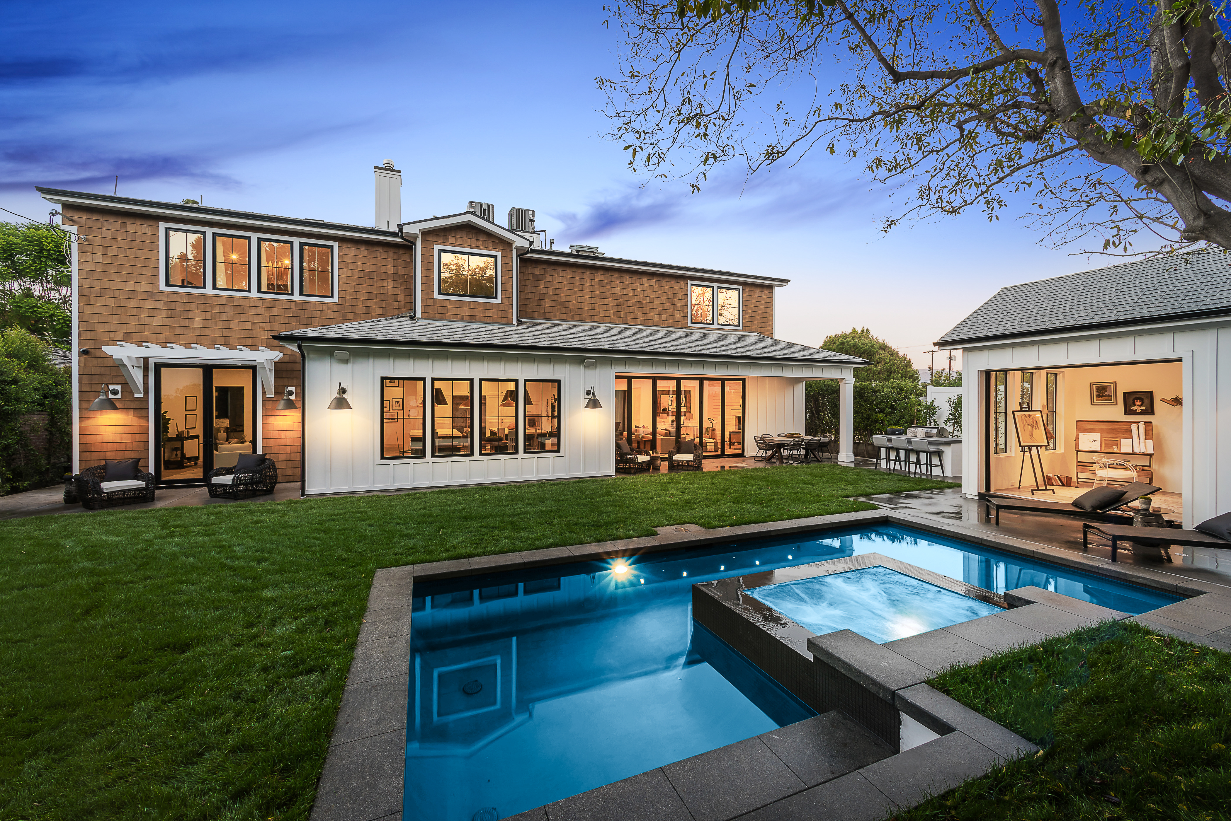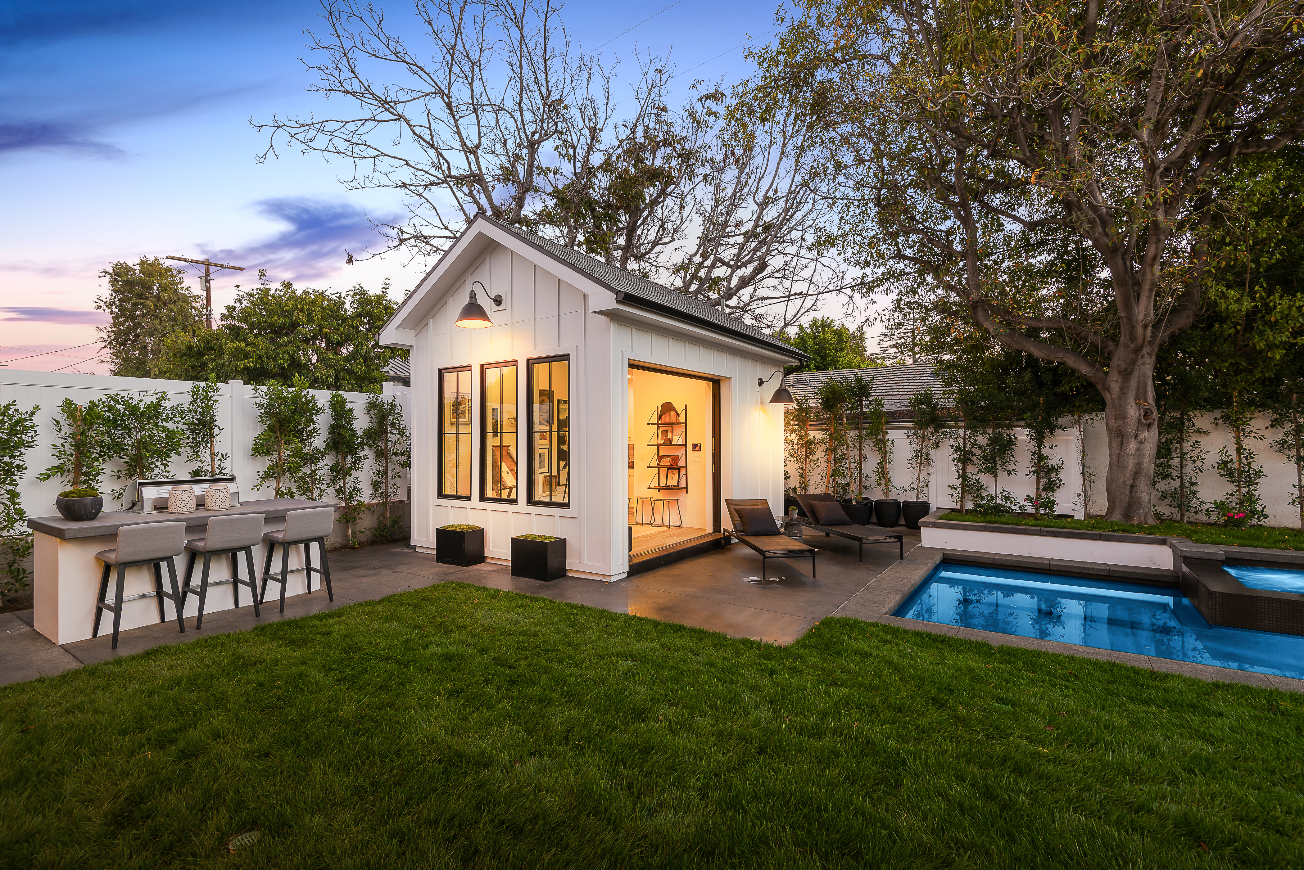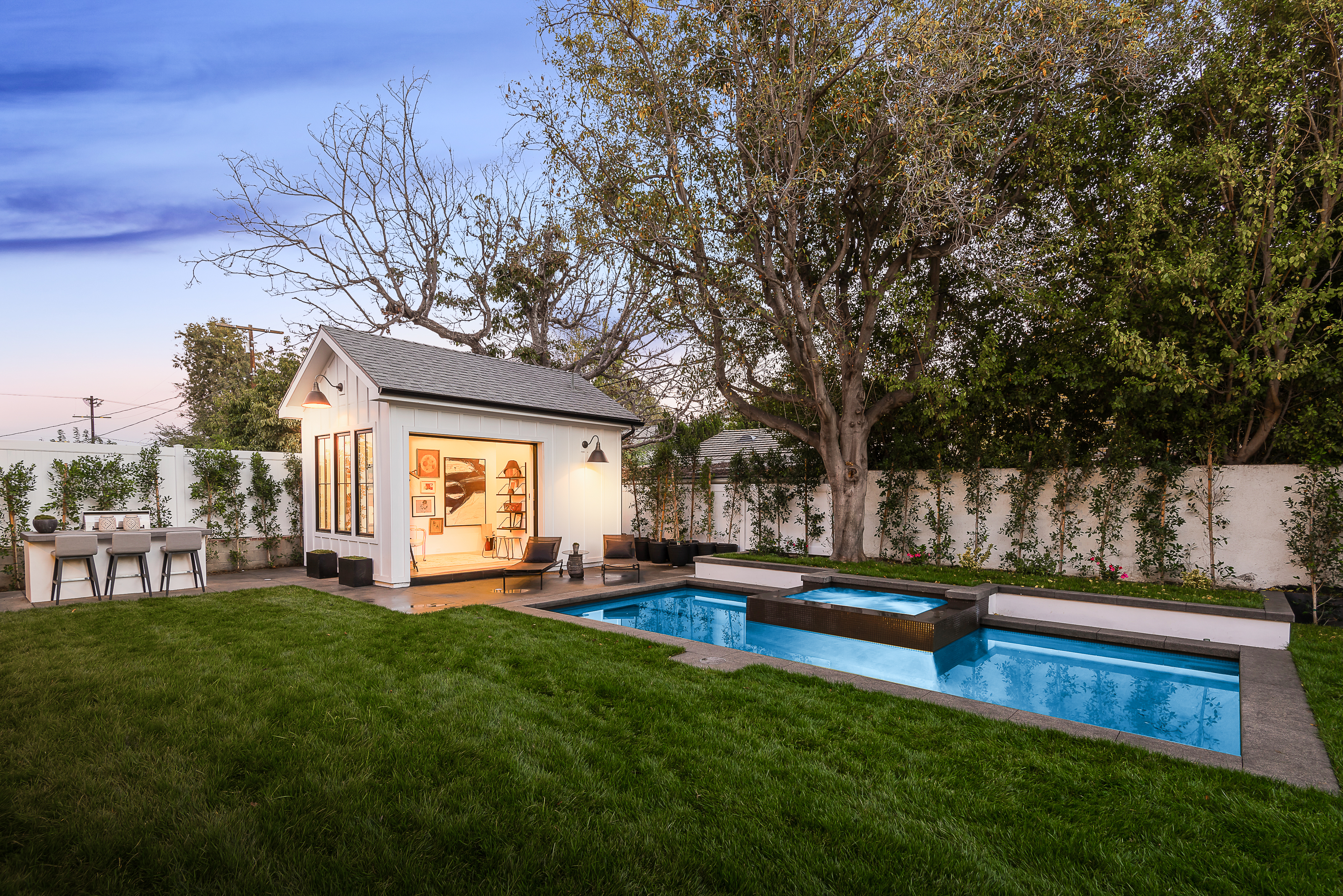Located in the heart of Studio City, nearby Ventura Boulevard, this Newly Built Construction home boasts over 5,400 sq.ft. A Circular Driveway provides great curb appeal as you entire this 5-bed, 7-bath home with designer finishes and custom light fixtures featured throughout. This modern styled home adds charm into every single room. As you step inside you will be greeted with the formal living room that includes a fireplace, a perfect place to spend time with friends and family as you cozy up on those cold winter nights. The Gourmet chefs kitchen offers two oversized center islands, providing an abundance amount of space for hosting dinner parties. It includes a butlers pantry that adds additional cabinet space. For all the movie-lovers is a private 8-seater state of the art Theatre off of the family room. As you walk up towards the second story of the house you will be invited into the loft/den area. The master suite includes a built-in fireplace, spacious walk-in closet, along with a beautifu bathroom with a double vanity and a freestanding bathtub. A separate laundry room is located upstairs. Double doors open the family area into the backyard that is perfect for entertainment and outdoor dining. It includes a pool & spa, BBQ area, and a guesthouse. Minutes away from Beeman Park, fine dining, shopping, & entertainment.
