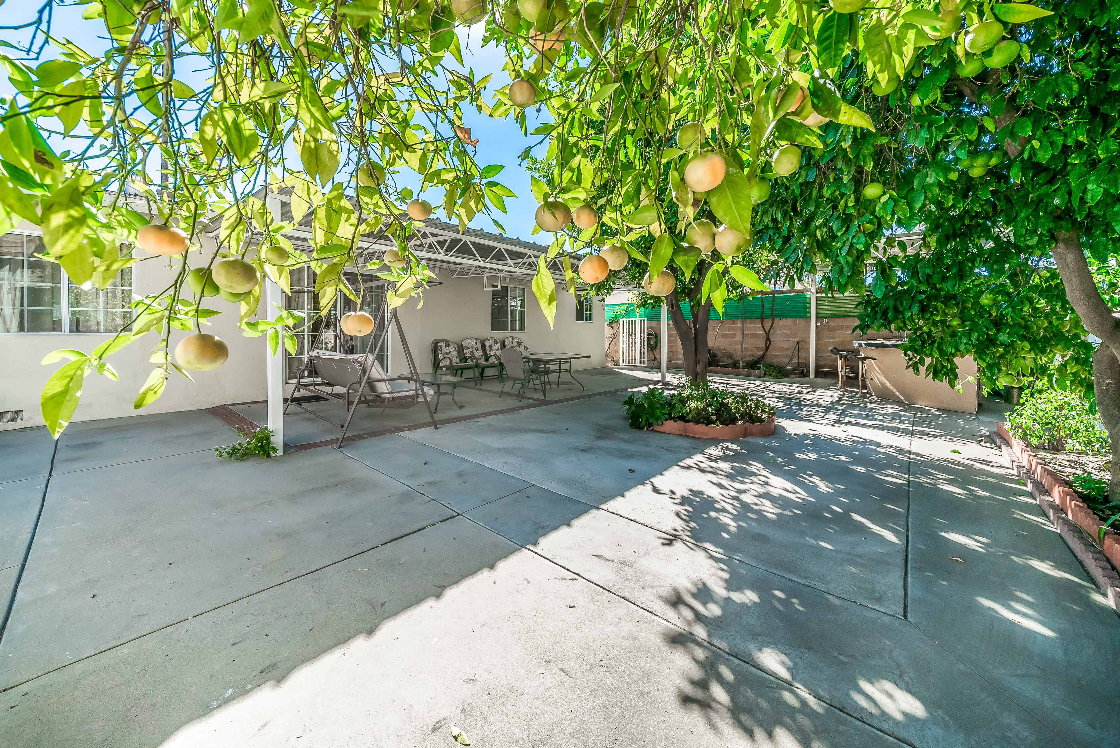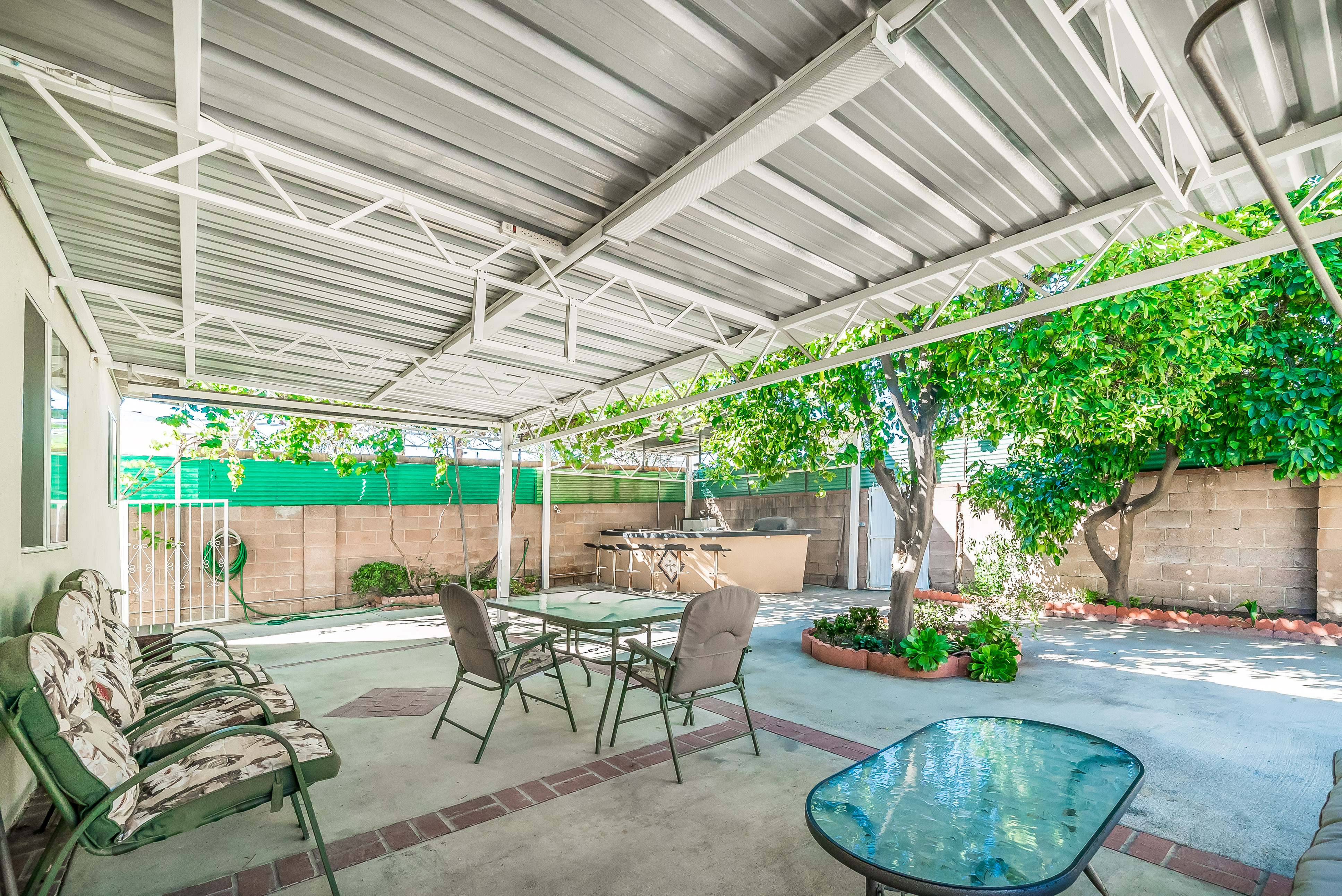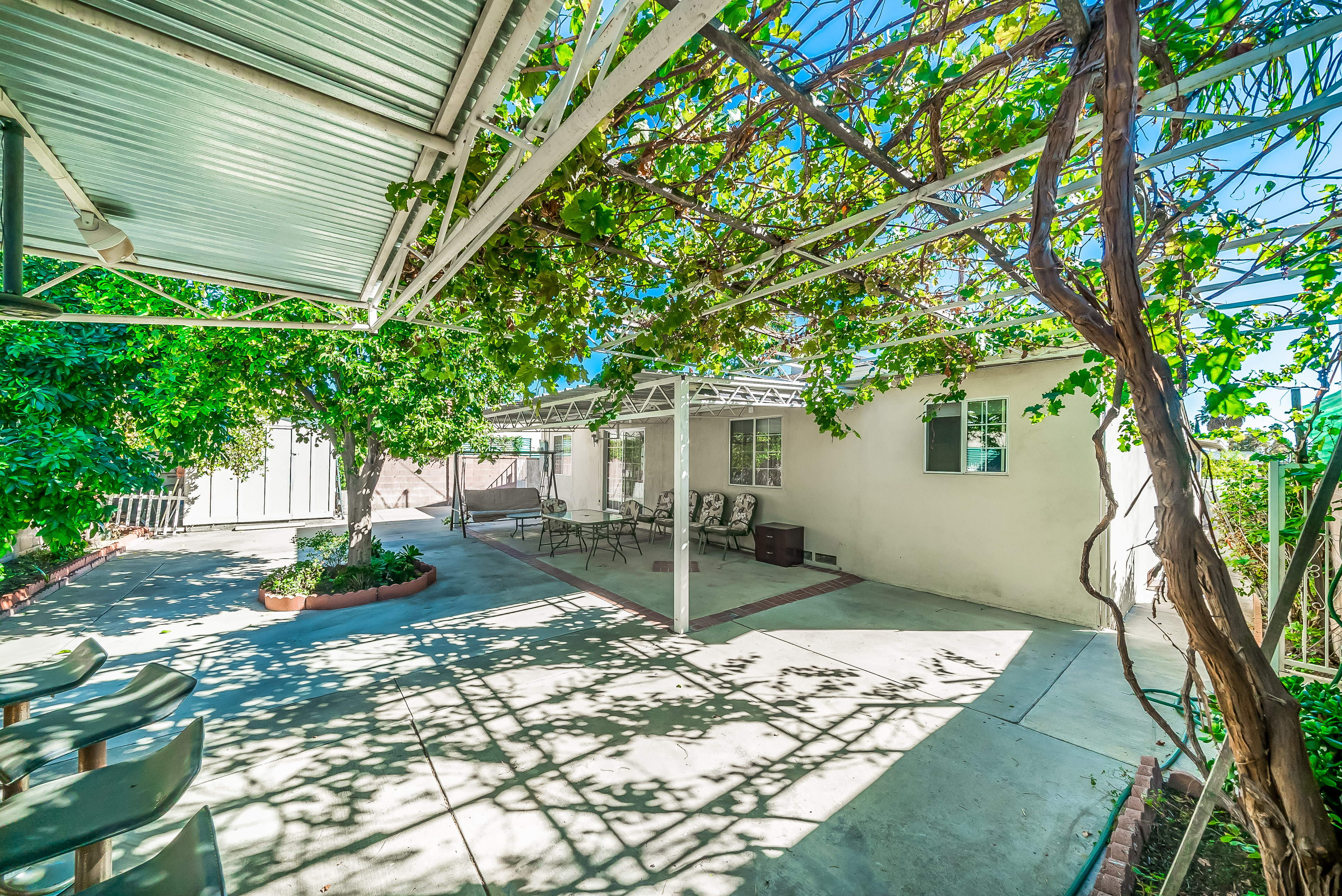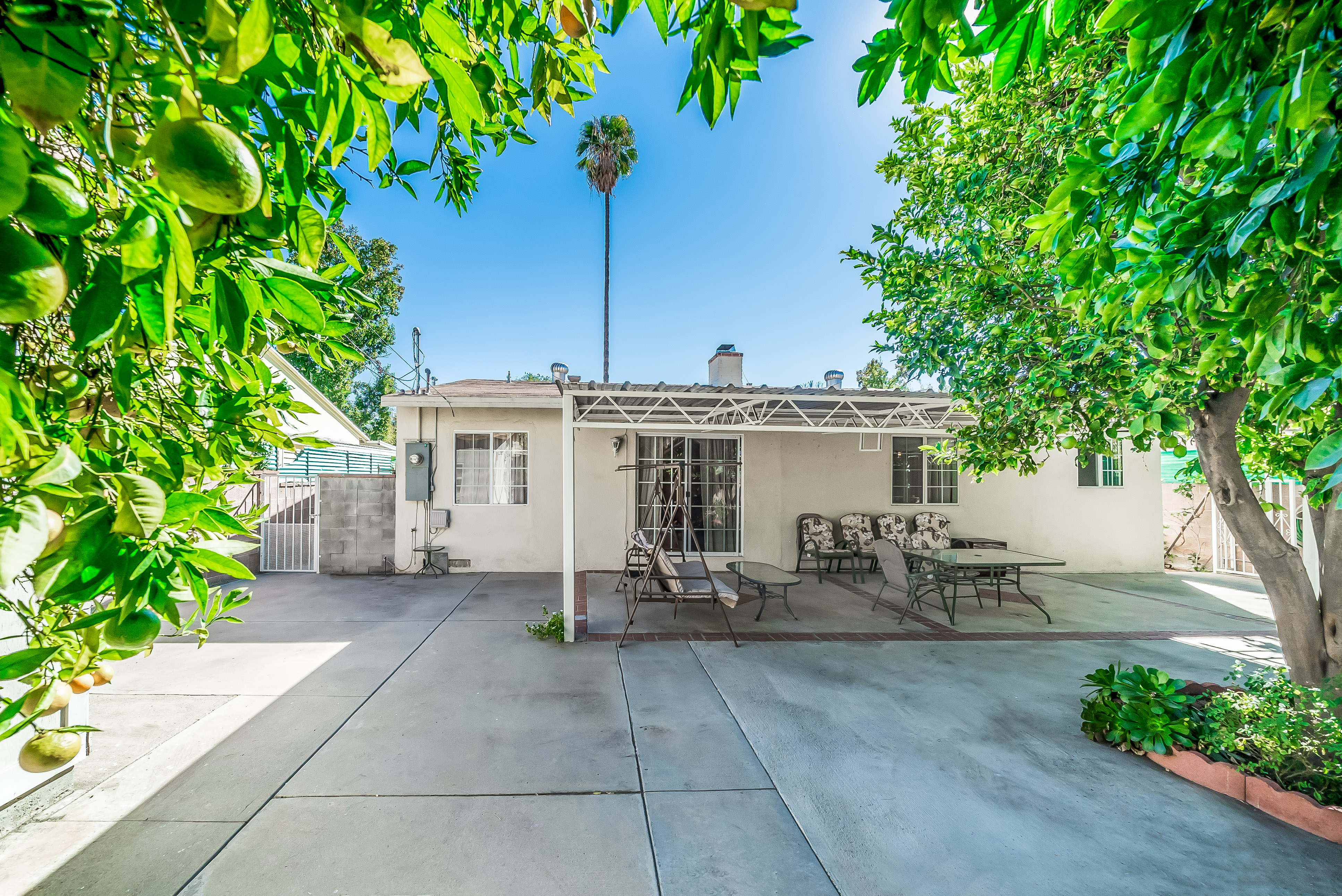 Behind automatic gates lies this updated 3 bed, 2 bath home in North Hollywood. Light wood floors and an abundance of windows give the home a light and airy feel. The living room flows seamless into the dining room, both featuring sliding glass doors out to the covered patio. The updated kitchen is large and has tons of cabinets, stainless steel appliances, and granite countertops. Two spacious bedrooms share an updated bathroom and the master suite offers a large walk in closet and updated bath as well. Outside, the low maintenance yard affords mature fruit trees, and built in BBQ with bar seating, and lots of room to host family and friends. Additional features include unpermitted garage conversion to a guesthouse with kitchenette and bath.