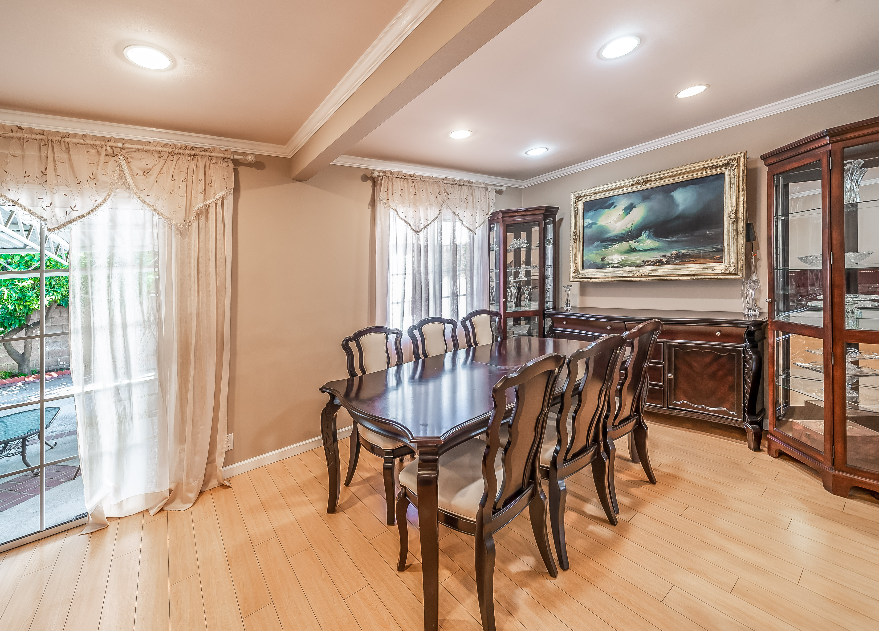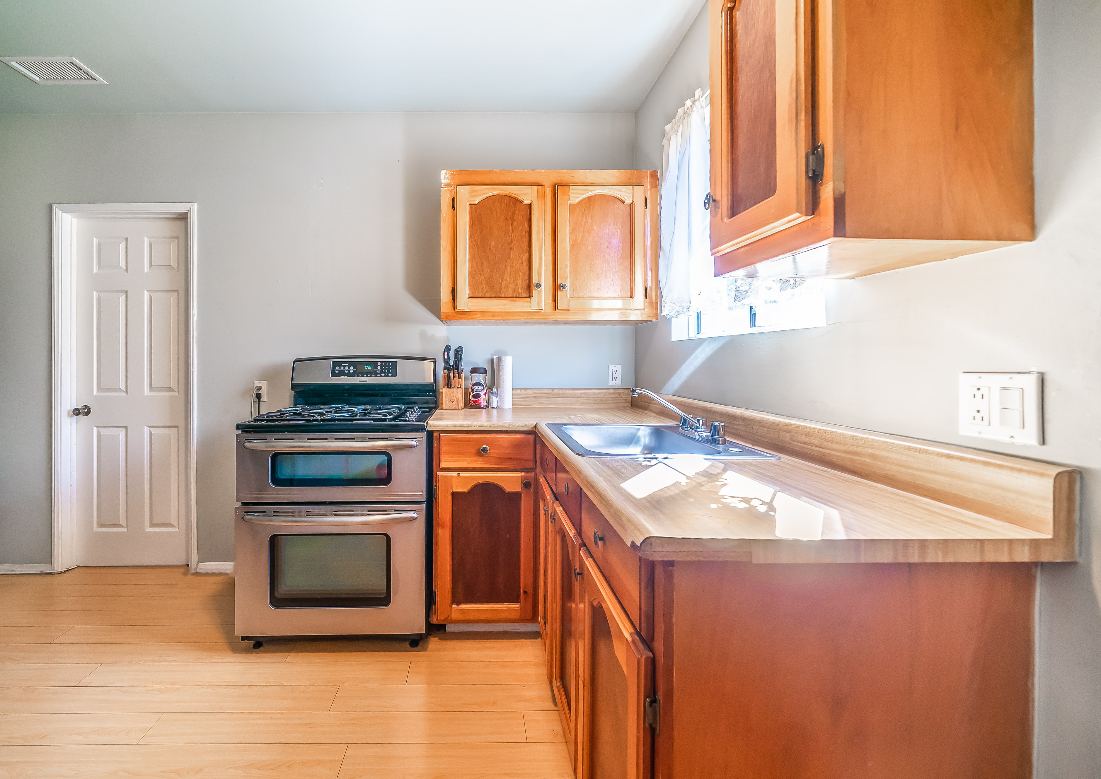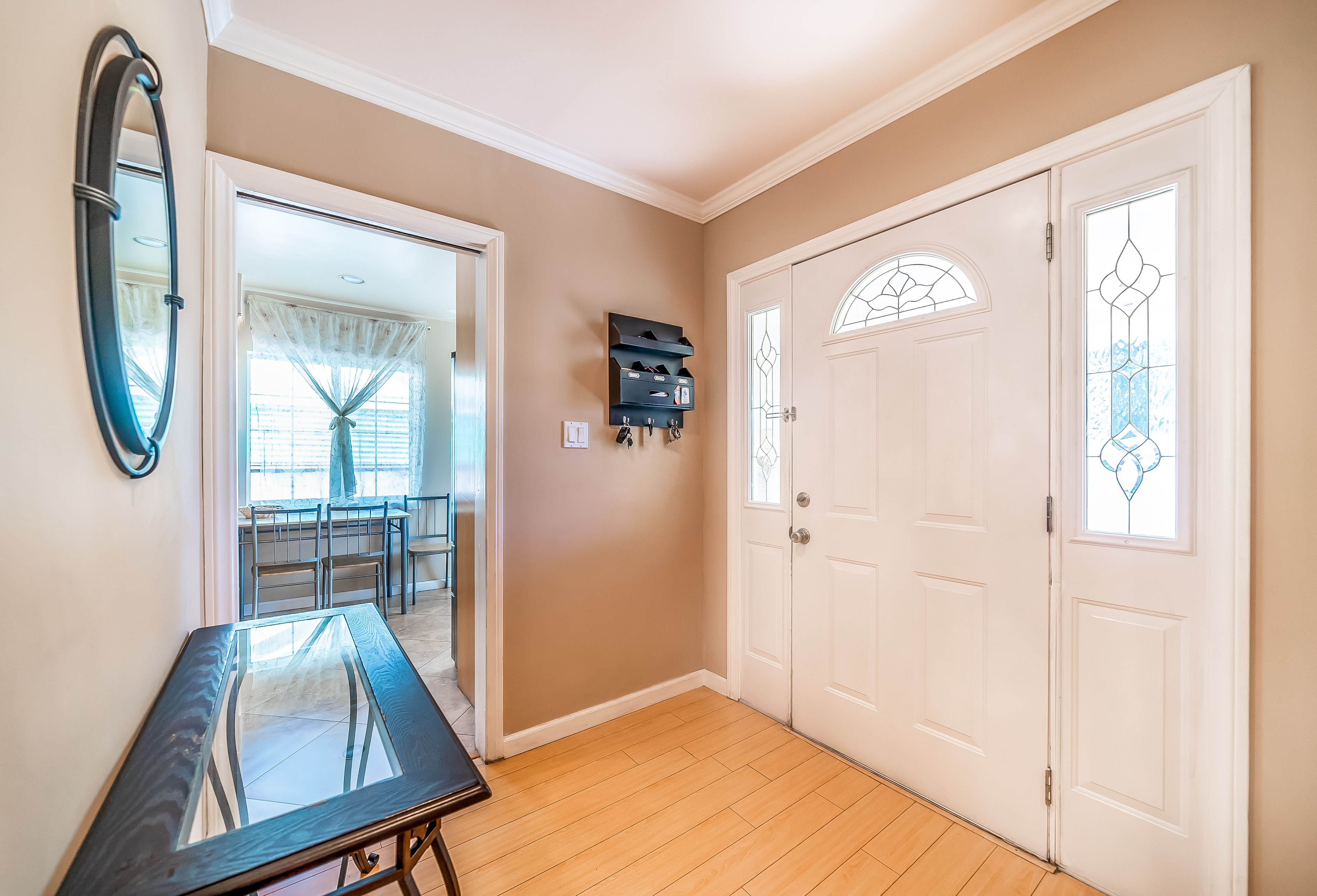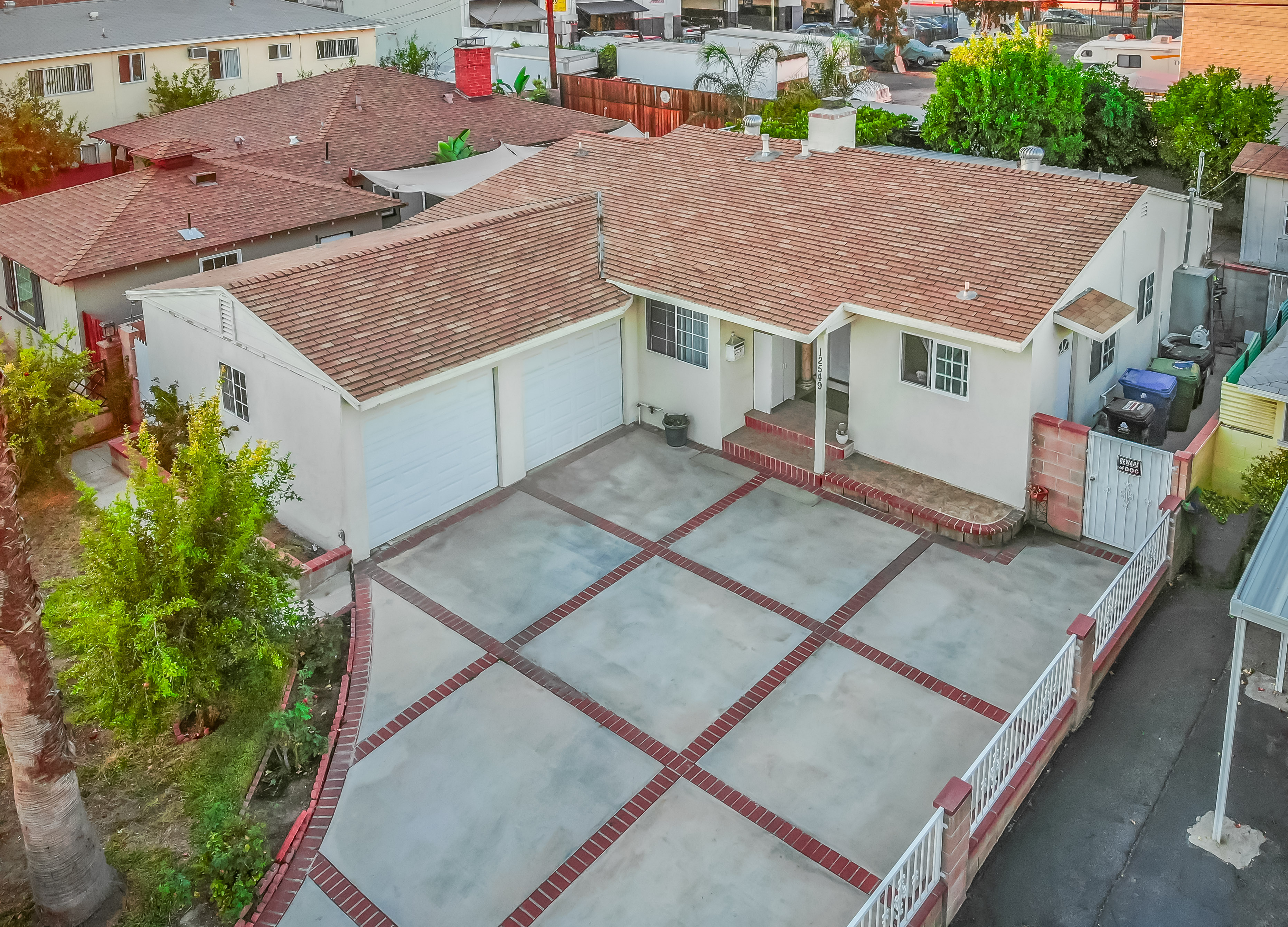 Behind automatic gates lies this updated 3 bed, 2 bath home in North Hollywood. Light wood floors and an abundance of windows give the home a light and airy feel. The living room flows seamless into the dining room, both featuring sliding glass doors out to the covered patio. The updated kitchen is large and has tons of cabinets, stainless steel appliances, and granite countertops. Two spacious bedrooms share an updated bathroom and the master suite offers a large walk in closet and updated bath as well. Outside, the low maintenance yard affords mature fruit trees, and built in BBQ with bar seating, and lots of room to host family and friends. Additional features include unpermitted garage conversion to a guesthouse with kitchenette and bath.