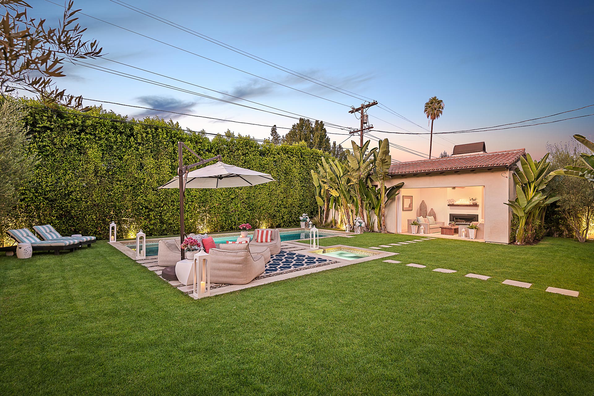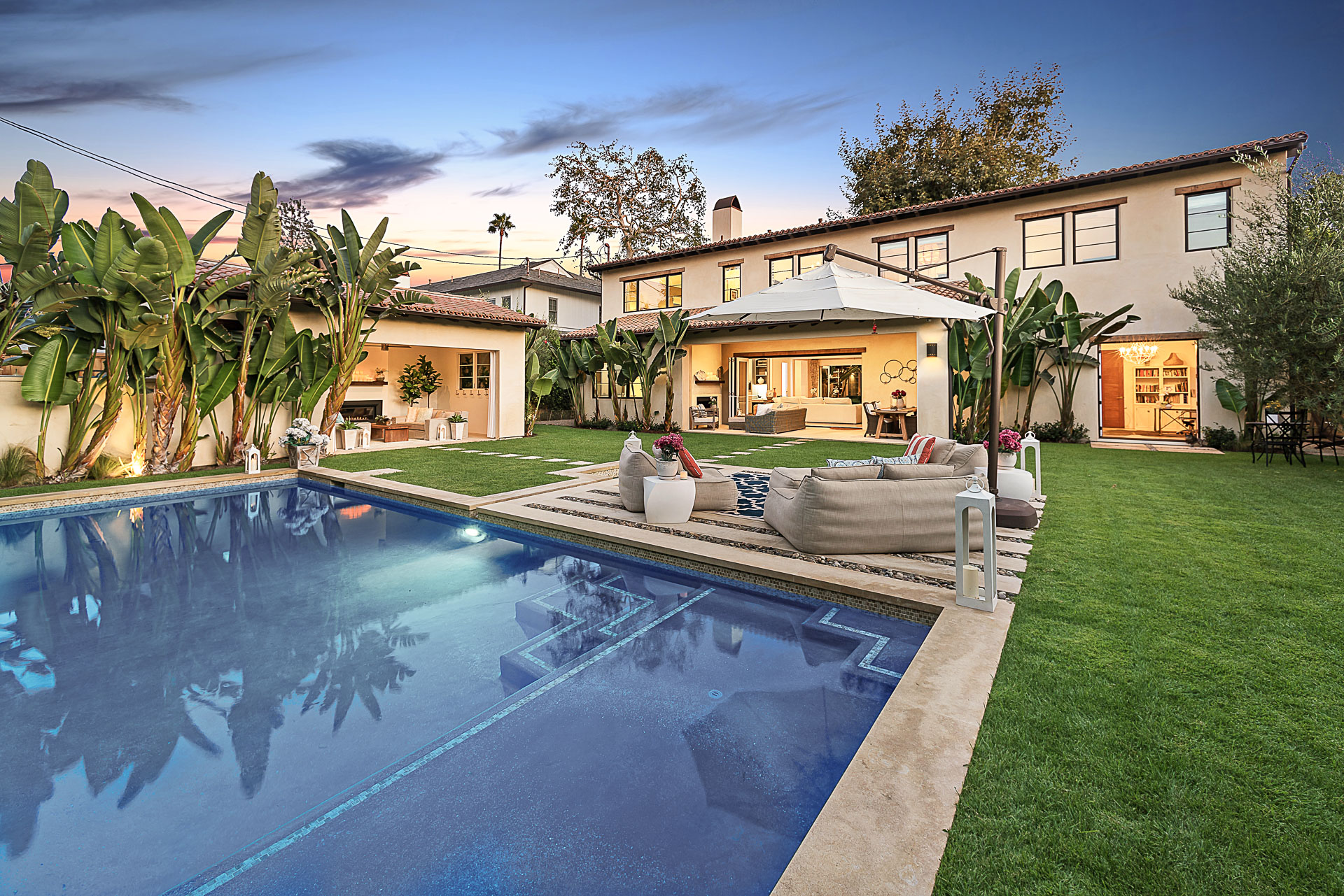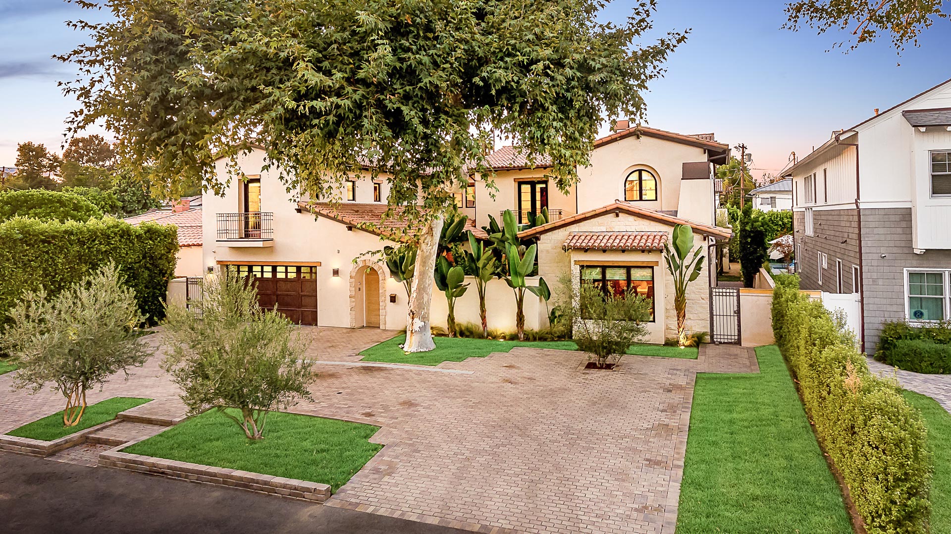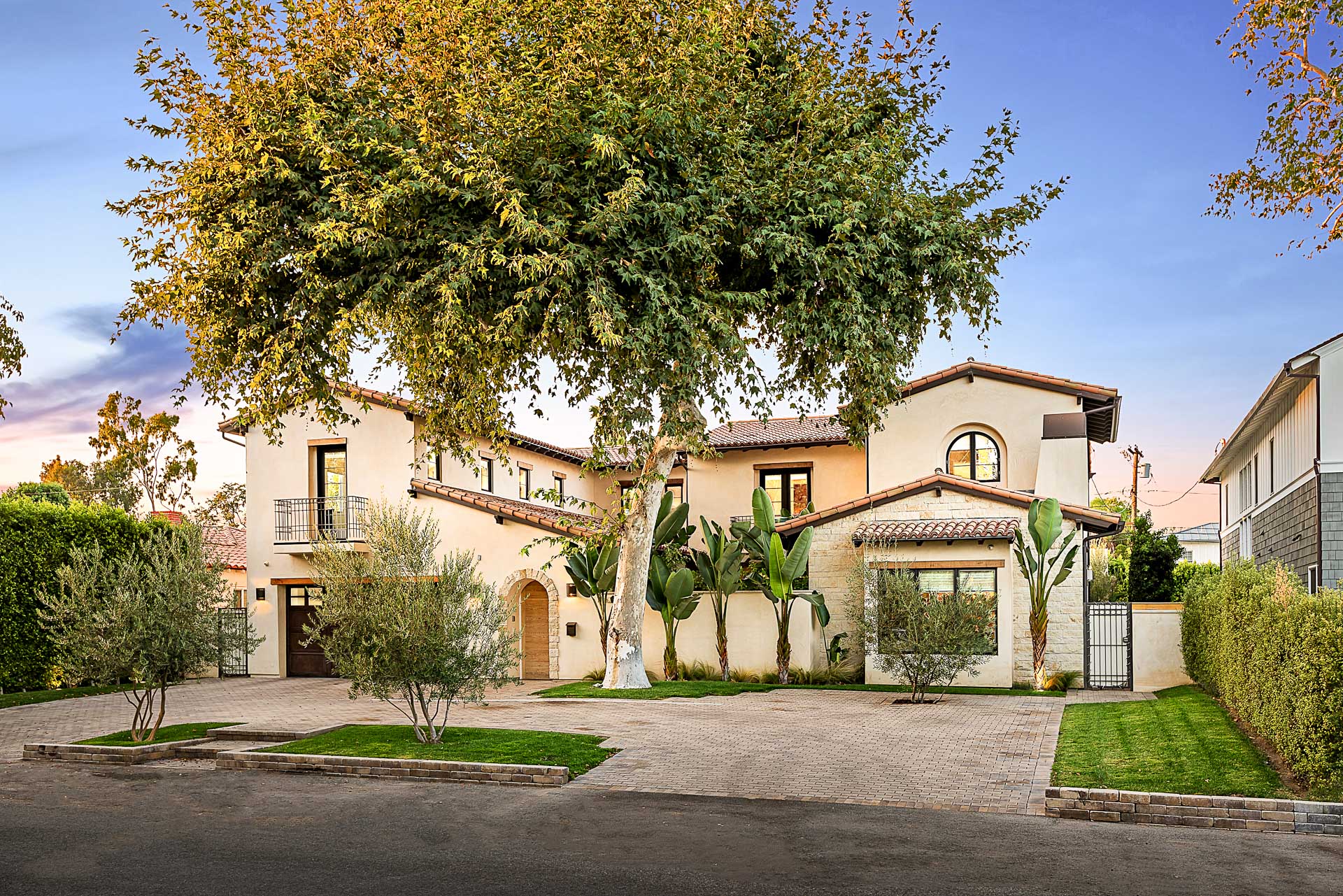 Walk through the arched entry way and into this plush Modern Spanish Studio City home where you will find 5 bedrooms + office, and 7 bathrooms in approximately 5,000sqft. This two-story home offers a warm spacious open floor plan with the living room, formal office, and master bedroom all opening to a private landscaped courtyard. The Chefs Kitchen includes a center island with butcher block, caesar stone and marble countertops, custom cabinets, Wolf appliances and an oversized Sub-Zero refrigerator and freezer. The house is equipped with a temperature controlled wine room. The downstairs bedroom includes ensuite with French doors that lead into the backyard. Upstairs you will find four additional bedrooms all with their own bathrooms and walk-in closets and one with a balcony overlooking the front yard. An additional family room is upstairs, the perfect space for lounging. The Master suite has detailed high ceilings, a cozy sitting area with French doors that overlook the front courtyard, two separate walk-in closets, and a large master bathroom includes a spacious double shower that also functions as a steam room, a stand-alone bathtub, double sinks, built-ins, a vanity area, and a large marble counter space. The house is backed by a large grassy yard with a salt water pool/spa, covered patio, and a detached Cabana with bathroom. With details such as custom terracotta tile work, woodwork, seamless hardwood floors and wood/clad windows this is one Spanish home you do not want to miss. At an unbeatable price and exceptional location, just moments from Beeman Park, this home is a must see!