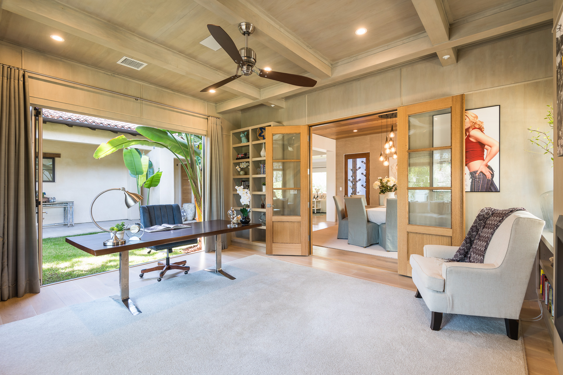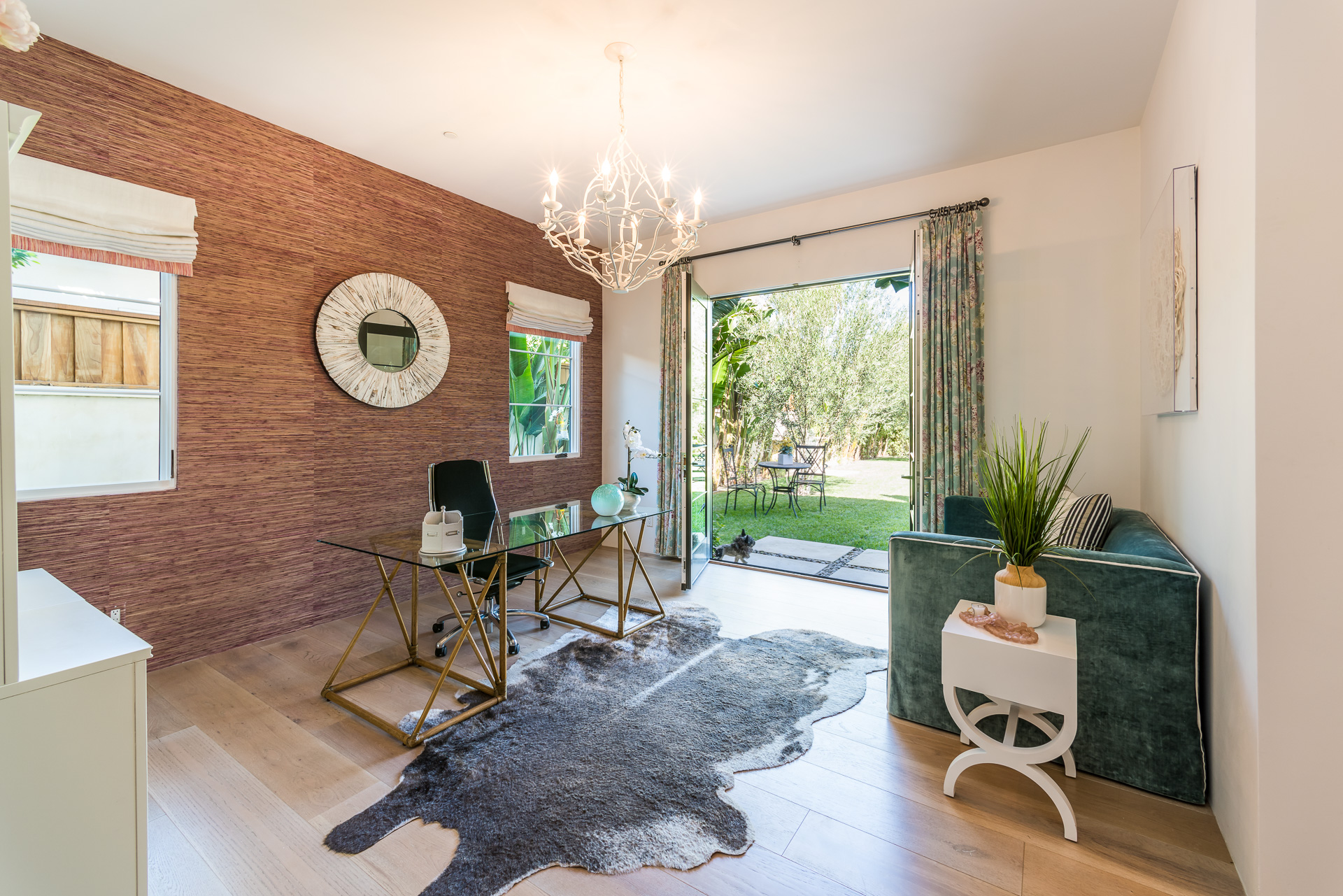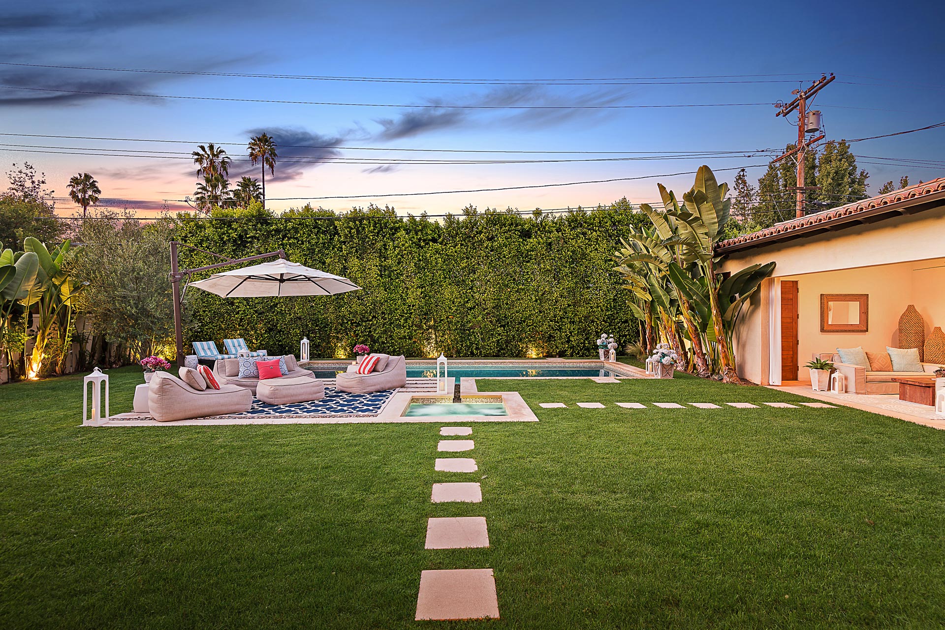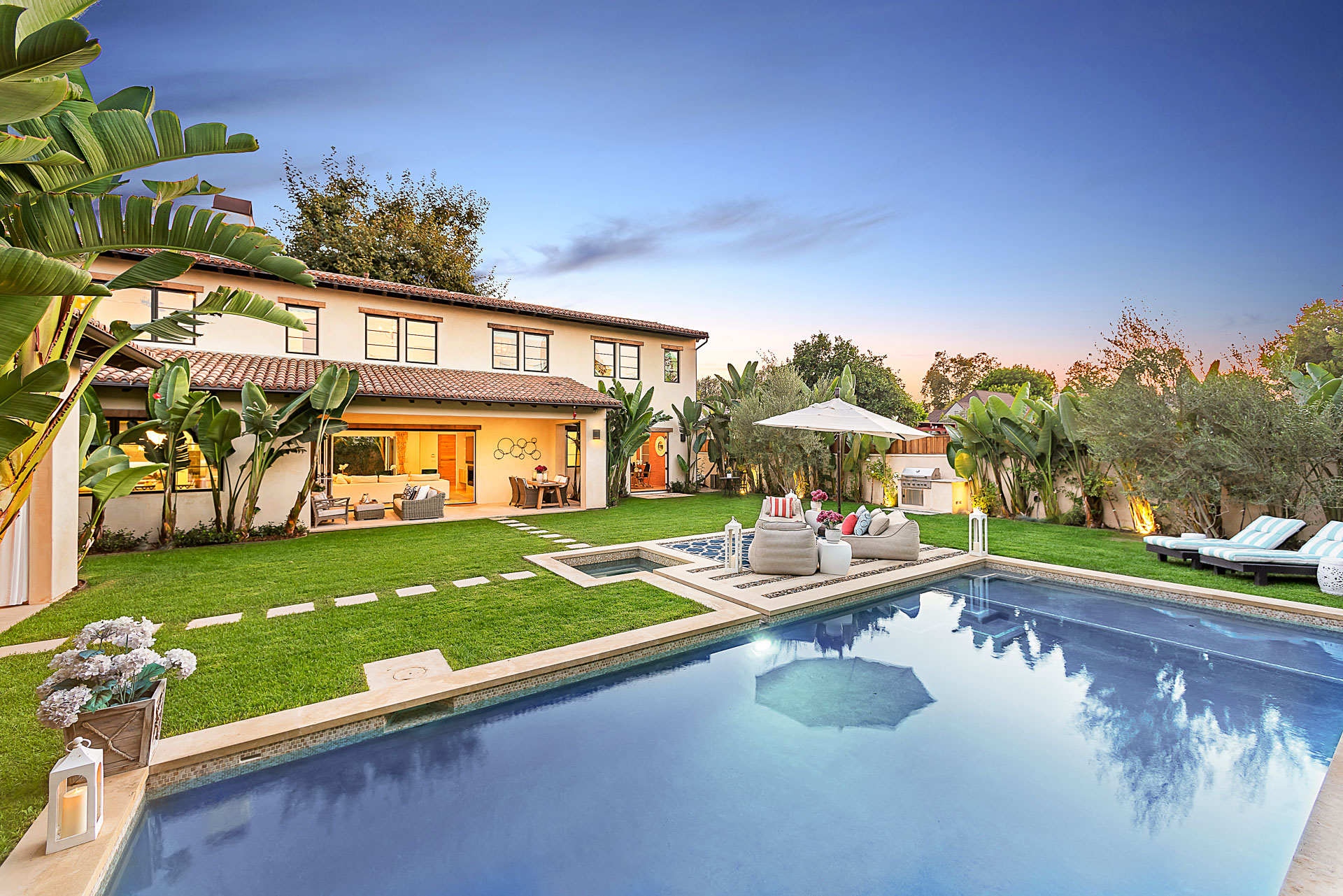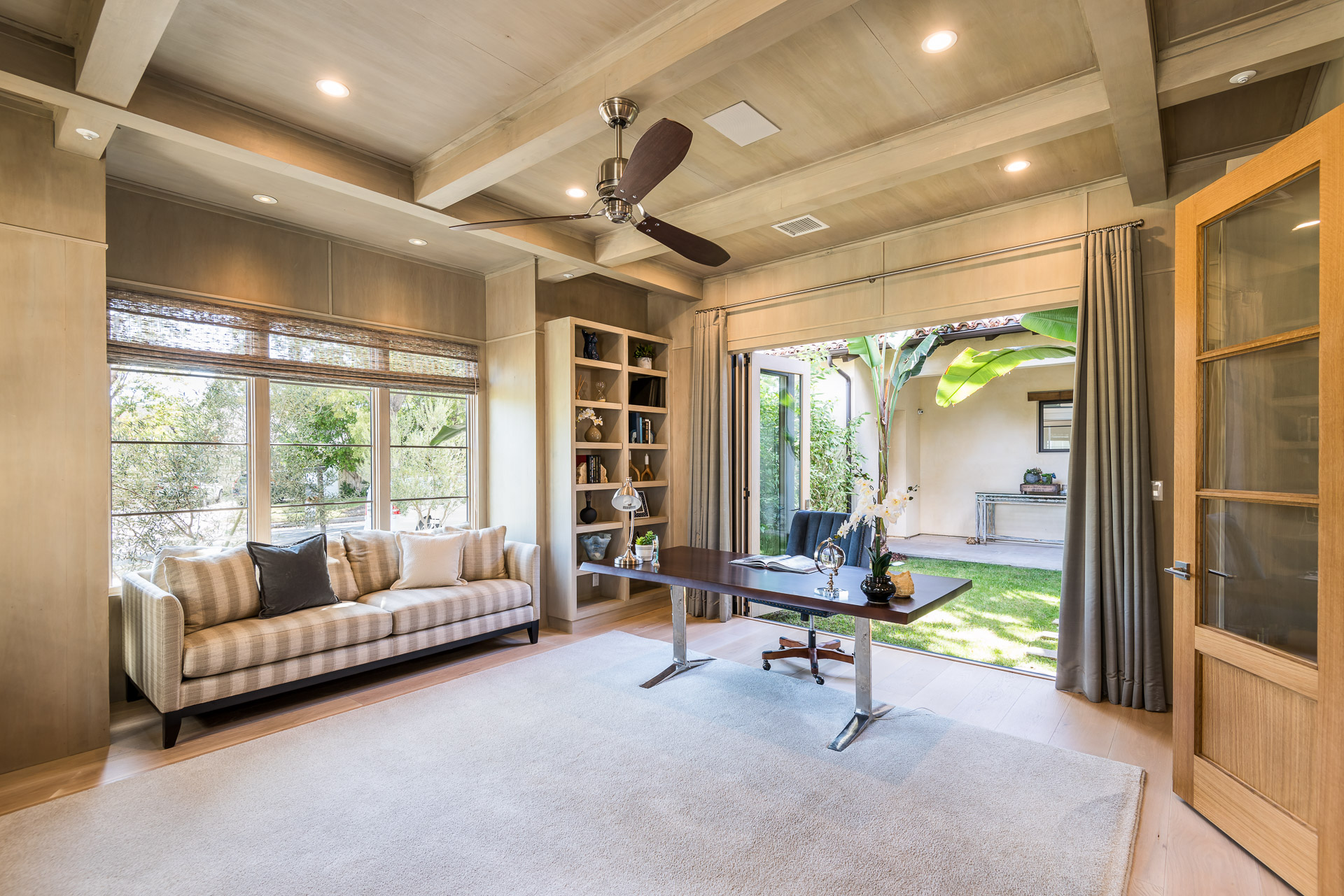 Walk through the arched entry way and into this plush Modern Spanish Studio City home where you will find 5 bedrooms + office, and 7 bathrooms in approximately 5,000sqft. This two-story home offers a warm spacious open floor plan with the living room, formal office, and master bedroom all opening to a private landscaped courtyard. The Chefs Kitchen includes a center island with butcher block, caesar stone and marble countertops, custom cabinets, Wolf appliances and an oversized Sub-Zero refrigerator and freezer. The house is equipped with a temperature controlled wine room. The downstairs bedroom includes ensuite with French doors that lead into the backyard. Upstairs you will find four additional bedrooms all with their own bathrooms and walk-in closets and one with a balcony overlooking the front yard. An additional family room is upstairs, the perfect space for lounging. The Master suite has detailed high ceilings, a cozy sitting area with French doors that overlook the front courtyard, two separate walk-in closets, and a large master bathroom includes a spacious double shower that also functions as a steam room, a stand-alone bathtub, double sinks, built-ins, a vanity area, and a large marble counter space. The house is backed by a large grassy yard with a salt water pool/spa, covered patio, and a detached Cabana with bathroom. With details such as custom terracotta tile work, woodwork, seamless hardwood floors and wood/clad windows this is one Spanish home you do not want to miss. At an unbeatable price and exceptional location, just moments from Beeman Park, this home is a must see!