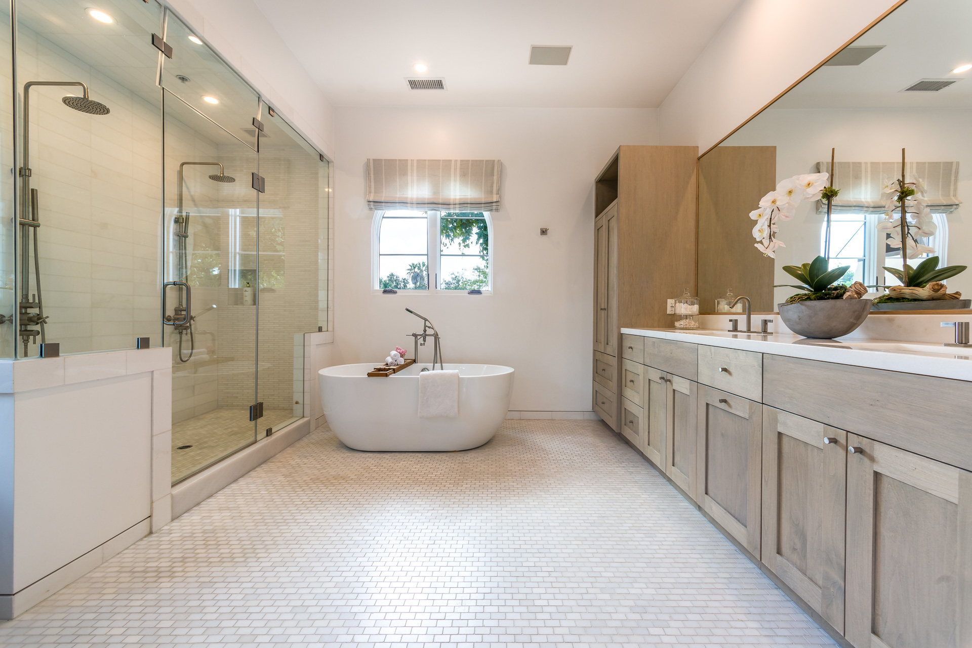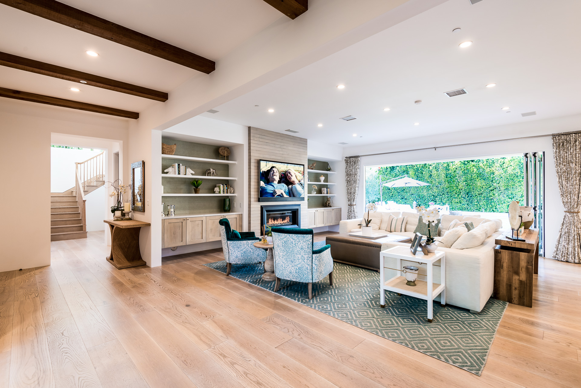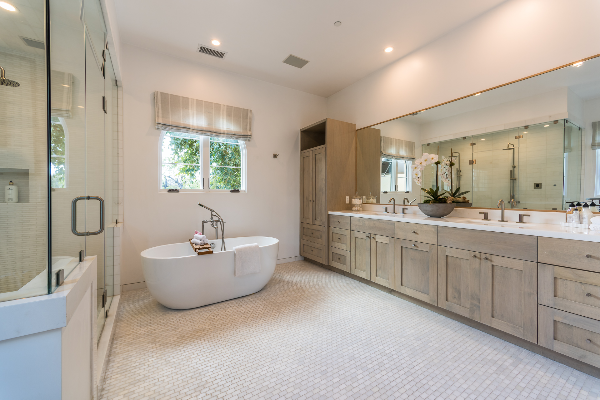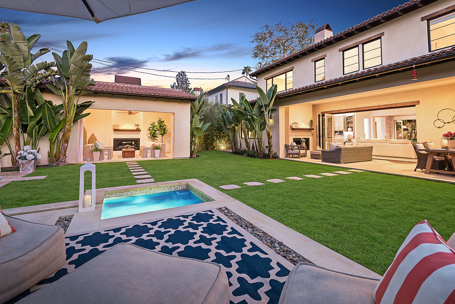 Walk through the arched entry way and into this plush Modern Spanish Studio City home where you will find 5 bedrooms + office, and 7 bathrooms in approximately 5,000sqft. This two-story home offers a warm spacious open floor plan with the living room, formal office, and master bedroom all opening to a private landscaped courtyard. The Chefs Kitchen includes a center island with butcher block, caesar stone and marble countertops, custom cabinets, Wolf appliances and an oversized Sub-Zero refrigerator and freezer. The house is equipped with a temperature controlled wine room. The downstairs bedroom includes ensuite with French doors that lead into the backyard. Upstairs you will find four additional bedrooms all with their own bathrooms and walk-in closets and one with a balcony overlooking the front yard. An additional family room is upstairs, the perfect space for lounging. The Master suite has detailed high ceilings, a cozy sitting area with French doors that overlook the front courtyard, two separate walk-in closets, and a large master bathroom includes a spacious double shower that also functions as a steam room, a stand-alone bathtub, double sinks, built-ins, a vanity area, and a large marble counter space. The house is backed by a large grassy yard with a salt water pool/spa, covered patio, and a detached Cabana with bathroom. With details such as custom terracotta tile work, woodwork, seamless hardwood floors and wood/clad windows this is one Spanish home you do not want to miss. At an unbeatable price and exceptional location, just moments from Beeman Park, this home is a must see!
