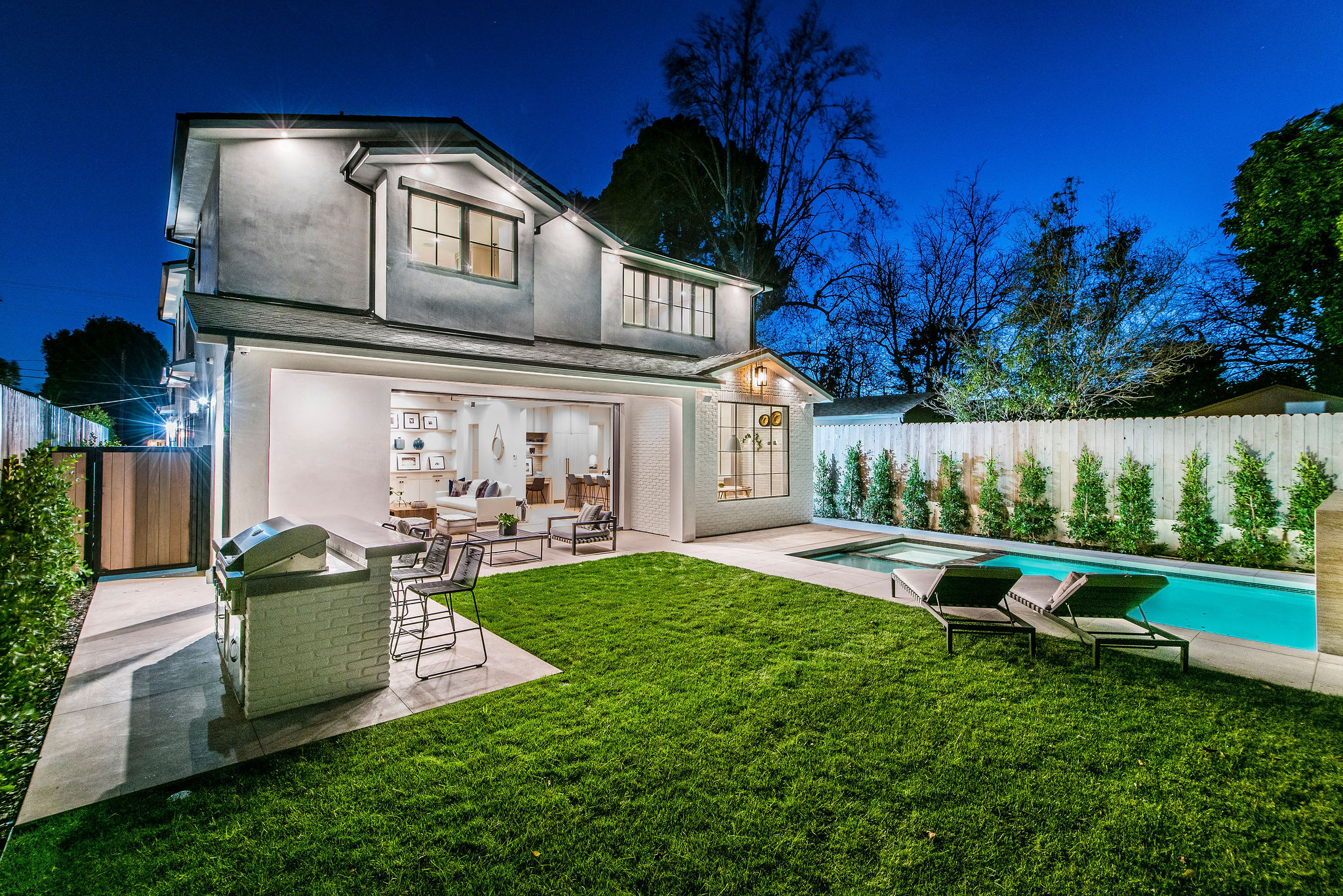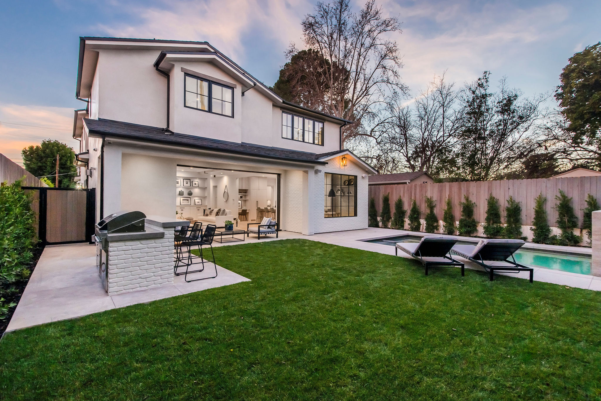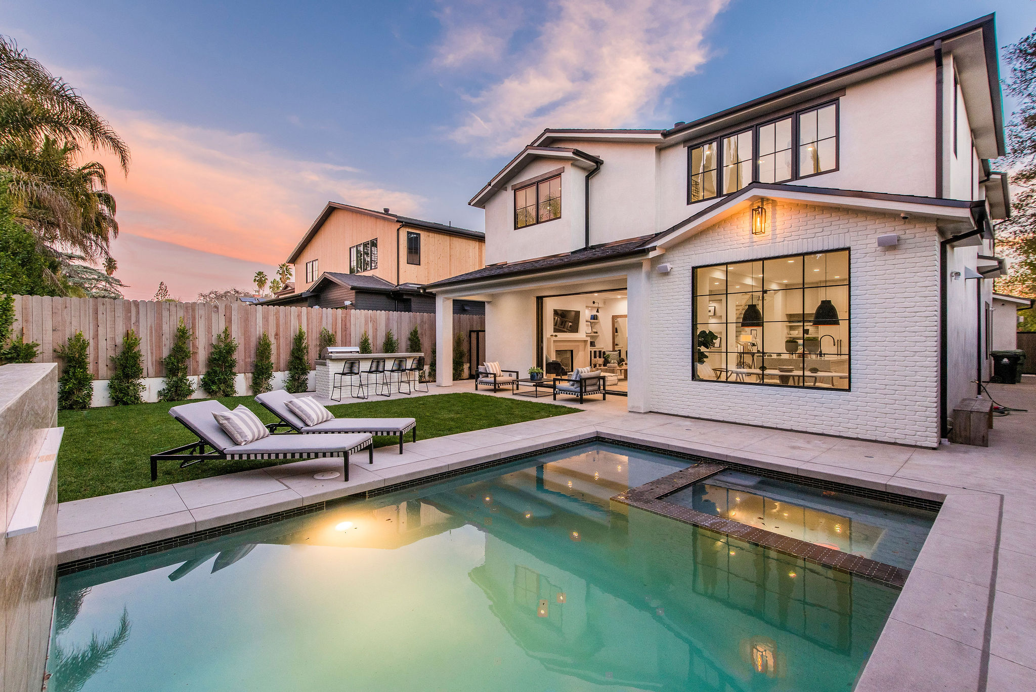 This divinely designed Modern Farmhouse seamlessly emulates the desired aesthetics and luxury of Hampton style living. This home provides 5 spacious bedrooms, 6 exquisitely designed bathrooms, and an open floor plan that provides functional beauty throughout the whole home where attention to detail can be seen from every angle. Stunning custom chef’s kitchen shows off high end appliances, 6 range stove, and stone countertops for beauty and easy maintenance at the same time. Gorgeous living room with custom built-ins transforms into an ideal indoor/outdoor living environment with large floor to ceiling collapsible doors opening to a private, lushly landscaped backyard with a beautiful heated pool and spa with water features. Just upstairs from this already perfect seeming home, are 4 bedrooms all with their own bathrooms, luxury finishes and designer light fixtures. Master retreat is a dream of its own with a gorgeous en-suite containing a huge shower, soaking tub, dual vanities, and walk in his & her closets to make anyone’s designer dreams come true. Endless amenities, large direct entry garage, wine room, and safety provided by this homes fully wired control4 security system and large front gate complete this stunning estate.
