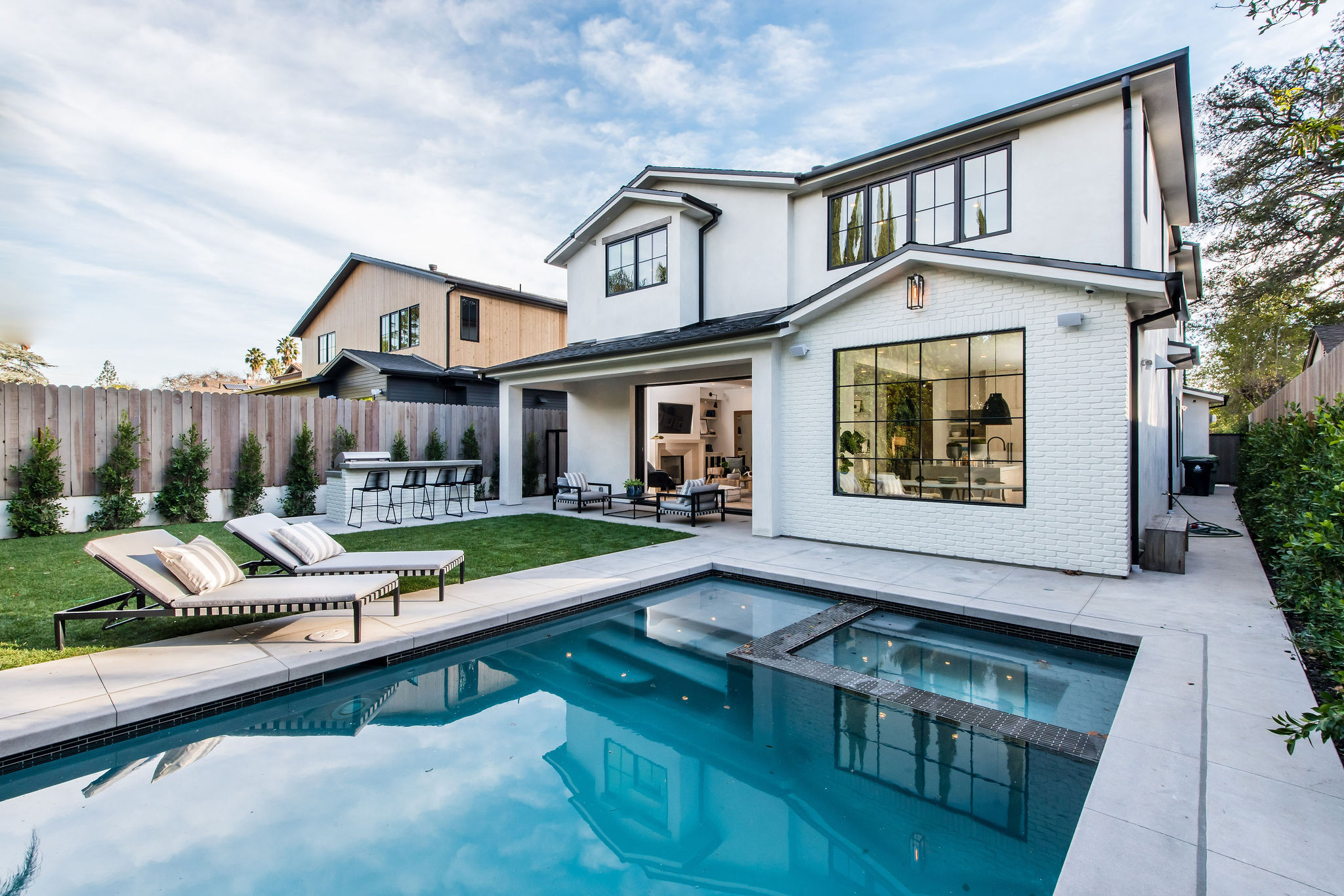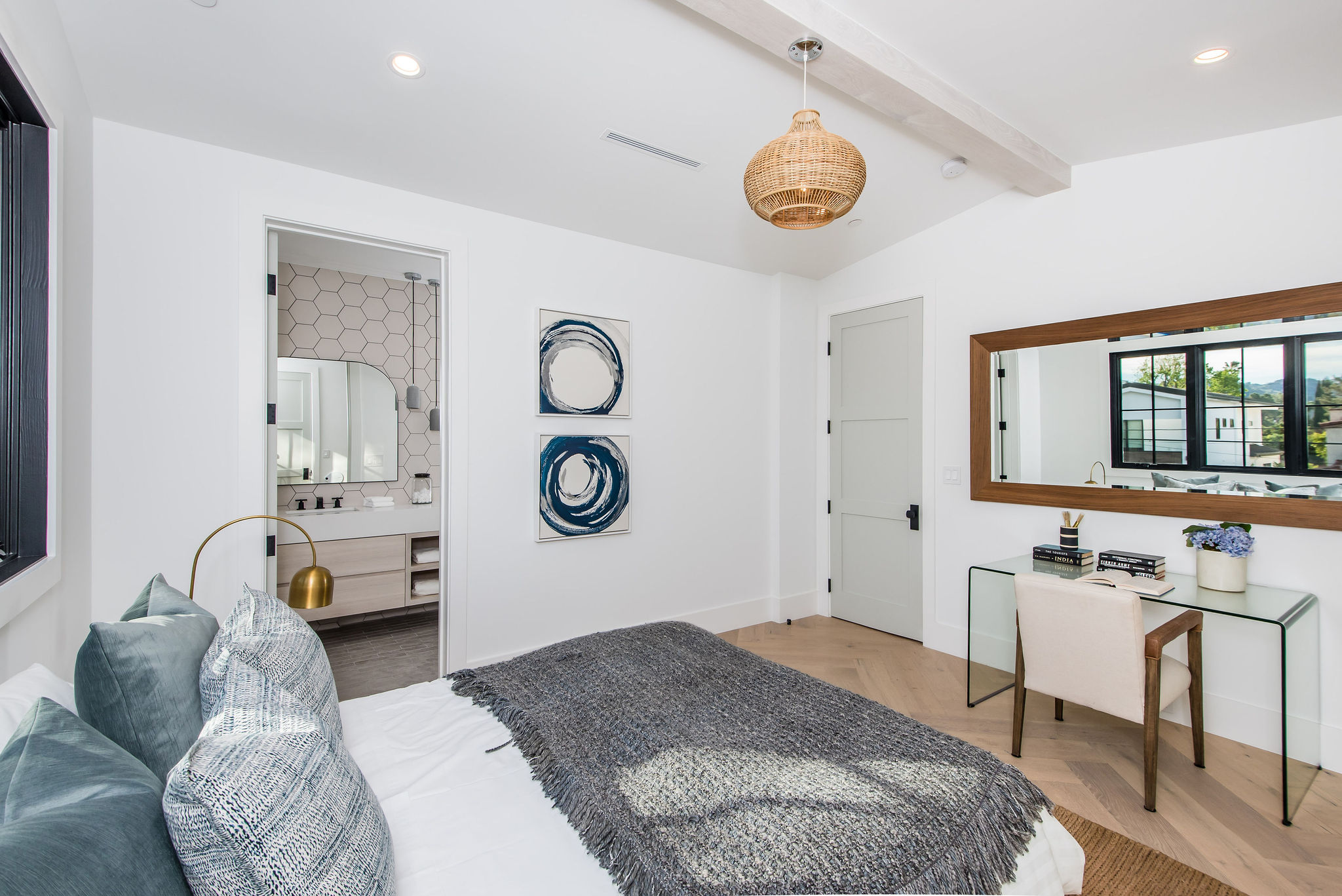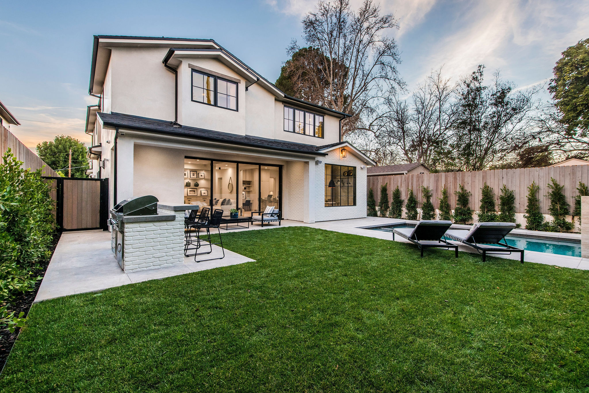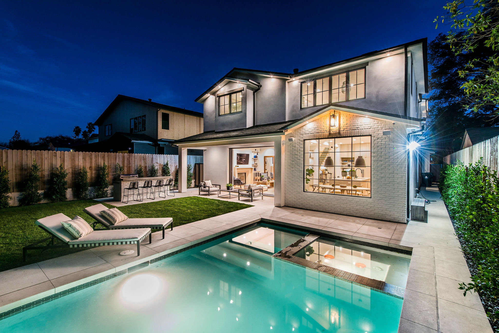 This divinely designed Modern Farmhouse seamlessly emulates the desired aesthetics and luxury of Hampton style living. This home provides 5 spacious bedrooms, 6 exquisitely designed bathrooms, and an open floor plan that provides functional beauty throughout the whole home where attention to detail can be seen from every angle. Stunning custom chef’s kitchen shows off high end appliances, 6 range stove, and stone countertops for beauty and easy maintenance at the same time. Gorgeous living room with custom built-ins transforms into an ideal indoor/outdoor living environment with large floor to ceiling collapsible doors opening to a private, lushly landscaped backyard with a beautiful heated pool and spa with water features. Just upstairs from this already perfect seeming home, are 4 bedrooms all with their own bathrooms, luxury finishes and designer light fixtures. Master retreat is a dream of its own with a gorgeous en-suite containing a huge shower, soaking tub, dual vanities, and walk in his & her closets to make anyone’s designer dreams come true. Endless amenities, large direct entry garage, wine room, and safety provided by this homes fully wired control4 security system and large front gate complete this stunning estate.