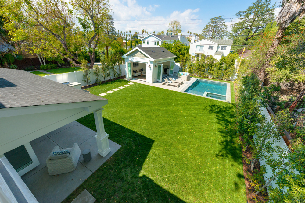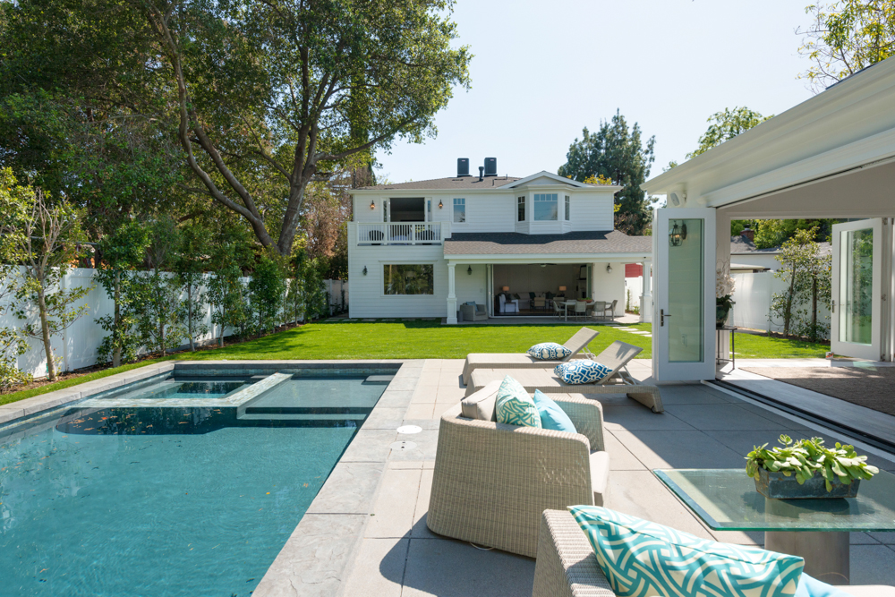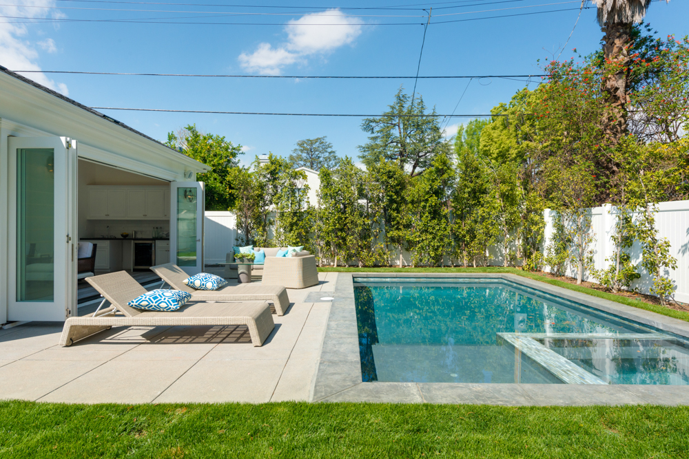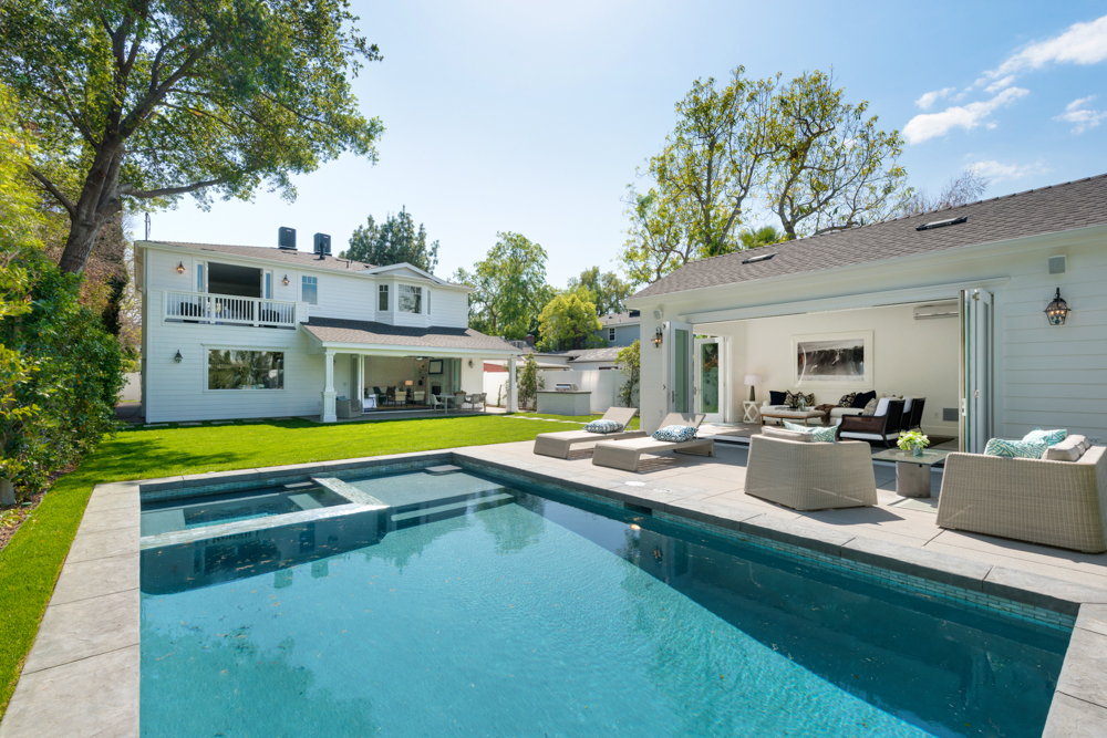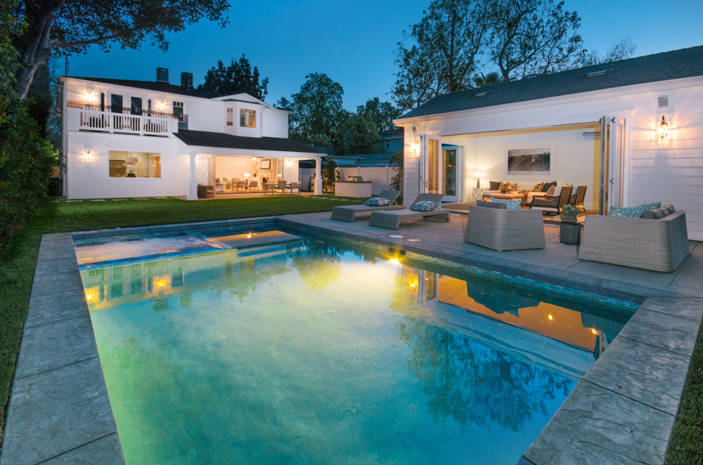 SOLD 5/12/14. An exquisite Studio City New Construction gem! This luxury detailed home entails 5 bedrooms, 6.5 bathrooms, a complete theater room with a 110" screen and a pool house only minutes away from Ventura Blvd., shops & restaurants! This home features over 5,000 sqft of livable space that includes the pool house with a 1/2 bathroom. This beauty allows natural light to shine and really showcase its traditional design and its high quality finishes. The craftsmanship includes crown molding, custom trim, coffered ceiling and speaker systems throughout. There is a downstairs bedroom with a full bathroom, powder, living, dining, media rooms and a butlers’ pantry with a warming drawer. The gourmet kitchen features Viking appliances, custom cabinetry, wine cellar, Carrara Marble Island and a breakfast nook with a picture window. The 7” hardwood planks of the kitchen lead to the expansive formal entertainment room with folding glass wall that opens to a large covered patio creating indoor/outdoor living space. The secluded backyard with a stunning lush green lawn includes a sea/salt heated pool/jacuzzi and a built-in BBQ. The upstairs features an additional living room. All bedrooms include a separate full bath. The master bedroom features a marble fireplace, private patio and separate entry closets. The opulent master bath contains a marble shower with bench and a soaking tub. This home sits on over a 9,000 sqft lot. Truly a must see–this gem won’t last! www.13047Woodbridge.com
