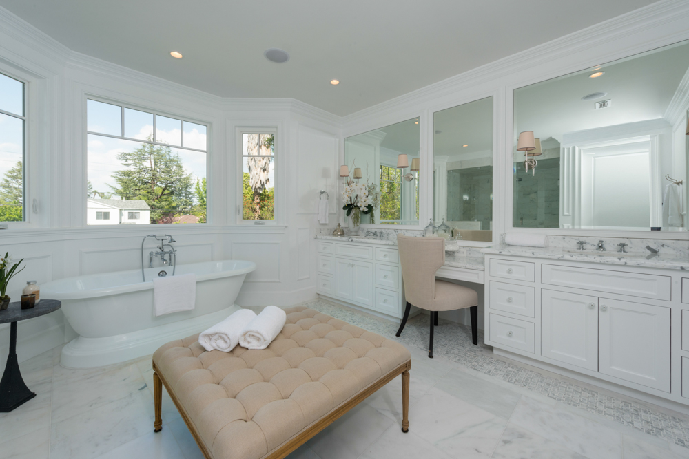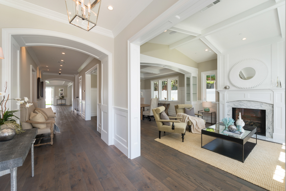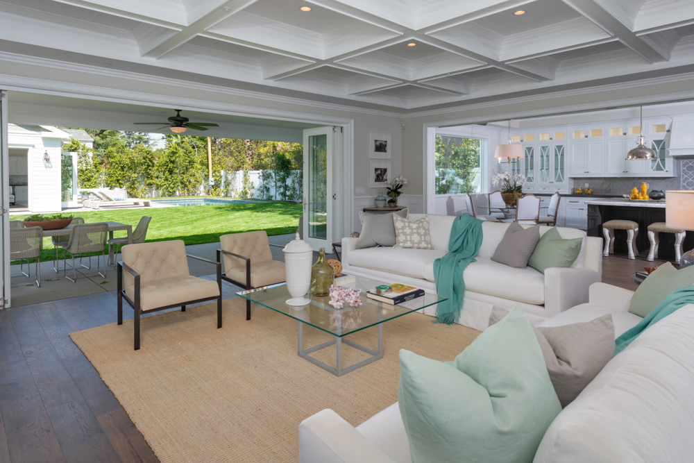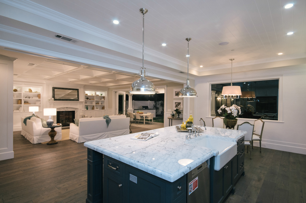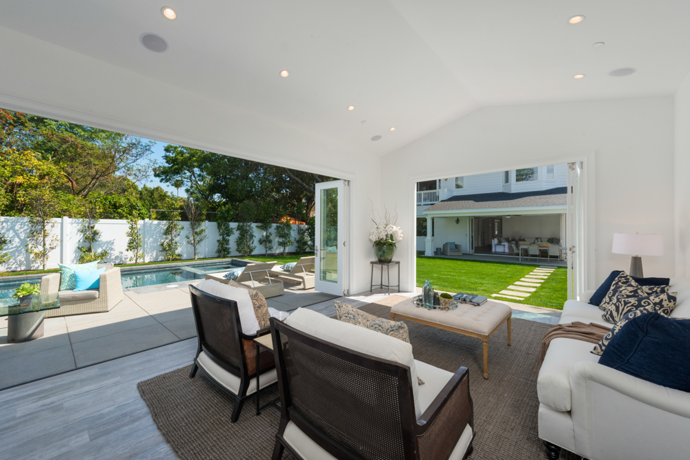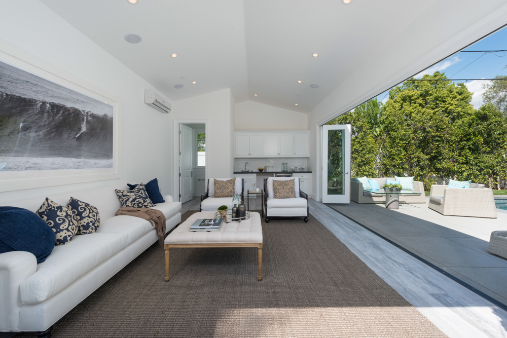SOLD 5/12/14. An exquisite Studio City New Construction gem! This luxury detailed home entails 5 bedrooms, 6.5 bathrooms, a complete theater room with a 110" screen and a pool house only minutes away from Ventura Blvd., shops & restaurants! This home features over 5,000 sqft of livable space that includes the pool house with a 1/2 bathroom. This beauty allows natural light to shine and really showcase its traditional design and its high quality finishes. The craftsmanship includes crown molding, custom trim, coffered ceiling and speaker systems throughout. There is a downstairs bedroom with a full bathroom, powder, living, dining, media rooms and a butlers’ pantry with a warming drawer. The gourmet kitchen features Viking appliances, custom cabinetry, wine cellar, Carrara Marble Island and a breakfast nook with a picture window. The 7” hardwood planks of the kitchen lead to the expansive formal entertainment room with folding glass wall that opens to a large covered patio creating indoor/outdoor living space. The secluded backyard with a stunning lush green lawn includes a sea/salt heated pool/jacuzzi and a built-in BBQ. The upstairs features an additional living room. All bedrooms include a separate full bath. The master bedroom features a marble fireplace, private patio and separate entry closets. The opulent master bath contains a marble shower with bench and a soaking tub. This home sits on over a 9,000 sqft lot. Truly a must see–this gem won’t last! www.13047Woodbridge.com