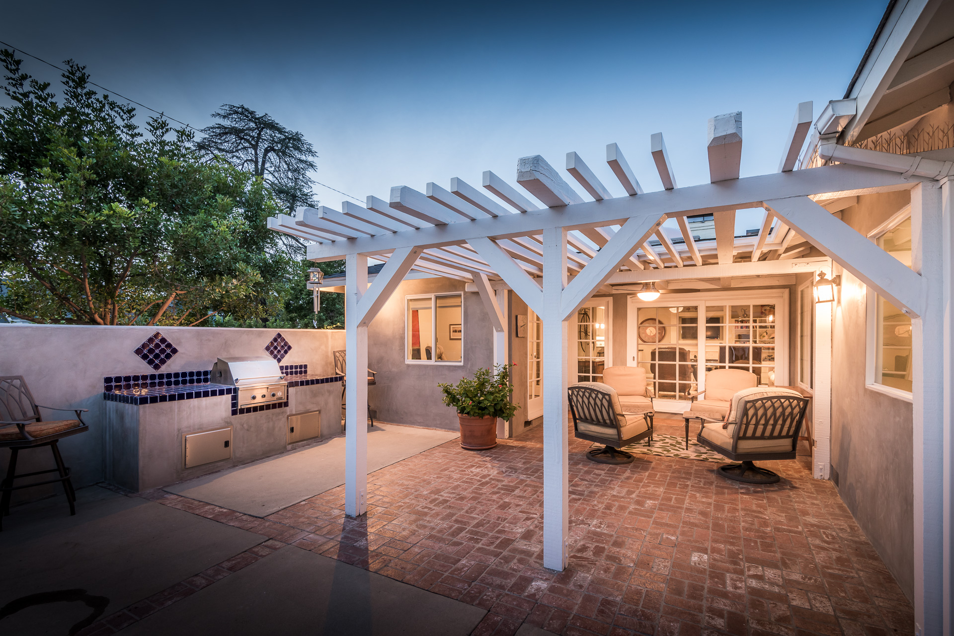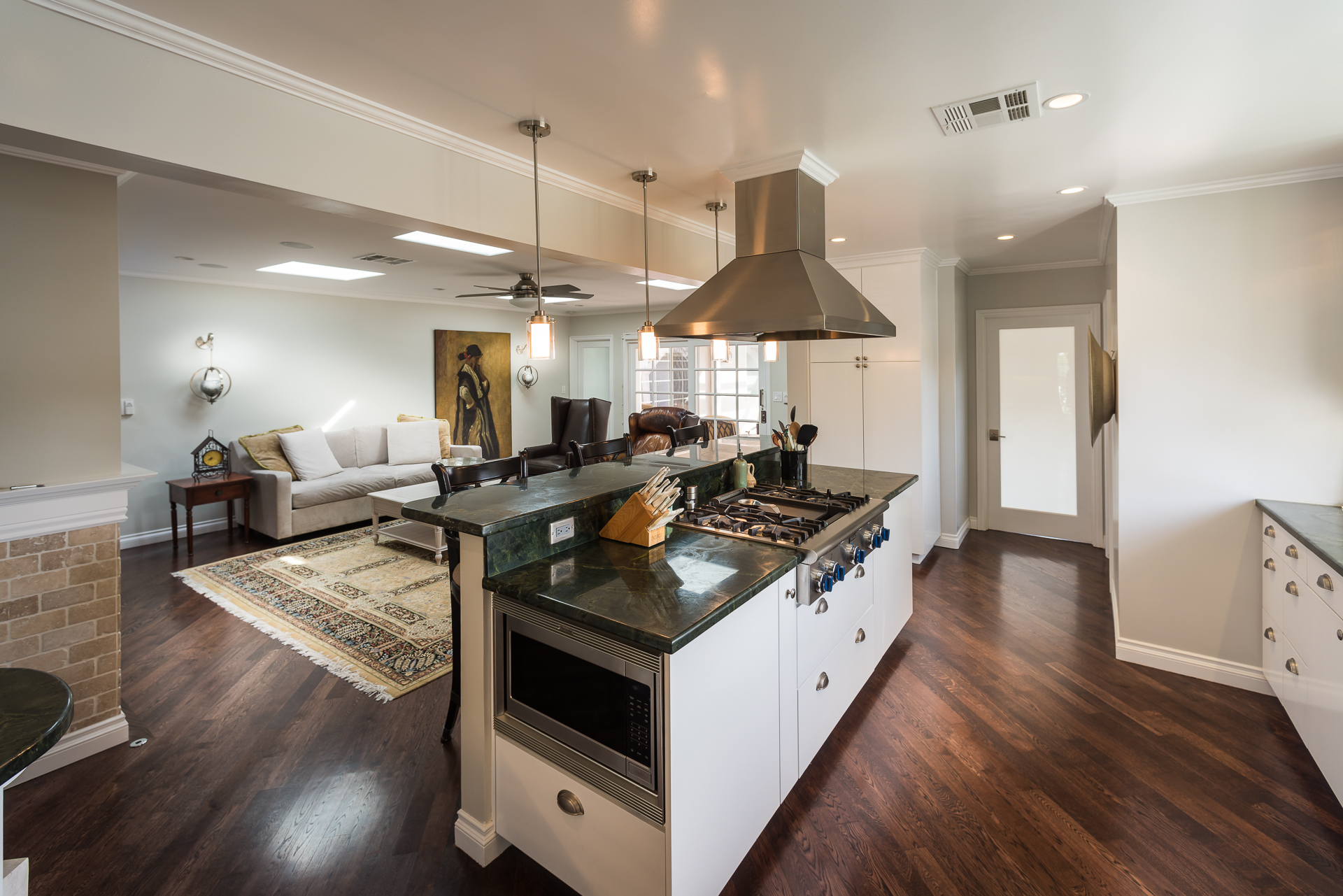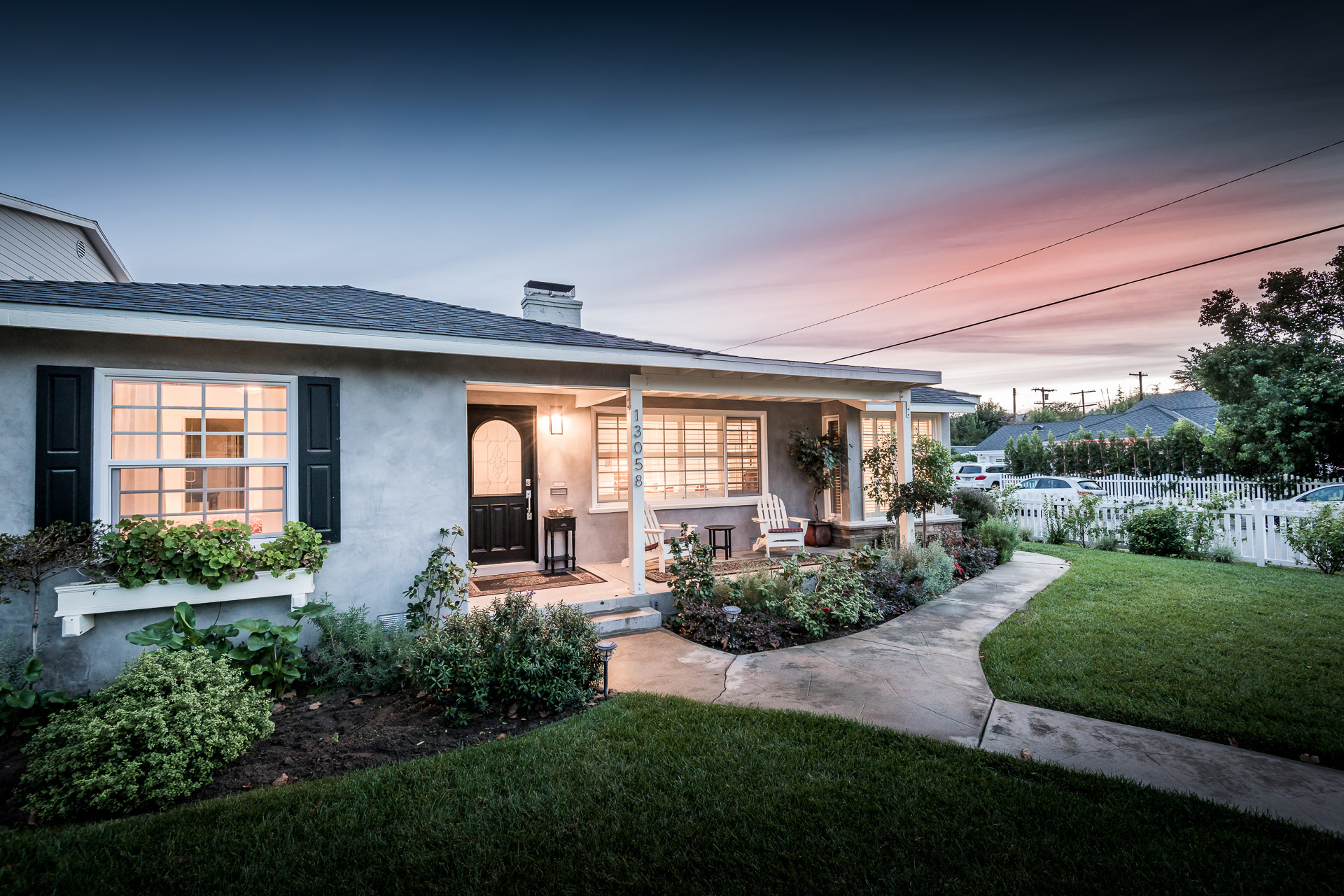 Stunningly updated Studio City home in highly desirable neighborhood. Situated on a corner with charming curb appeal, this home features a white picket fence, beautiful landscaping, and a path leading to the covered front porch. Inside, warm hardwood floors are complimented by crisp white plantation shutters. An inviting formal living room with fireplace flows directly into the formal dining room, perfect for entertaining. An incredible open concept kitchen boasts a beautiful bay window, dual wall ovens, a 4 burner range with griddle, and an island with breakfast bar overlooking a wonderful family room with a gorgeous fireplace, crown mouldings, skylights, built-ins, and oversized paned sliding doors to the patio. The spacious master suite features hardwood floors and a spa-like bath with stunning dual vanity, oversized glass shower, and a modern soaking tub. Outside, an entertainer’s yard features a covered loggia, built-in BBQ, sparkling pool, and fruit trees. A detached cabana boasts a full bath, kitchen, and murphy bed, offering a great solution for long-term guests, in-laws, home office, or studio. A truly amazing opportunity to enjoy the Studio City lifestyle!