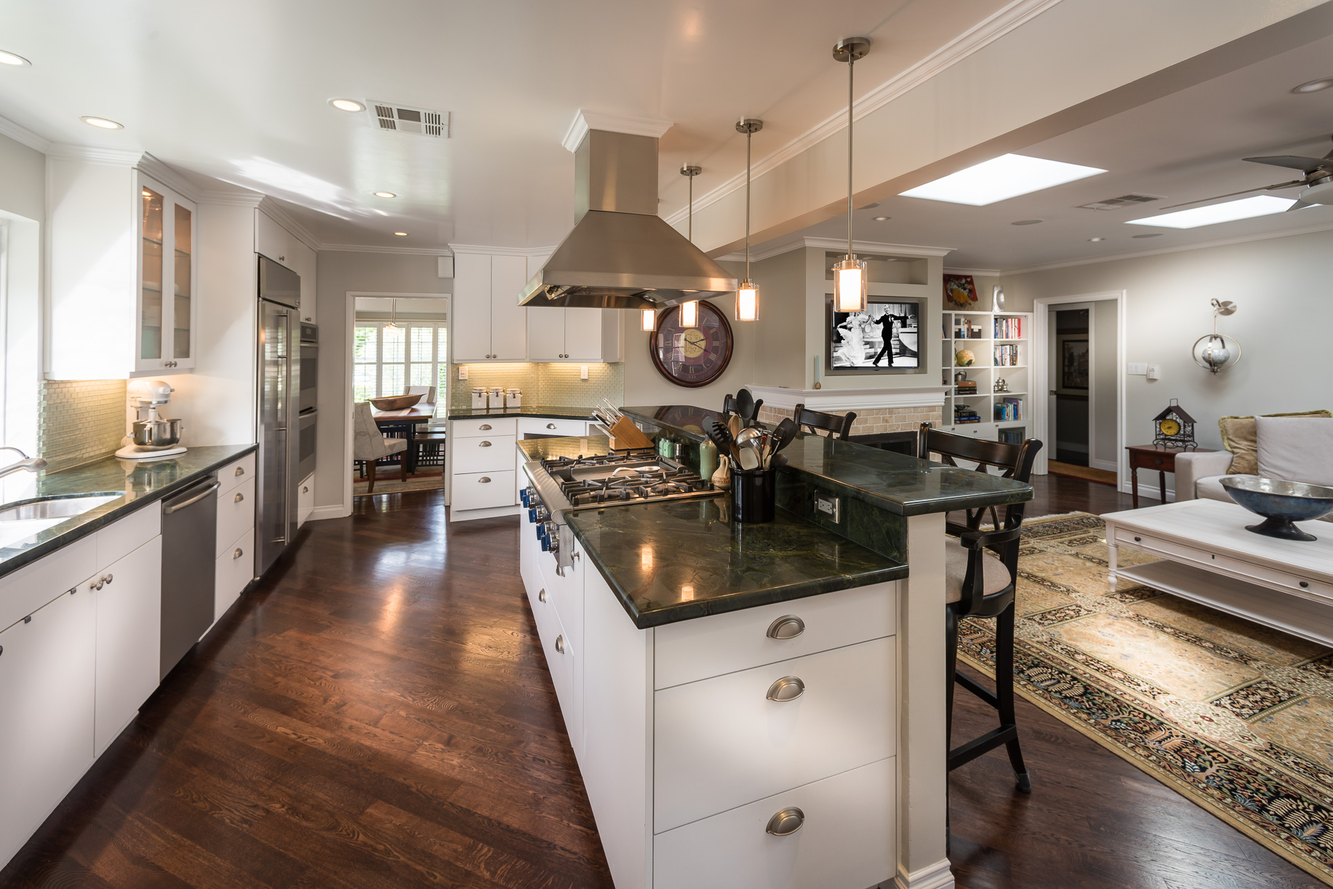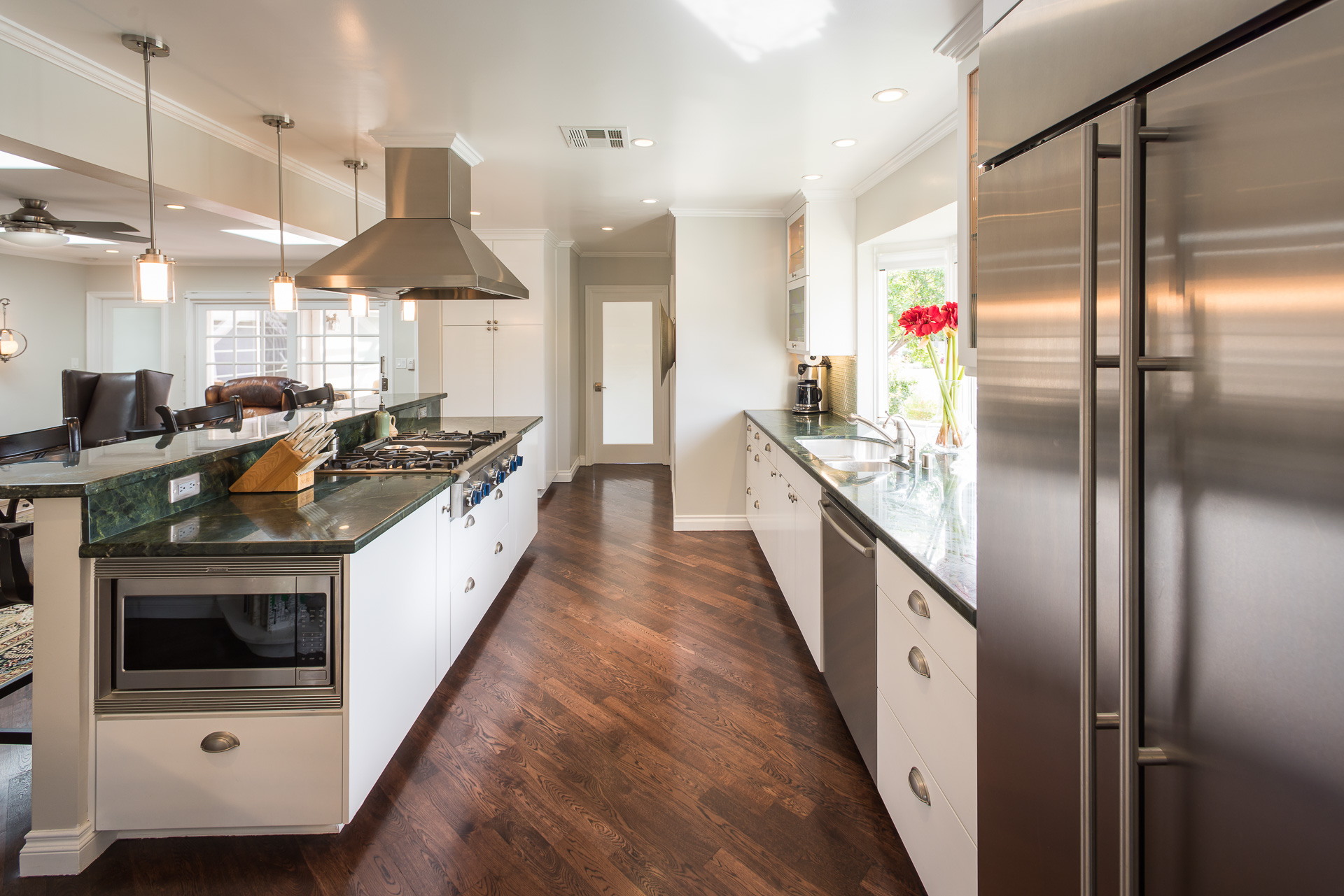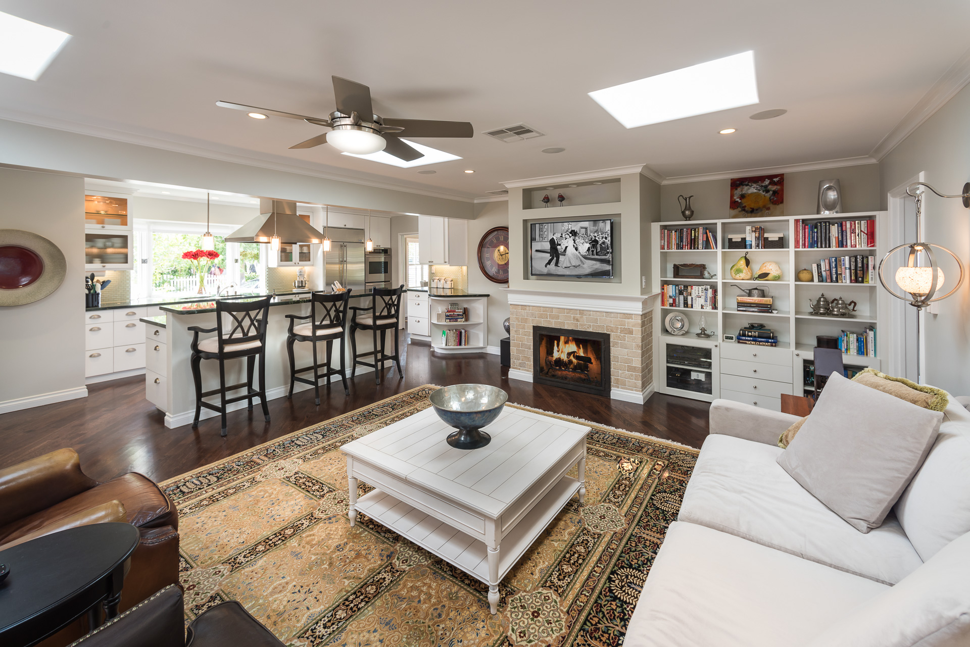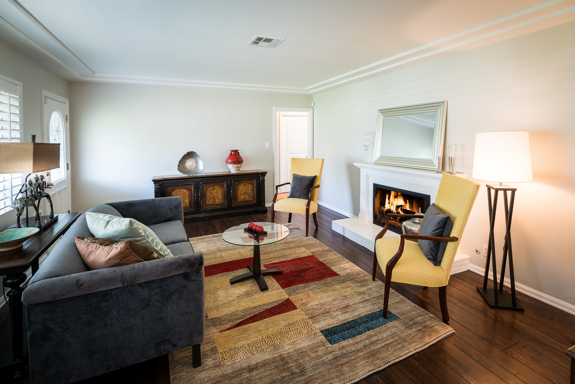 Stunningly updated Studio City home in highly desirable neighborhood. Situated on a corner with charming curb appeal, this home features a white picket fence, beautiful landscaping, and a path leading to the covered front porch. Inside, warm hardwood floors are complimented by crisp white plantation shutters. An inviting formal living room with fireplace flows directly into the formal dining room, perfect for entertaining. An incredible open concept kitchen boasts a beautiful bay window, dual wall ovens, a 4 burner range with griddle, and an island with breakfast bar overlooking a wonderful family room with a gorgeous fireplace, crown mouldings, skylights, built-ins, and oversized paned sliding doors to the patio. The spacious master suite features hardwood floors and a spa-like bath with stunning dual vanity, oversized glass shower, and a modern soaking tub. Outside, an entertainer’s yard features a covered loggia, built-in BBQ, sparkling pool, and fruit trees. A detached cabana boasts a full bath, kitchen, and murphy bed, offering a great solution for long-term guests, in-laws, home office, or studio. A truly amazing opportunity to enjoy the Studio City lifestyle!