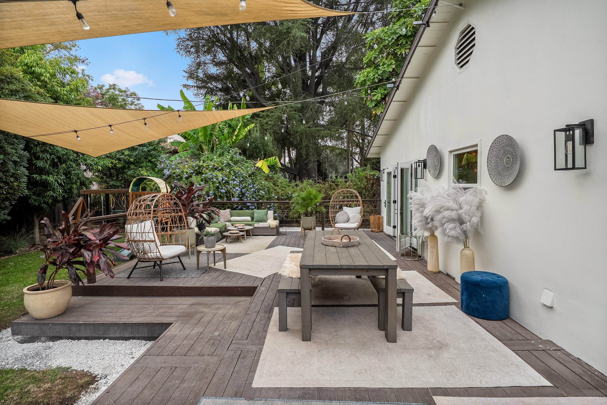 Situated on a sprawling, gated lot within the desirable Magnolia Estates pocket of Sherman Oaks, this charming estate seamlessly blends timeless character with thoughtful modern upgrades. Inside, the open-concept main living space features a tastefully remodeled kitchen equipped with top-of-the-line appliances and french limestone counters, a formal dining room and spacious living room that boasts vaulted ceilings and a cozy fireplace. French doors open to an expansive deck that invites outdoor living and entertaining. Outside, the serene backyard retreat offers a private haven surrounded by mature landscaping. There are three generously sized bedrooms and two full bathrooms, including an inviting primary suite with a walk-in closet and spa-inspired bathroom, complete with a soaking tub, separate shower and double vanity. Additional highlights include a Nest thermostat, two-car garage with laundry and gated driveway that offers abundant parking. This property is conveniently located just moments from Westfield Fashion Square, Ventura Boulevard’s premier shopping and dining, and so much more.