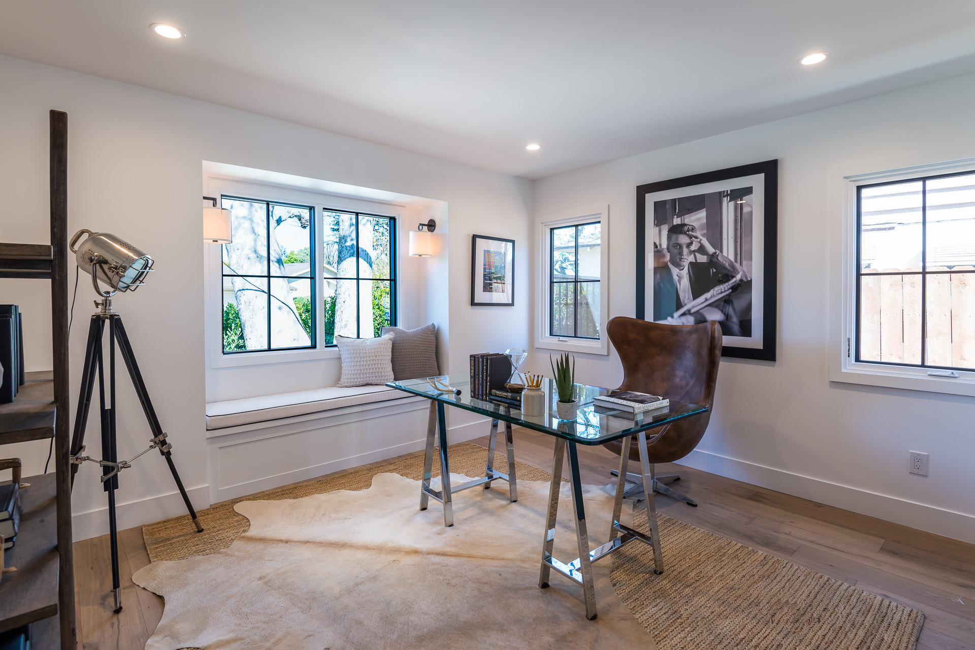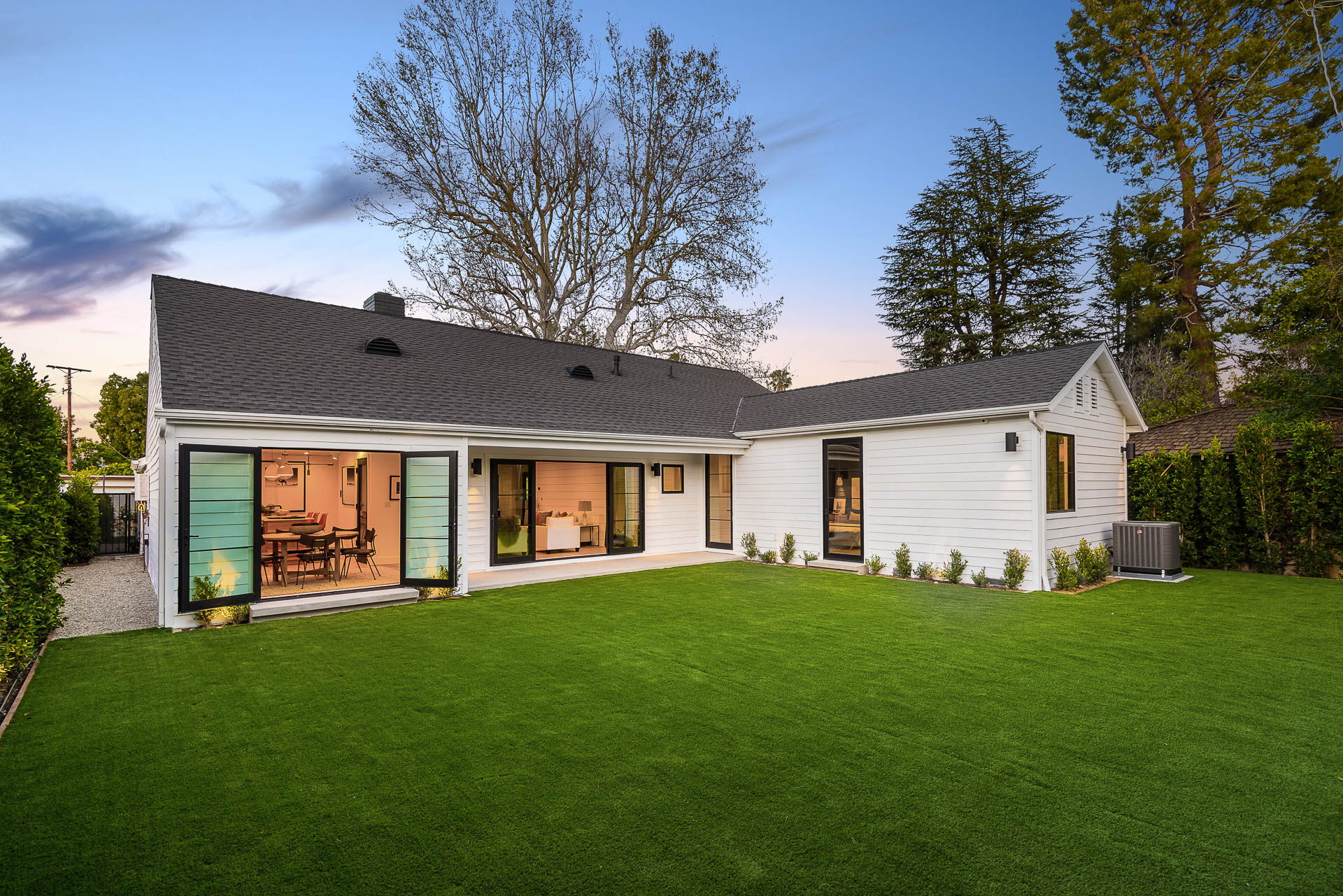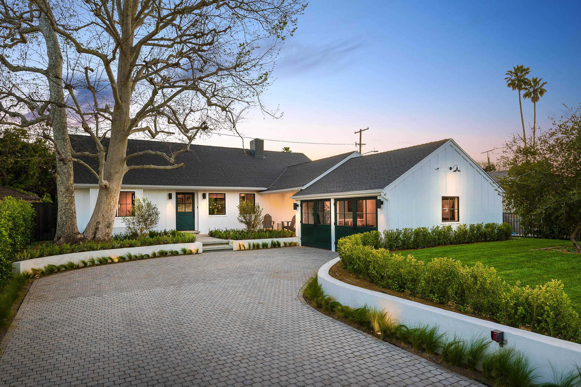 Privacy gates, a charming Live Oak Tree and a Belgium Block Driveway announce your arrival at this Richly Redone home in a quant Sherman Oaks area. Set foot into seamless light oak hardwood floors and make your way through the bright open floor plan with high ceilings, textured stone fireplace, and a view of the grassy backyard through floor to ceiling doors. Throughout the home, you can find custom designer touches such as Ralph Lauren, Kelly Wearstler, and Thomas O'Brien light fixtures. Walk into the Kitchen where you will find a flawless Sachs tile backsplash, gorgeous center island with shaws sink, waterworks plumbing, and inlaid oak cabinets. Three spacious bedrooms and three exquisite bathrooms with no detail spared. The Master Suite is all about the ambiance with an abundance of natural light, walk-in closet with custom oak cabinets, sliding barn door with inlay chicken wire and a beautifully Master Bathroom with features such as breathtaking emerald onyx slab shower, separate soaking tub, remote controlled self-cleaning toilet, and added touches like marble pulls on the cabinets. In addition, a completed Garage conversion with stylish Carriage Doors. Tastefully & modernly finished. Additional amenities include a launch pad smart home system, full alarm system, security cameras throughout and so much more.