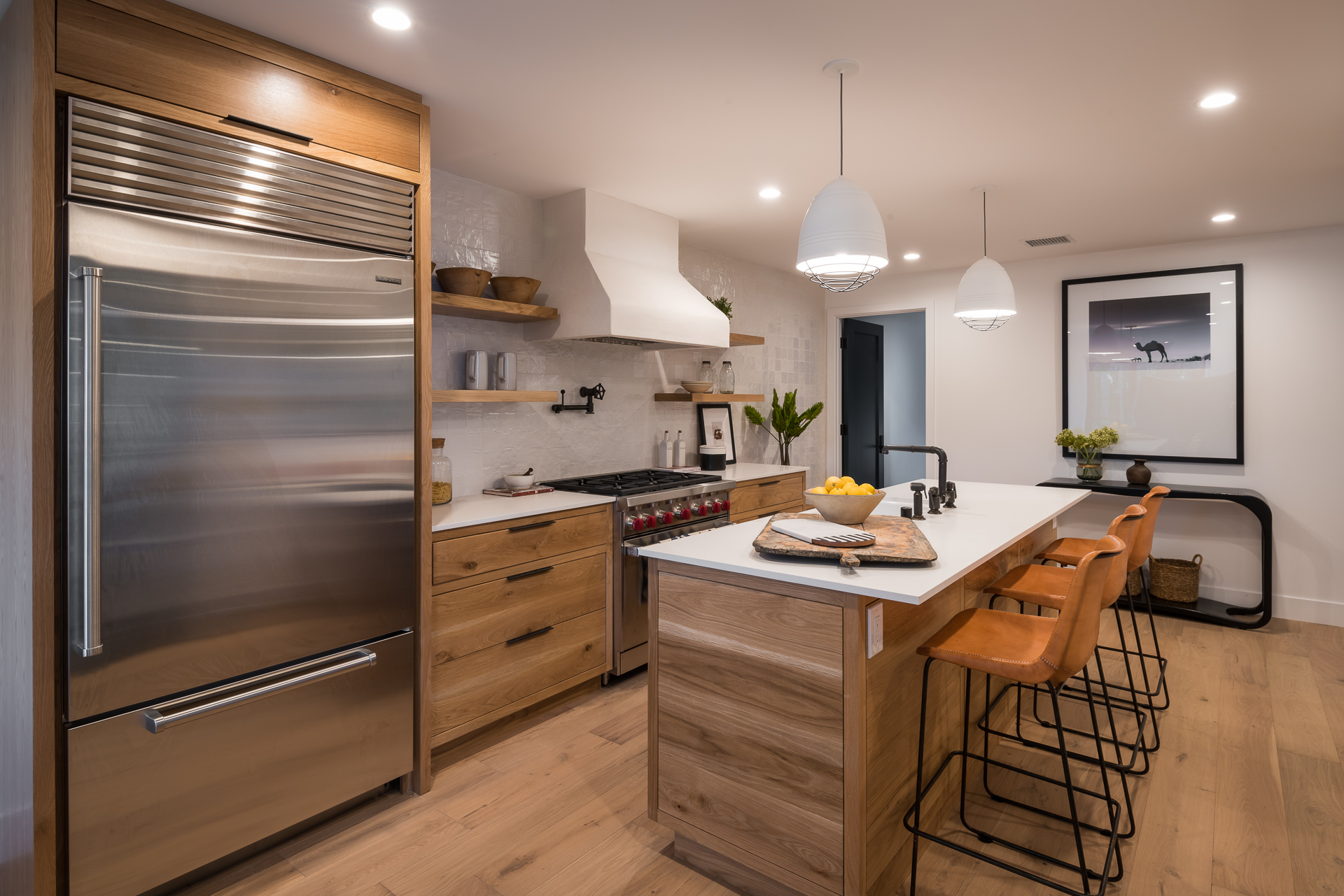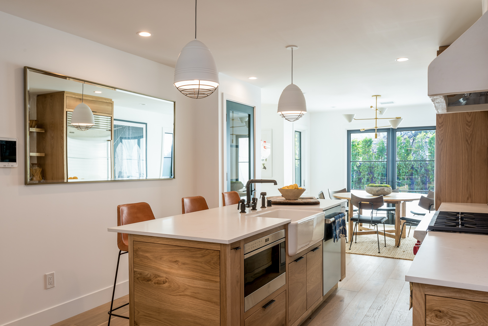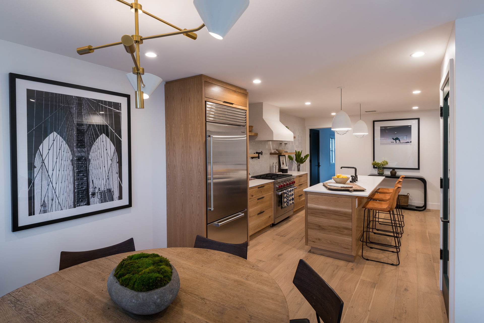 Privacy gates, a charming Live Oak Tree and a Belgium Block Driveway announce your arrival at this Richly Redone home in a quant Sherman Oaks area. Set foot into seamless light oak hardwood floors and make your way through the bright open floor plan with high ceilings, textured stone fireplace, and a view of the grassy backyard through floor to ceiling doors. Throughout the home, you can find custom designer touches such as Ralph Lauren, Kelly Wearstler, and Thomas O'Brien light fixtures. Walk into the Kitchen where you will find a flawless Sachs tile backsplash, gorgeous center island with shaws sink, waterworks plumbing, and inlaid oak cabinets. Three spacious bedrooms and three exquisite bathrooms with no detail spared. The Master Suite is all about the ambiance with an abundance of natural light, walk-in closet with custom oak cabinets, sliding barn door with inlay chicken wire and a beautifully Master Bathroom with features such as breathtaking emerald onyx slab shower, separate soaking tub, remote controlled self-cleaning toilet, and added touches like marble pulls on the cabinets. In addition, a completed Garage conversion with stylish Carriage Doors. Tastefully & modernly finished. Additional amenities include a launch pad smart home system, full alarm system, security cameras throughout and so much more.