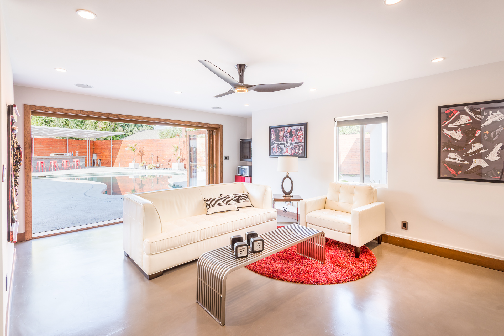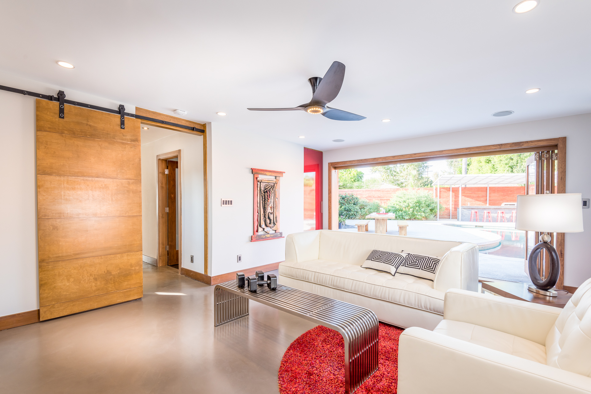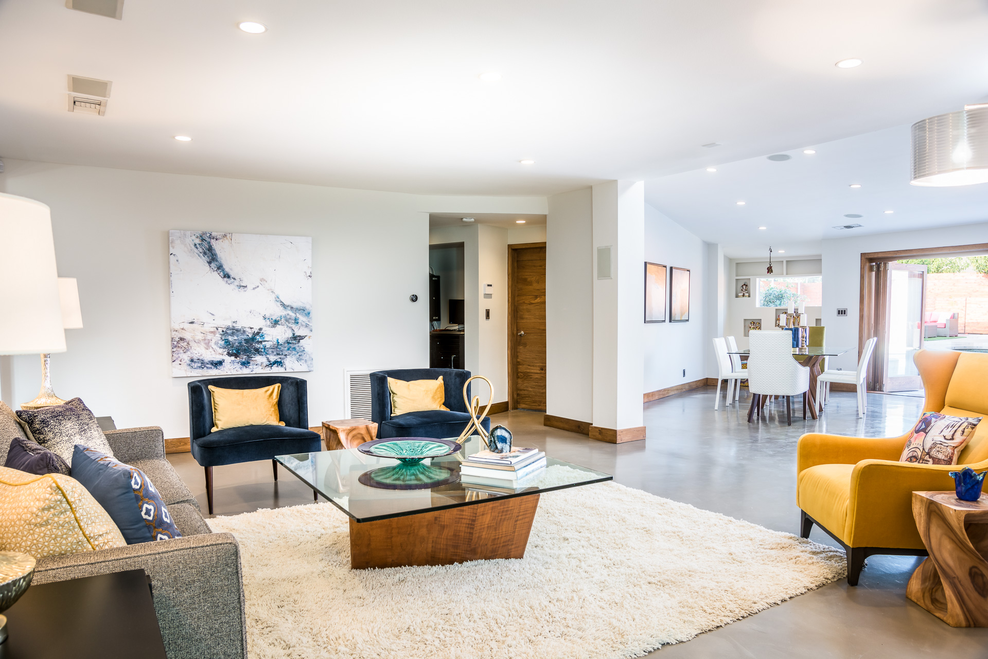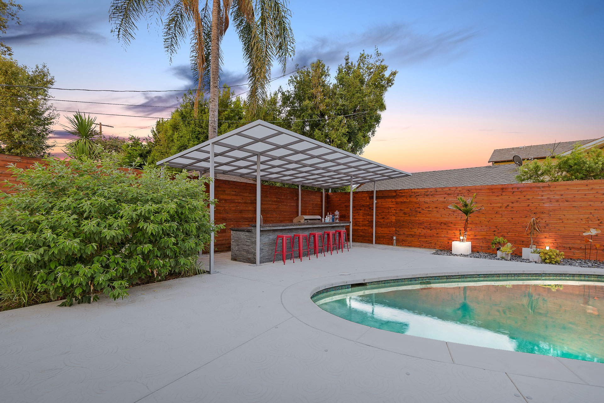 Come on in! This one-level mid-century modern home located in Prime Sherman Oaks will make you feel like you've been transported to a Palm Springs retreat. Sitting on a nearly 12,000 square foot lot, this completely remodeled home with 5 bedrooms and 5 bathrooms, offers an open floor plan with over 3,400 square feet, with high ceilings and cool concrete floors. The gourmet chef's kitchen is complete with Caesarstone countertops, built in Thermador appliances, custom cabinetry, and an oversized breakfast bar big enough for the whole family. This gorgeous home features two Master suites with walk-in closets as well as three additional rooms, perfect for bedrooms or office/living space. The living and dining areas open up seamlessly to each other and are highlighted by wall to wall folding windows that open to the entertainer's backyard. The yard features a saltwater PebbleSheen pool as well as a wet bar and built-in BBQ! Located in the Dixie Canyon School district, this is one you have to see. Moments from Ventura Blvd., Westfield Fashion Square + so much more, come fall in love with this incredible home!