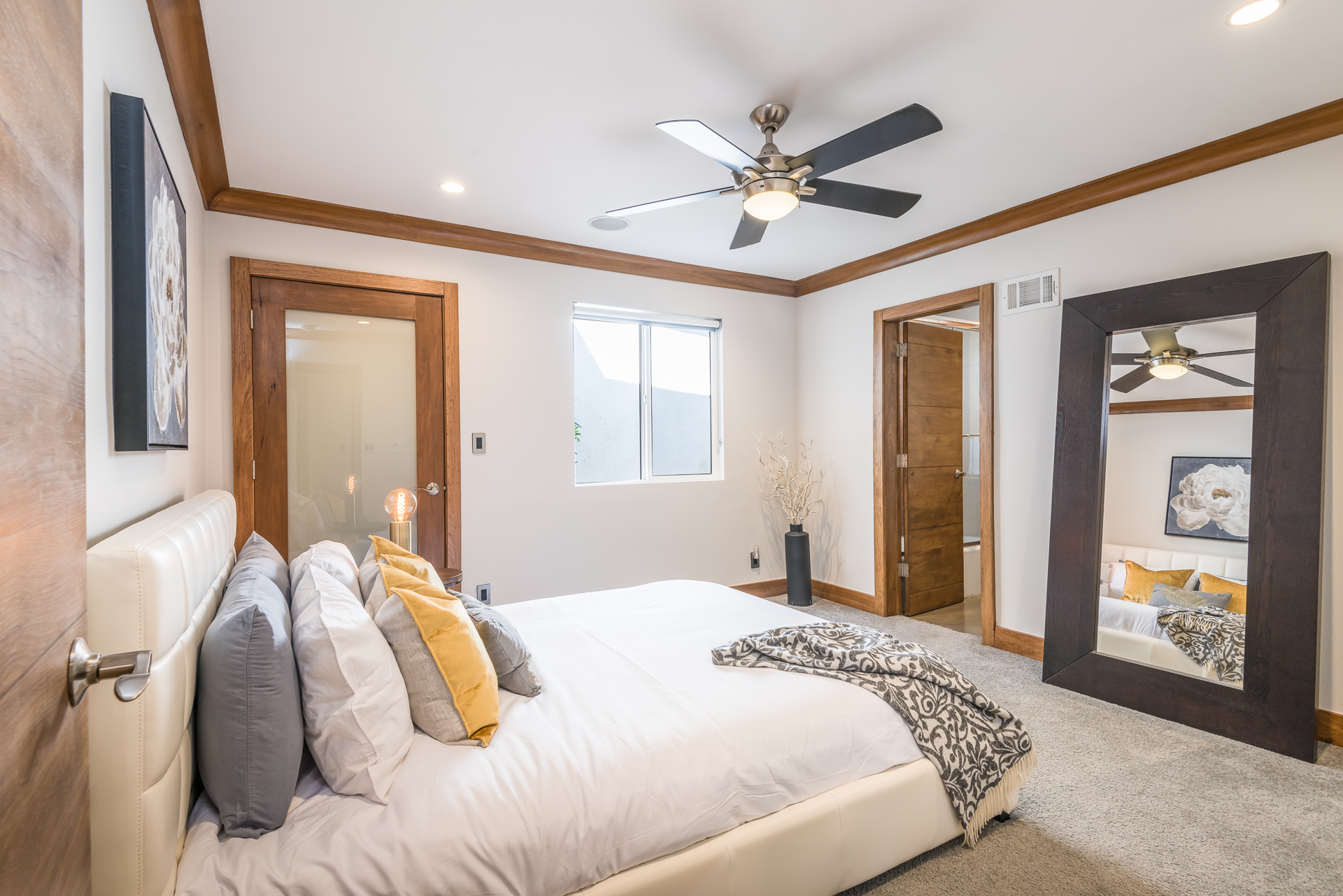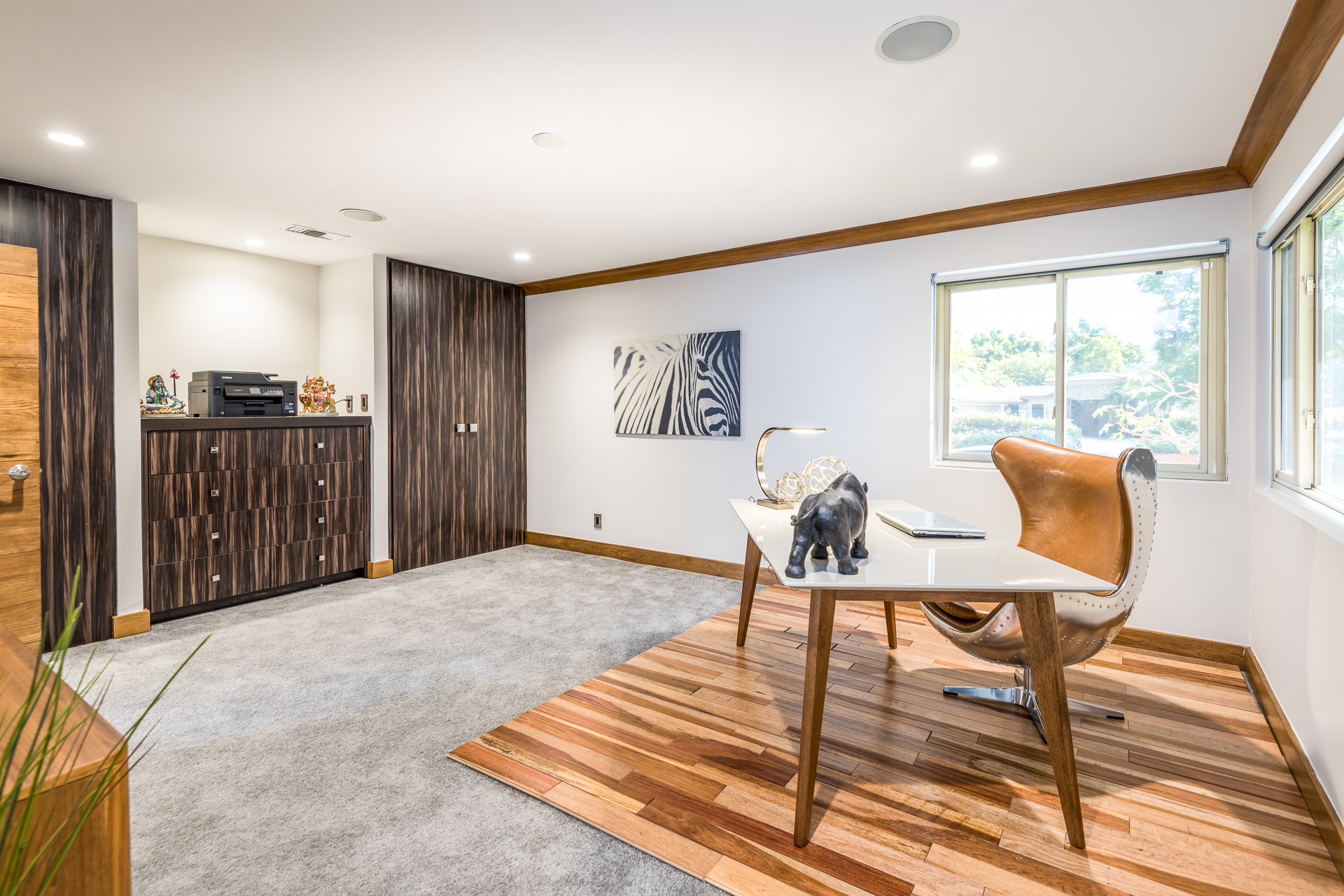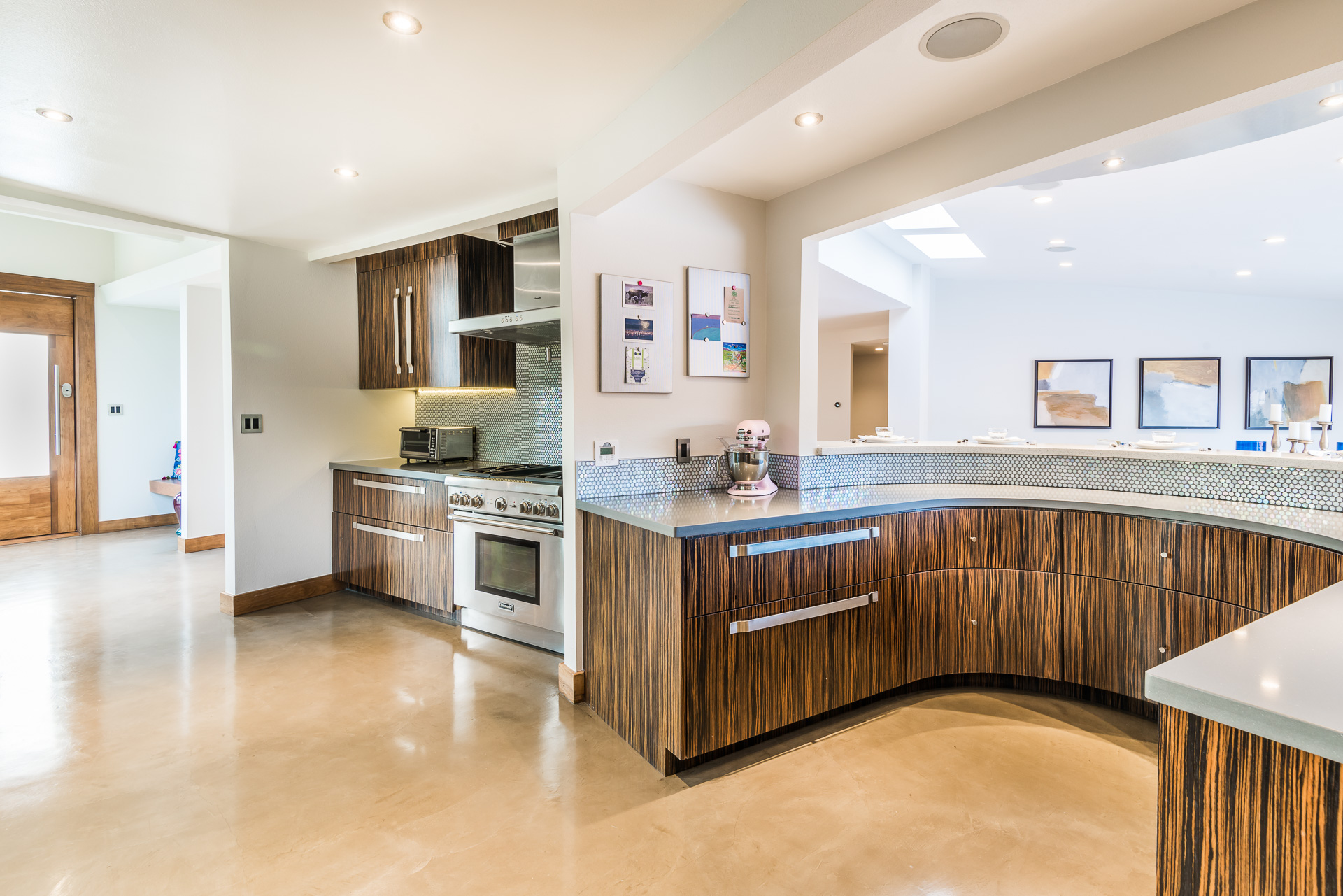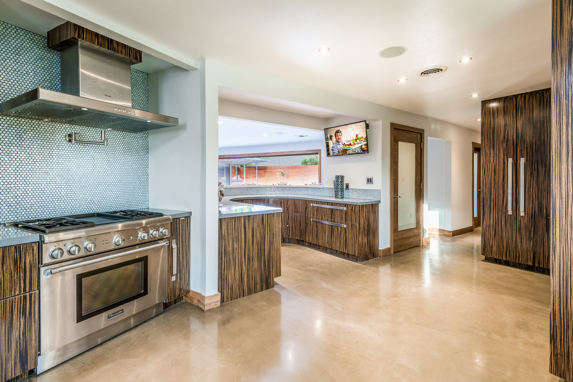 Come on in! This one-level mid-century modern home located in Prime Sherman Oaks will make you feel like you've been transported to a Palm Springs retreat. Sitting on a nearly 12,000 square foot lot, this completely remodeled home with 5 bedrooms and 5 bathrooms, offers an open floor plan with over 3,400 square feet, with high ceilings and cool concrete floors. The gourmet chef's kitchen is complete with Caesarstone countertops, built in Thermador appliances, custom cabinetry, and an oversized breakfast bar big enough for the whole family. This gorgeous home features two Master suites with walk-in closets as well as three additional rooms, perfect for bedrooms or office/living space. The living and dining areas open up seamlessly to each other and are highlighted by wall to wall folding windows that open to the entertainer's backyard. The yard features a saltwater PebbleSheen pool as well as a wet bar and built-in BBQ! Located in the Dixie Canyon School district, this is one you have to see. Moments from Ventura Blvd., Westfield Fashion Square + so much more, come fall in love with this incredible home!