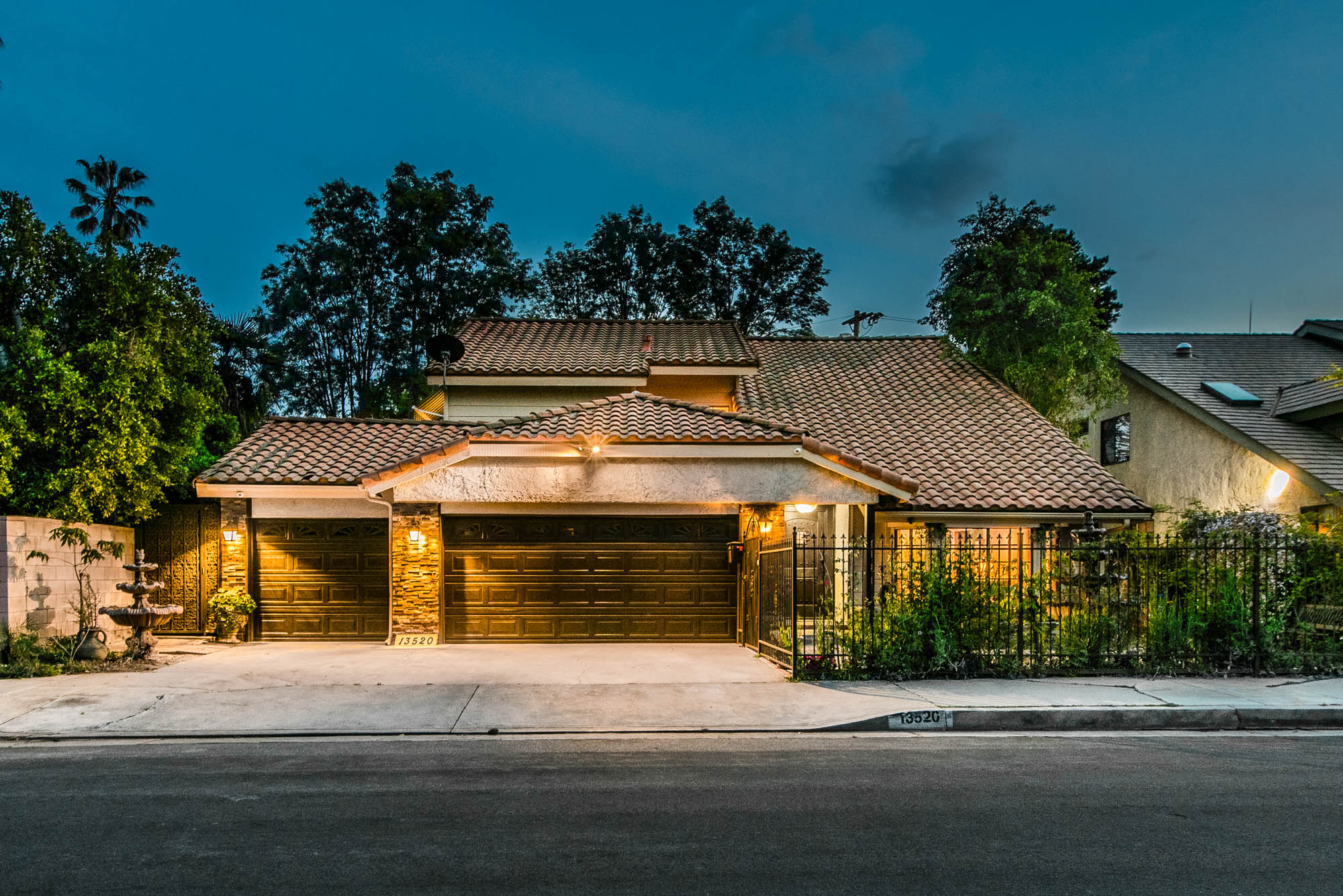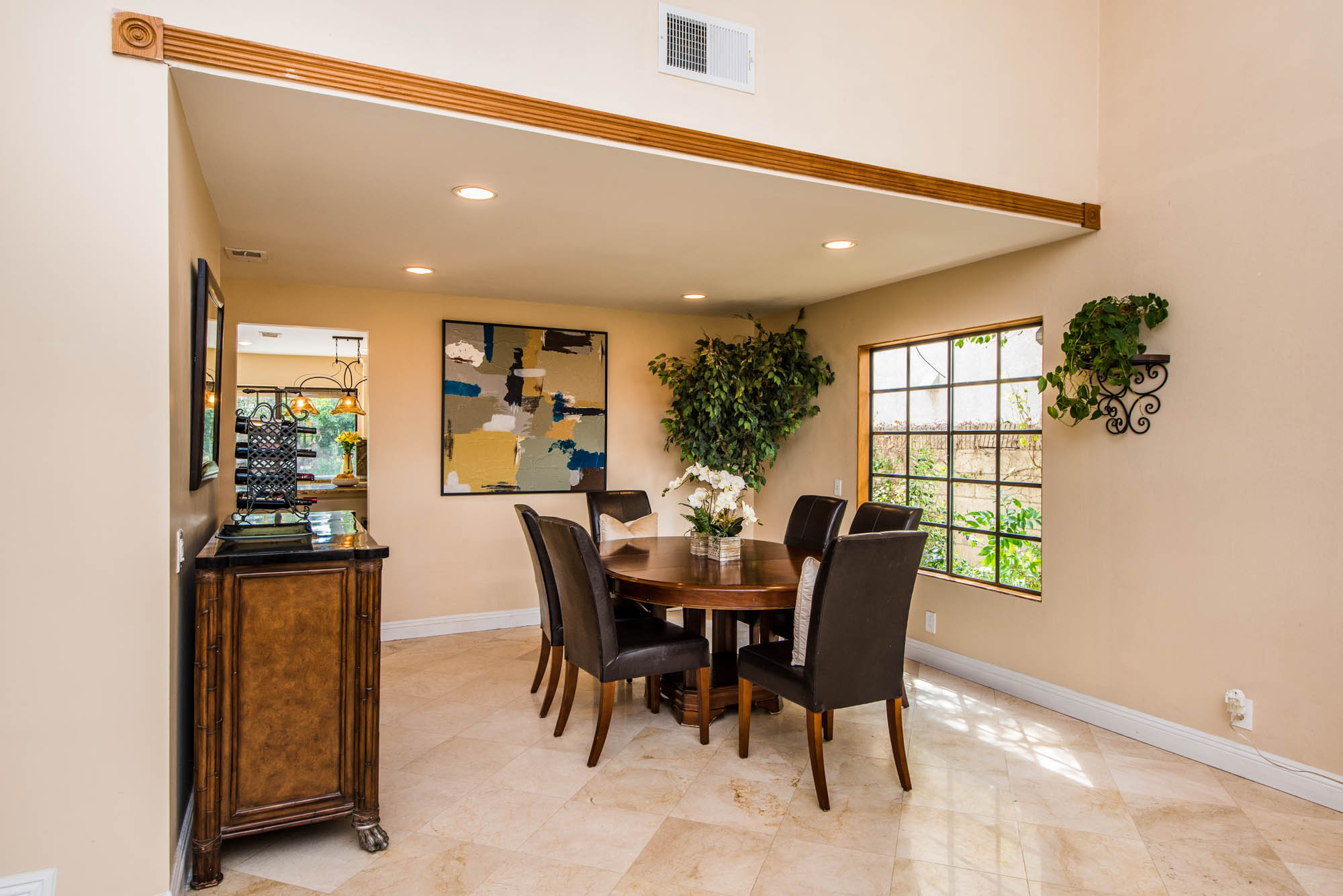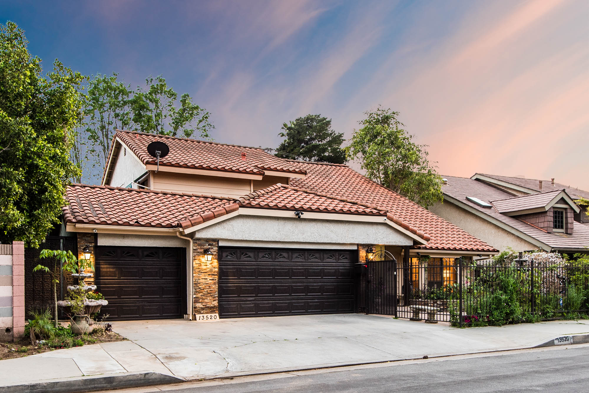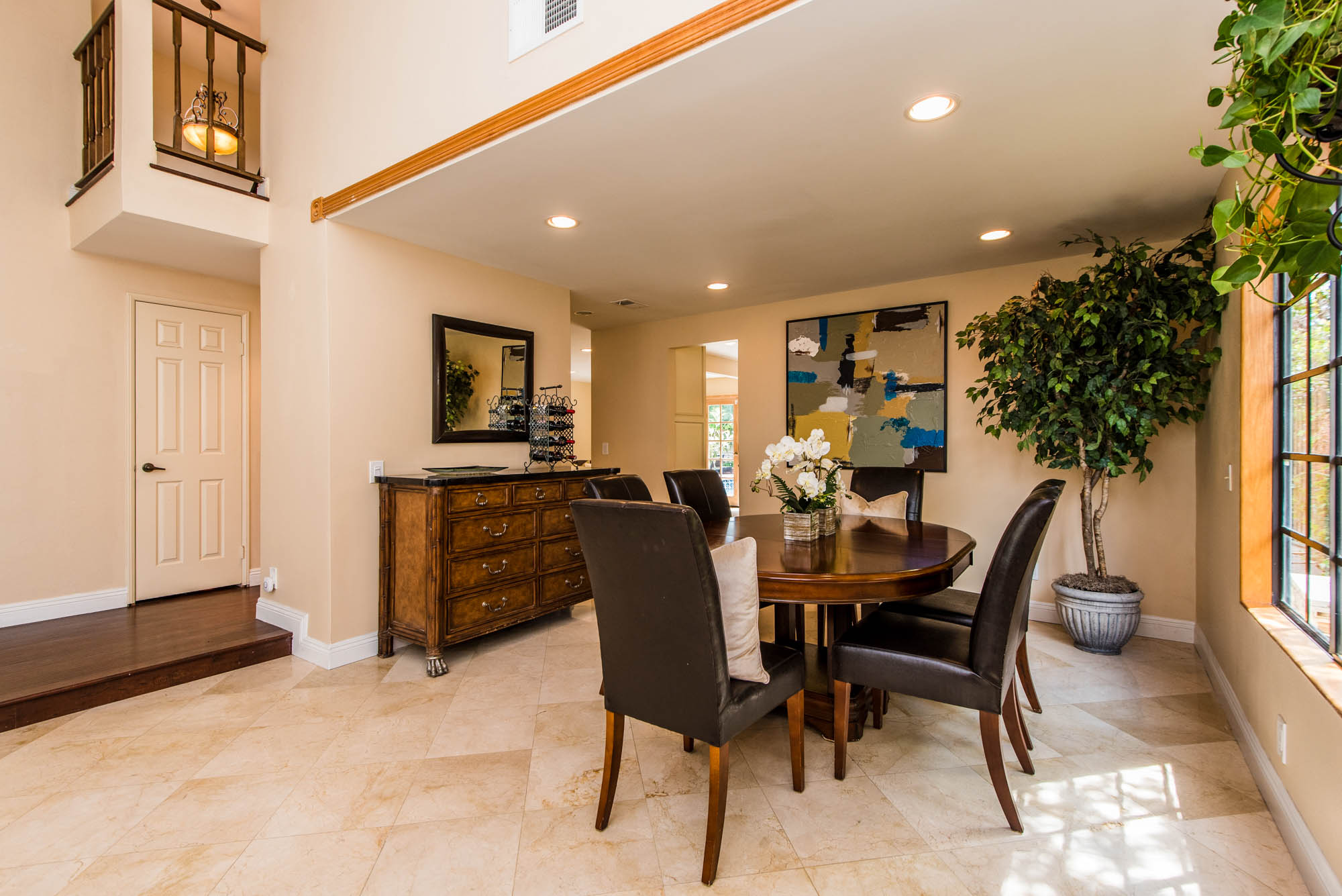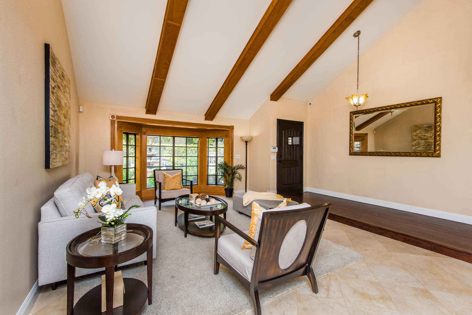 Beautifully updated 5 bedroom, 3 bath home located in a highly desirable pocket of Sherman Oaks. Enter through the gated brick courtyard and into this gorgeous home. Upon entering you are met with the dramatic vaulted ceilings and sophisticated Travertine flooring of the formal living room which opens into the formal dining room. The elegance continues into the gourmet chef’s kitchen, complete with top of the line Thermador appliances, large center island with breakfast bar, and marble countertops. The kitchen opens to the cozy den with wood burning fireplace and offers French doors to the private backyard. Outside, the lush landscaping, beautifully tiled pool & spa, and large patio area create the ultimate Southern California living experience. The downstairs rounds out with a spacious guest room, bathroom, and laundry room that provides direct access to the 3-car garage. Hardwood floors grace the upstairs which holds 4 more bedrooms including the opulent master suite with vaulted beamed ceilings, walk-in closet, and luxurious bathroom. Additional features include security camera system, newer plumbing, electrical, HVAC, and pool heater. Conveniently located to the Sherman Oaks Park, Westfield Shopping Center, and 101 freeway, this home is not to be missed!