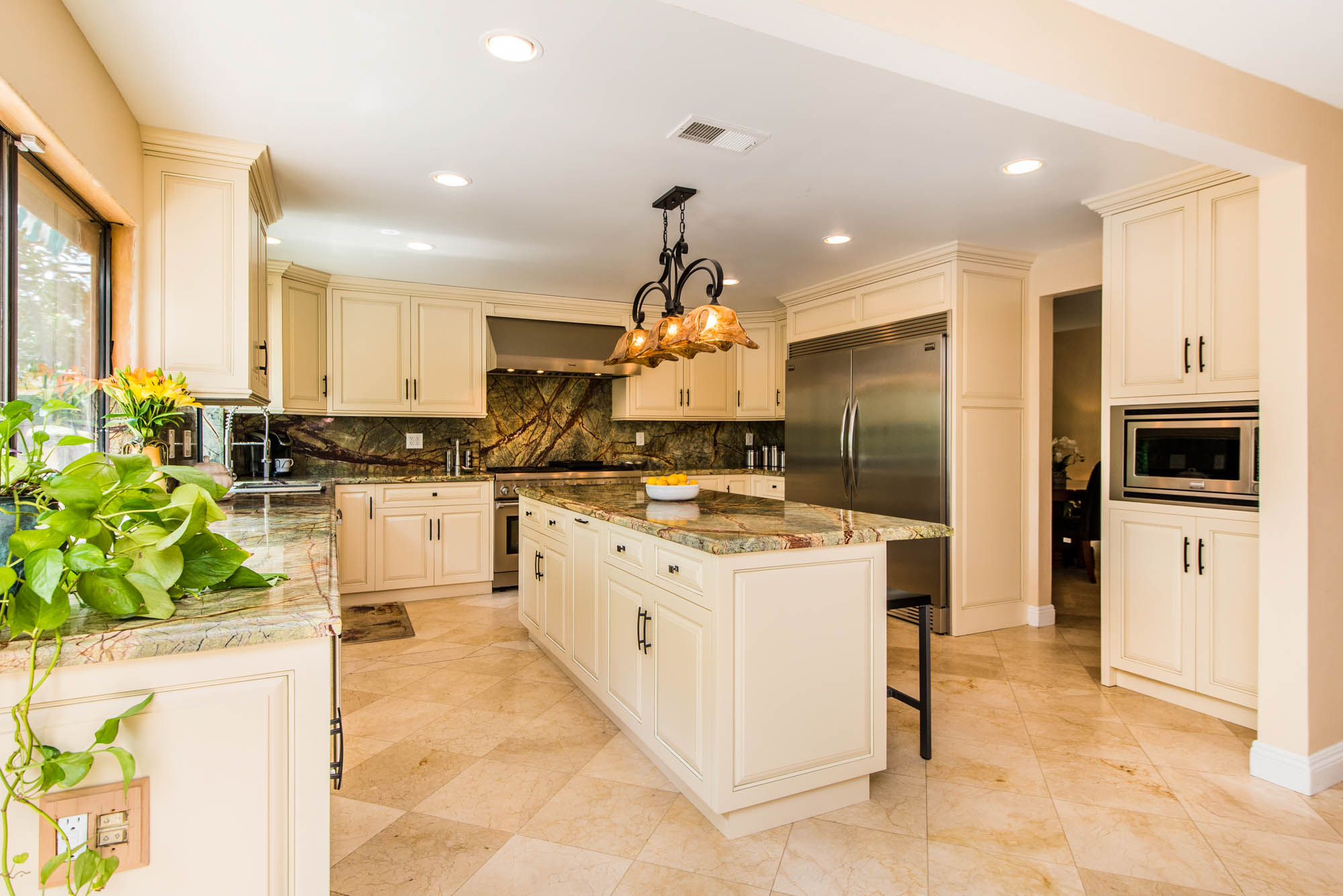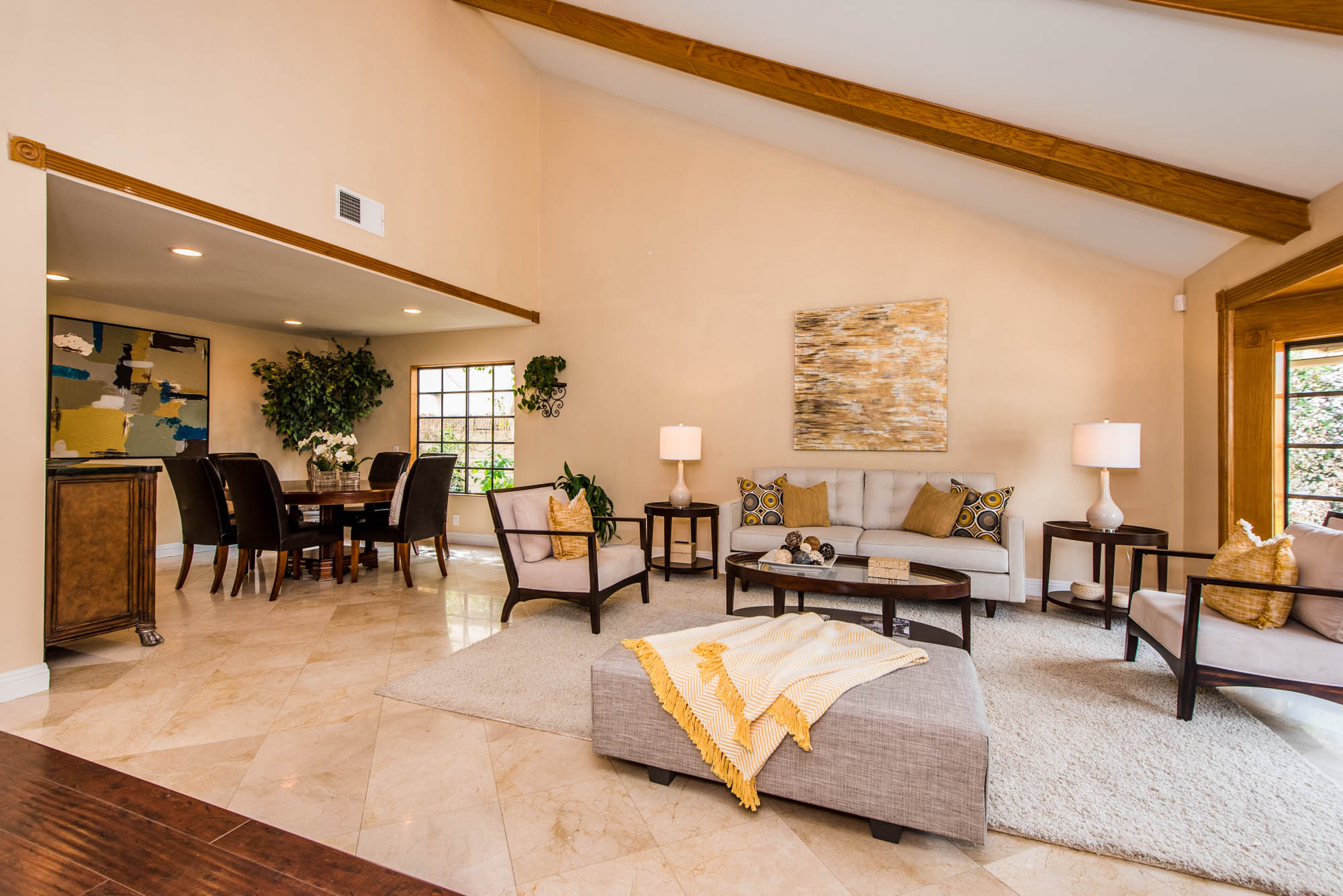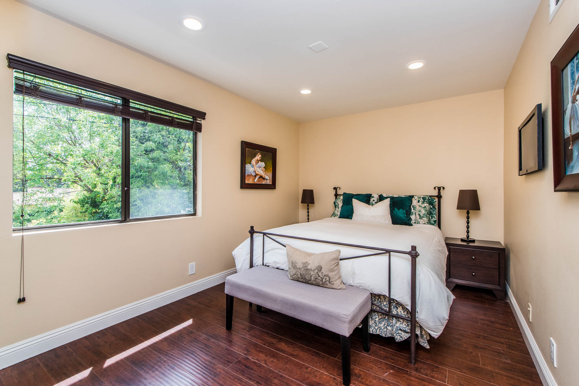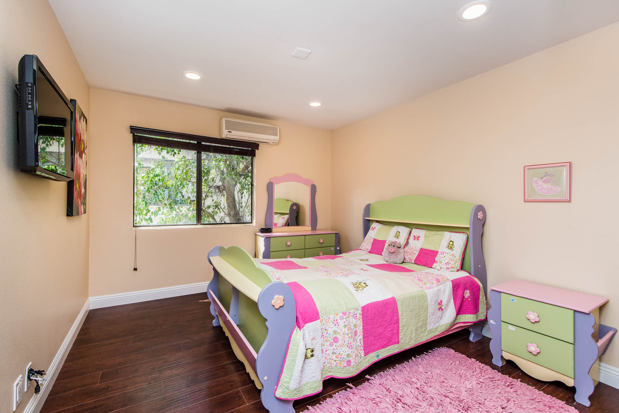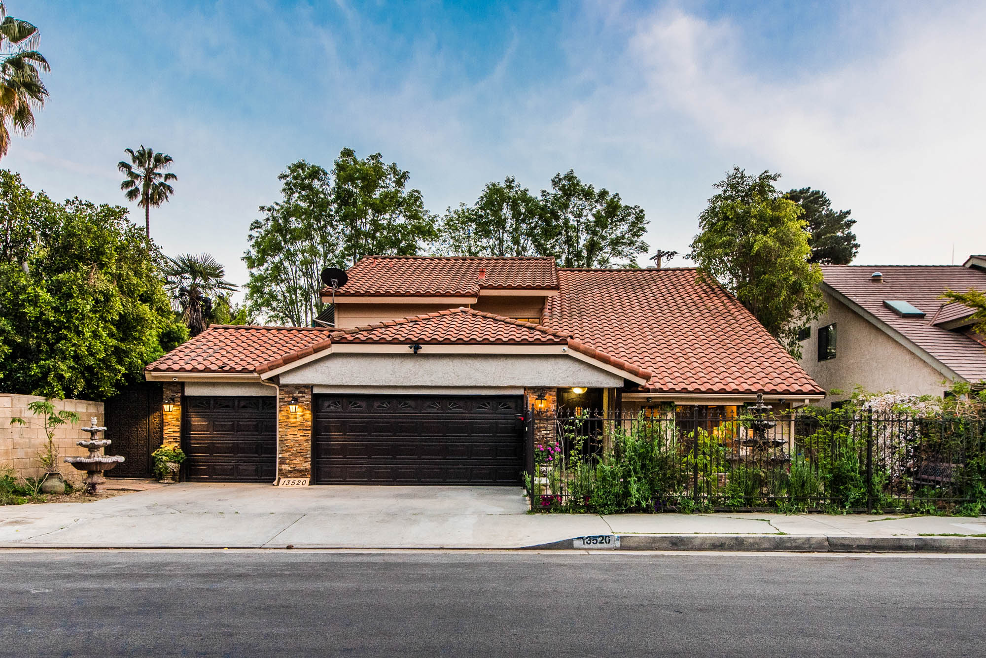 Beautifully updated 5 bedroom, 3 bath home located in a highly desirable pocket of Sherman Oaks. Enter through the gated brick courtyard and into this gorgeous home. Upon entering you are met with the dramatic vaulted ceilings and sophisticated Travertine flooring of the formal living room which opens into the formal dining room. The elegance continues into the gourmet chef’s kitchen, complete with top of the line Thermador appliances, large center island with breakfast bar, and marble countertops. The kitchen opens to the cozy den with wood burning fireplace and offers French doors to the private backyard. Outside, the lush landscaping, beautifully tiled pool & spa, and large patio area create the ultimate Southern California living experience. The downstairs rounds out with a spacious guest room, bathroom, and laundry room that provides direct access to the 3-car garage. Hardwood floors grace the upstairs which holds 4 more bedrooms including the opulent master suite with vaulted beamed ceilings, walk-in closet, and luxurious bathroom. Additional features include security camera system, newer plumbing, electrical, HVAC, and pool heater. Conveniently located to the Sherman Oaks Park, Westfield Shopping Center, and 101 freeway, this home is not to be missed!