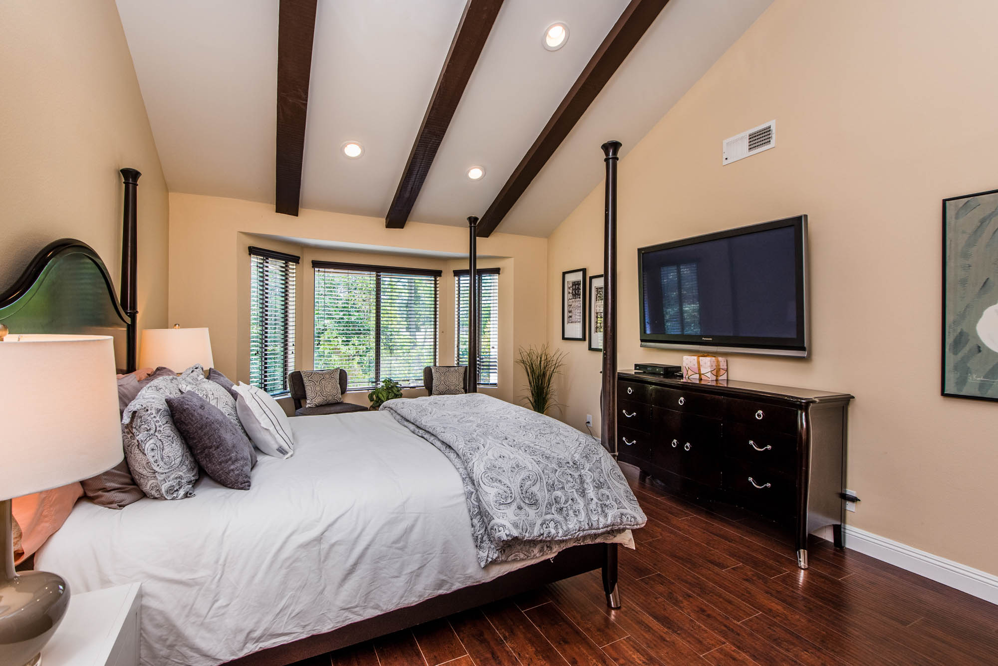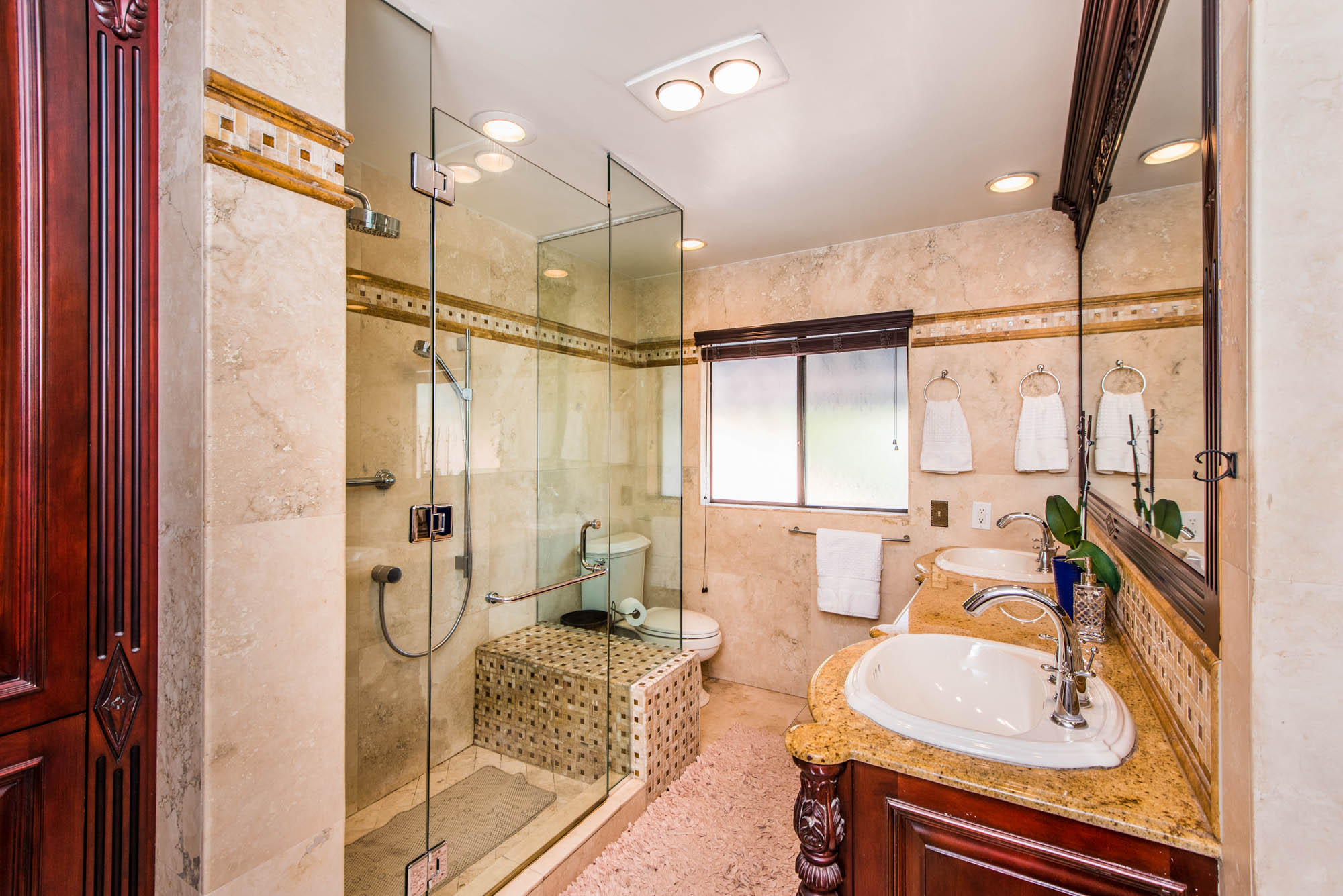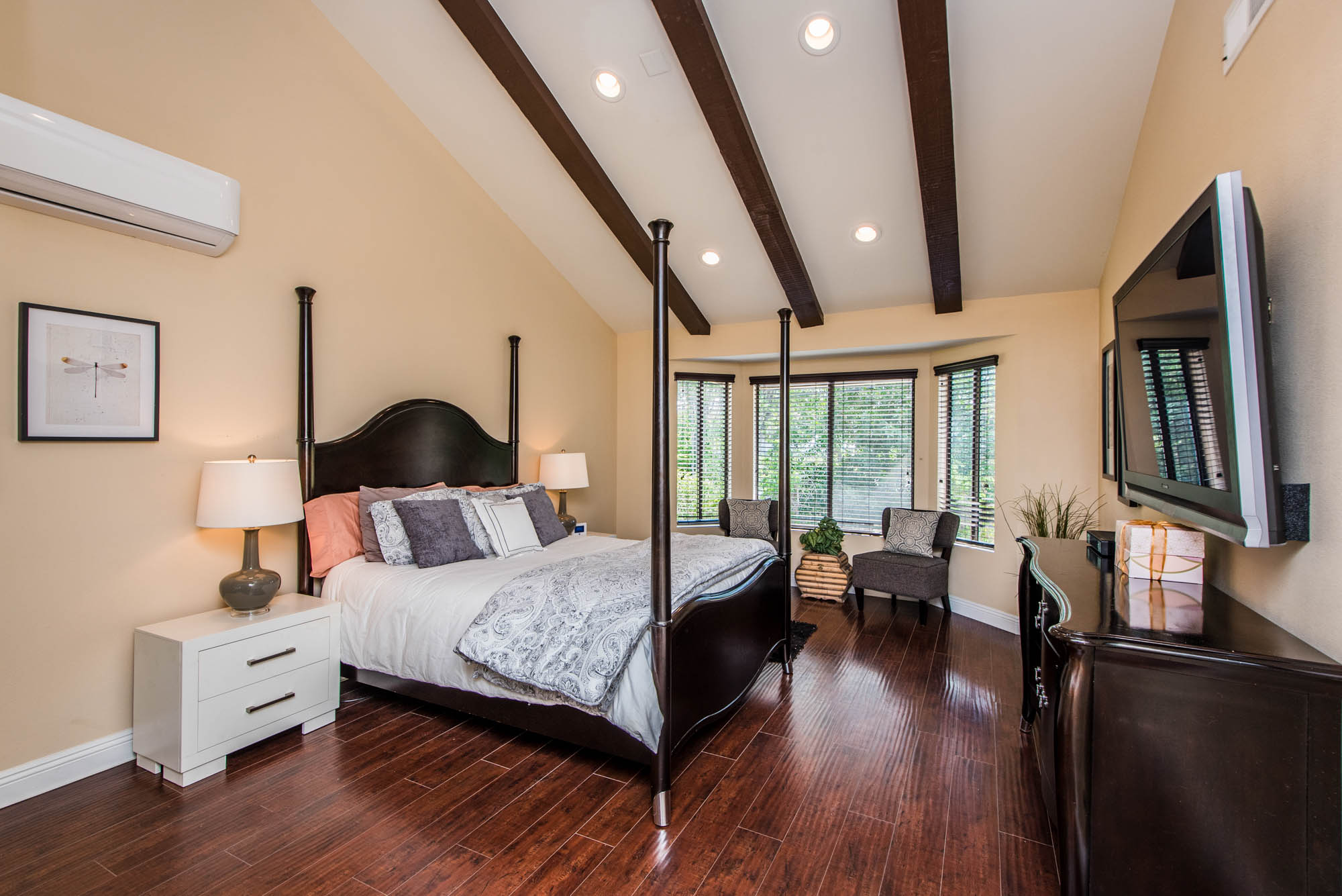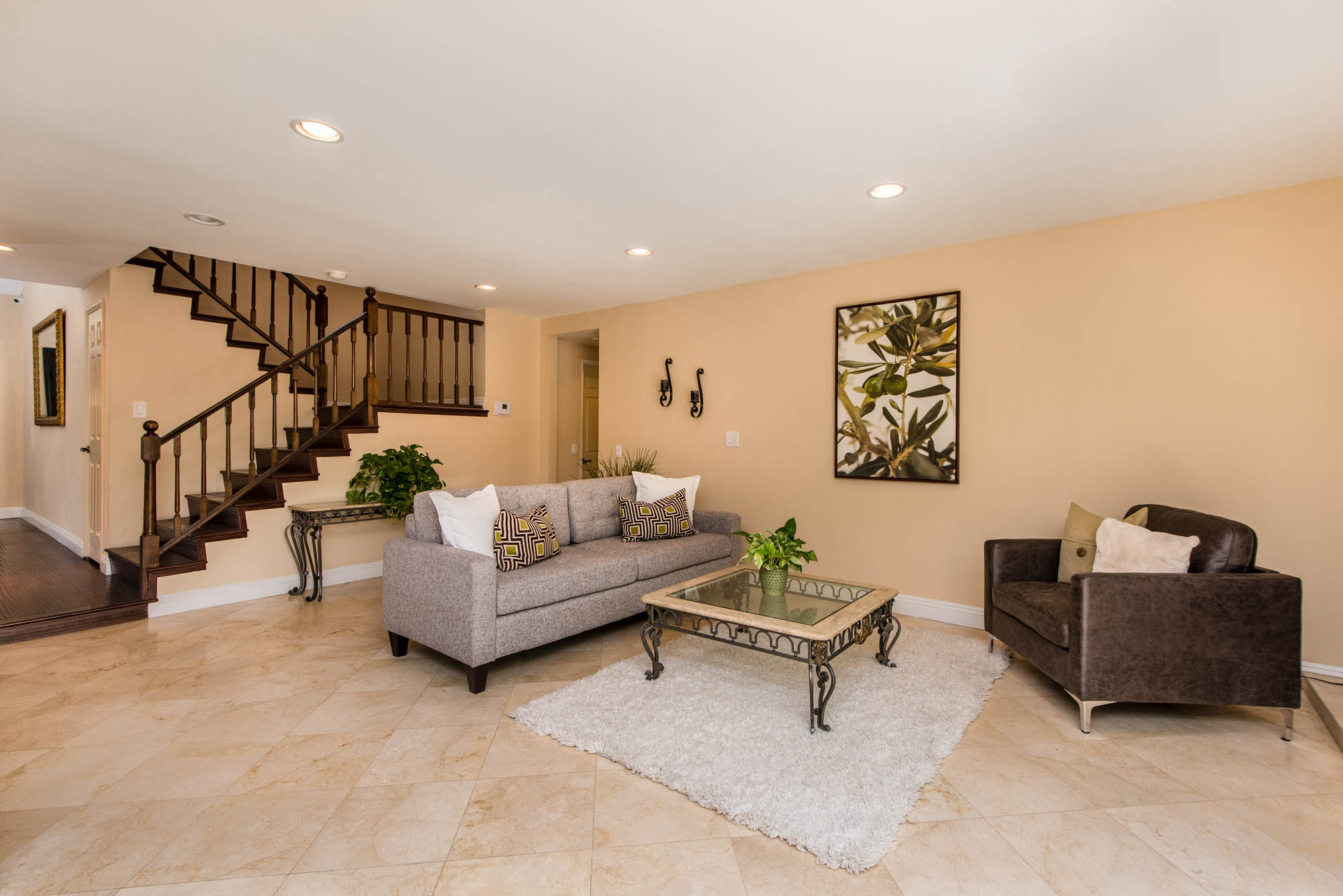 Beautifully updated 5 bedroom, 3 bath home located in a highly desirable pocket of Sherman Oaks. Enter through the gated brick courtyard and into this gorgeous home. Upon entering you are met with the dramatic vaulted ceilings and sophisticated Travertine flooring of the formal living room which opens into the formal dining room. The elegance continues into the gourmet chef’s kitchen, complete with top of the line Thermador appliances, large center island with breakfast bar, and marble countertops. The kitchen opens to the cozy den with wood burning fireplace and offers French doors to the private backyard. Outside, the lush landscaping, beautifully tiled pool & spa, and large patio area create the ultimate Southern California living experience. The downstairs rounds out with a spacious guest room, bathroom, and laundry room that provides direct access to the 3-car garage. Hardwood floors grace the upstairs which holds 4 more bedrooms including the opulent master suite with vaulted beamed ceilings, walk-in closet, and luxurious bathroom. Additional features include security camera system, newer plumbing, electrical, HVAC, and pool heater. Conveniently located to the Sherman Oaks Park, Westfield Shopping Center, and 101 freeway, this home is not to be missed!