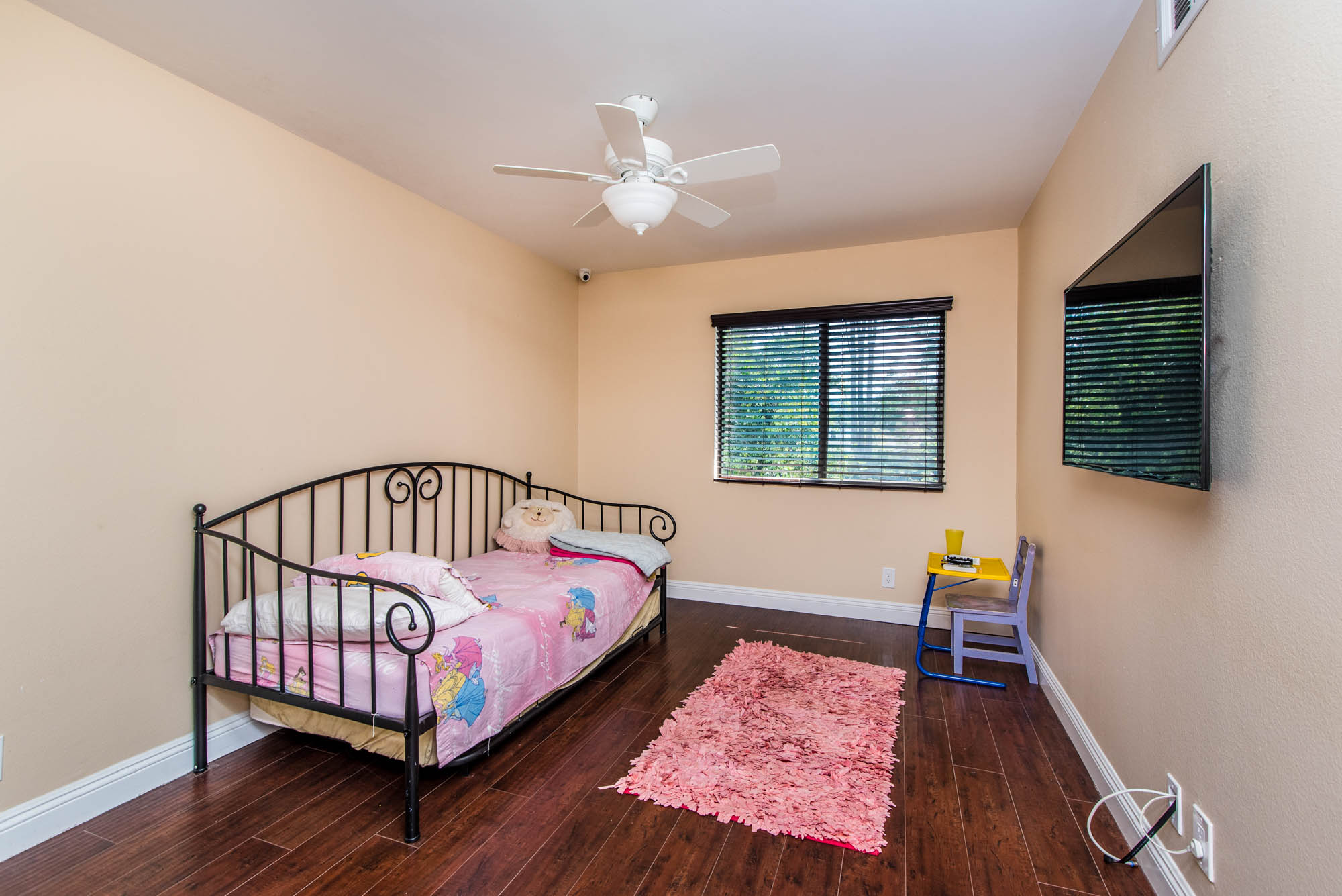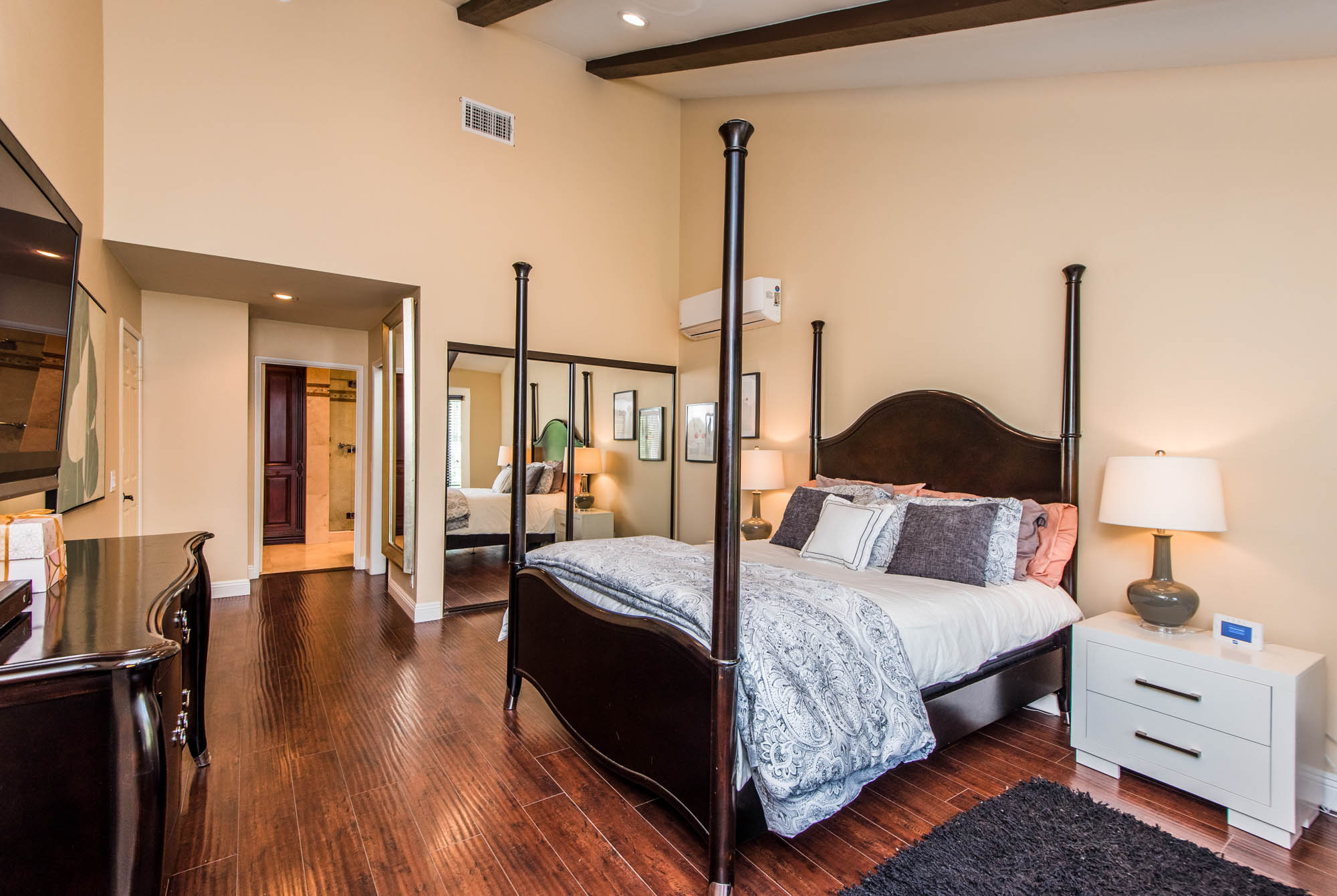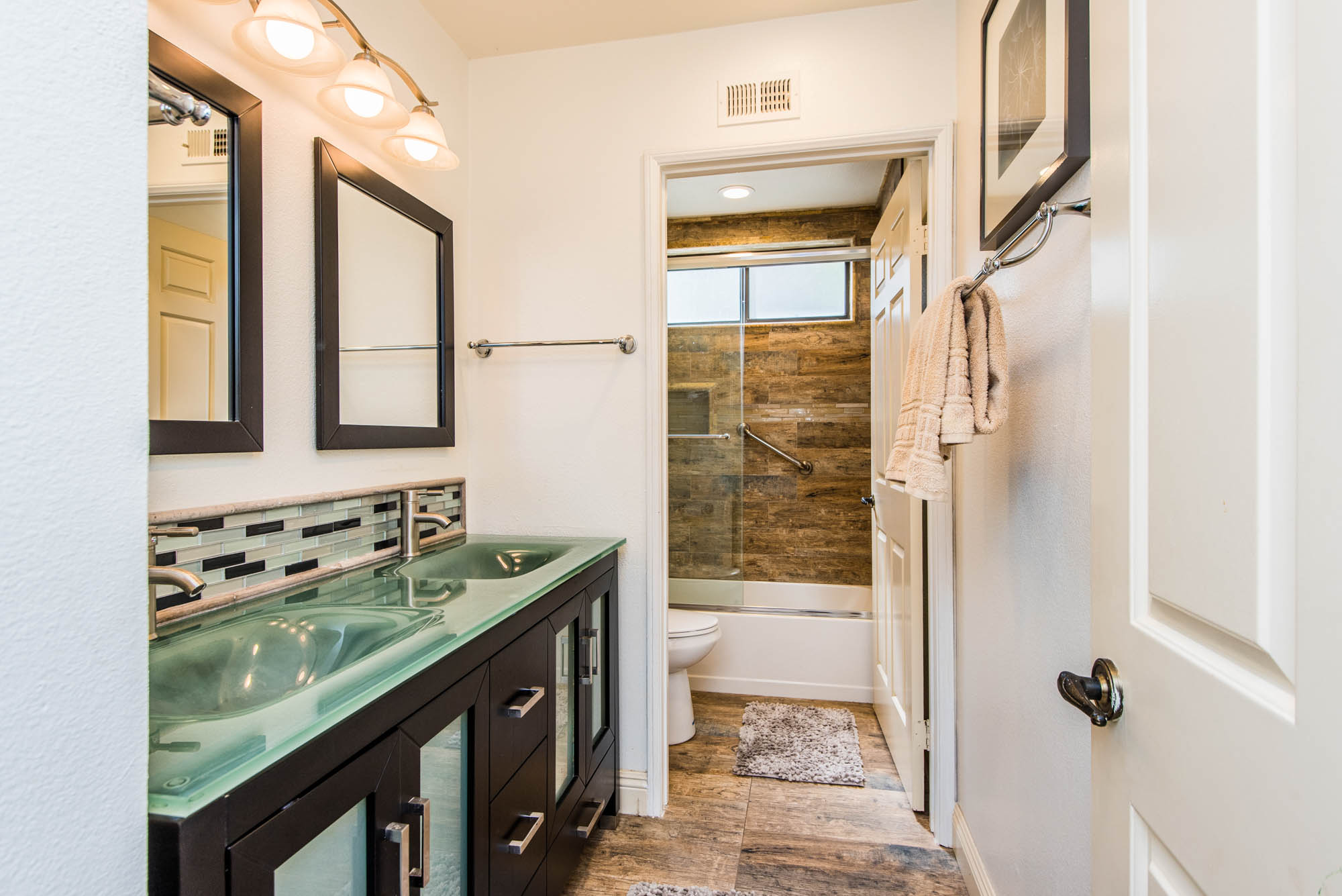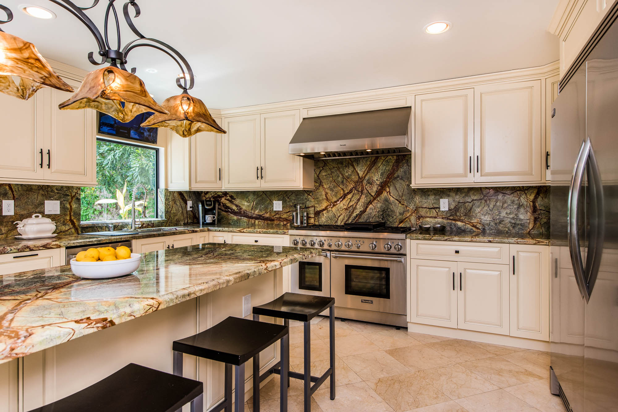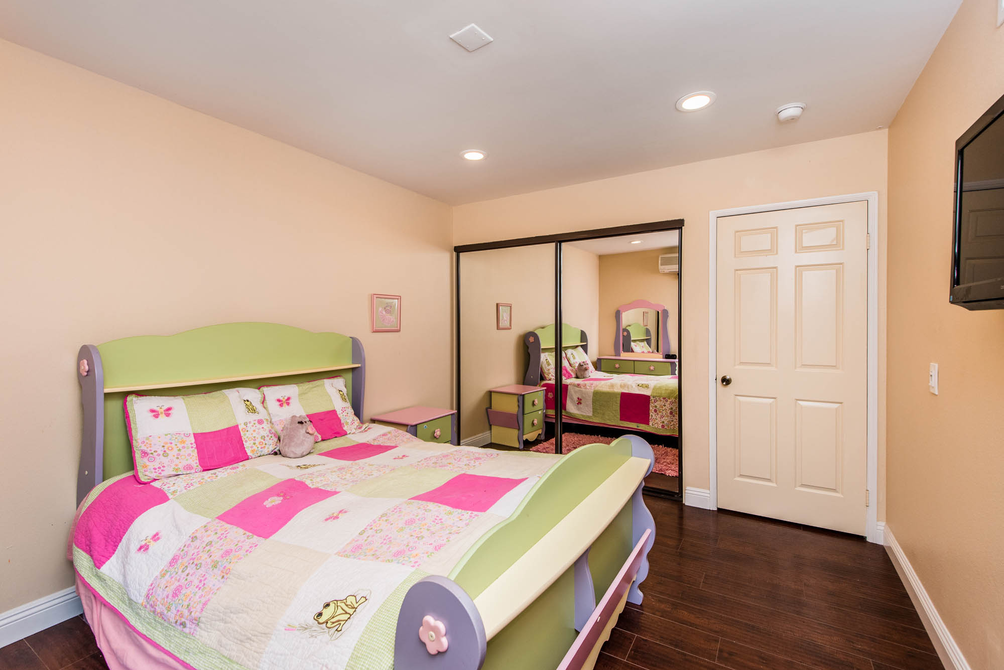 Beautifully updated 5 bedroom, 3 bath home located in a highly desirable pocket of Sherman Oaks. Enter through the gated brick courtyard and into this gorgeous home. Upon entering you are met with the dramatic vaulted ceilings and sophisticated Travertine flooring of the formal living room which opens into the formal dining room. The elegance continues into the gourmet chef’s kitchen, complete with top of the line Thermador appliances, large center island with breakfast bar, and marble countertops. The kitchen opens to the cozy den with wood burning fireplace and offers French doors to the private backyard. Outside, the lush landscaping, beautifully tiled pool & spa, and large patio area create the ultimate Southern California living experience. The downstairs rounds out with a spacious guest room, bathroom, and laundry room that provides direct access to the 3-car garage. Hardwood floors grace the upstairs which holds 4 more bedrooms including the opulent master suite with vaulted beamed ceilings, walk-in closet, and luxurious bathroom. Additional features include security camera system, newer plumbing, electrical, HVAC, and pool heater. Conveniently located to the Sherman Oaks Park, Westfield Shopping Center, and 101 freeway, this home is not to be missed!
